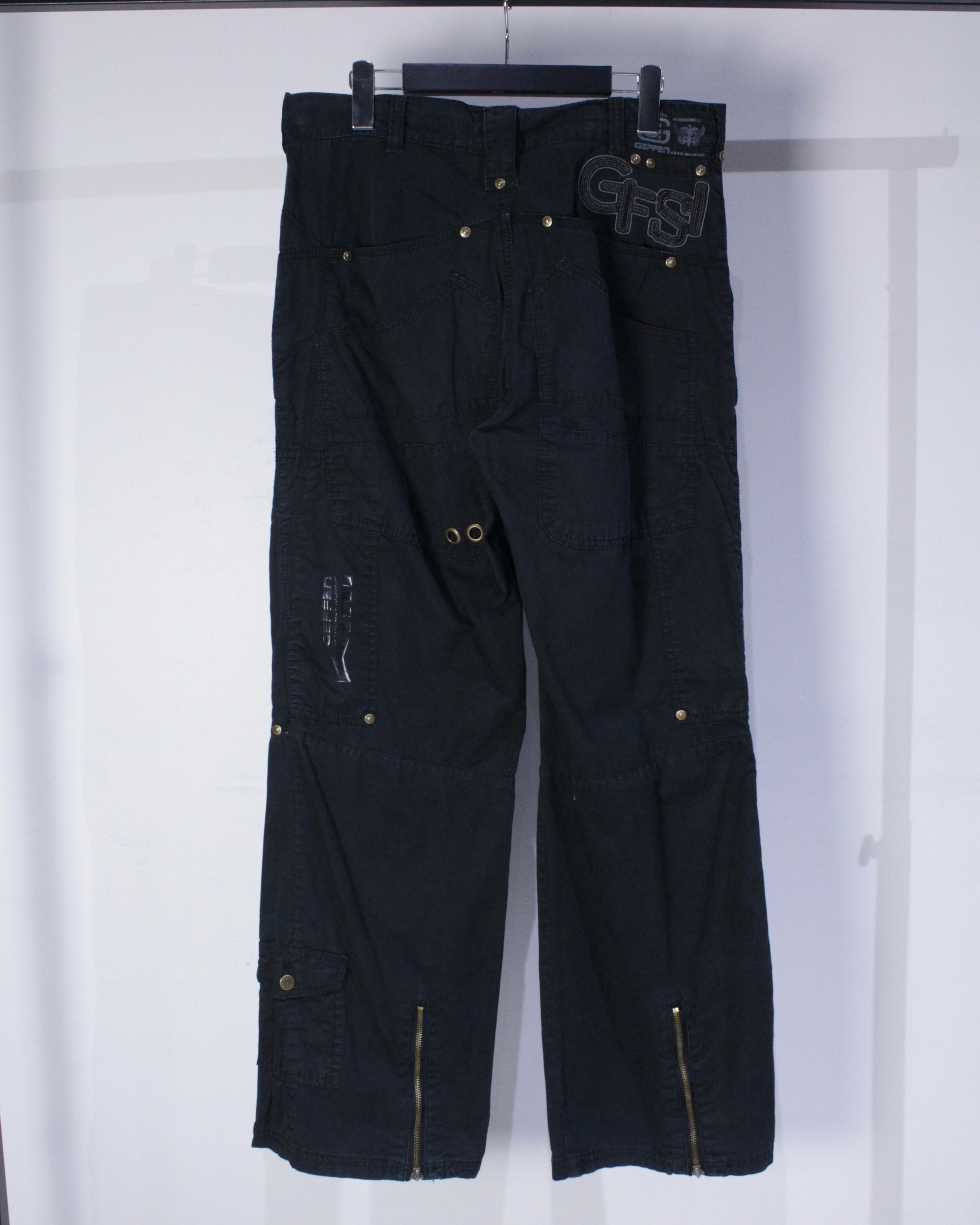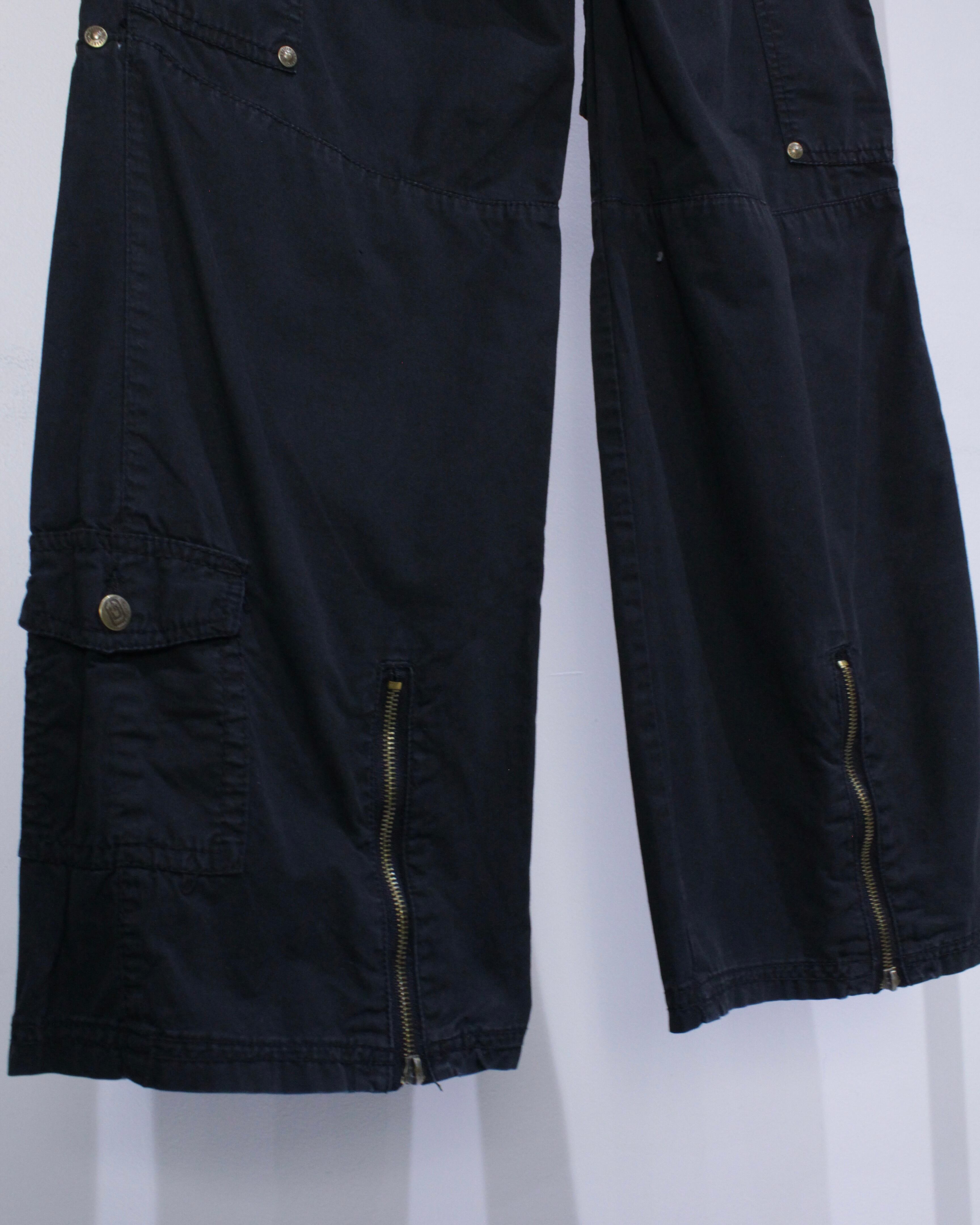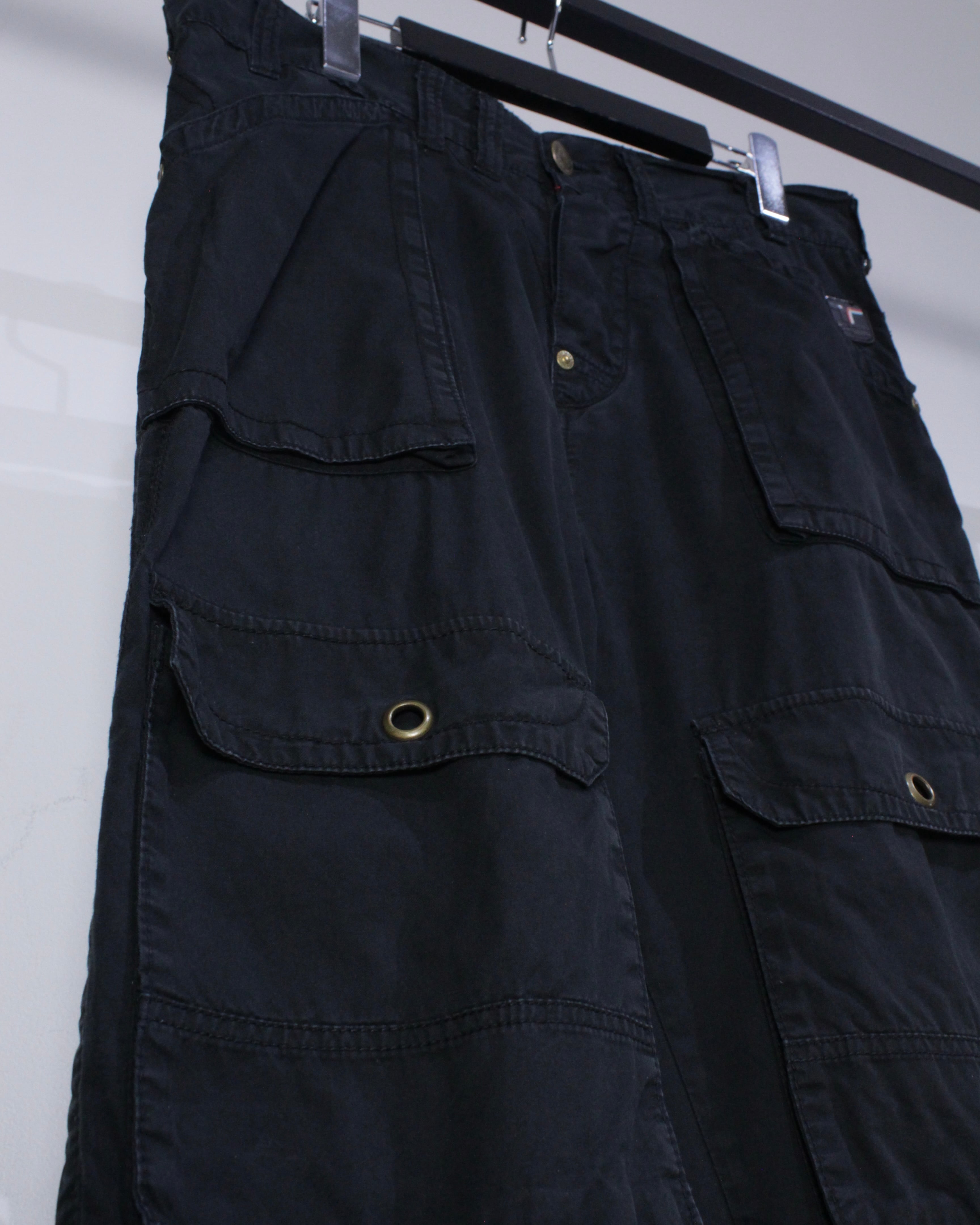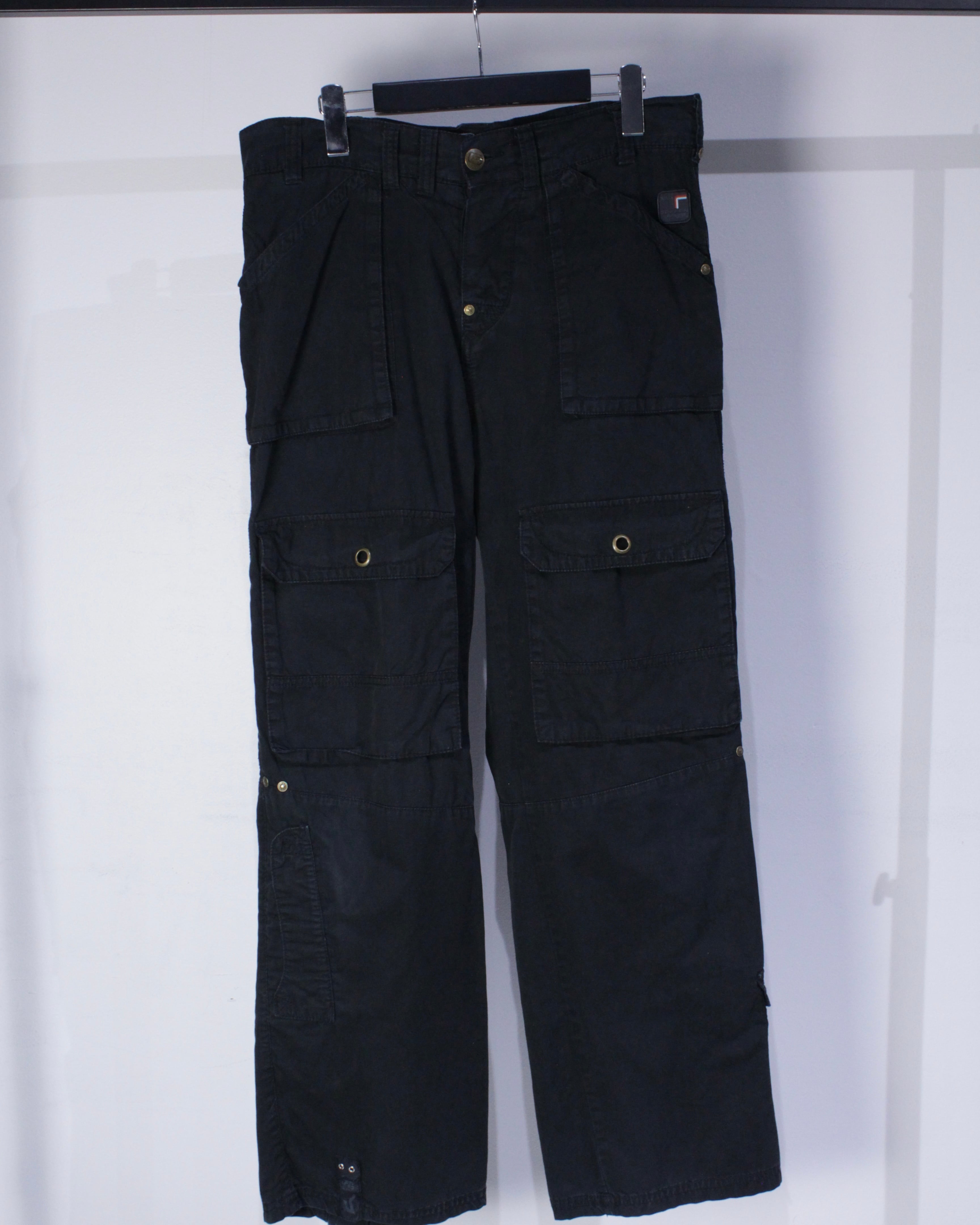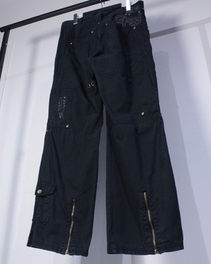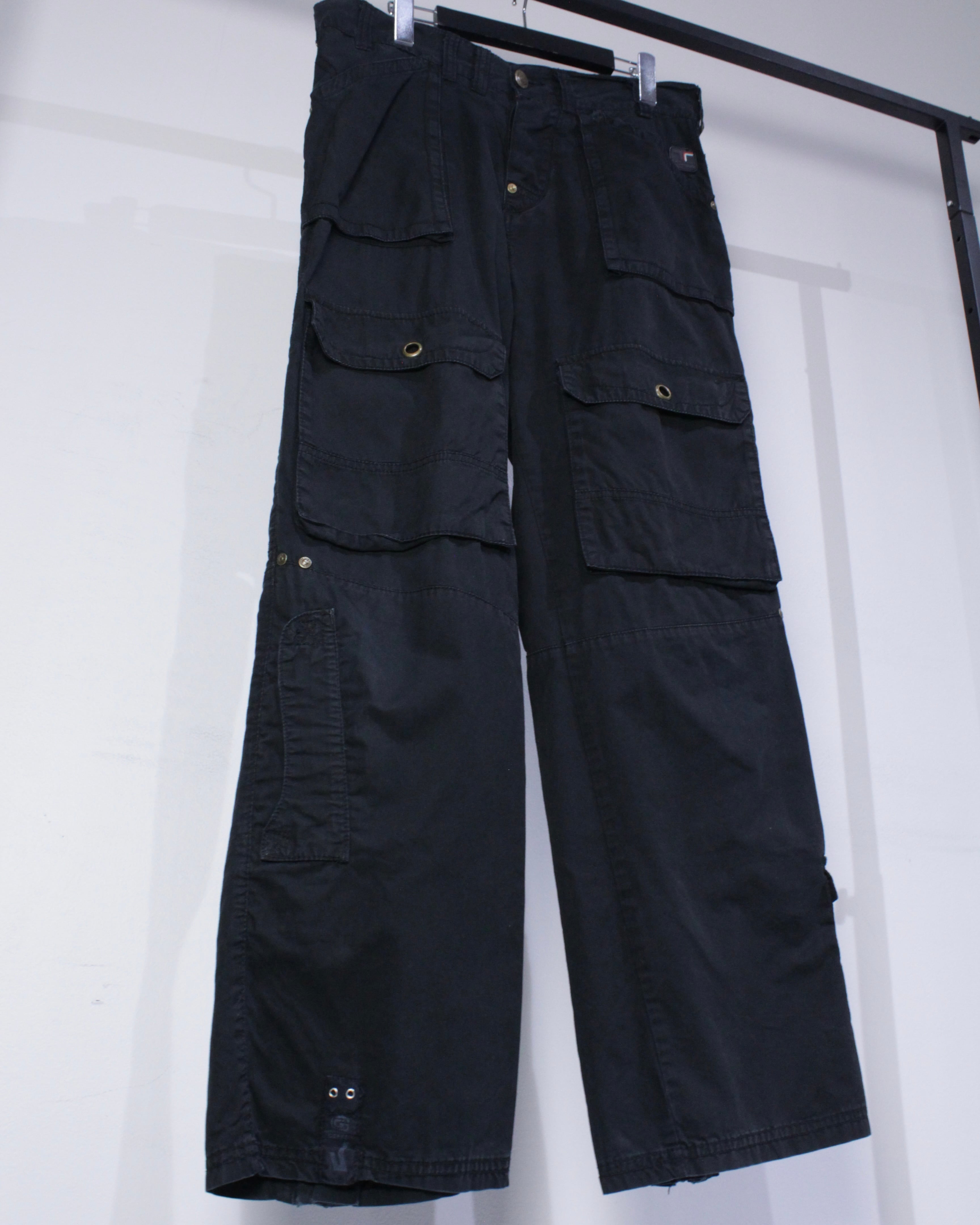 フロントには左右それぞれ、大ぶりなフラップポケットを2つ、右脛部分にはスラッシュポケット、左側にはフラップポケット、バックにも4つのポケットを施した1本。非常に機能性の高いバッグ要らずなのは嬉しいポイントです。