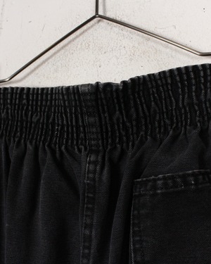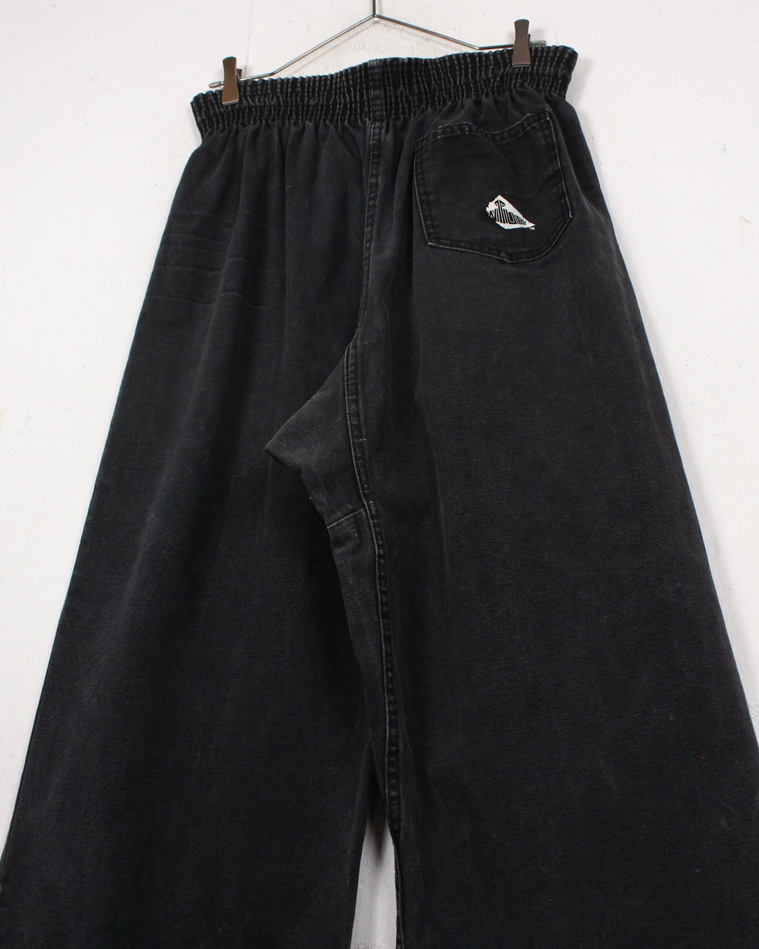 ゴムウエストによって絞られたウエストから裾にかけてズドンと落ちる、抜群なシルエットに、ヒゲのついた美しいグッドフェードが映えるワイドデニム。