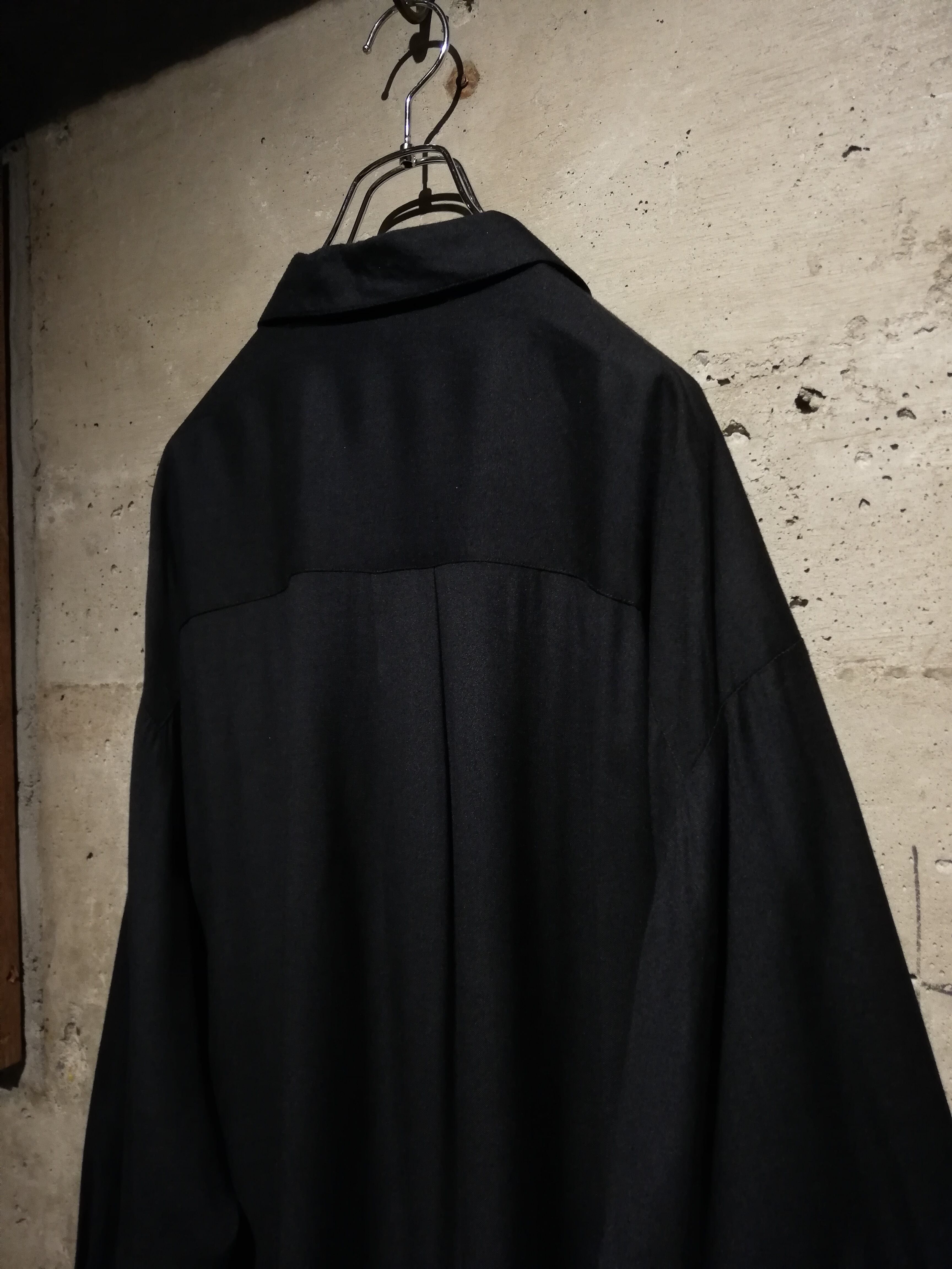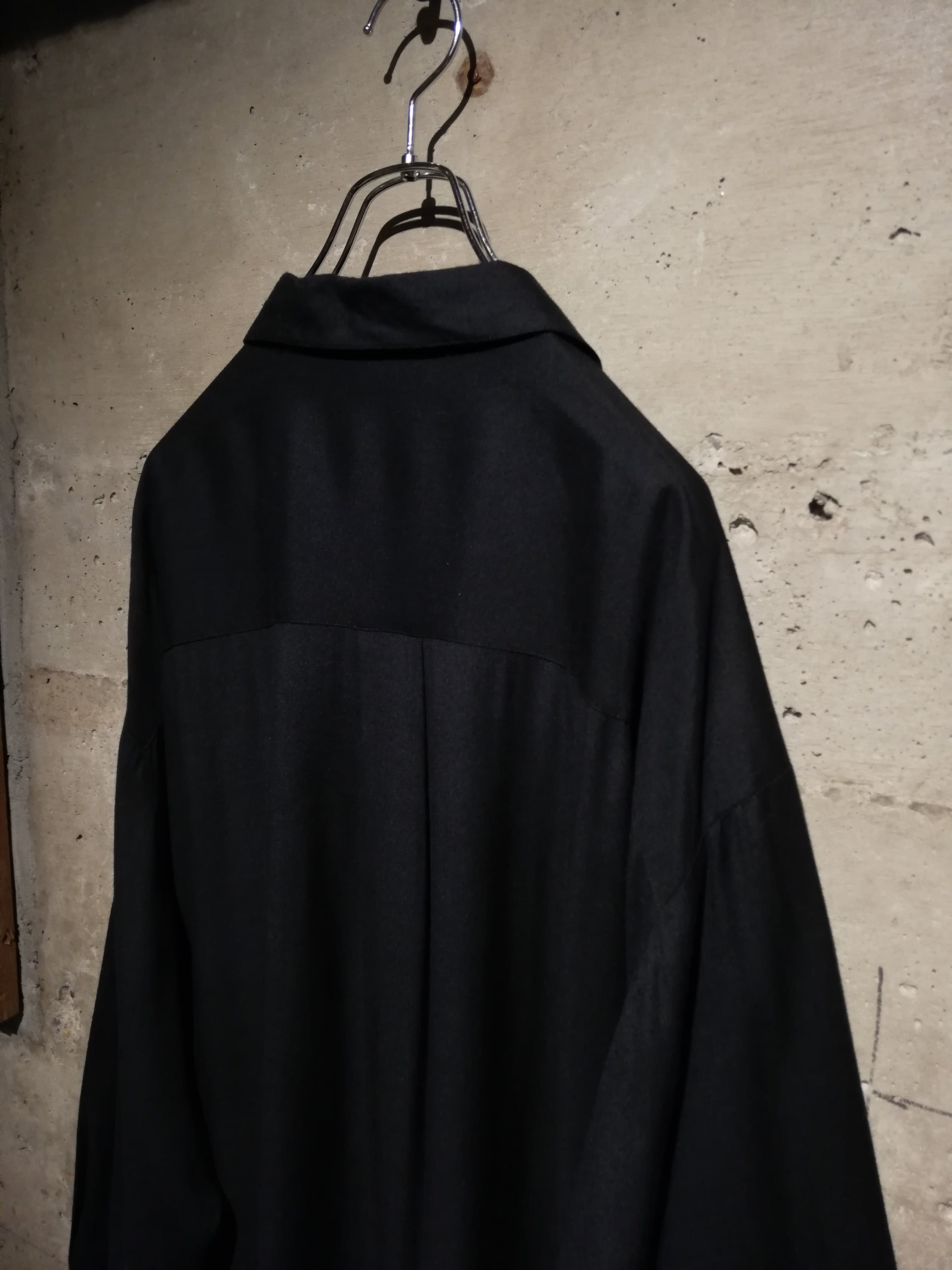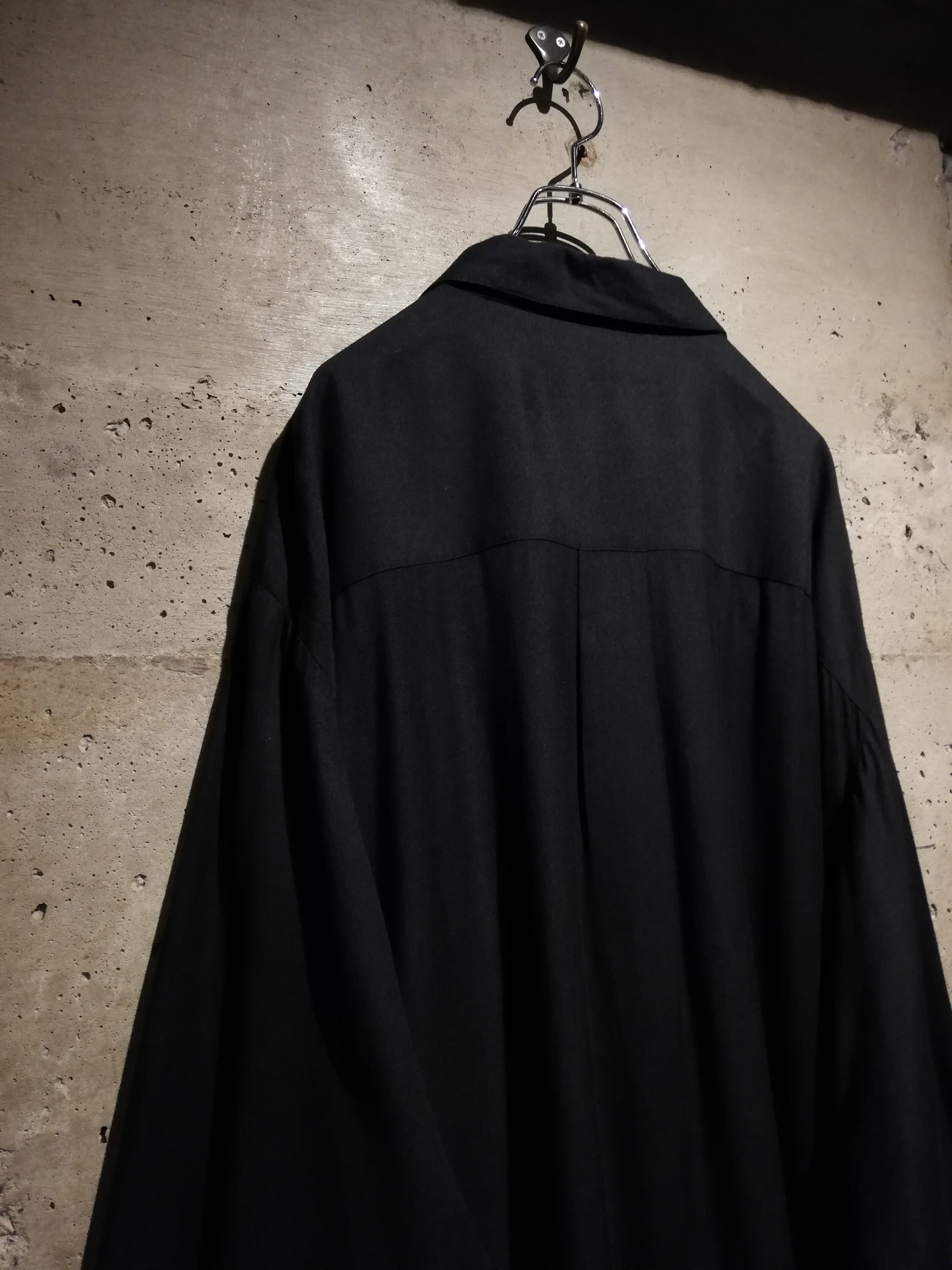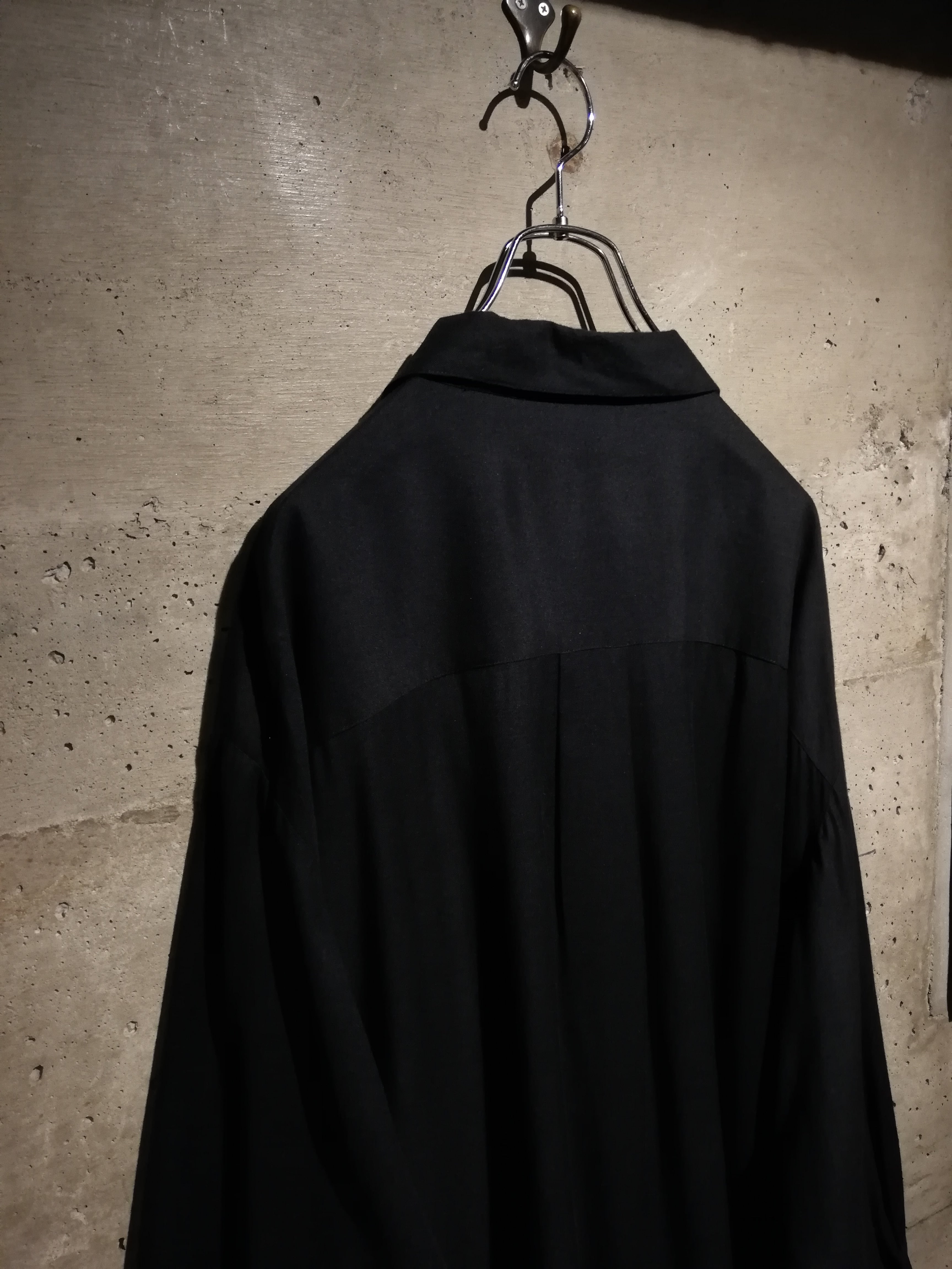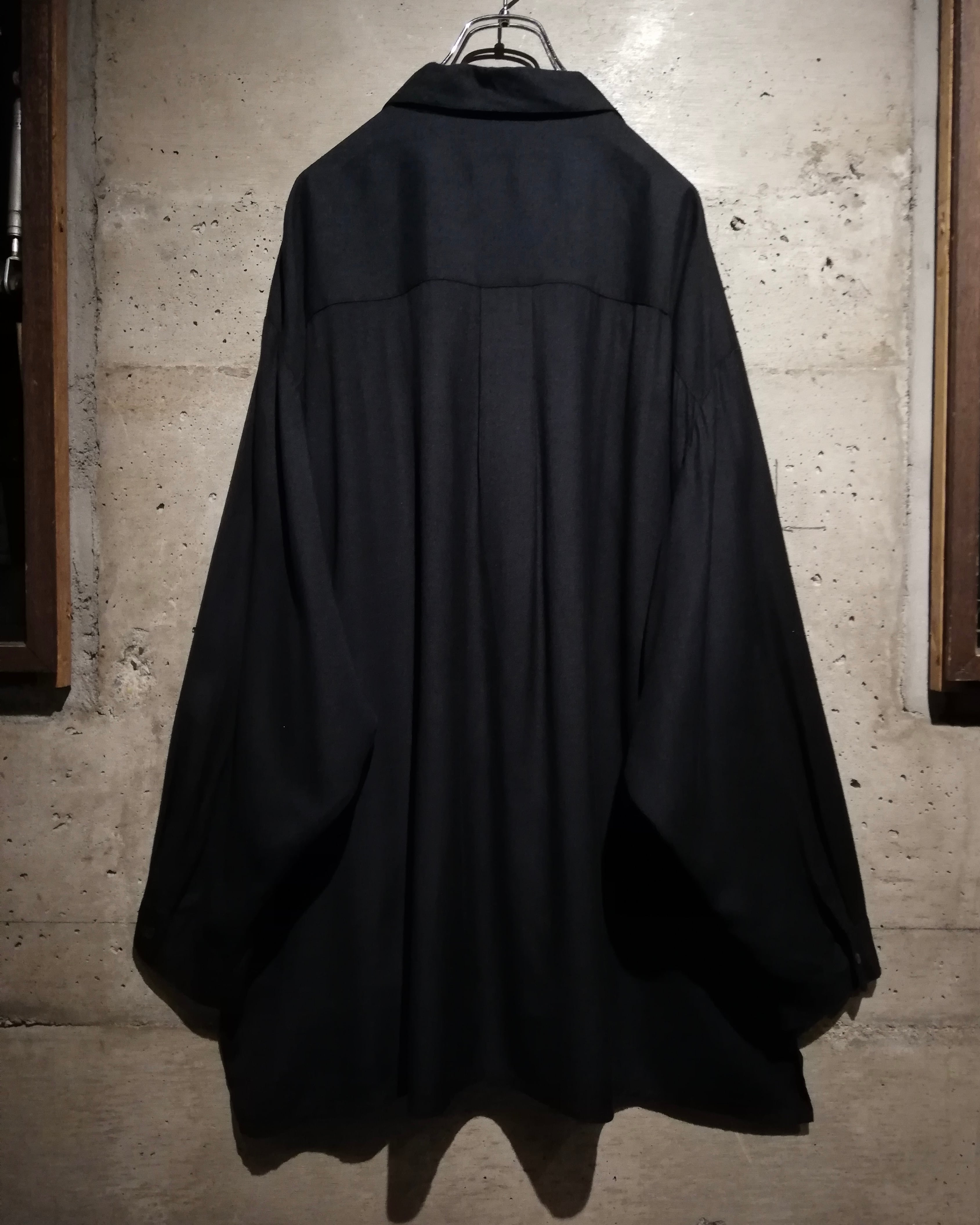 3X表記の全体的にゆとりを持たせたルーズなサイジングにボックスシルエットの仕様。1着の存在感は言わずもがな、ジャケットなどのインナー使いも最高。ブラックスタイルにいいスパイスが加わること間違いなしかと。