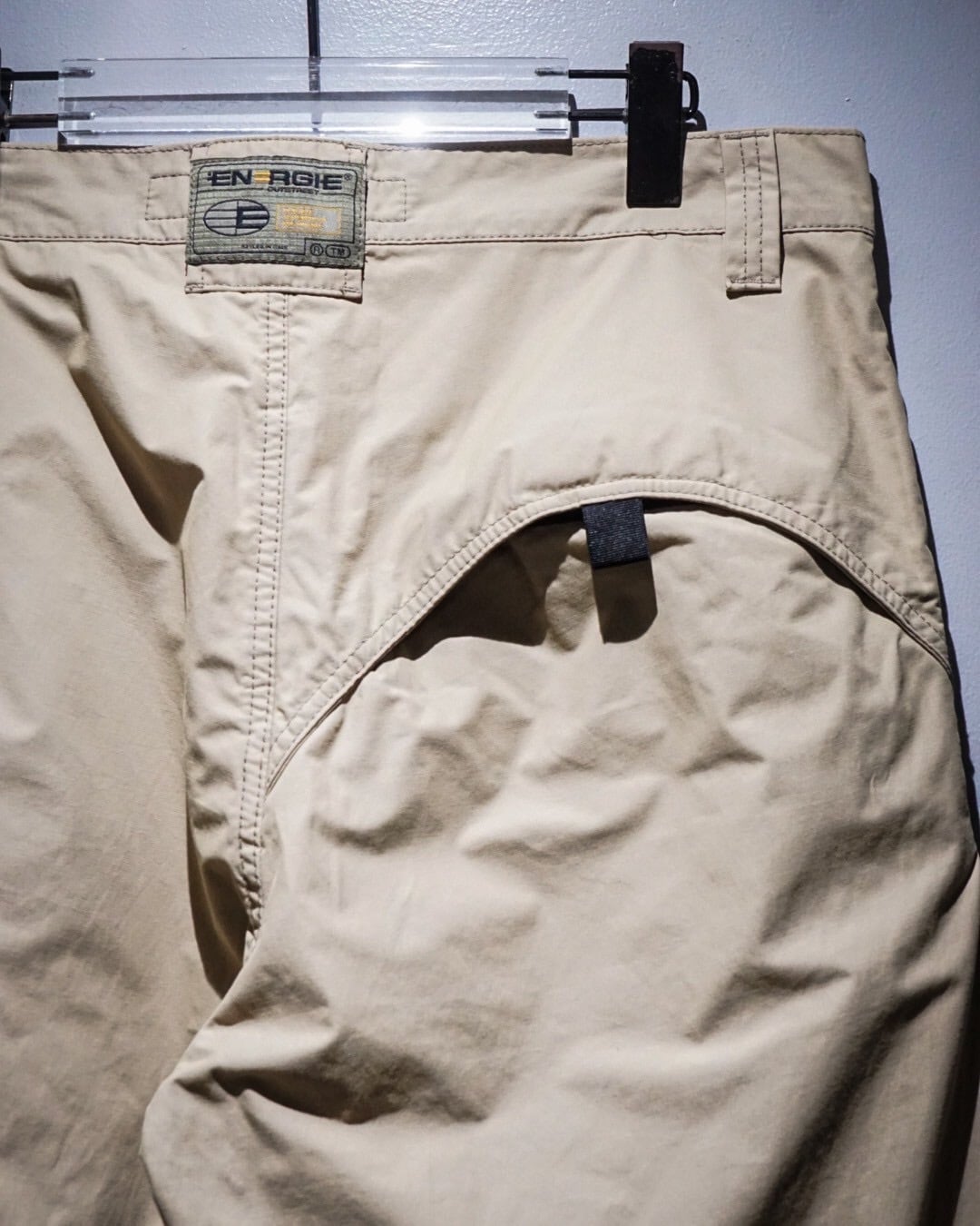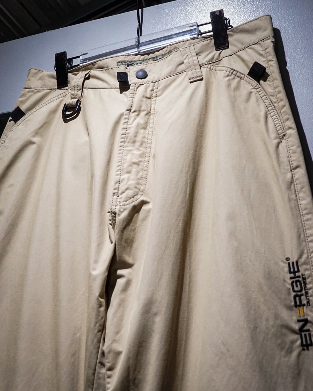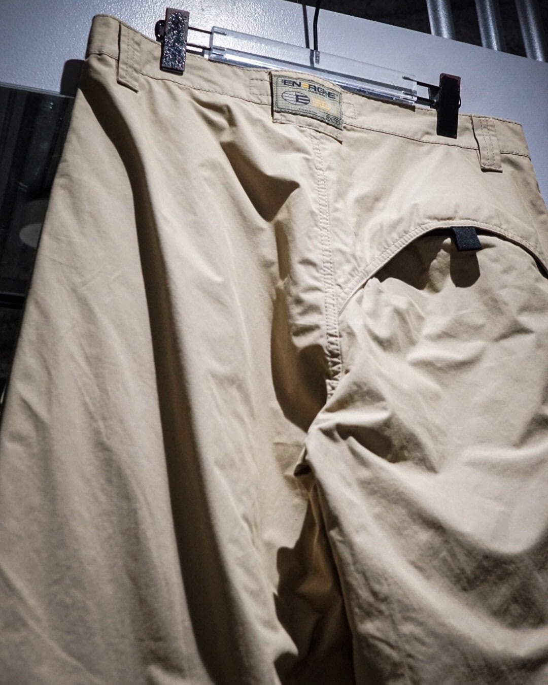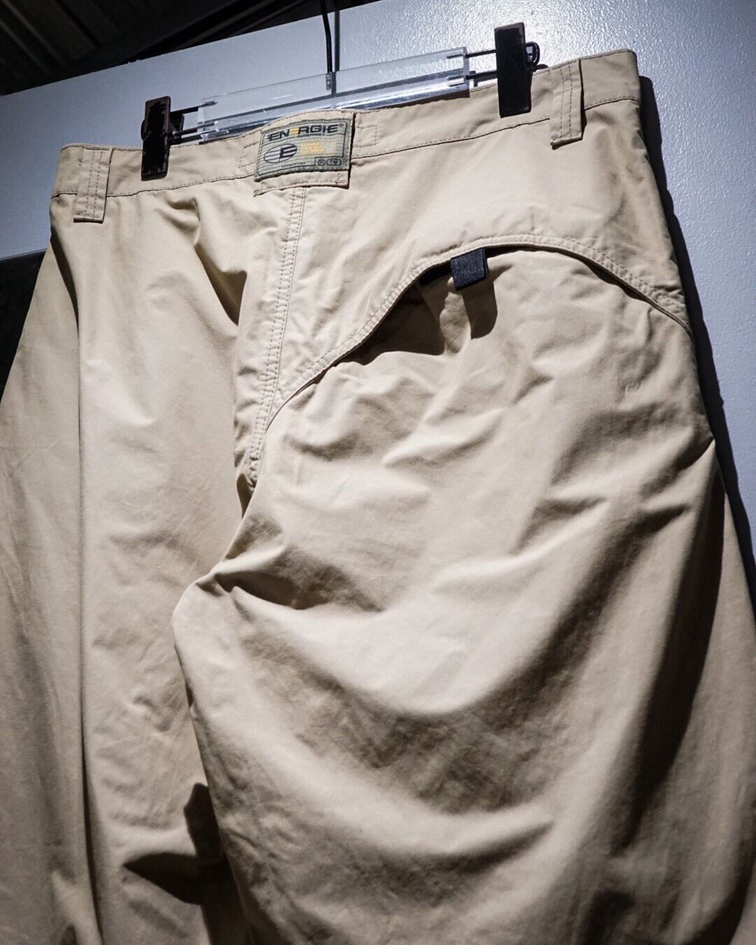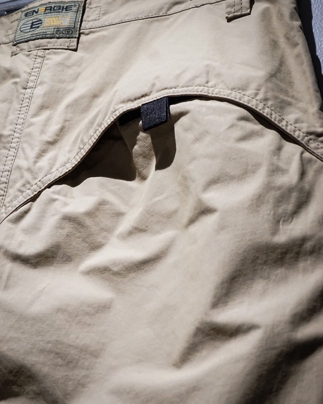 両ポケット膝、背面右にはラウンド状の切り替えか施されており、シンプルながら程よく個性的なユーロマインドを感じる1本に仕上がっています。左腿部分にはブランドロゴが施された細部へのこだわりも◎