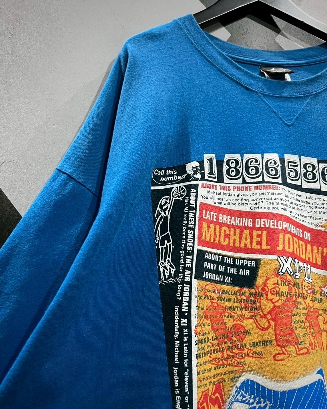 1985年に誕生したAIR JORDAN 1から、長い歴史とその確かな人気を築いた"AIR JORDAN"。こちらは1995-1996年のシーズンに発売された"AIR JORDAN 11"のローンチの広告をデザインに落とし込んだスペシャルなTシャツ。
