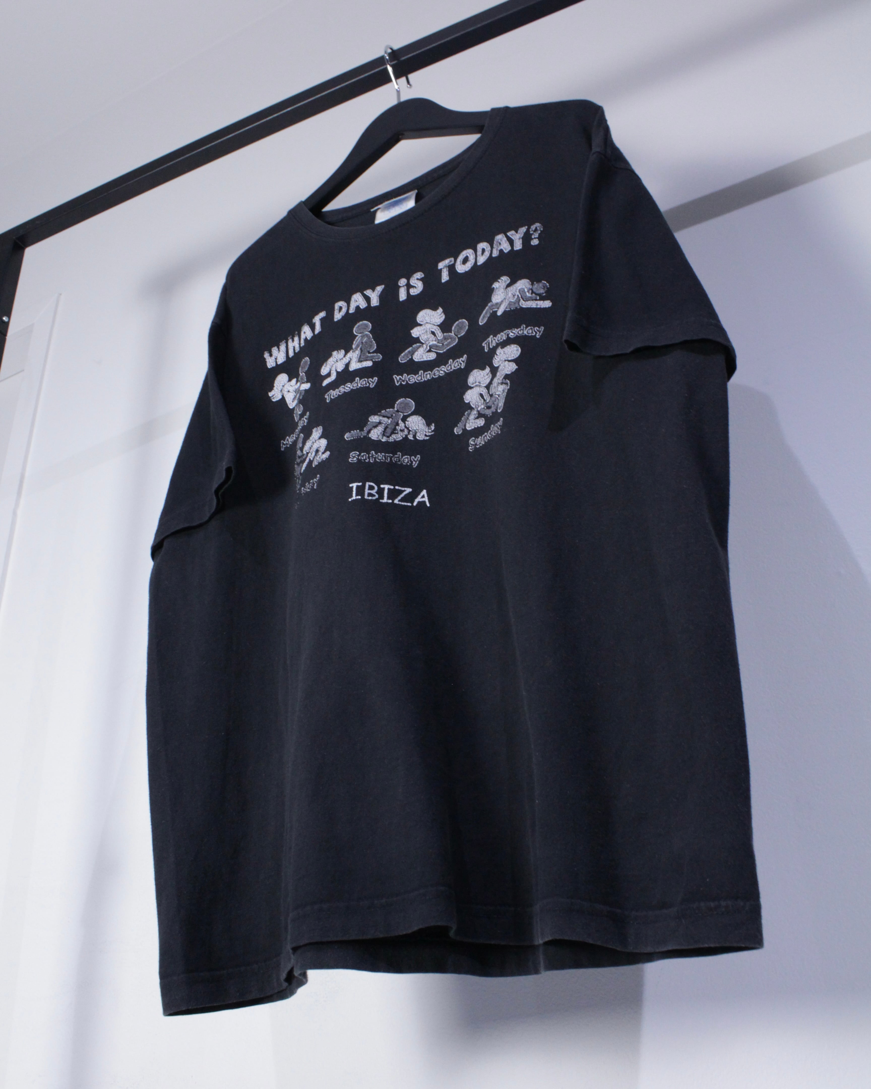 Lサイズ表記のルーズなサイジングに、ボディのクタッと感、プリントの擦れがUSEDならではの良い雰囲気を醸し出しています。