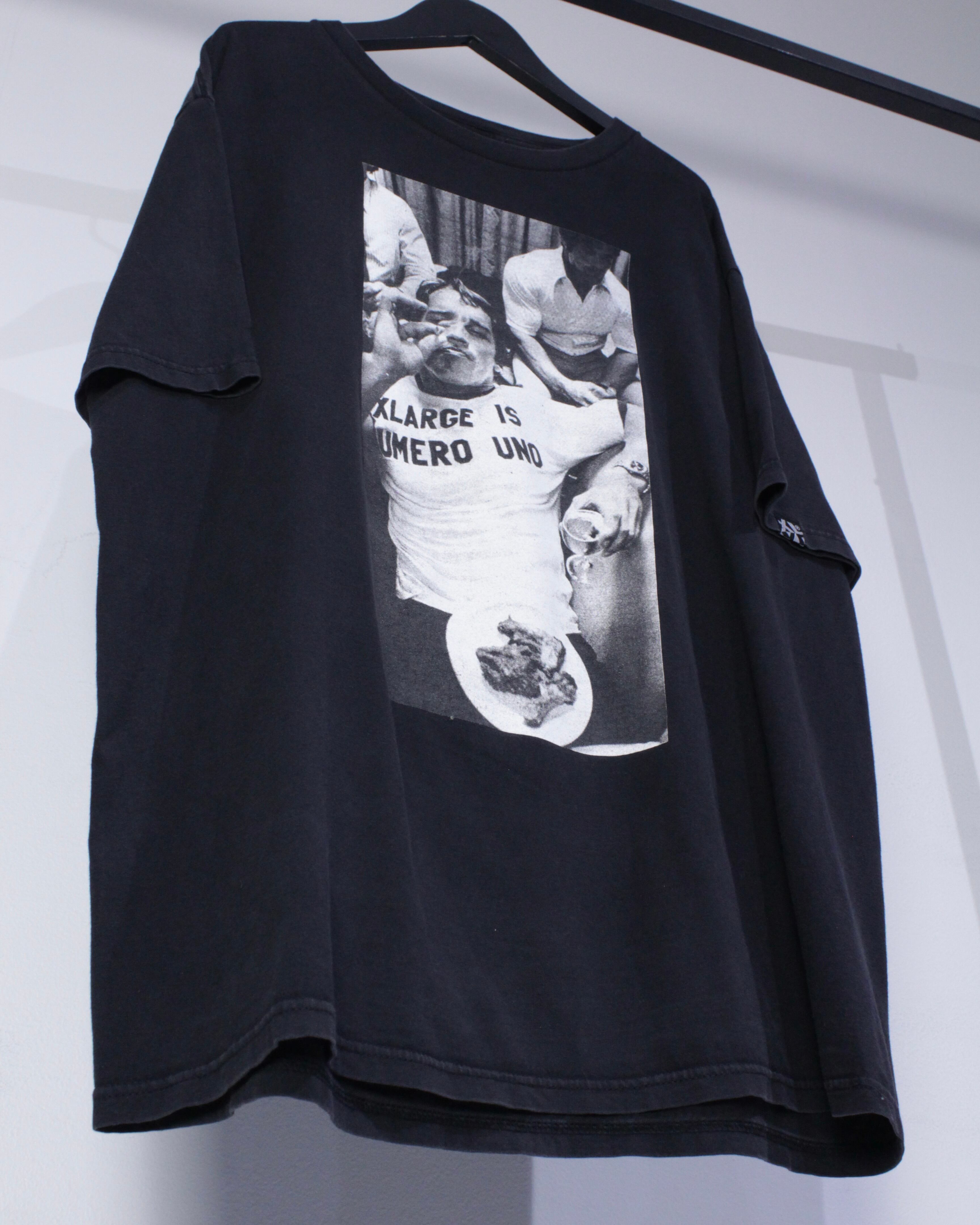 写真の男性もX LARGEのTシャツを着て、X LARGEのオールドモノらしい当時の雰囲気が何とも洒落た、非常に服好きの心がくすぐられる1着。