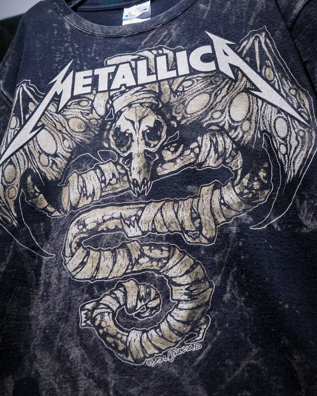 ブリーチの効いたボディに、フロントにはメタリカらしいアートワーク、背面にはスカルに、この曲の歌詞をプリントした両面GOODなデザイン。ブリーチされたボディとデザインが相まって、非常に良い雰囲気を放っています。