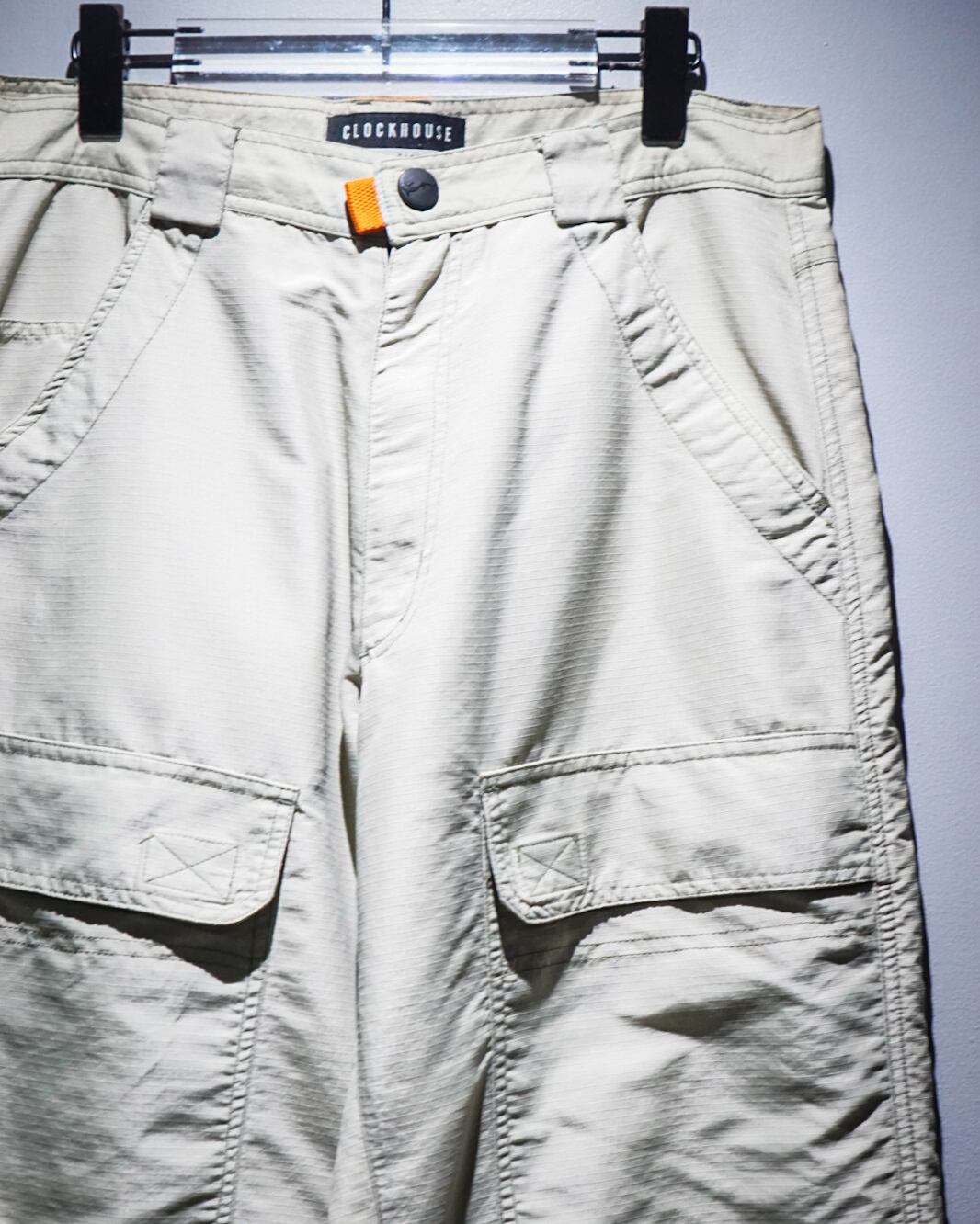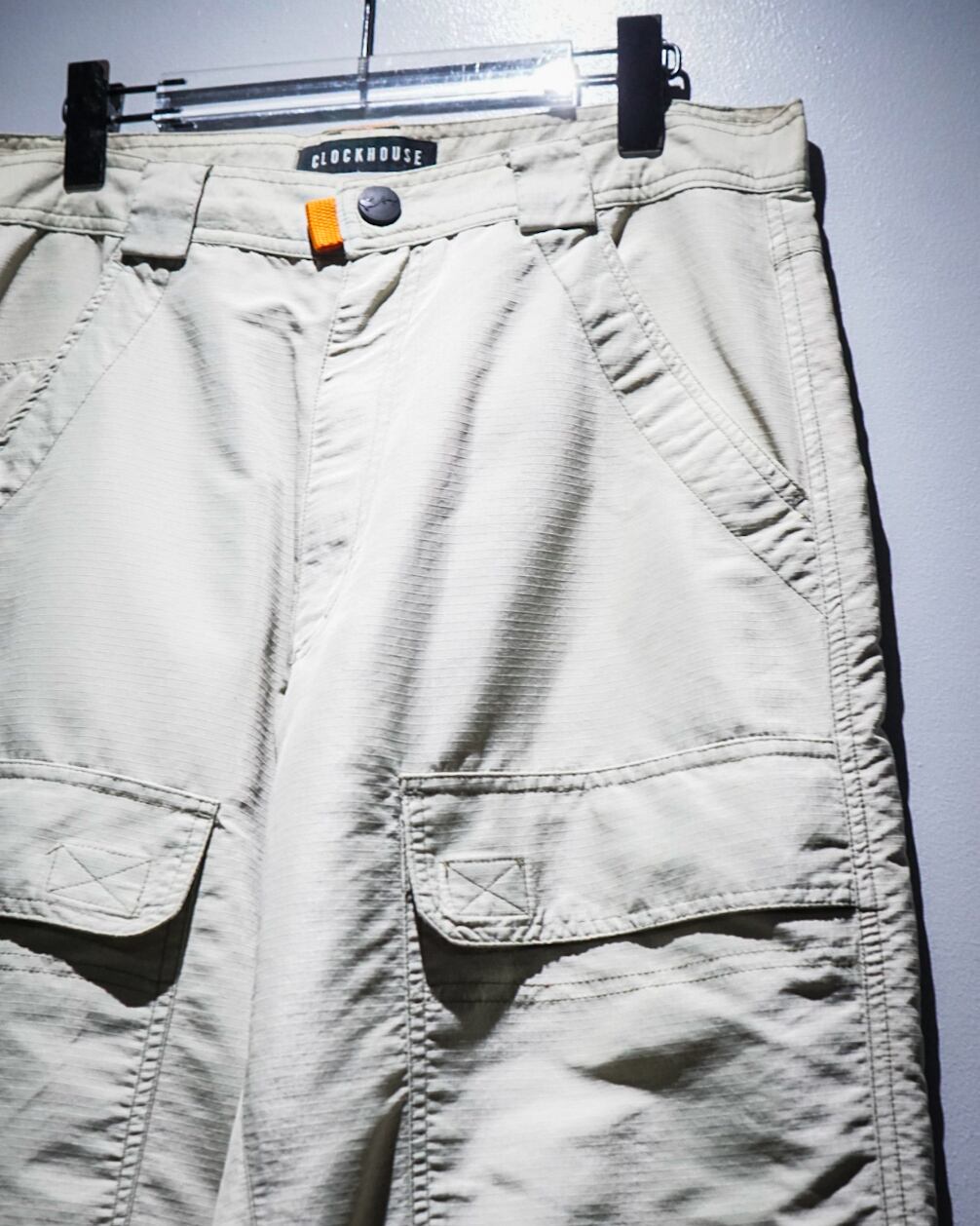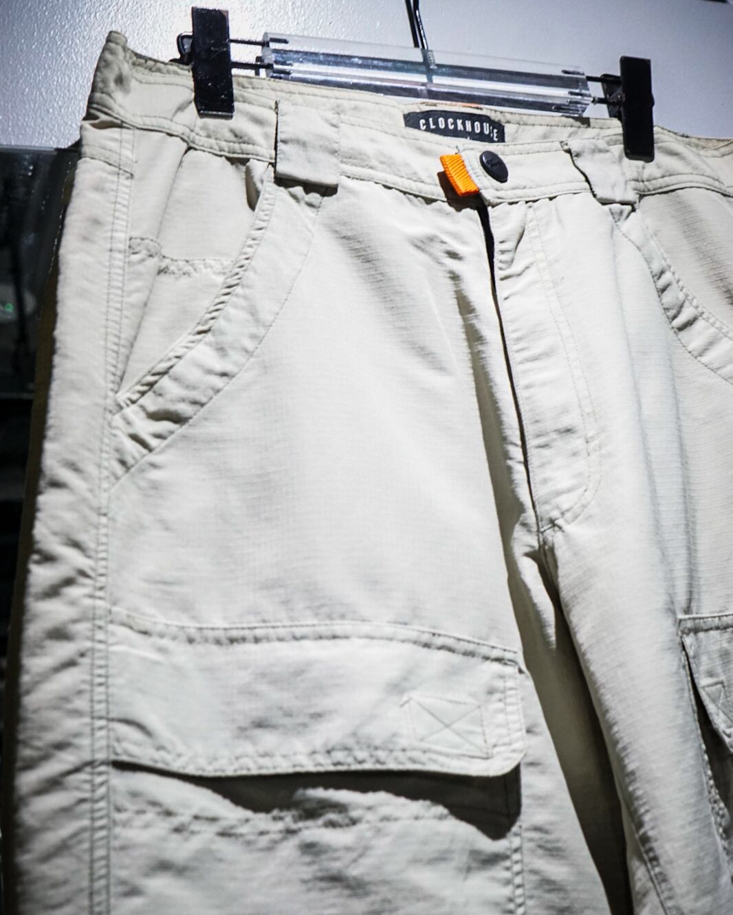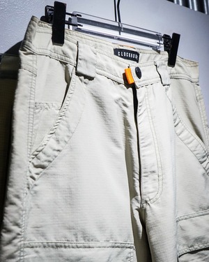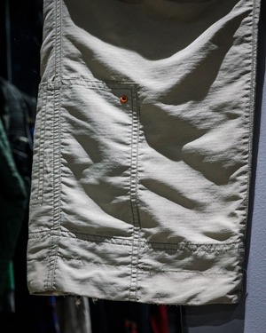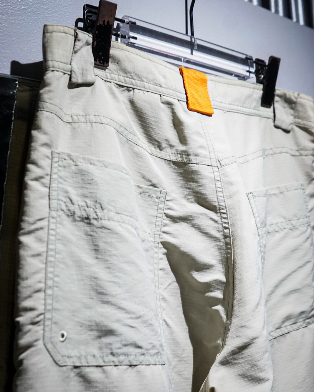 タフかつ強度の高いリップストップナイロンのに、フラップポケットのギミックを載せたナイロンパンツ。
