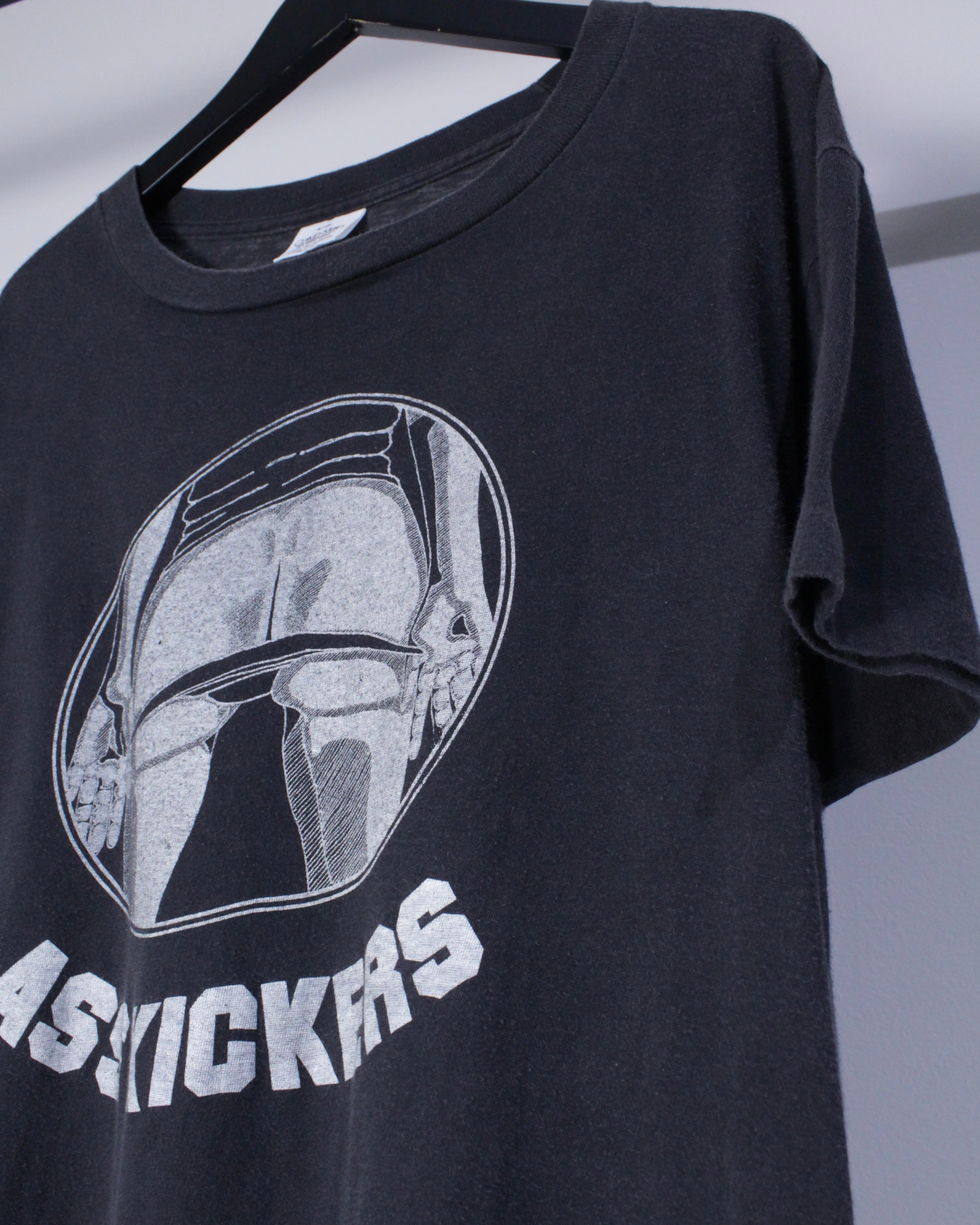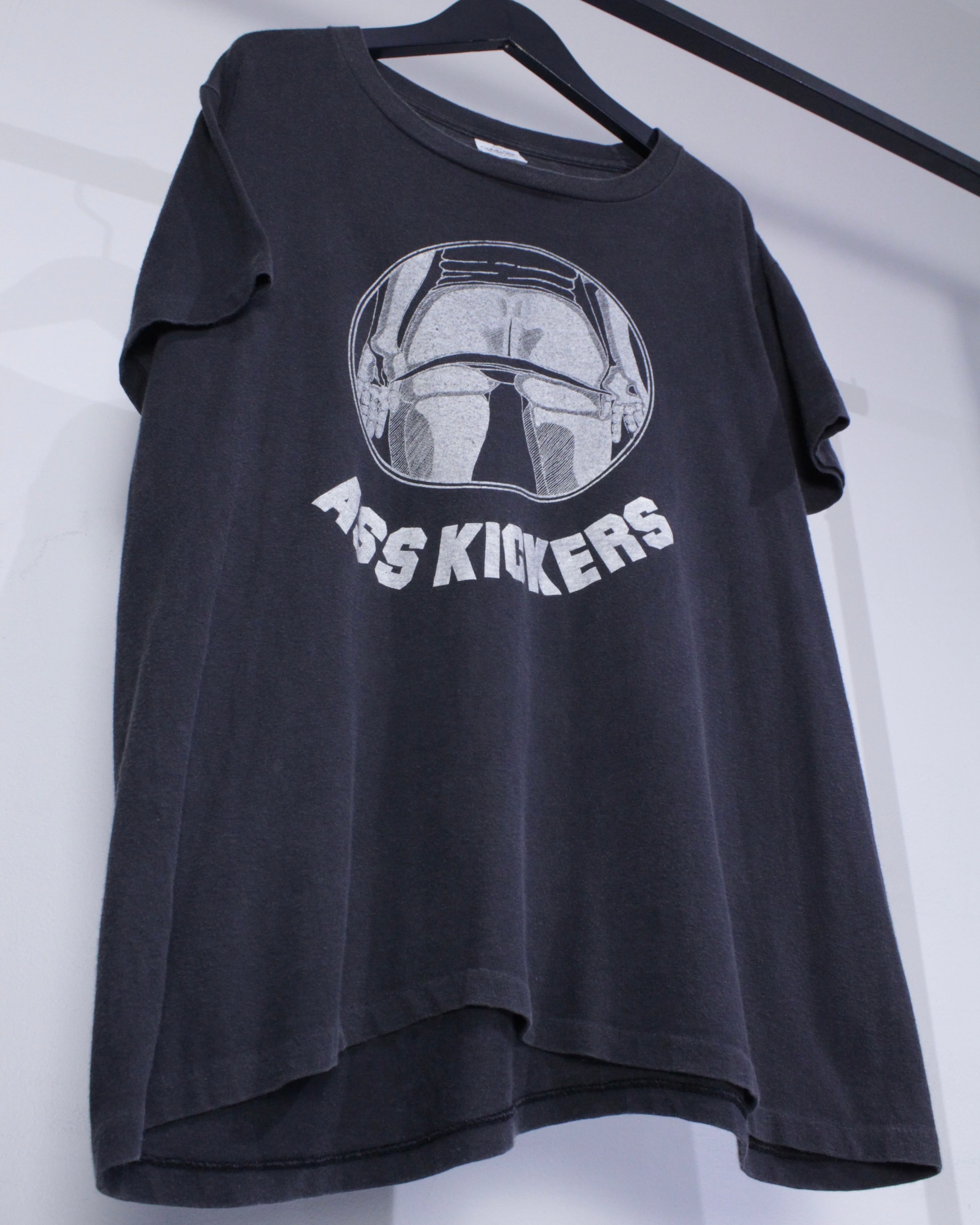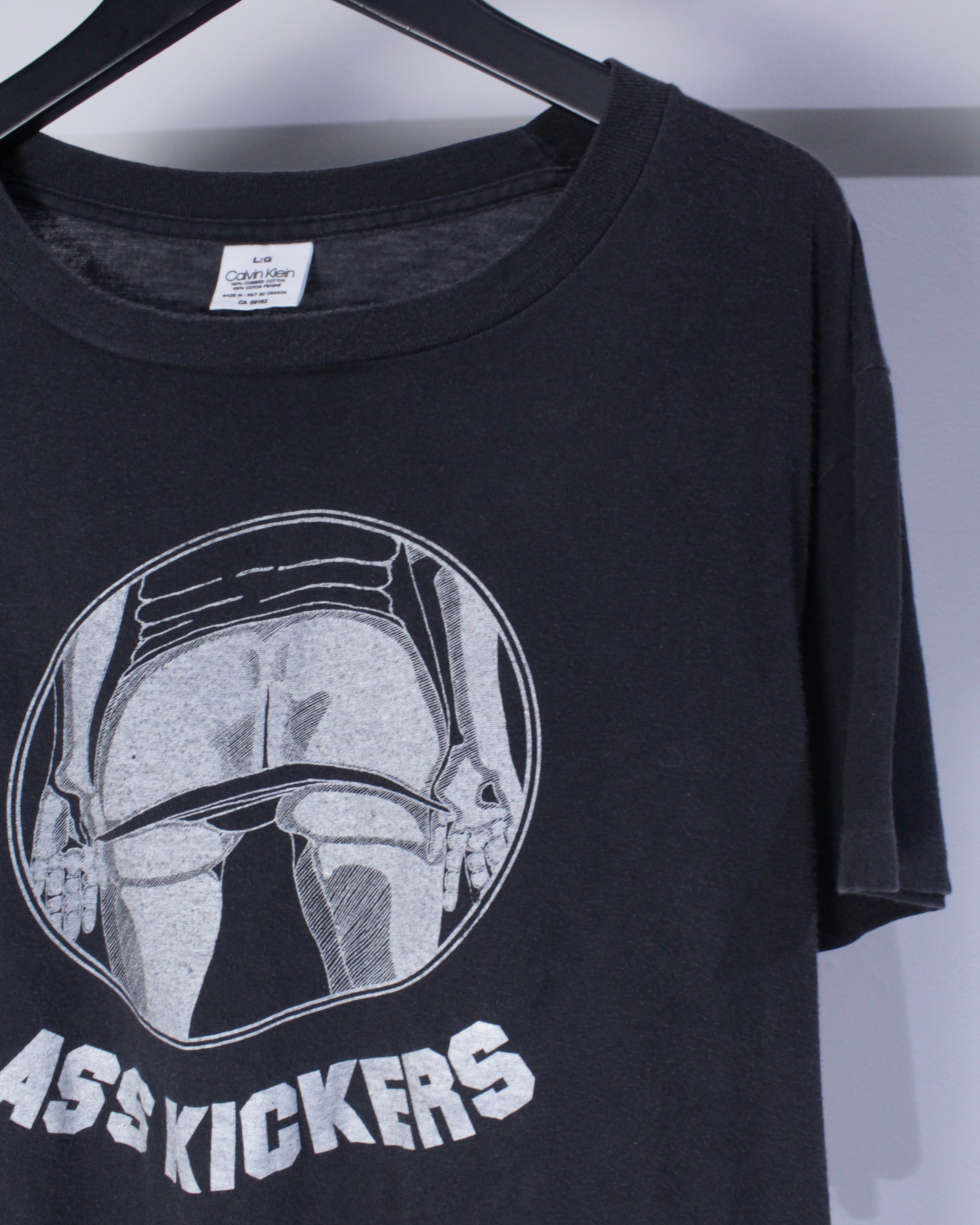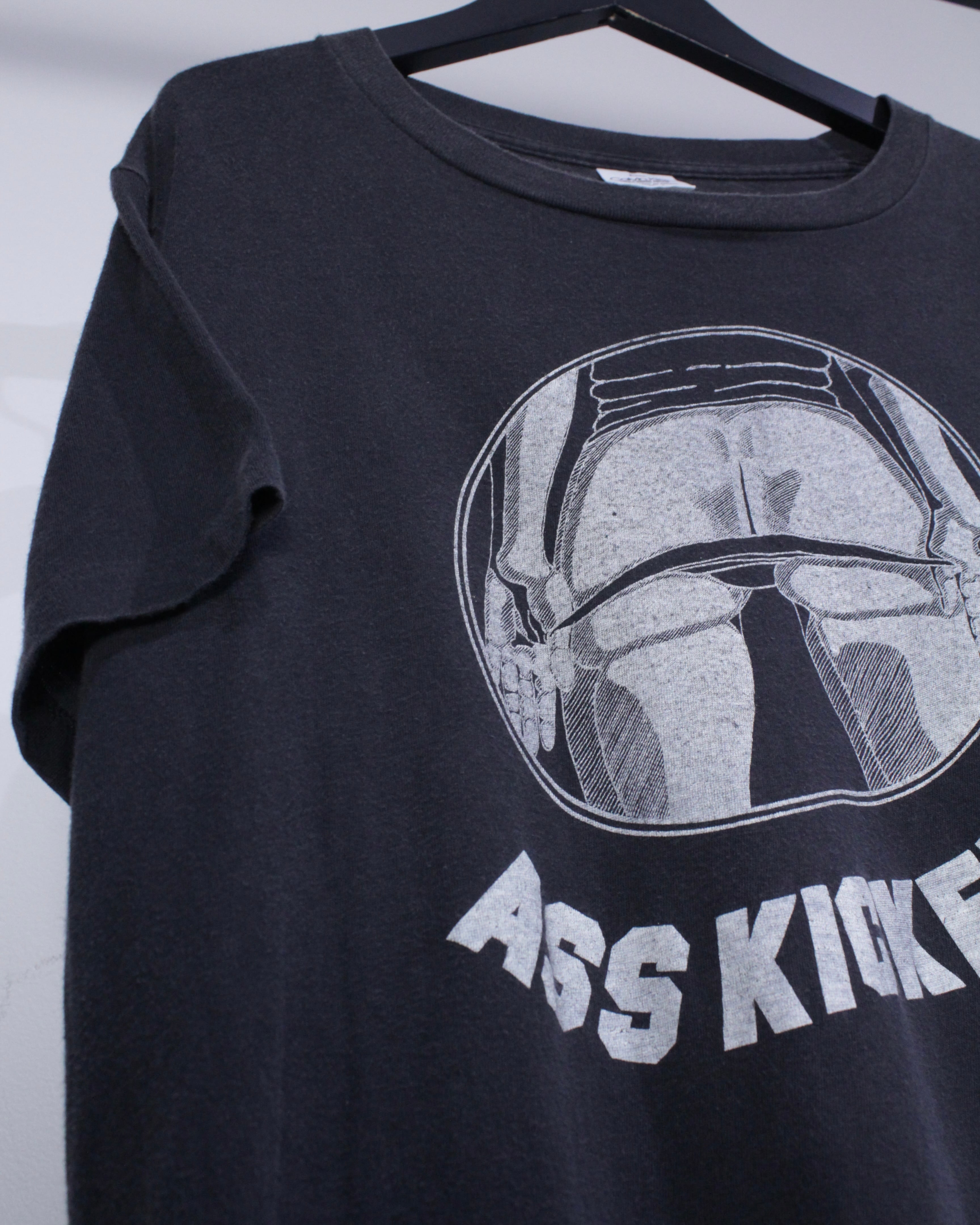 ブラックのボティに"Ass Kickers"のスラングとイラストを載せた1着。