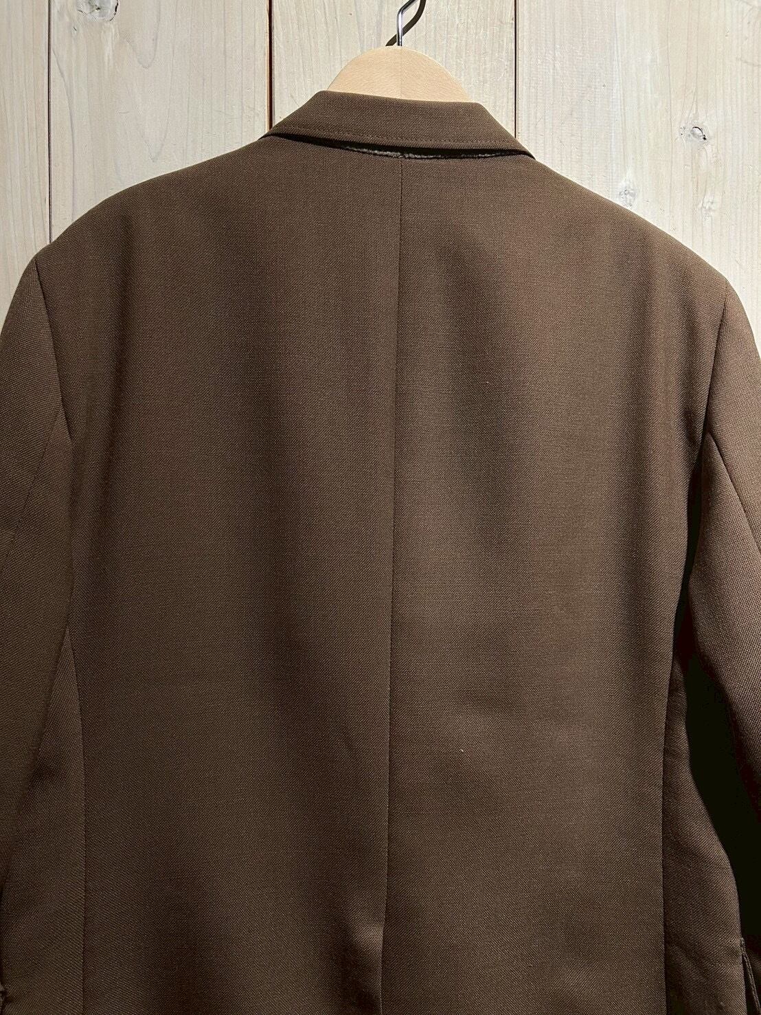 前たてはシングルブレストの仕様。身幅広めのリラックス感のあるシルエットで肩の力を抜いての着用が可能。デザインは言わずもがな、緻密に計算されたパターンで着用時のシルエットも美しいです。