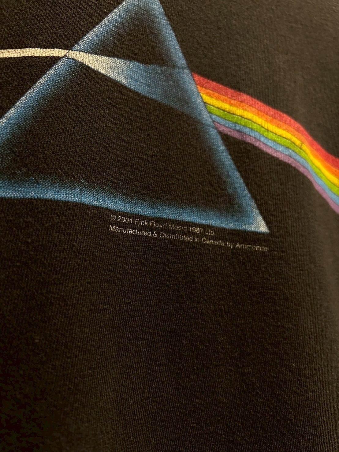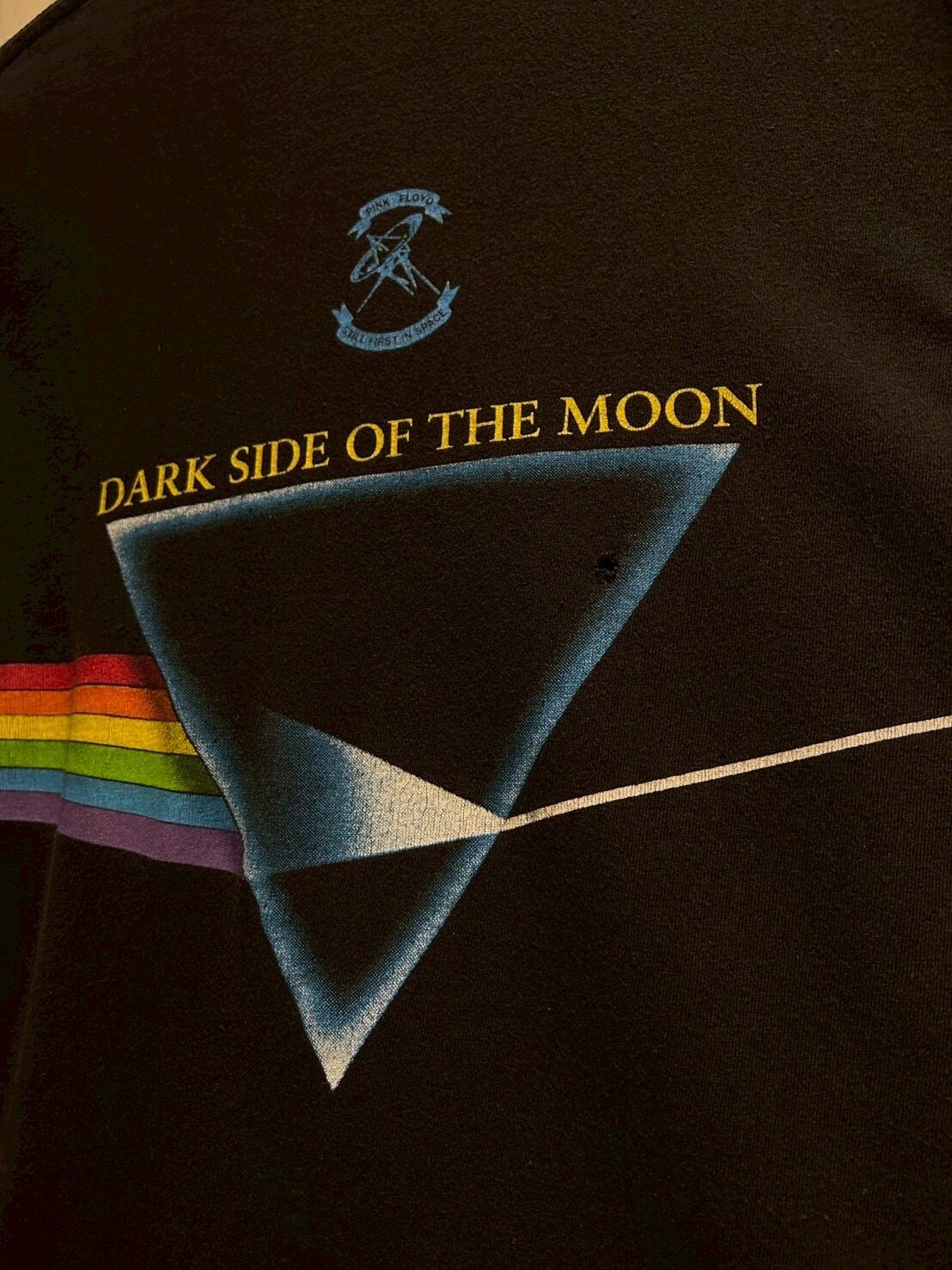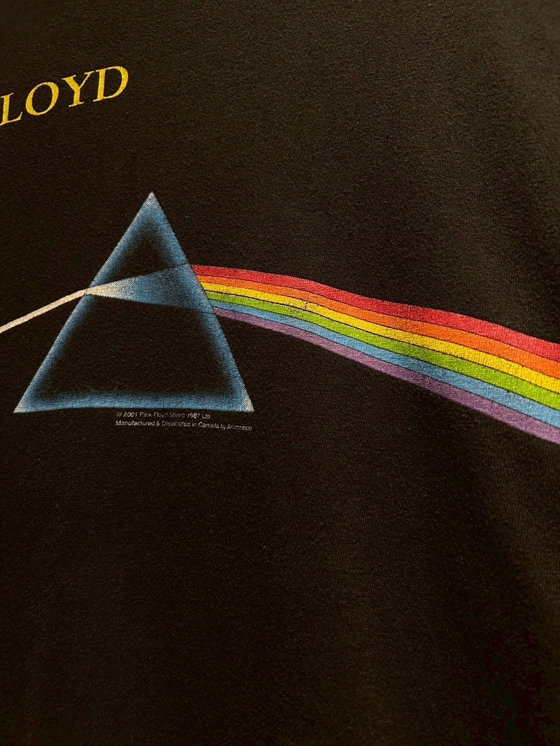 1973年にリリースされた当バンド最大のヒット作である名盤中の名盤"Dark Side Of The Moon"のTシャツ。皆様お馴染みのトライアングルが印象的です。