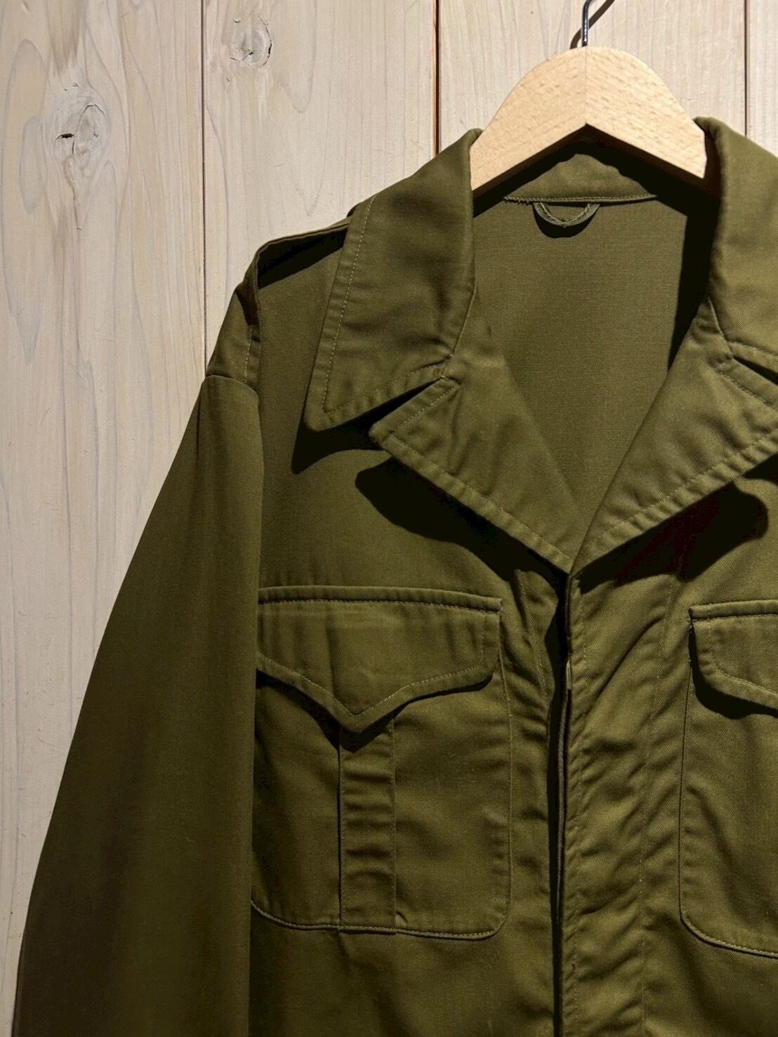 両胸に施された大ぶりなフラップポケット、大きめな襟のディテール。そしてショート丈のサイズバランスと、ミリタリーアイテムで人気を誇ると同時に、今の気分を捉えたシルエットが最高な1着。