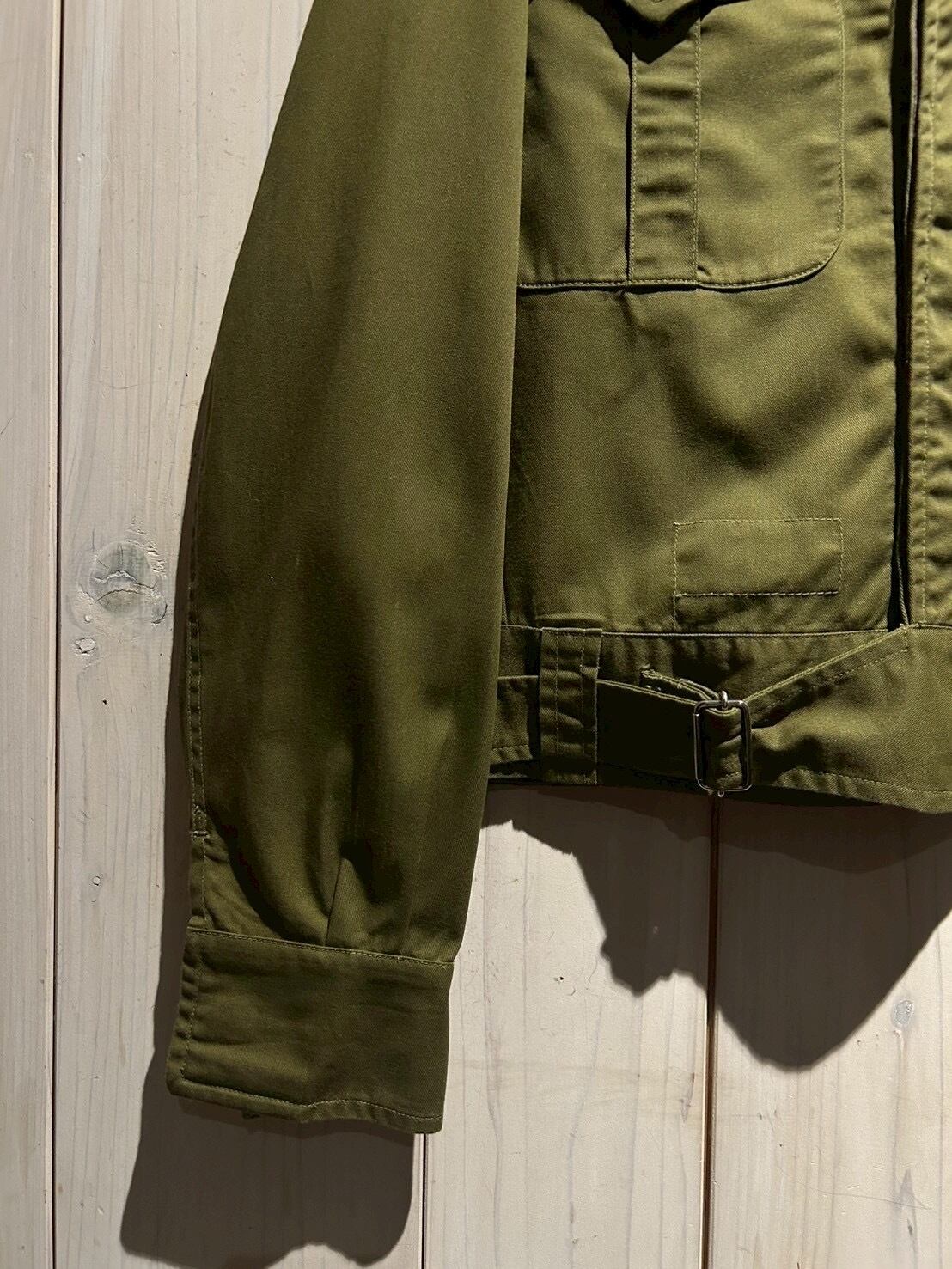 アメリカ陸軍が第二次世界大戦時に用いていた"バトルドレスジャケット"をサンプリングしたショート丈のジャケット。