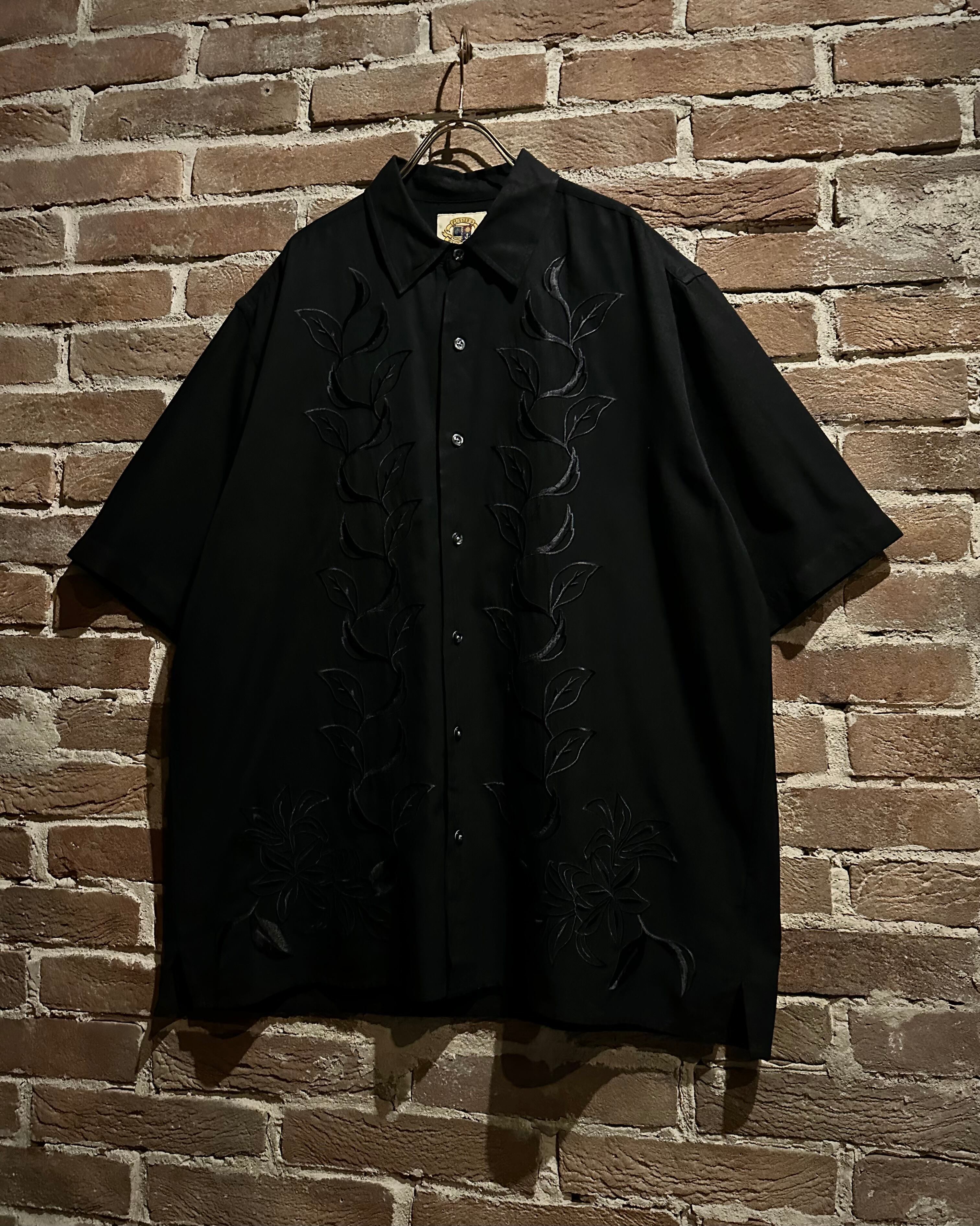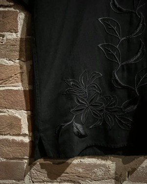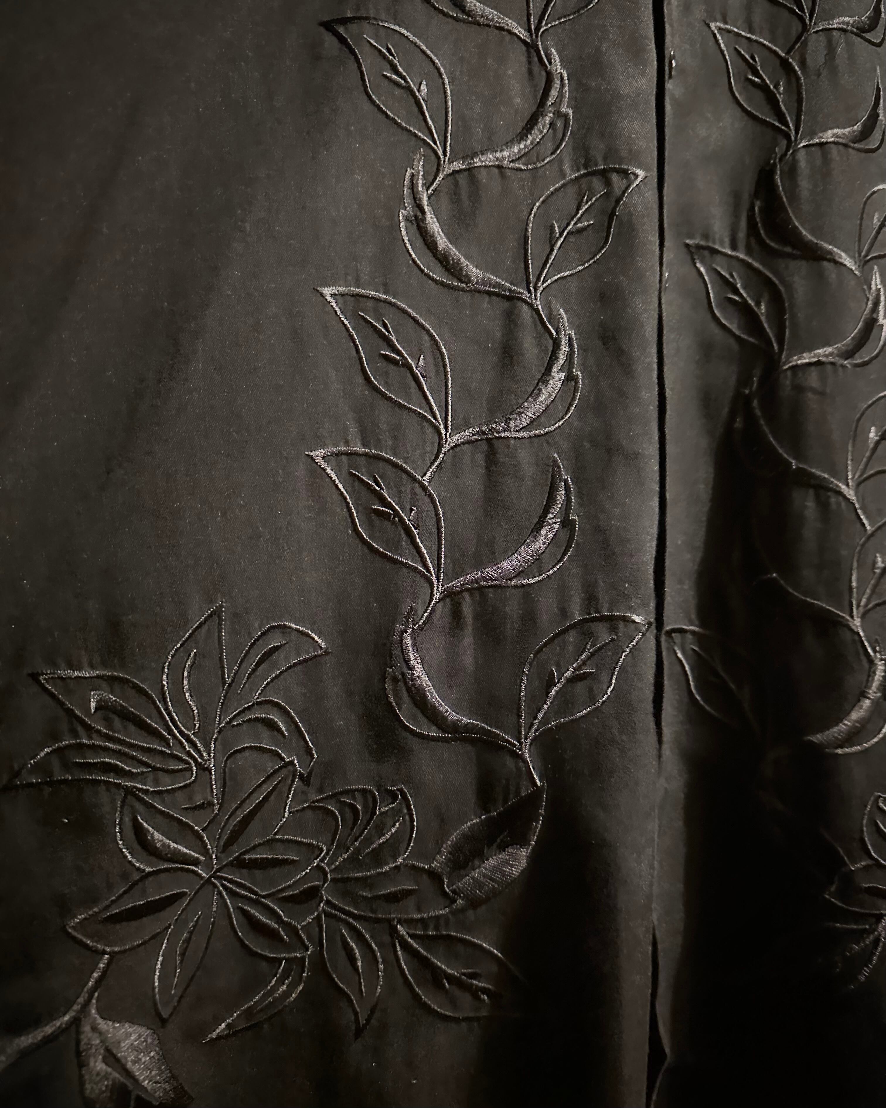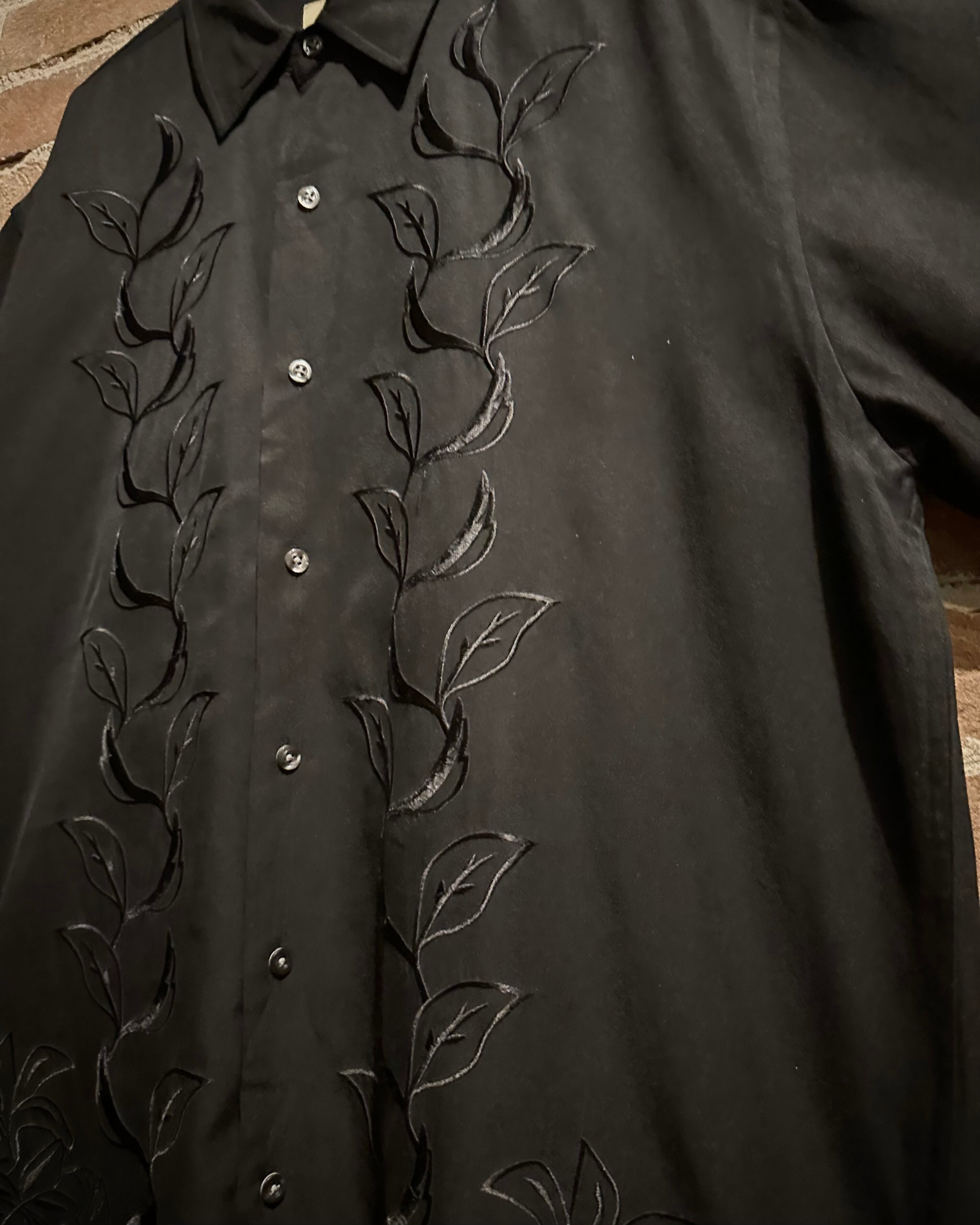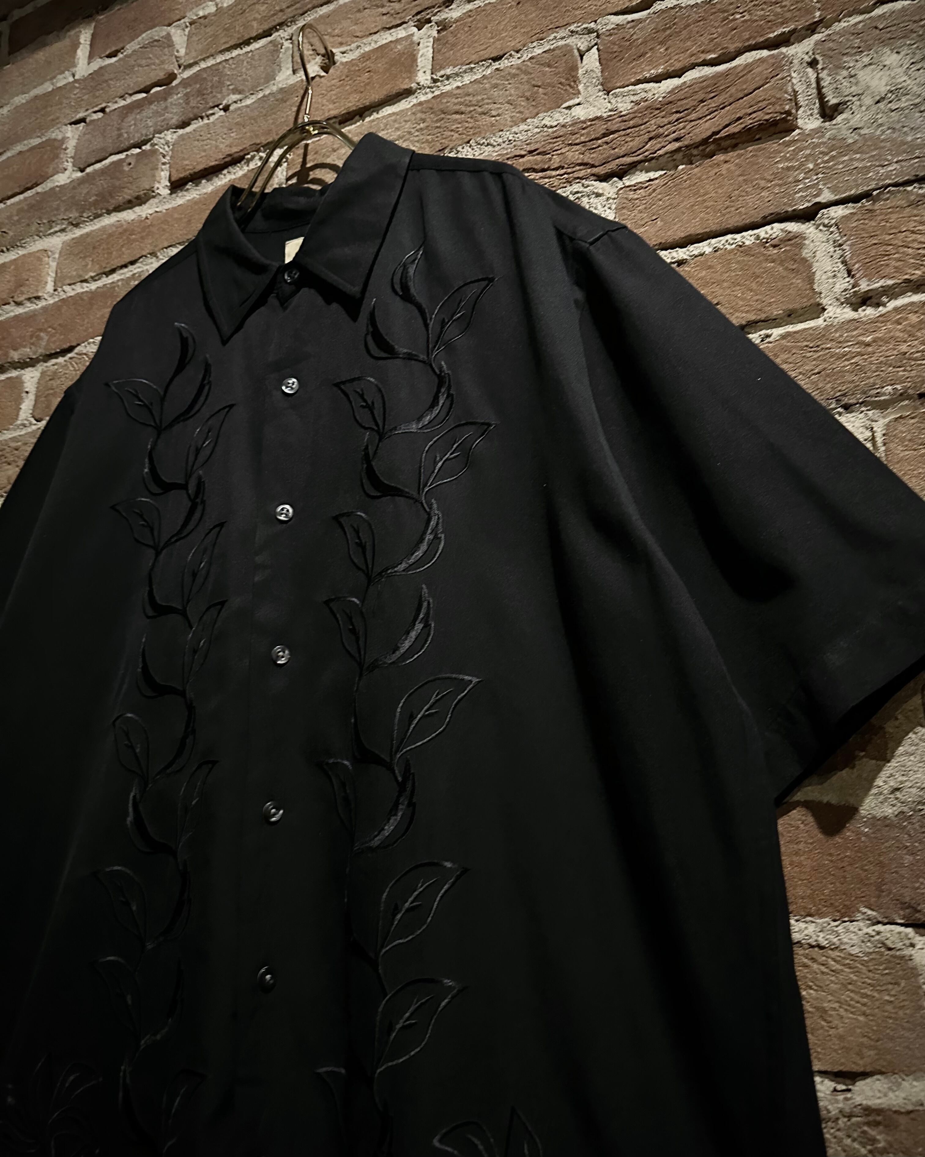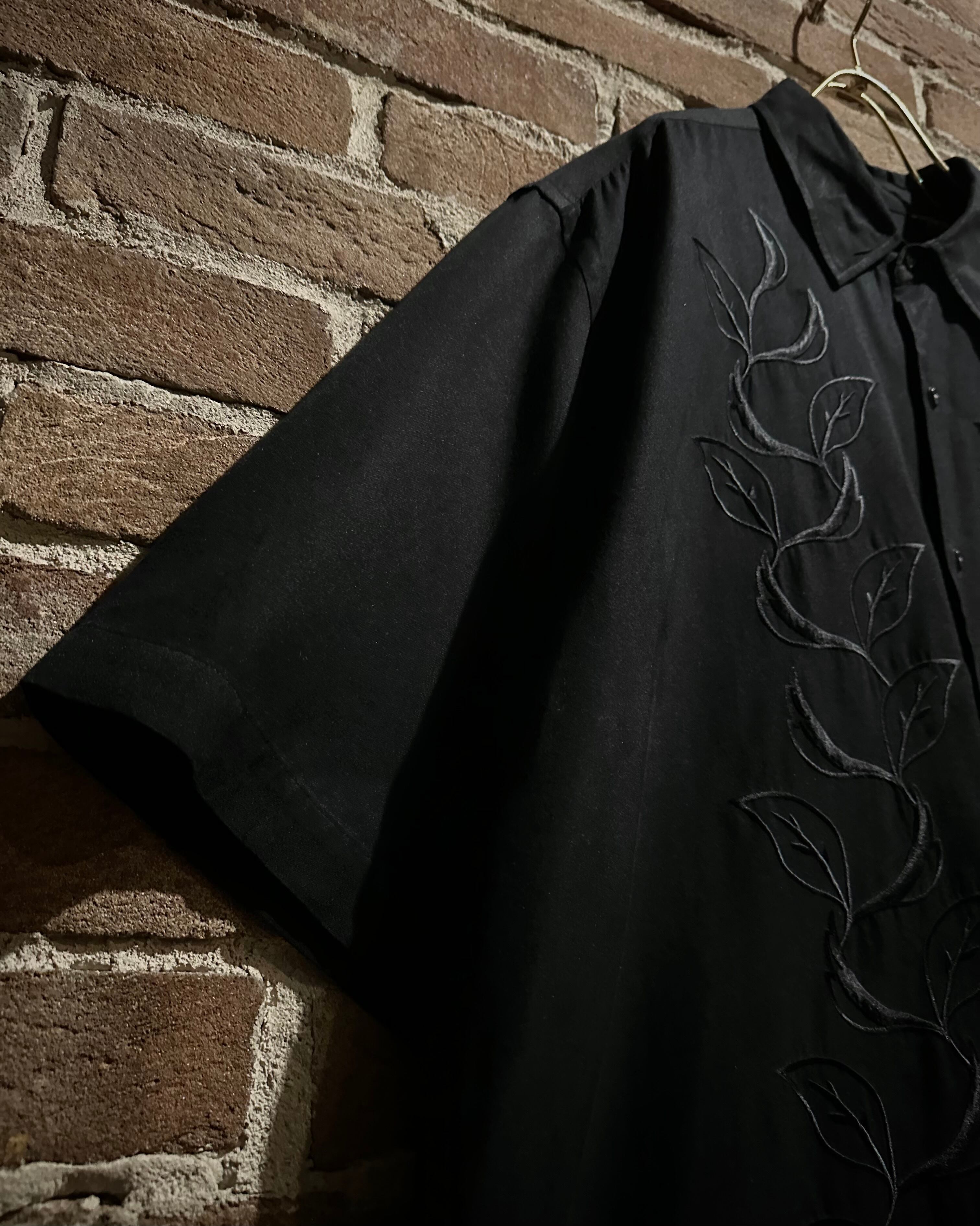 ブラックのボディをベースに、葉の刺繍を刻んだ半袖シャツ。