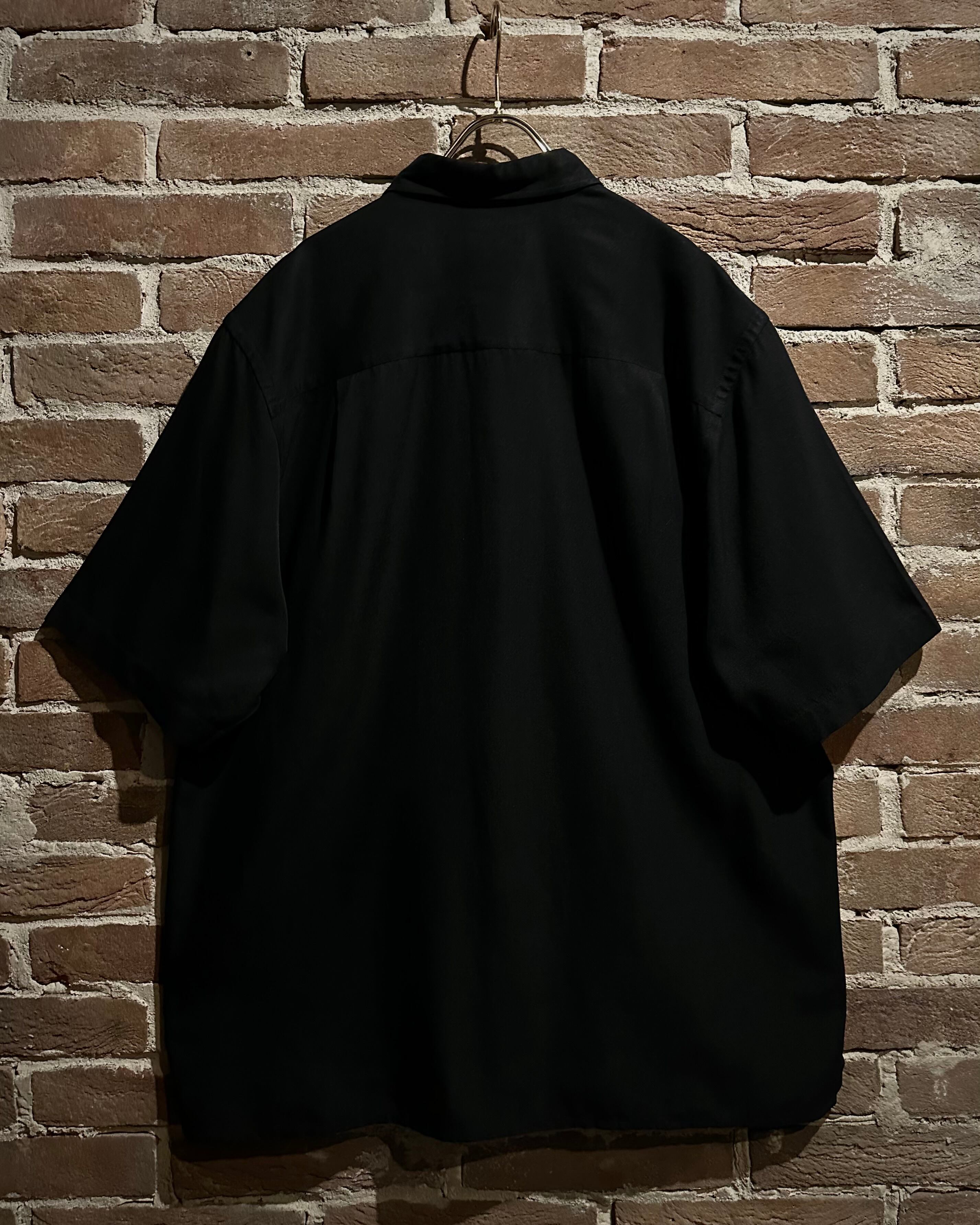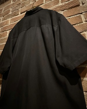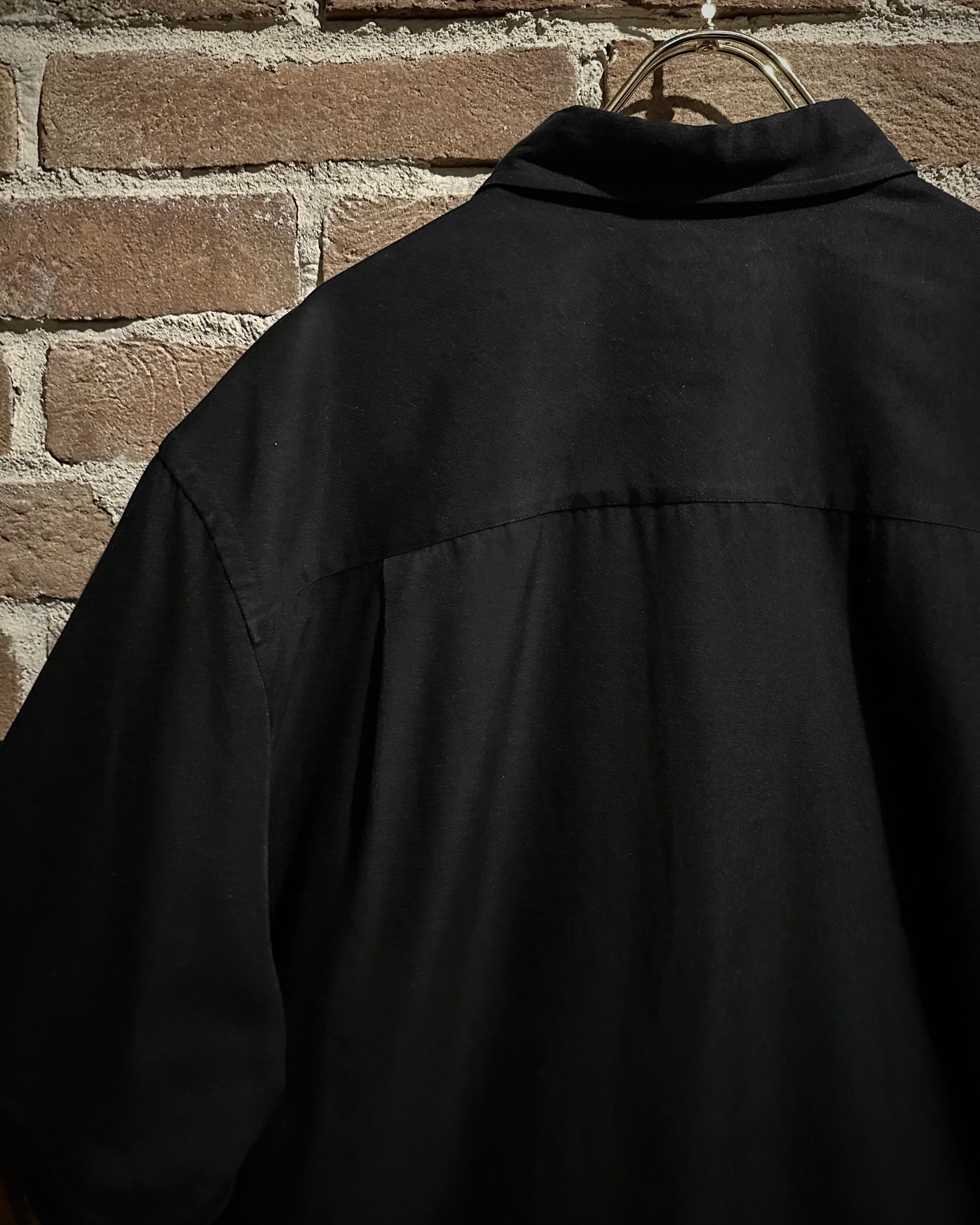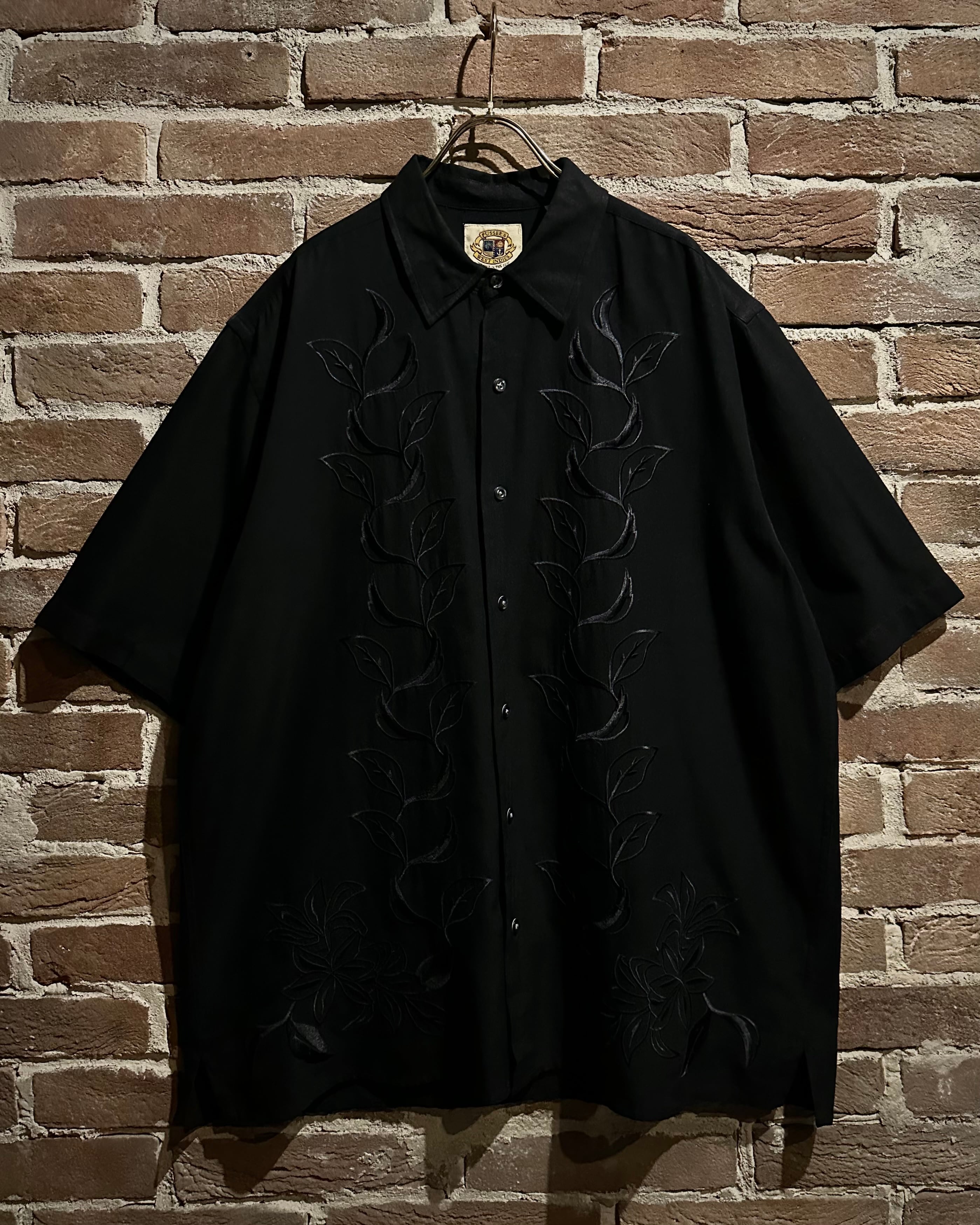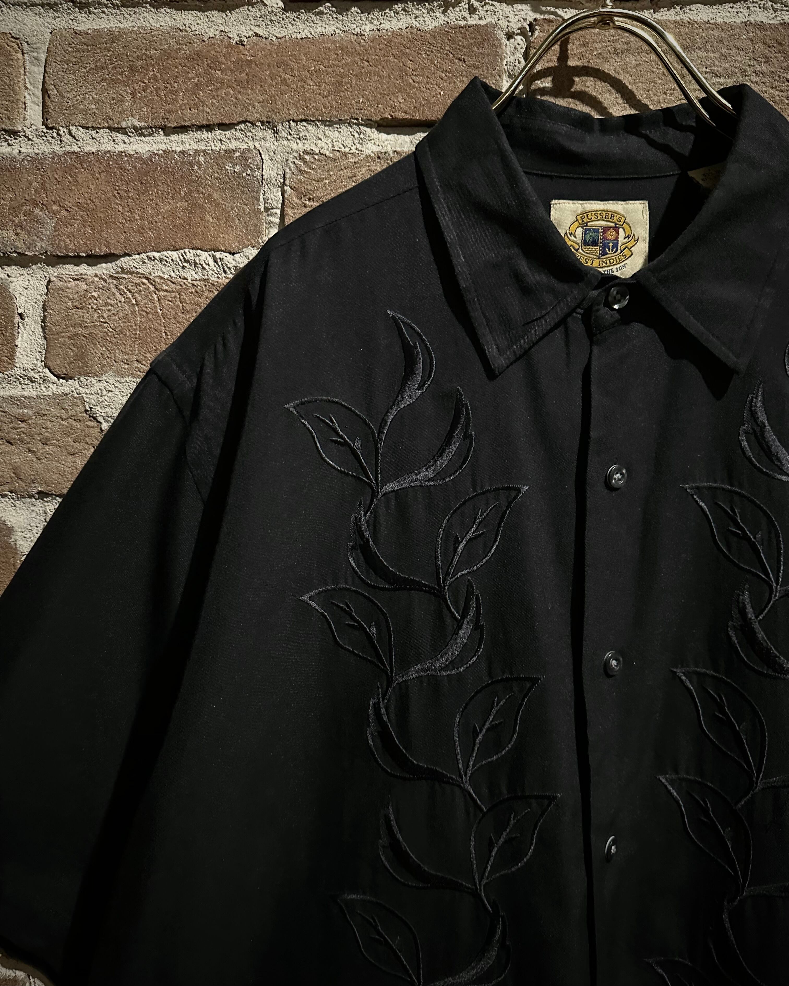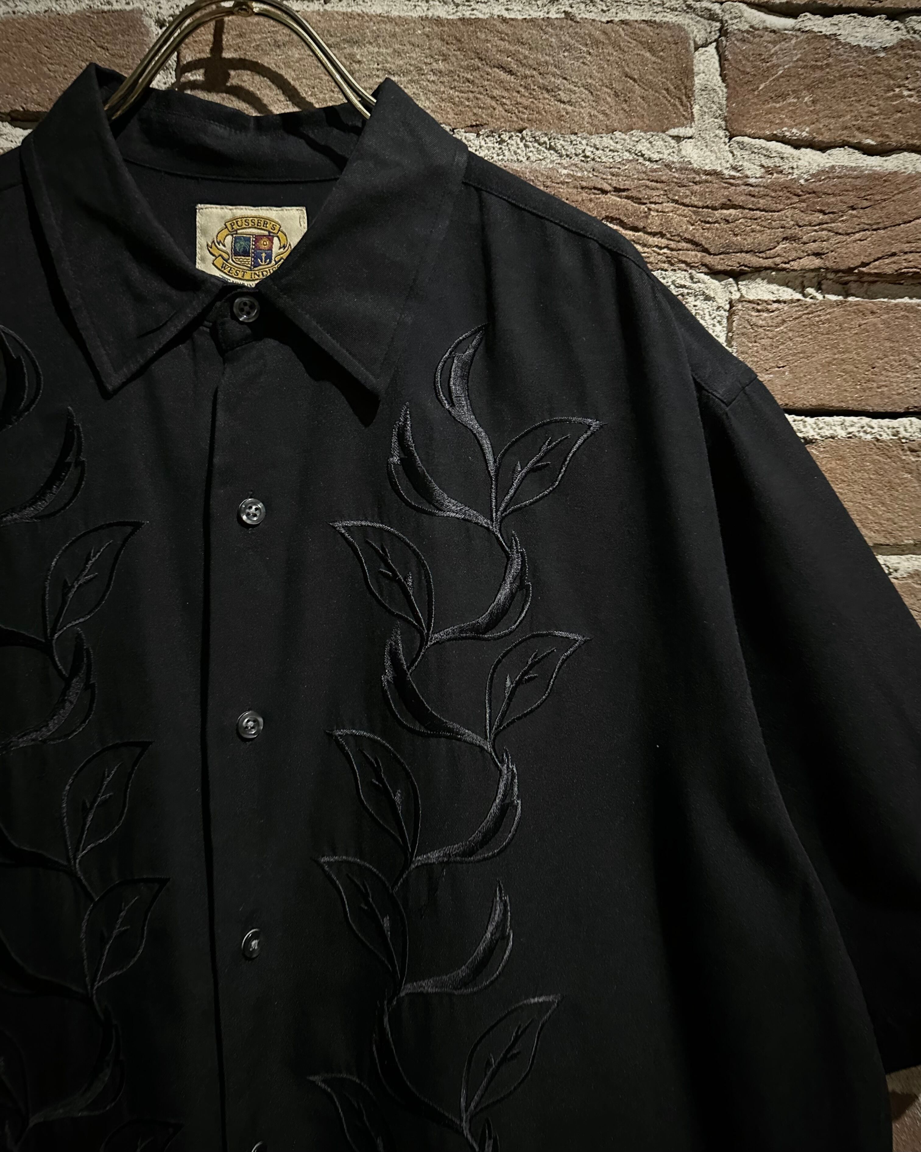 ブラックのボディをベースに、葉の刺繍を刻んだ半袖シャツ。