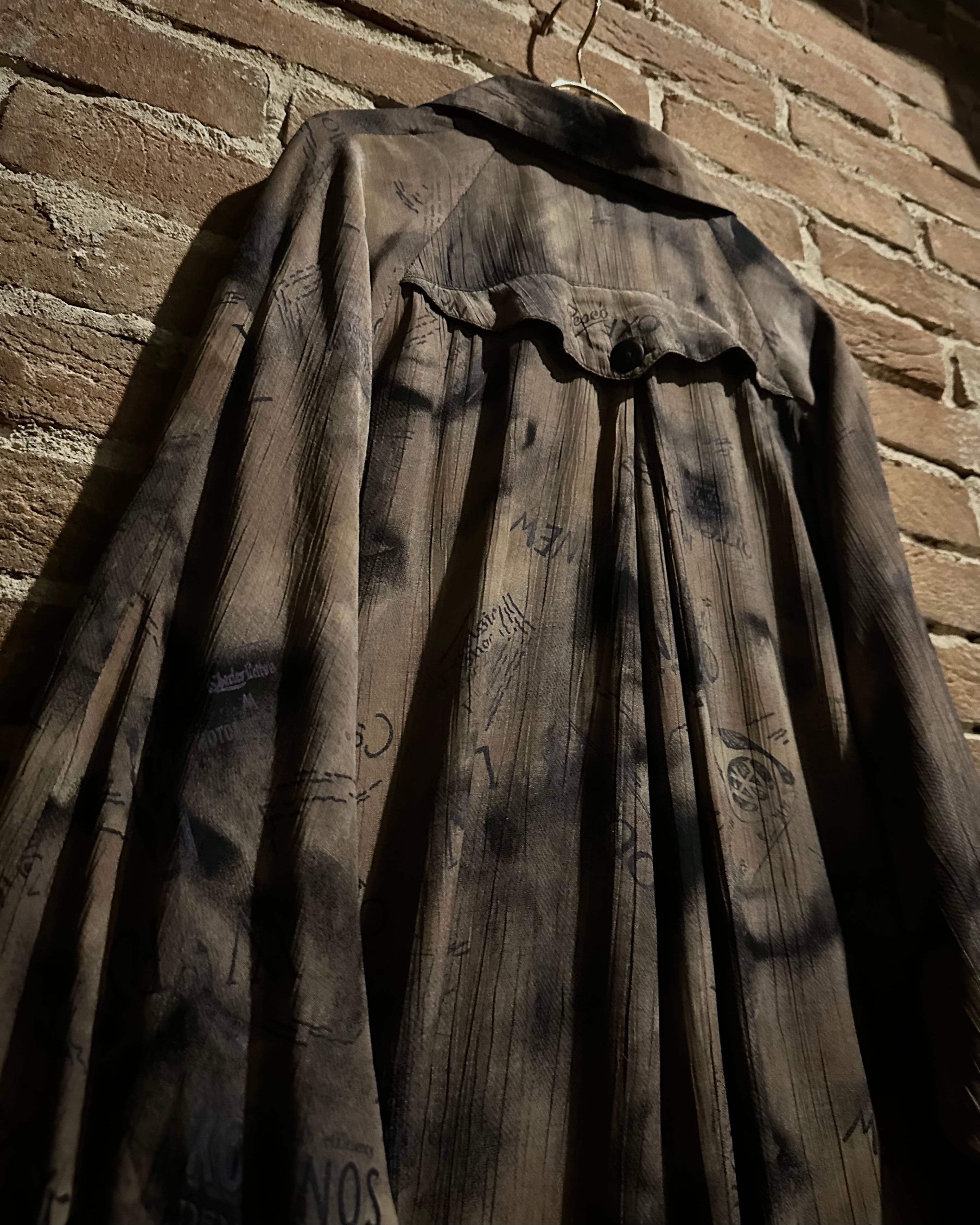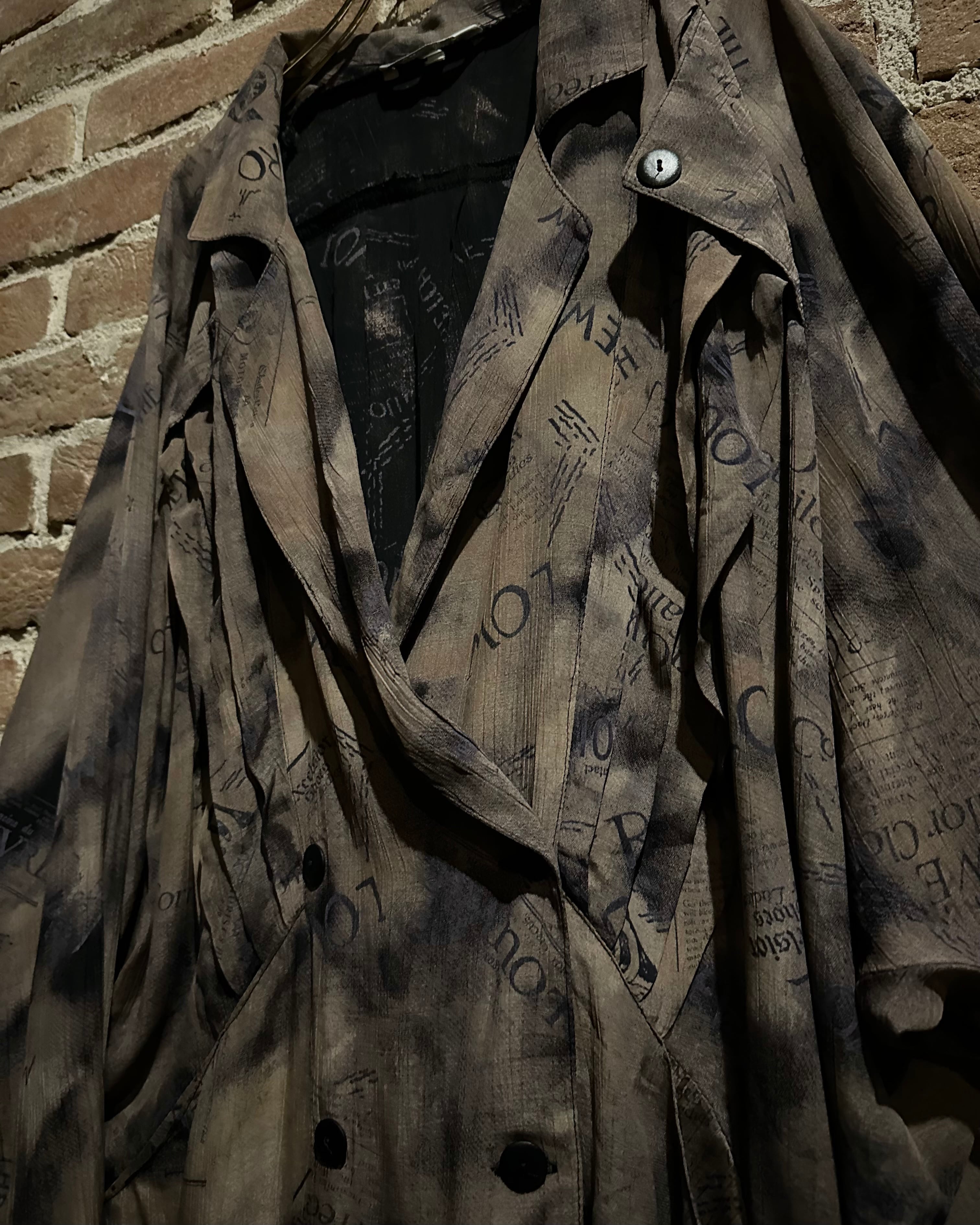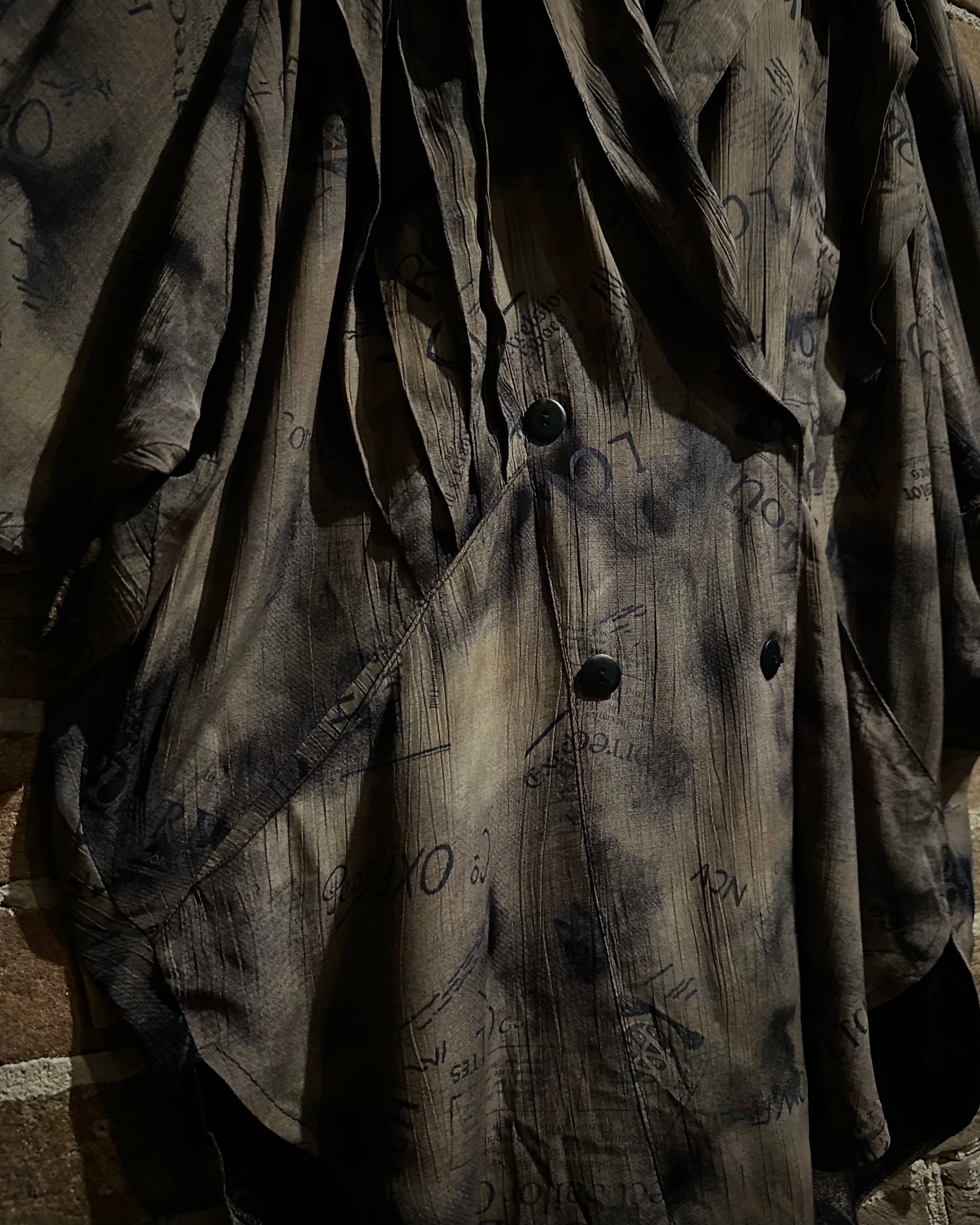 柔らかく滑らかな染め風のボディに、レタリングのデザインを載せたイージーテーラードジャケット。