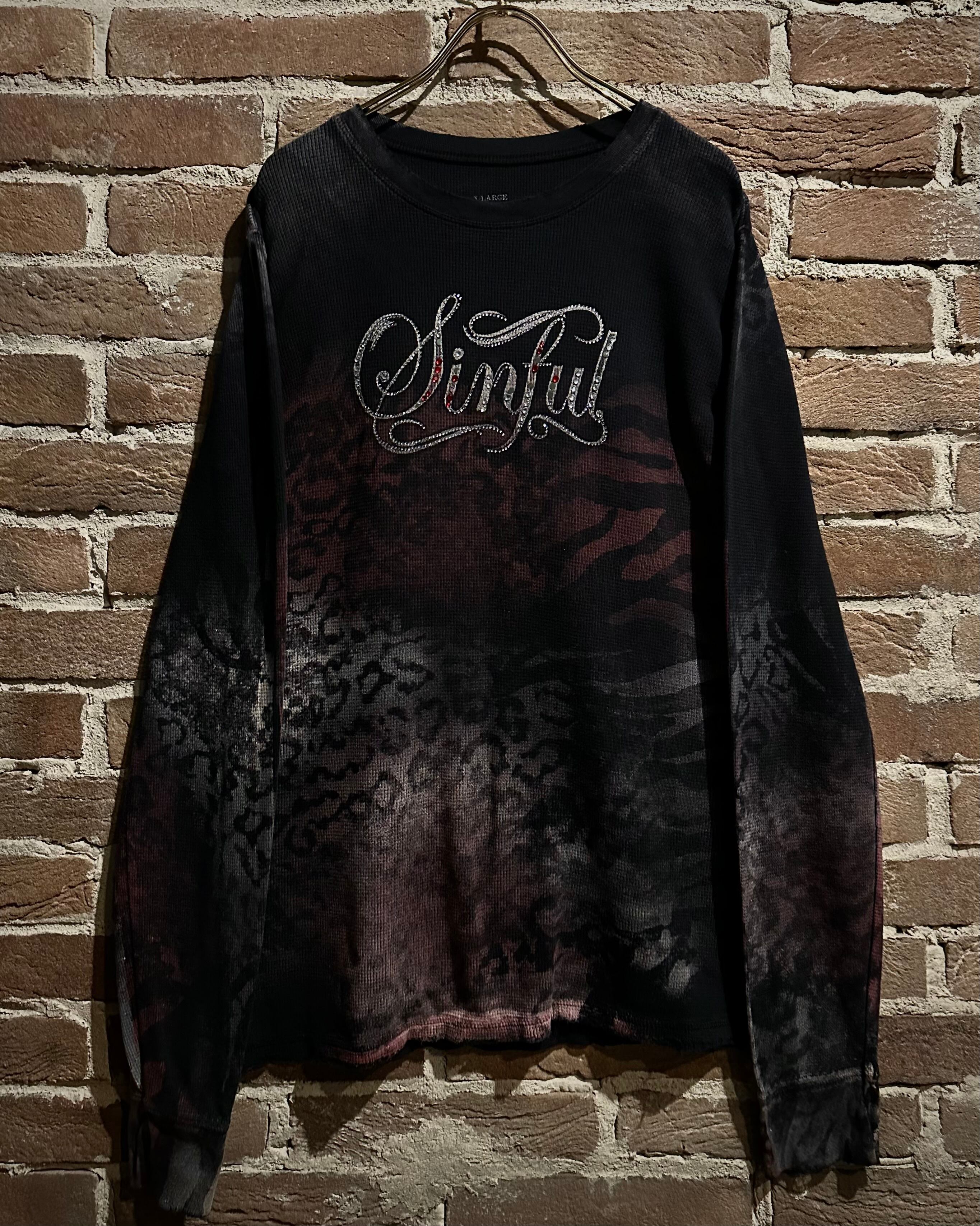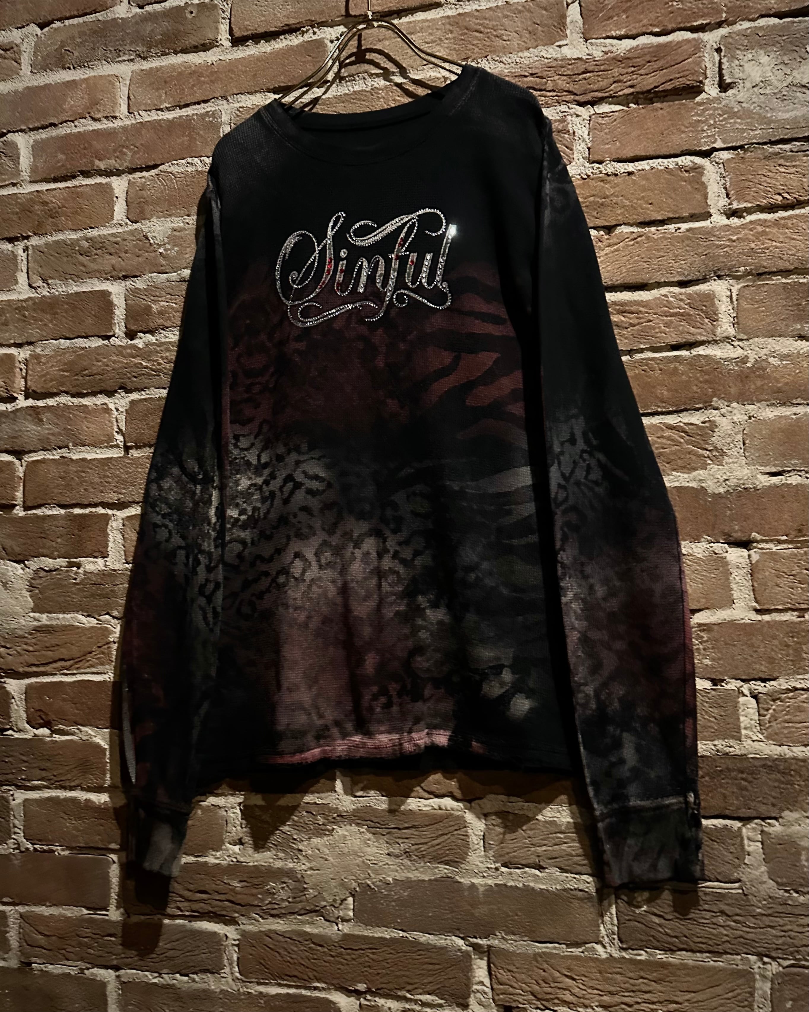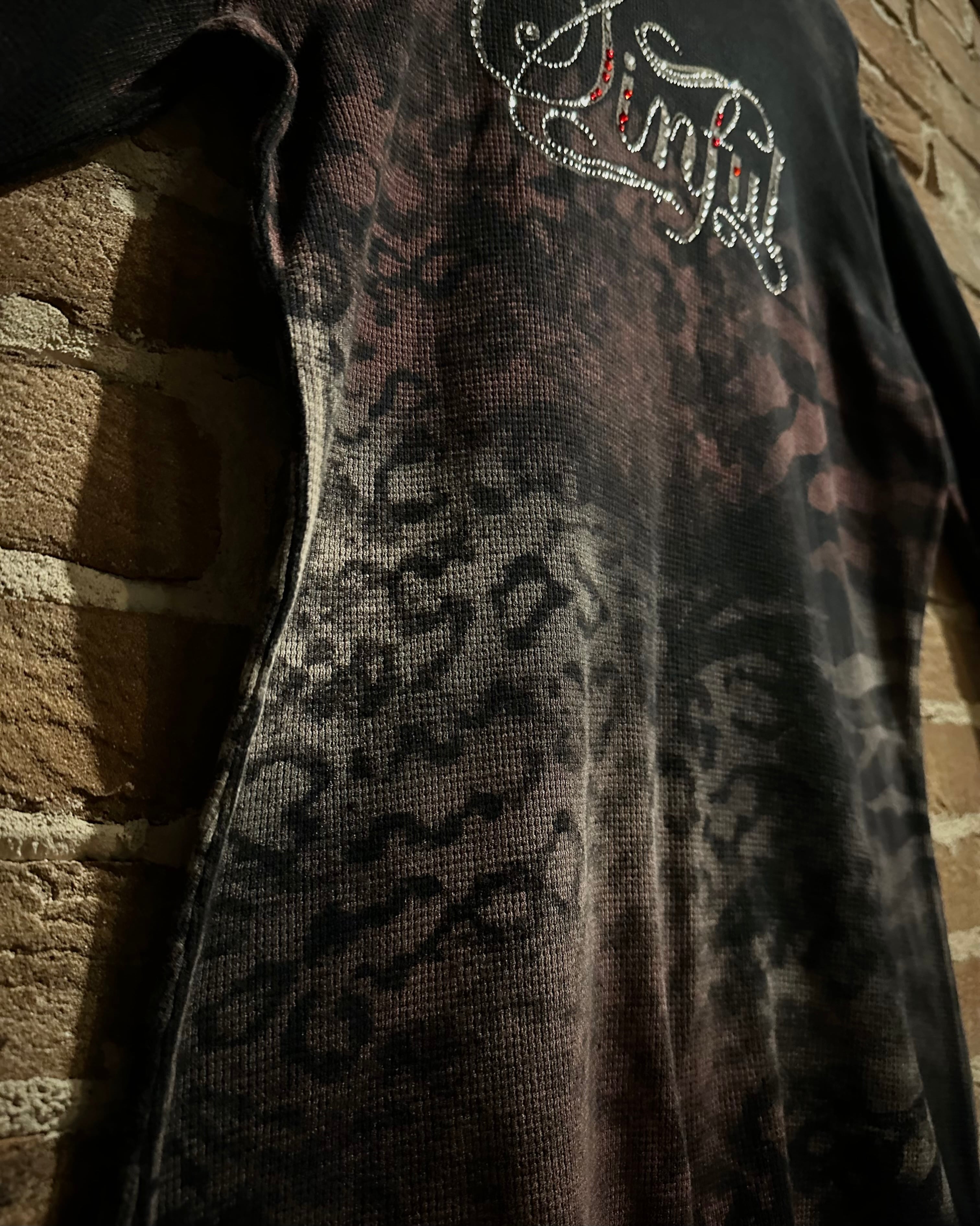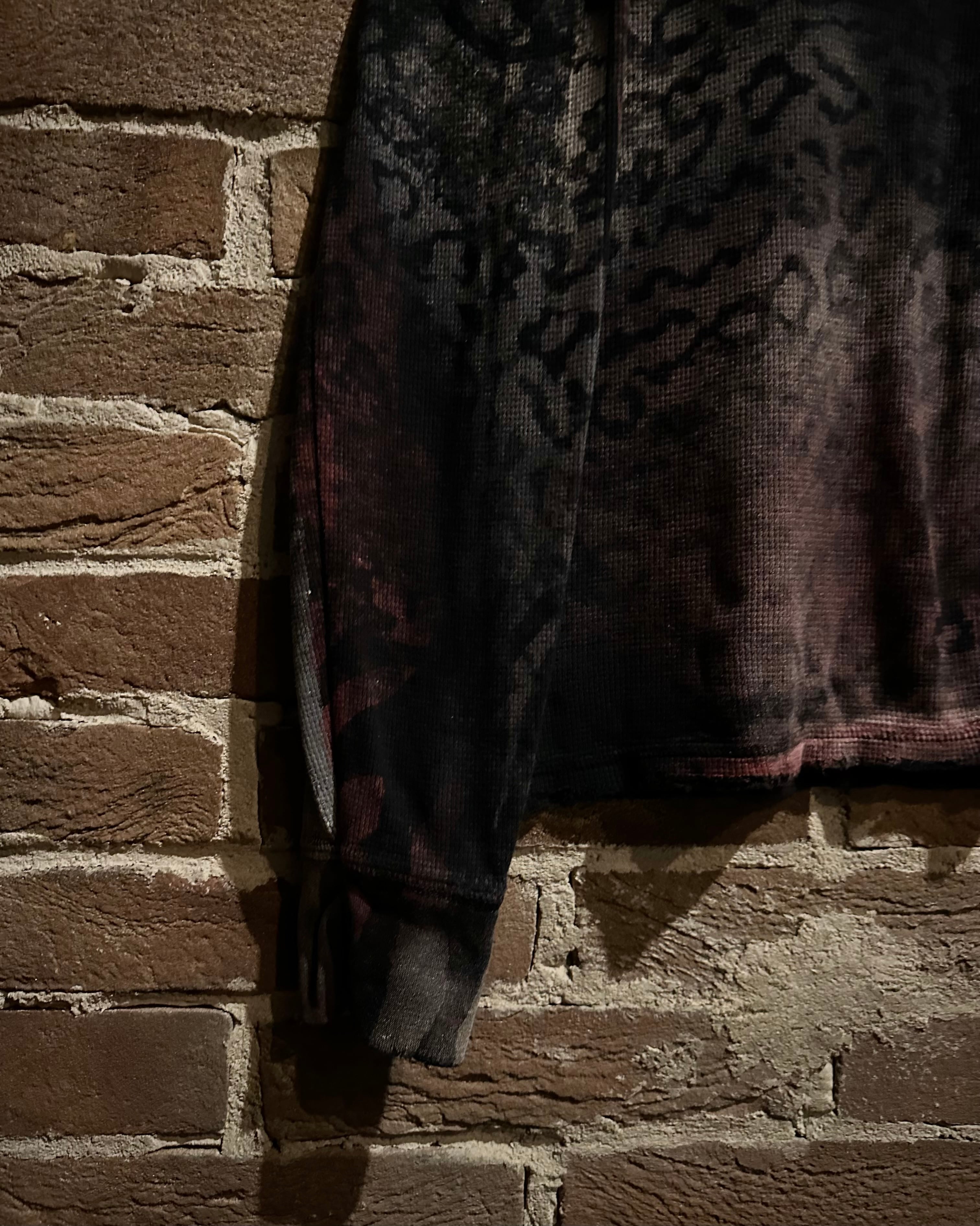 黒、紫のグラデーションがかったボディをベースに、レオパードとゼブラ柄などのアニマル柄を載せたサーマルロンT。