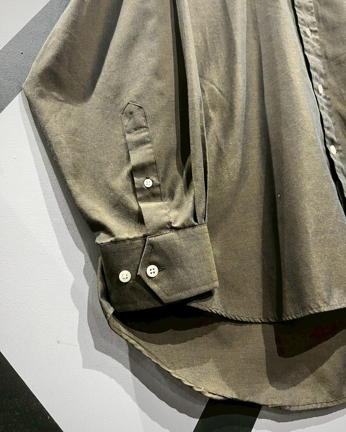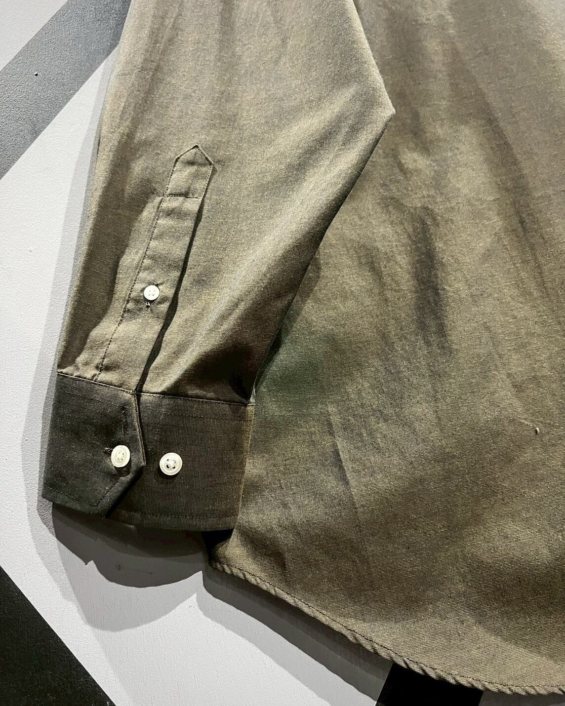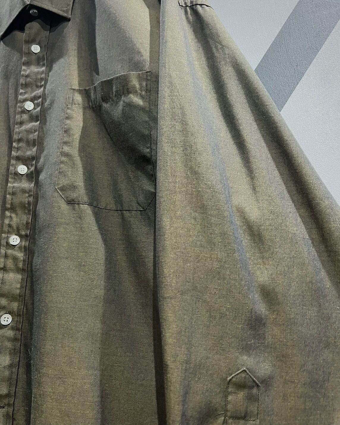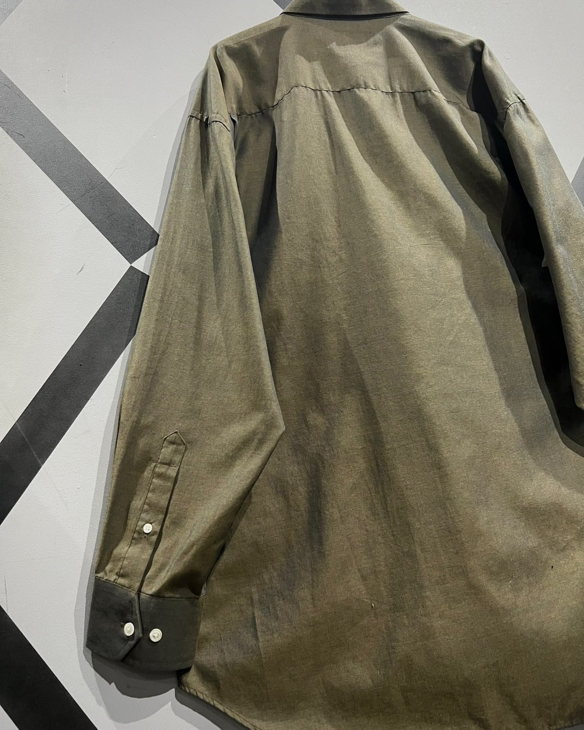 オーロラのように、見る角度によって色の移り変わる"玉虫色"のボディーが美しさを放つ長袖シャツ。