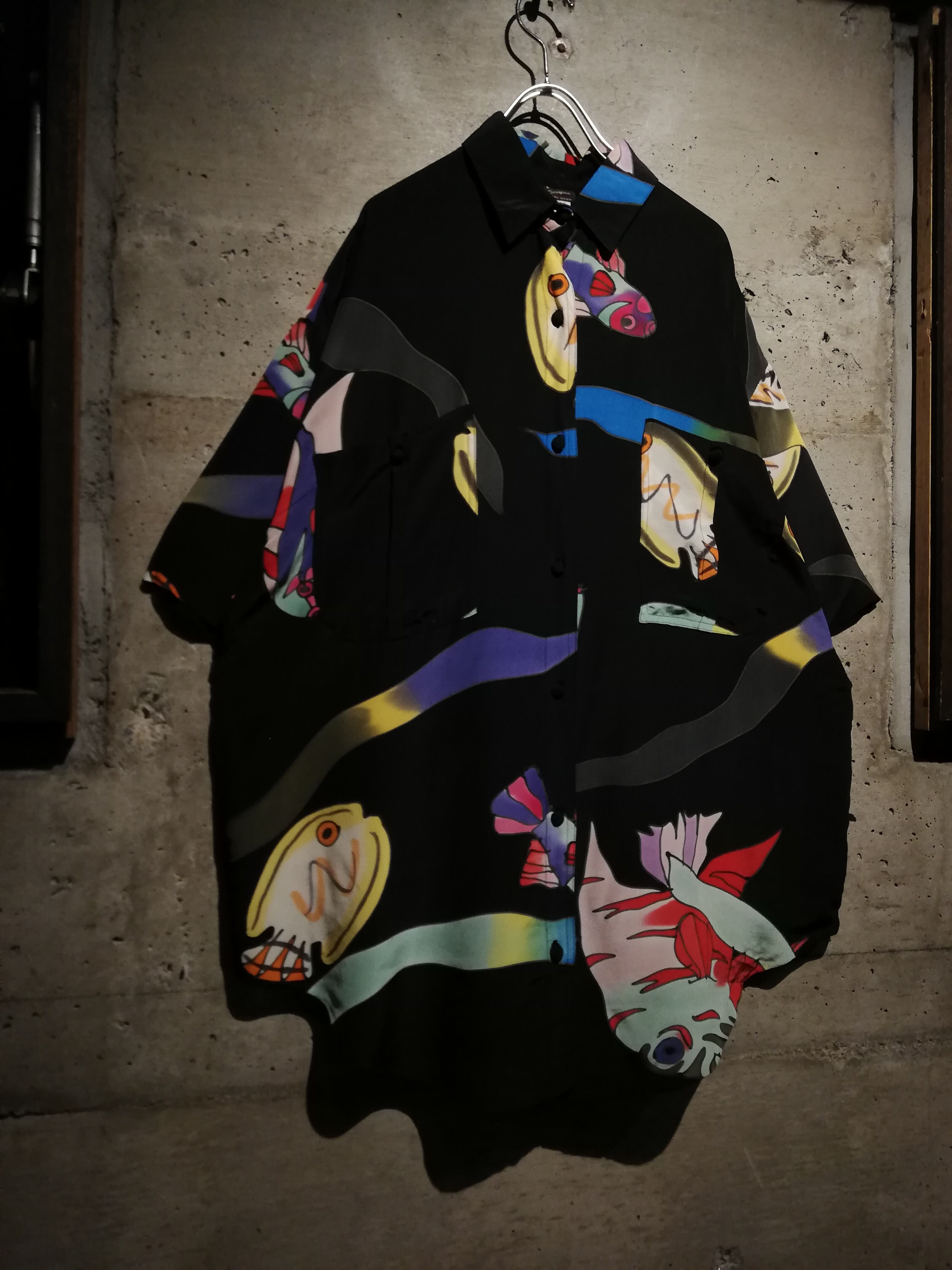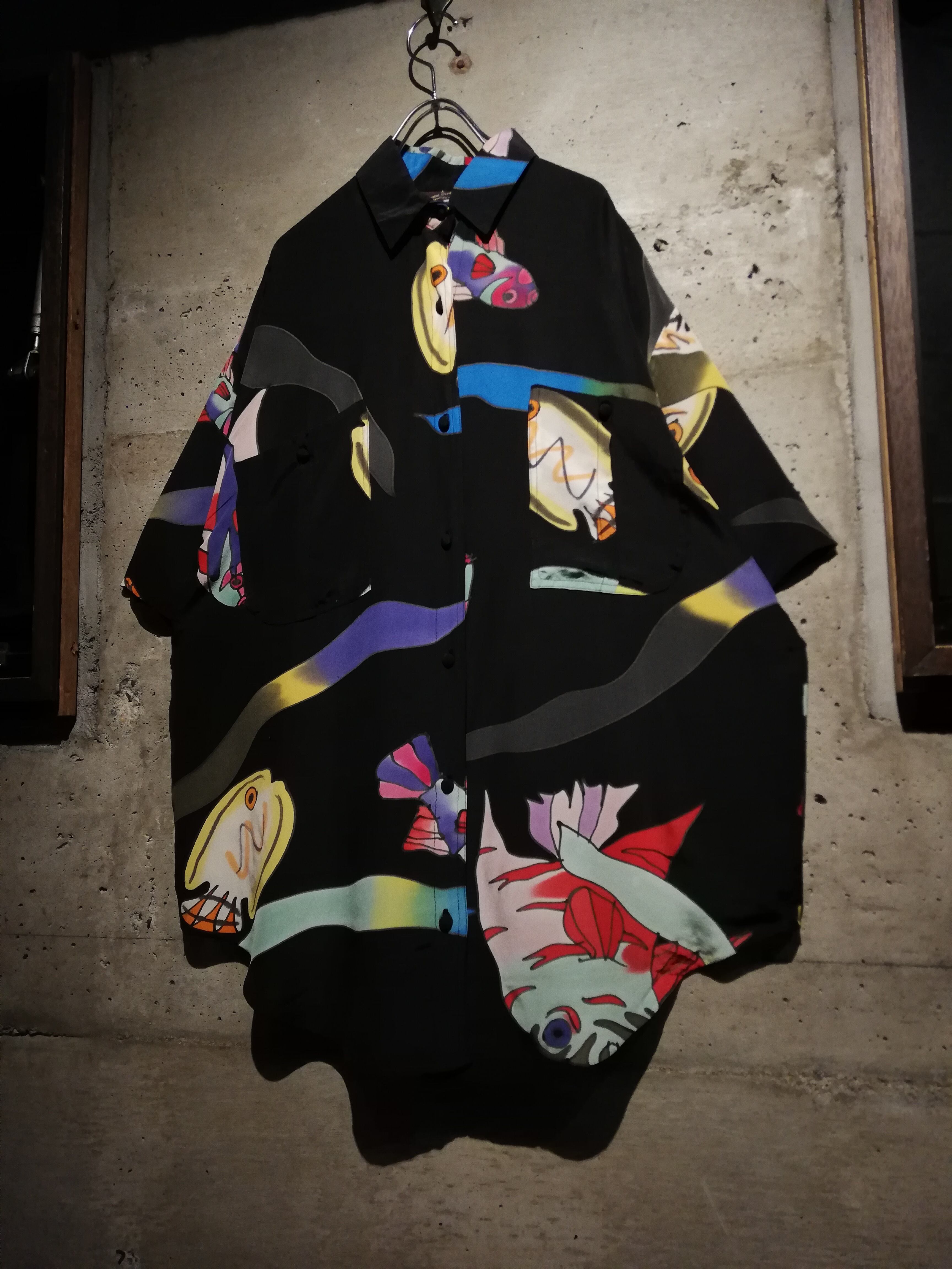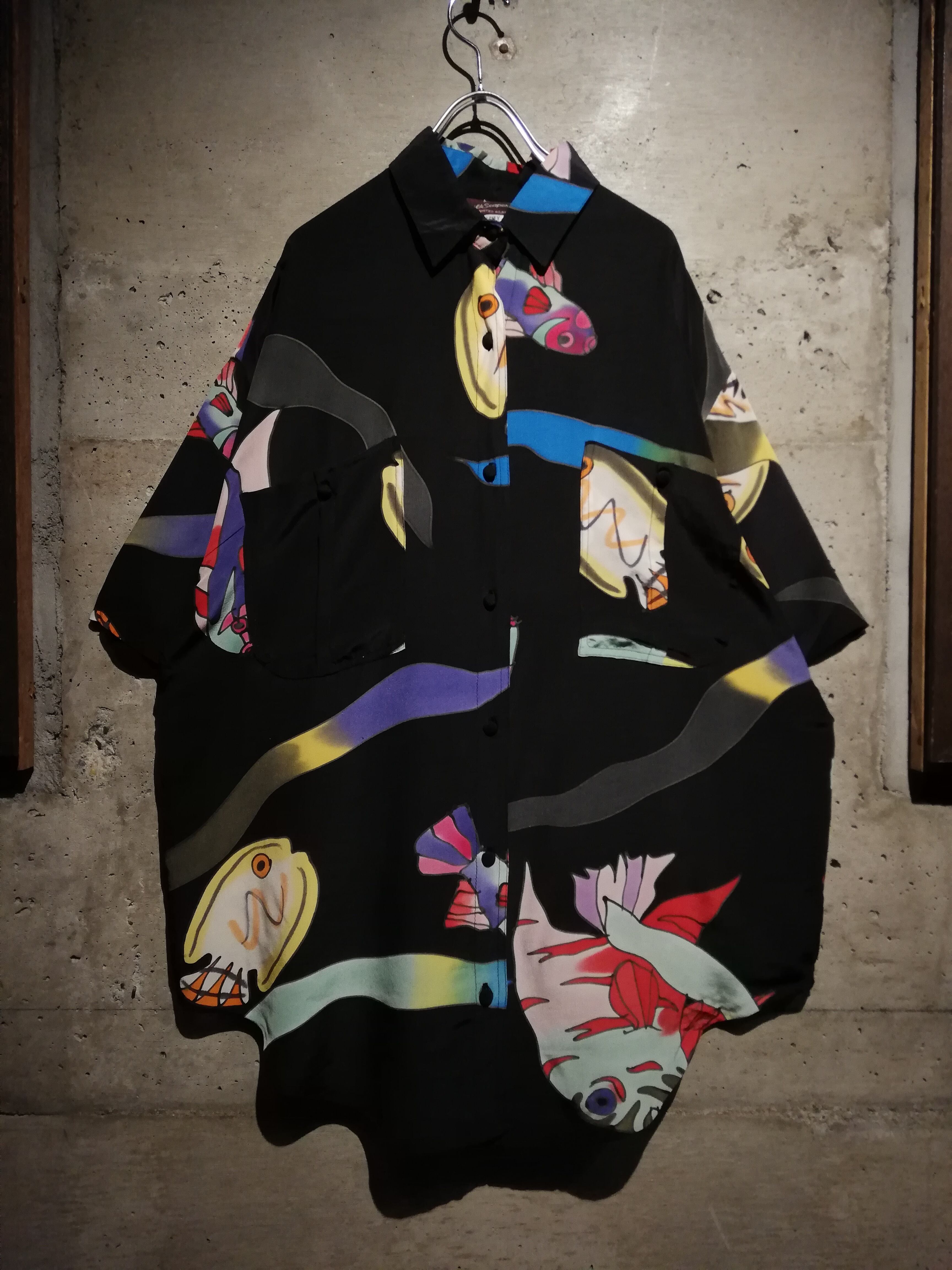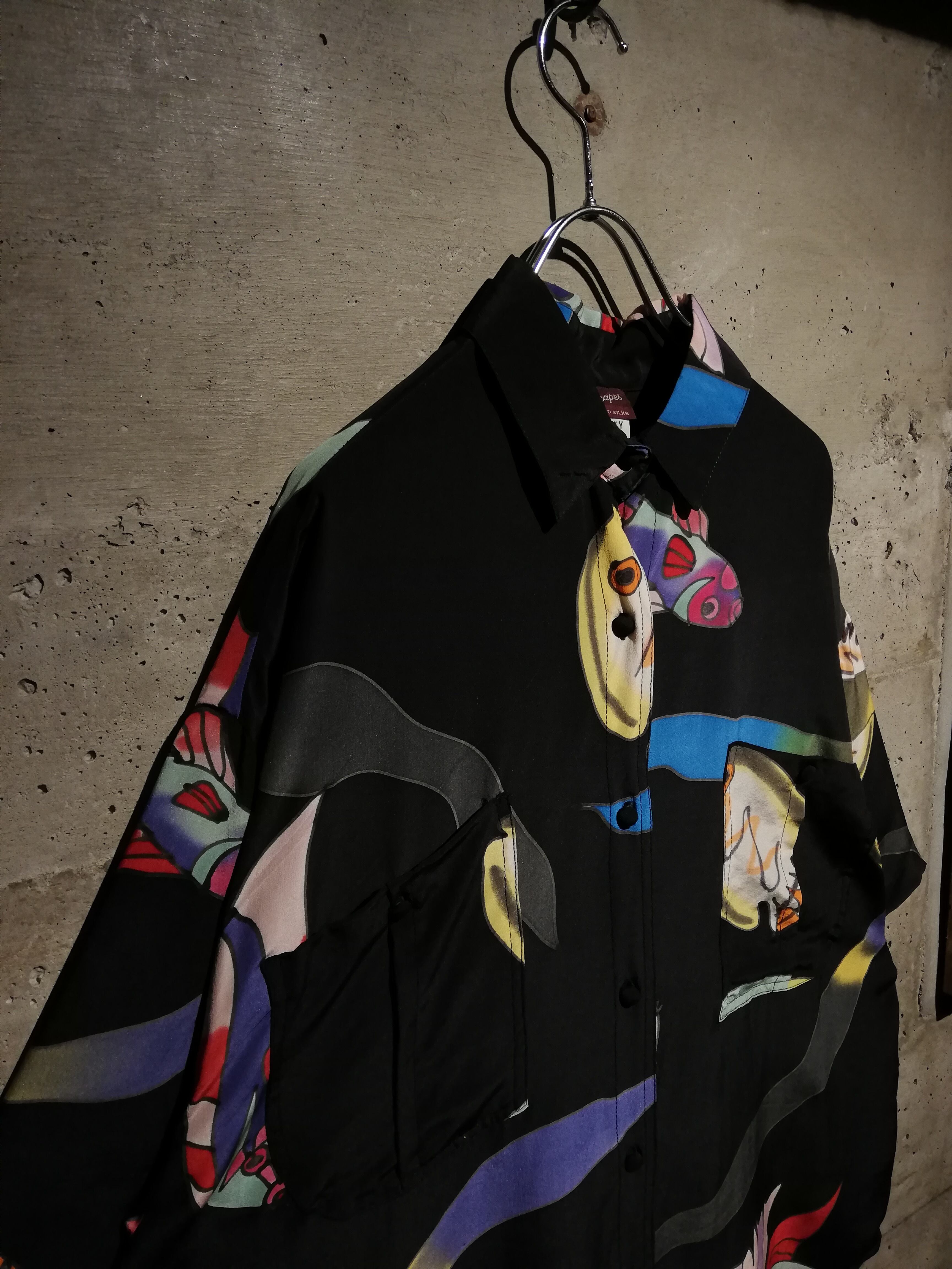 フワッとエアリーなシルクを用いたボディに、魚のデザインを載せた半袖シャツ。
