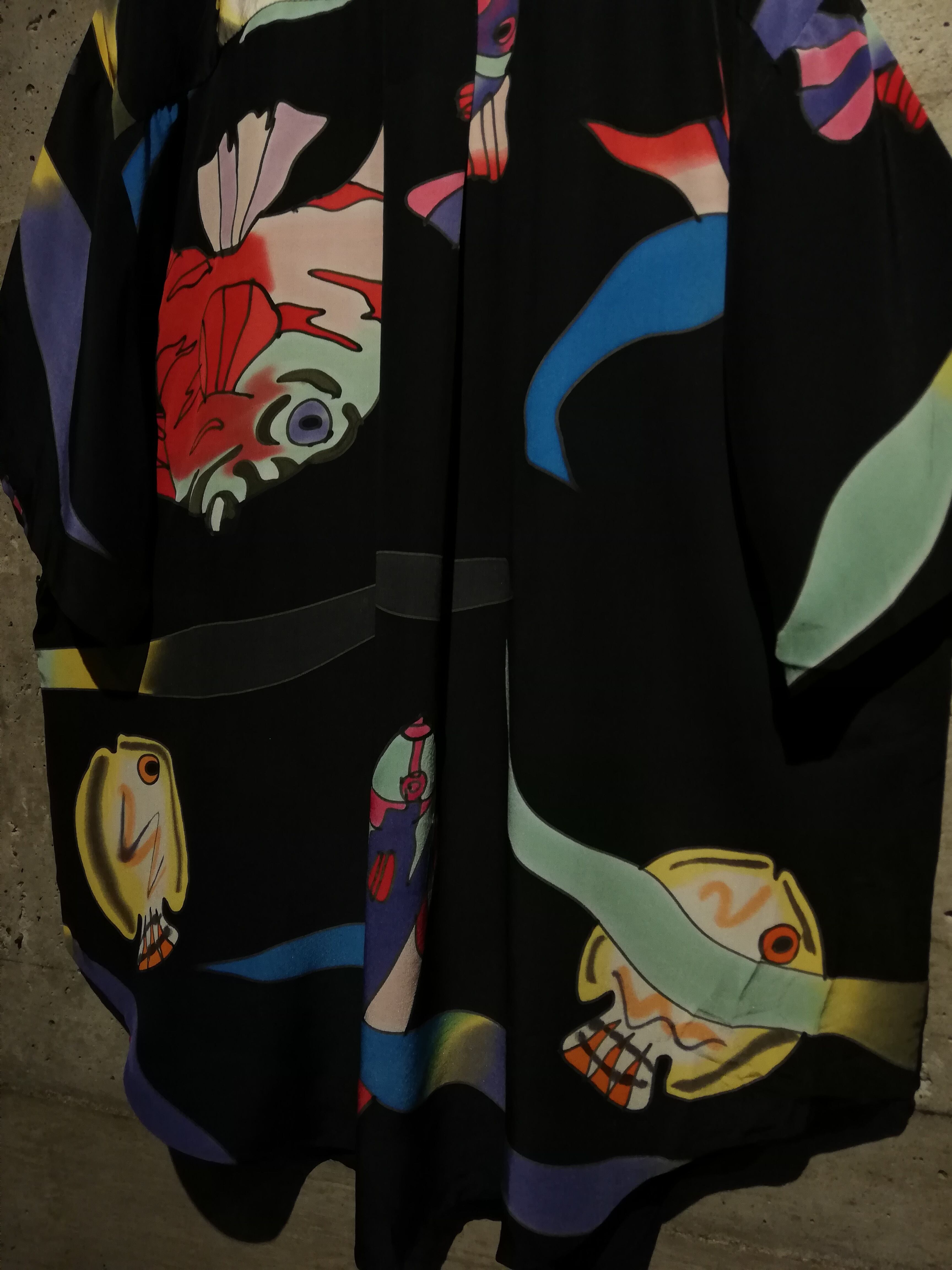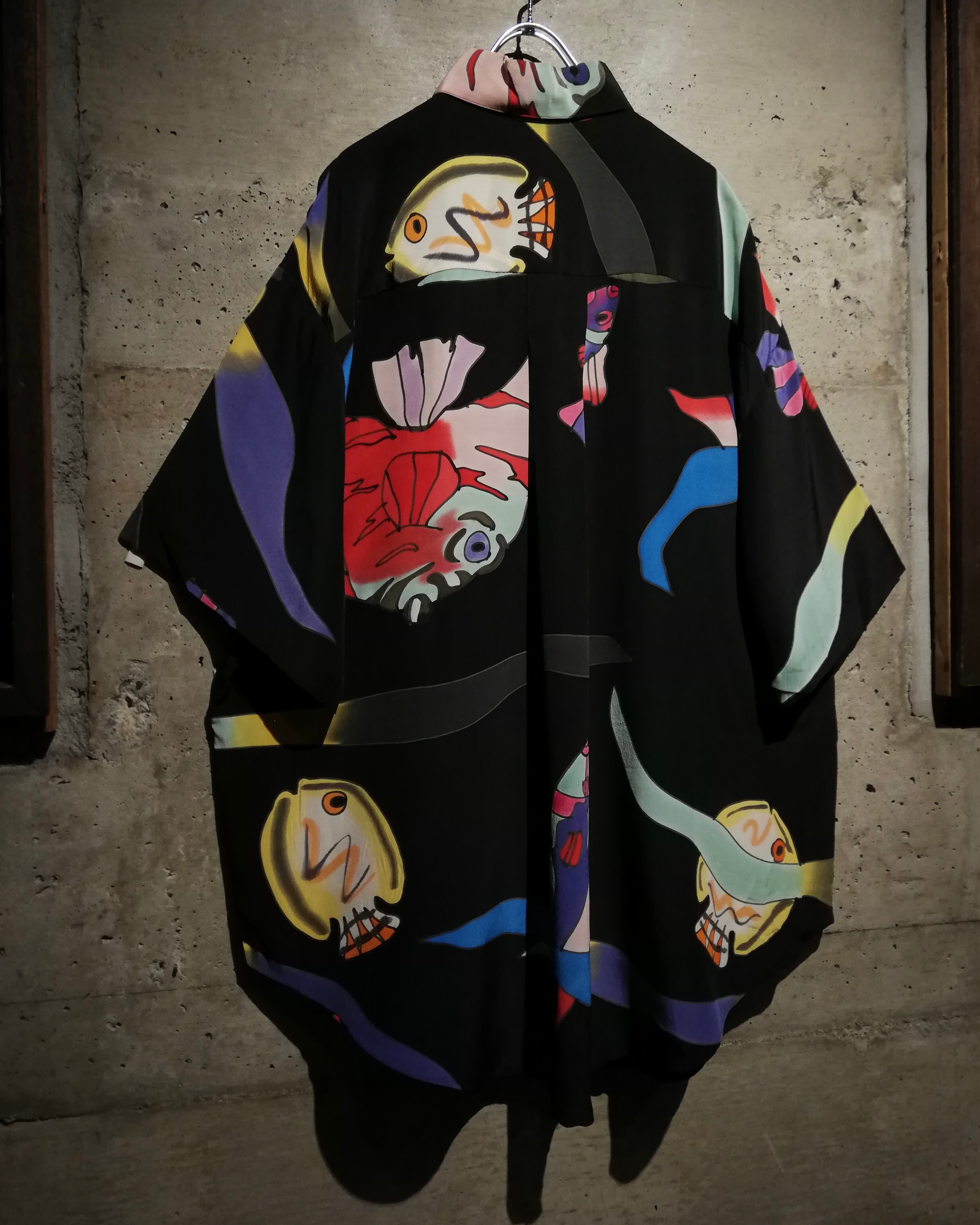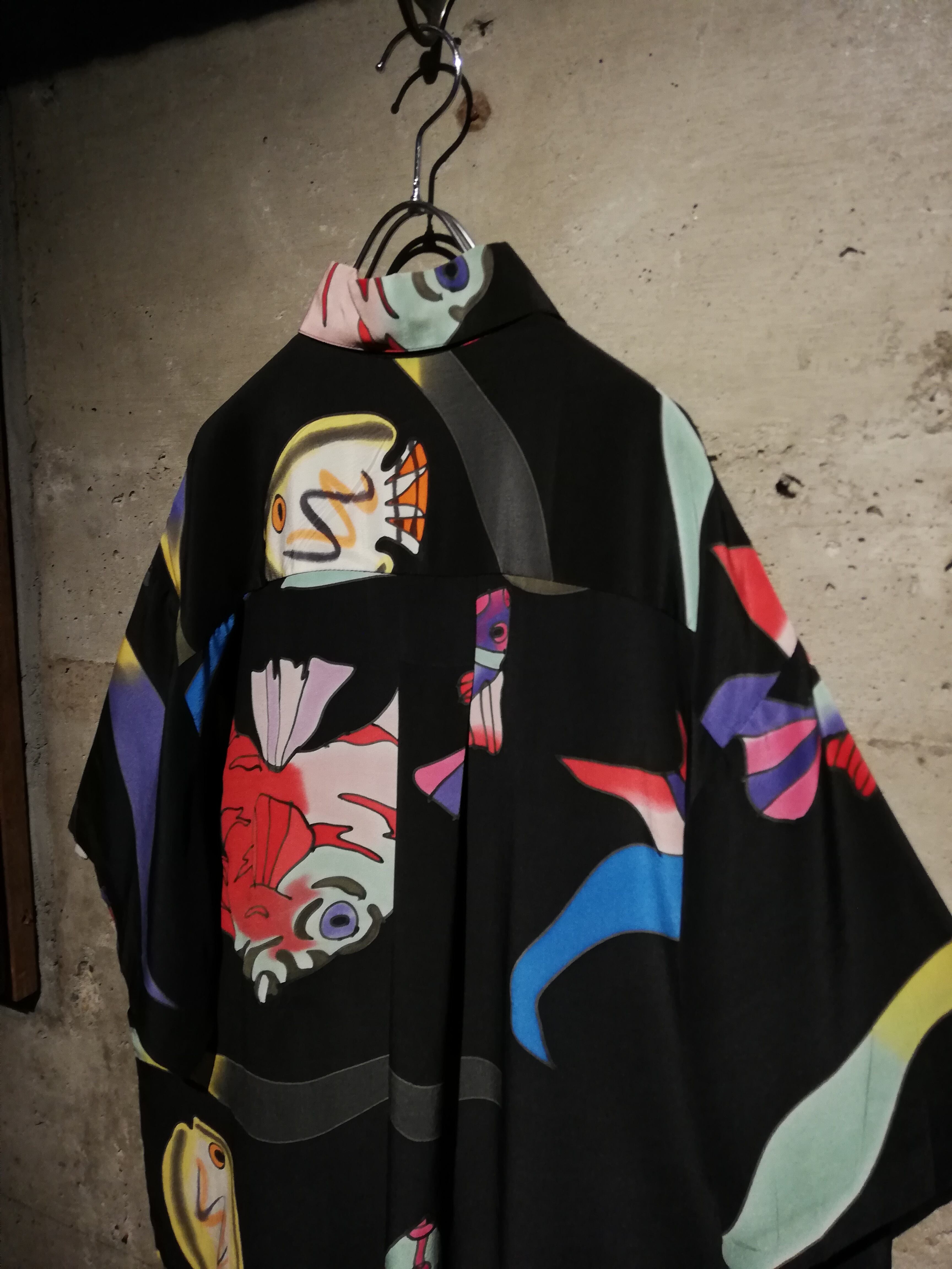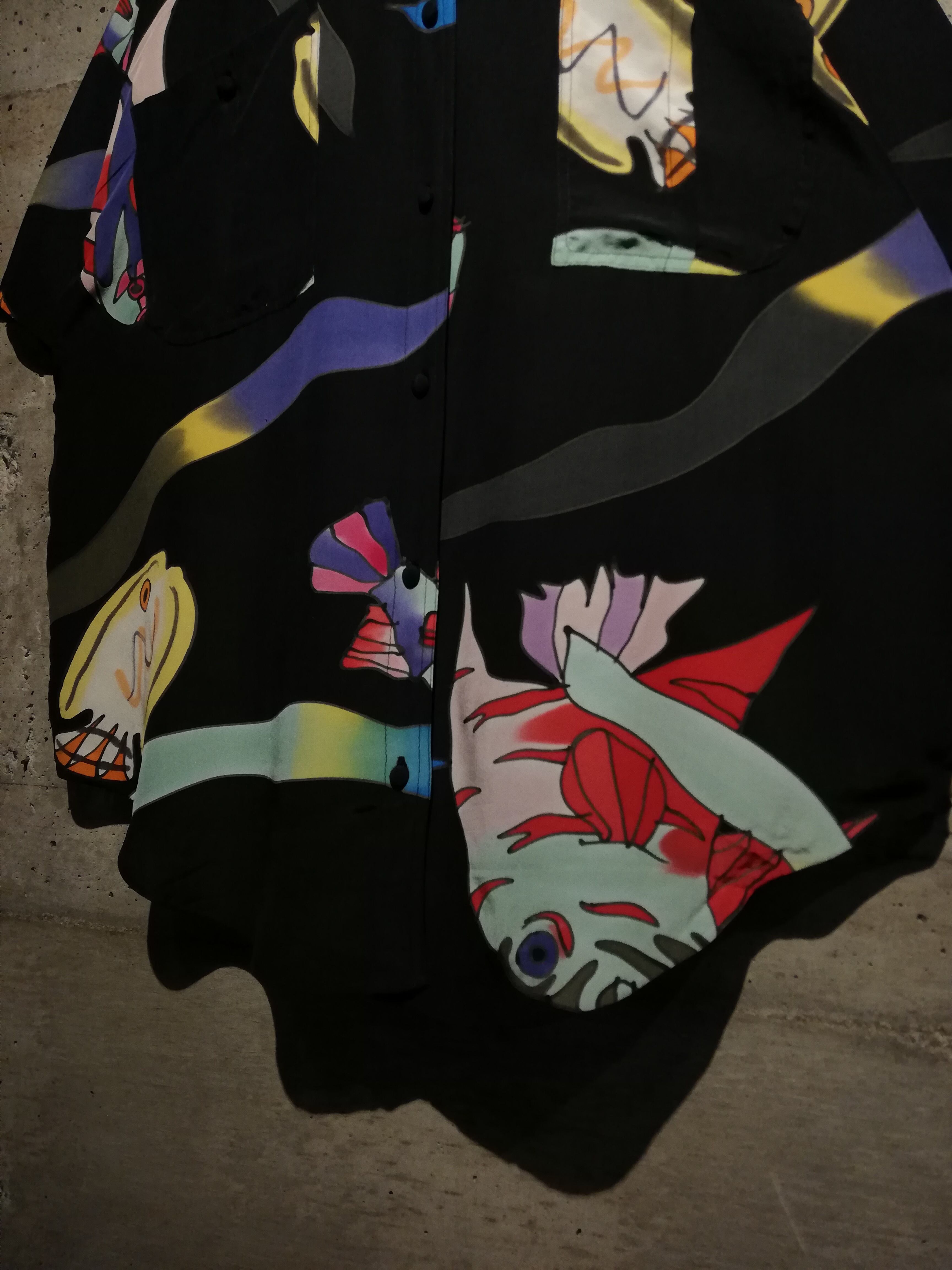 フワッとエアリーなシルクを用いたボディに、魚のデザインを載せた半袖シャツ。