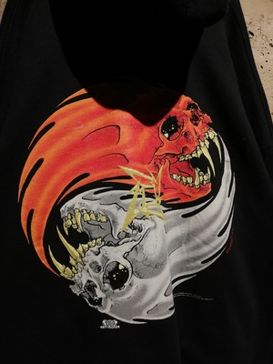 ボディの前後に、MISFITS、エクスプロイテッド、COCOBATなどのメタル、パンク、ハードコアバンドやスケ―トボードのアートワークを手掛けるイラストレーター"PUSHEAD"が手掛けたスカルのイラスト。パスヘッドが描くスカルはやはりめちゃくちゃイケてますね、、、