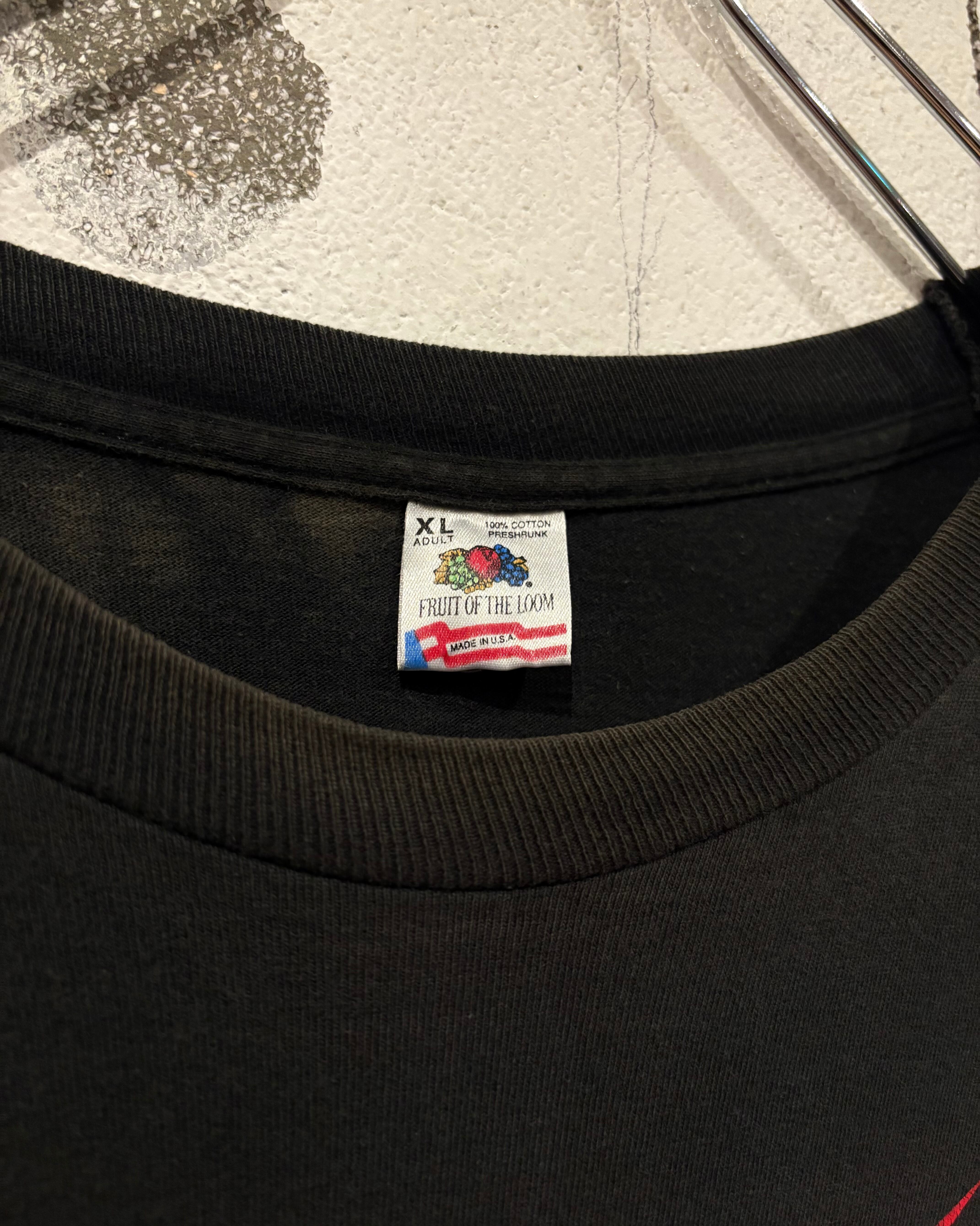 FRUIT OF THE LOOMタグ、袖裾共にシングルステッチの90's、USA製ボディ。XLのルーズなサイジングで着用時のシルエットも◎