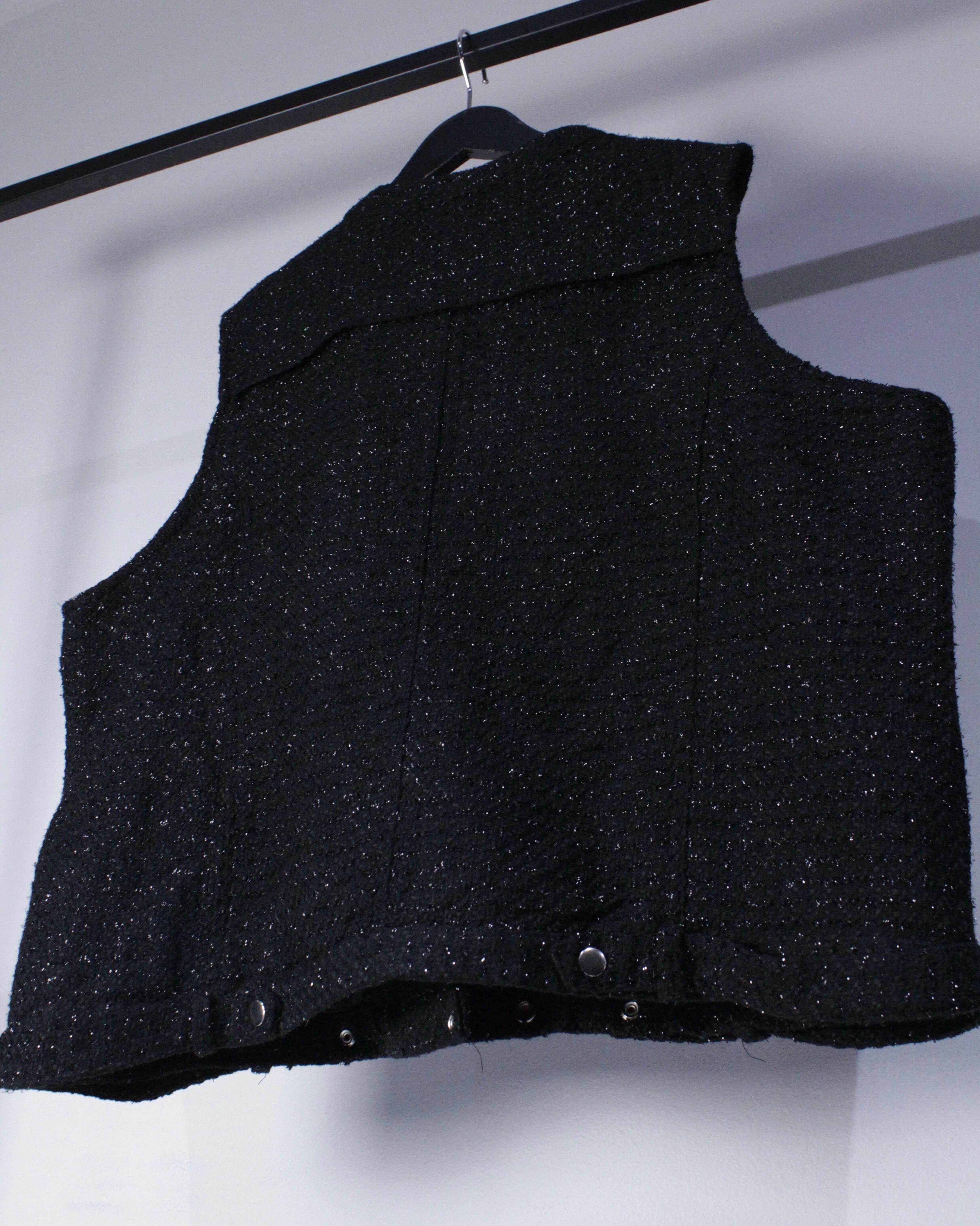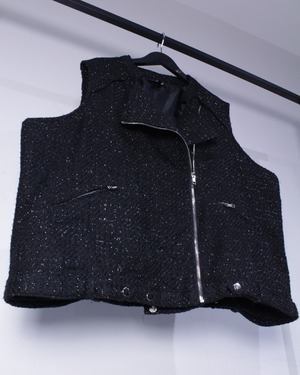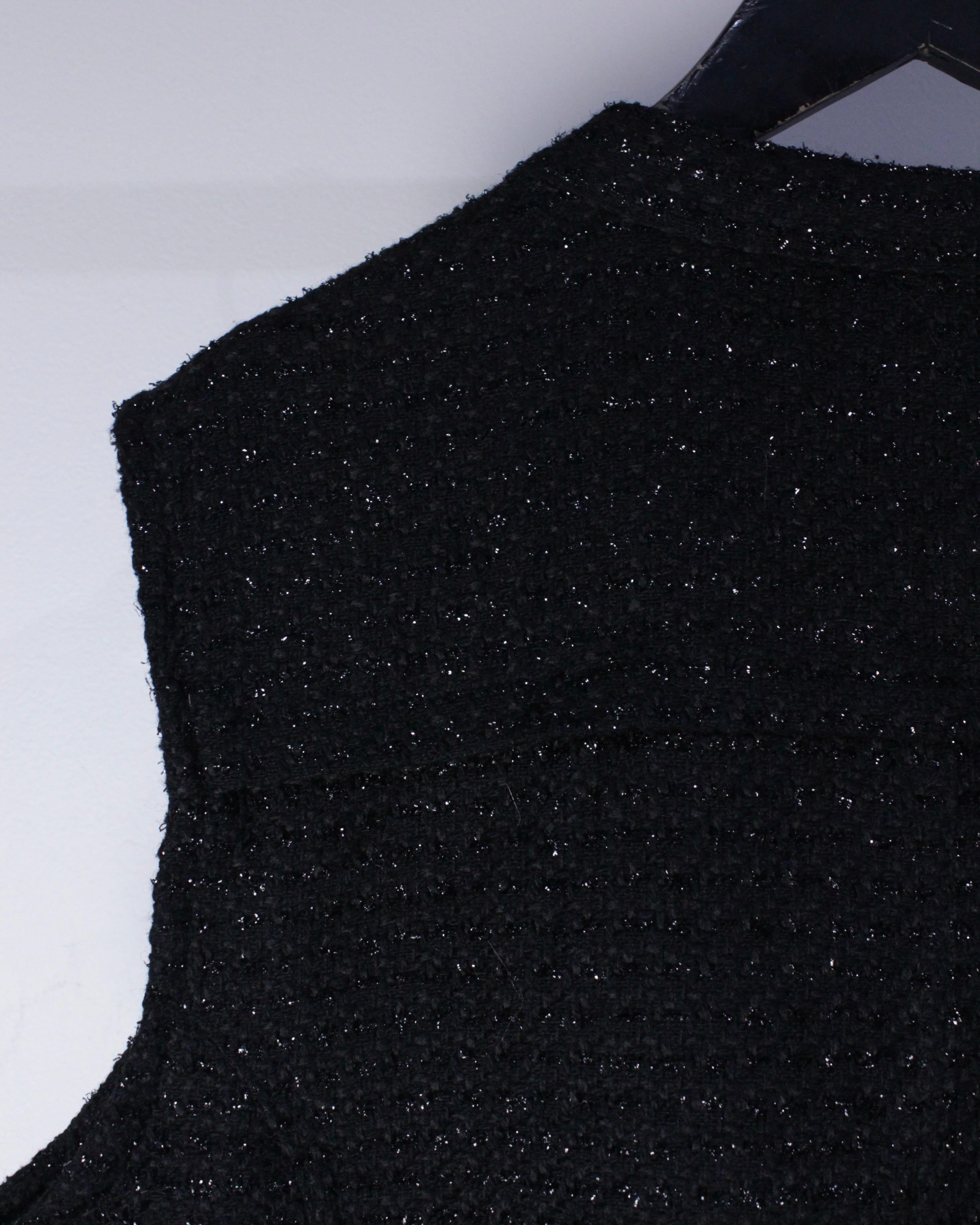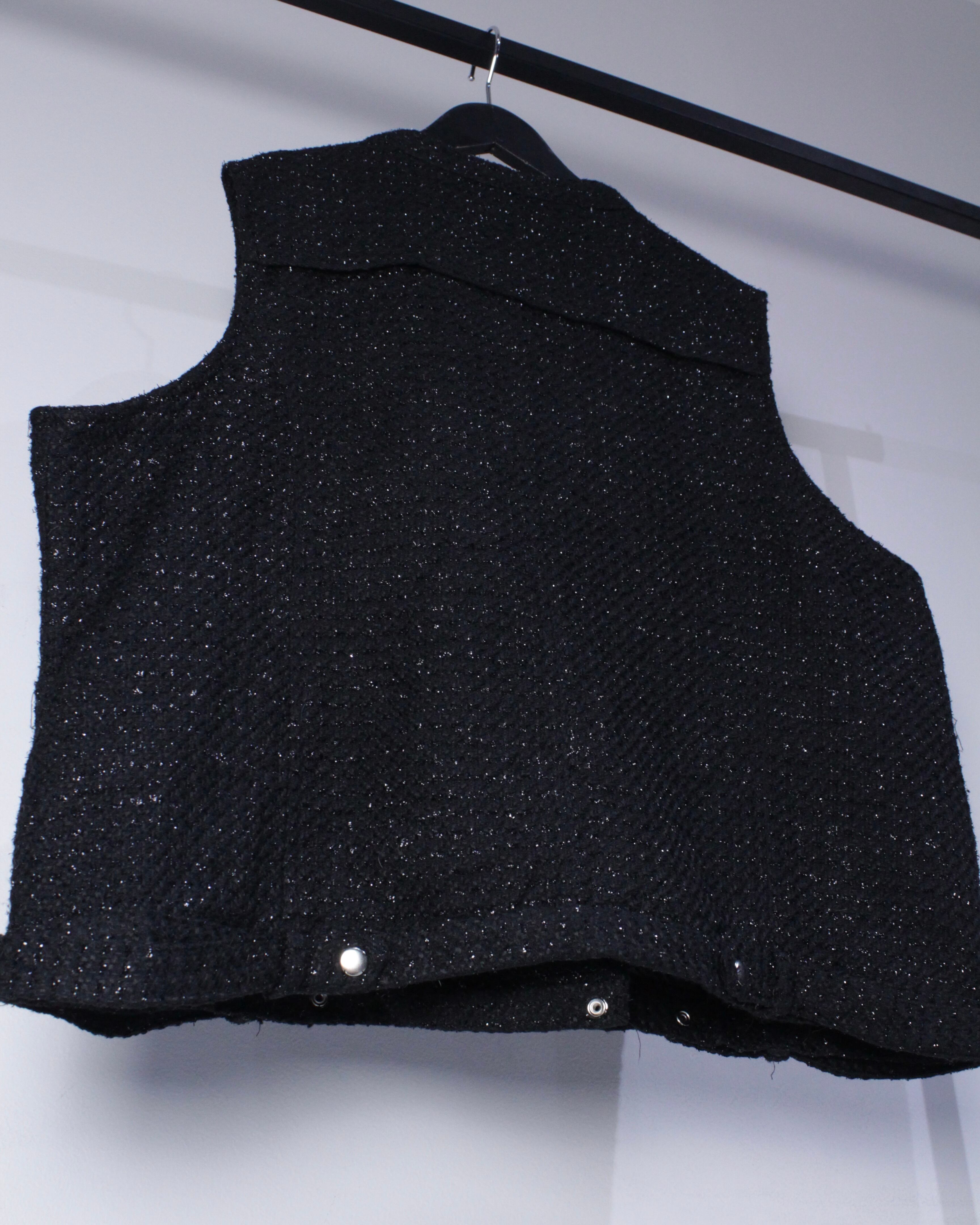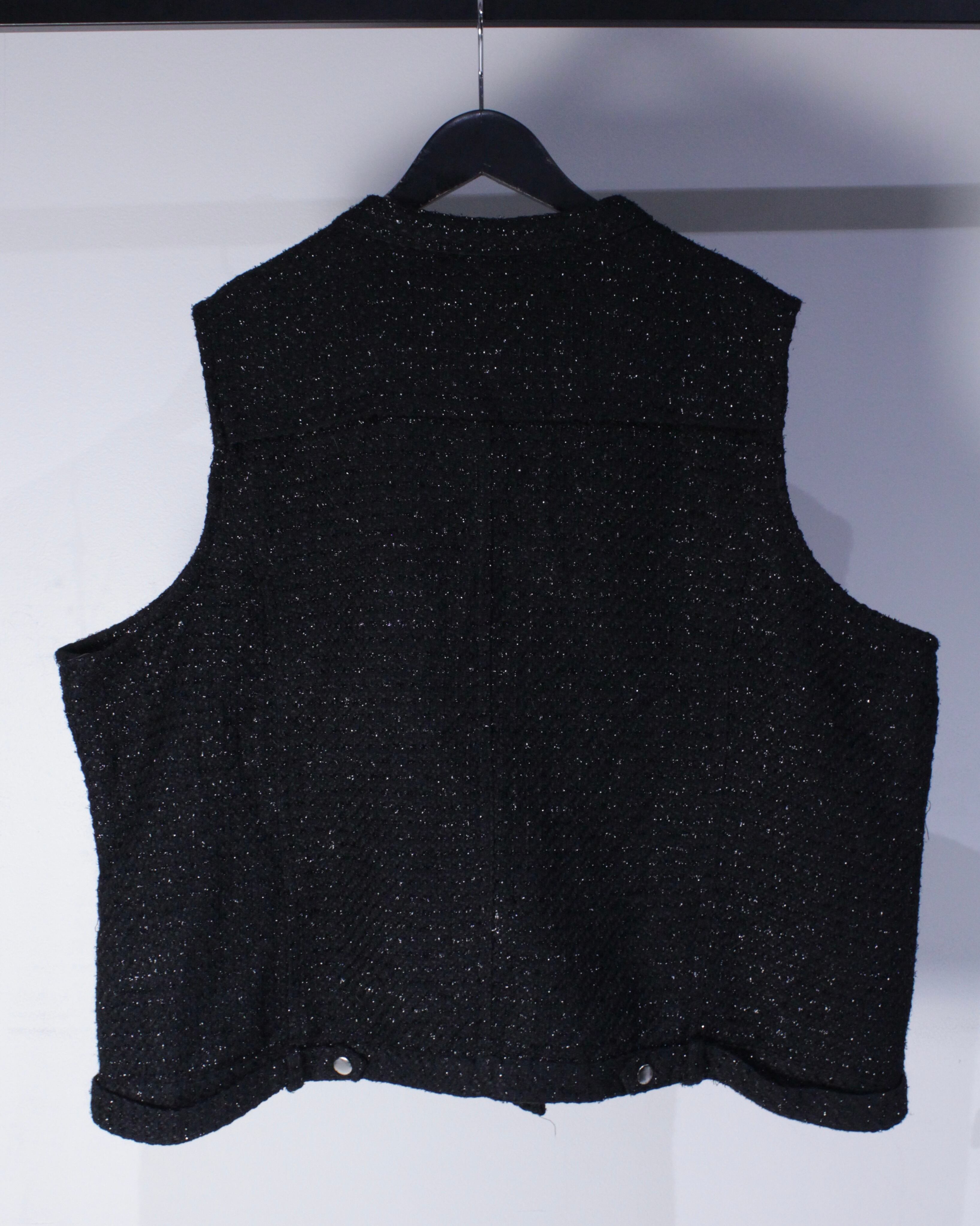 繊細に輝く銀糸を織り込んだ、上質なツイードを用いたベスト。