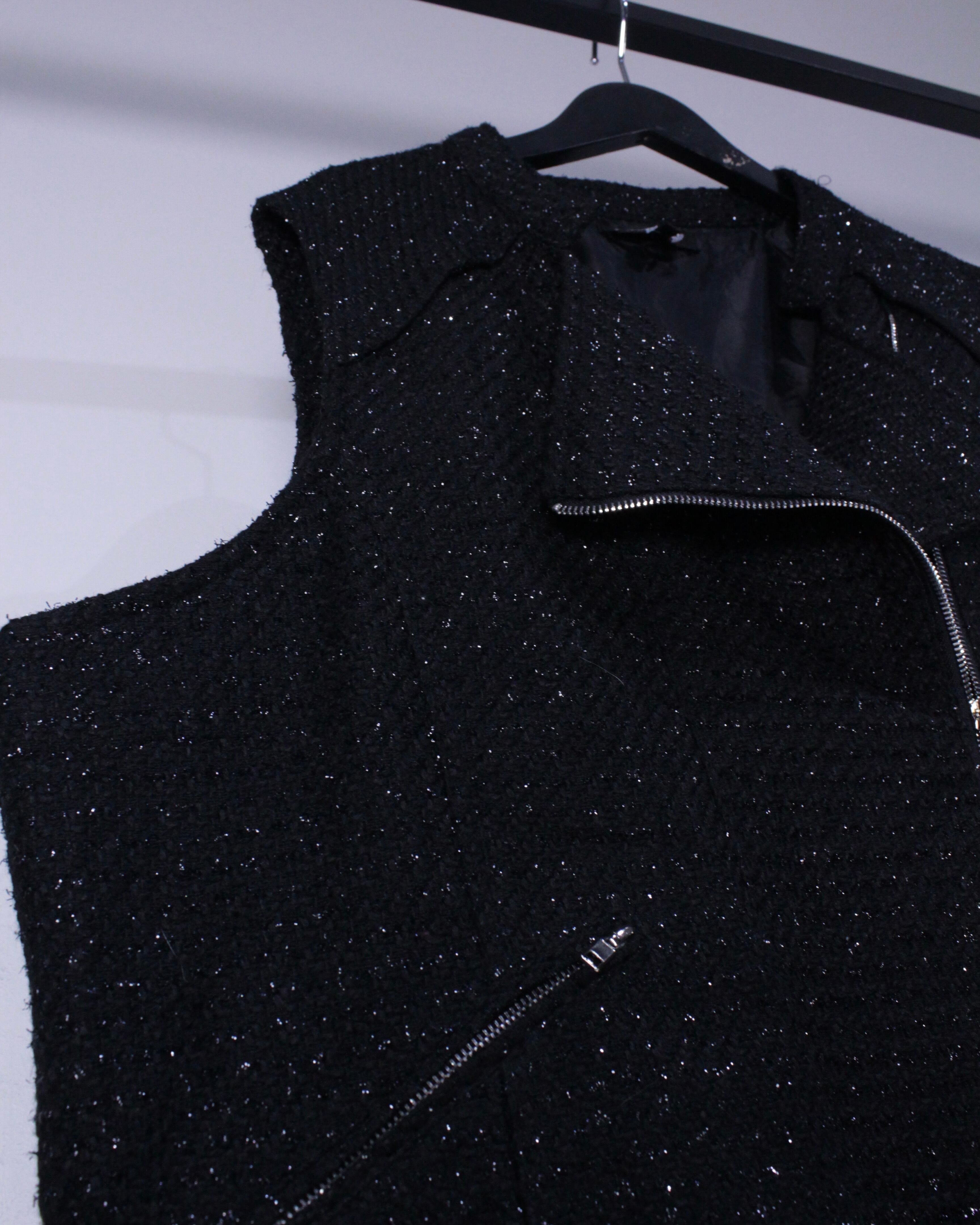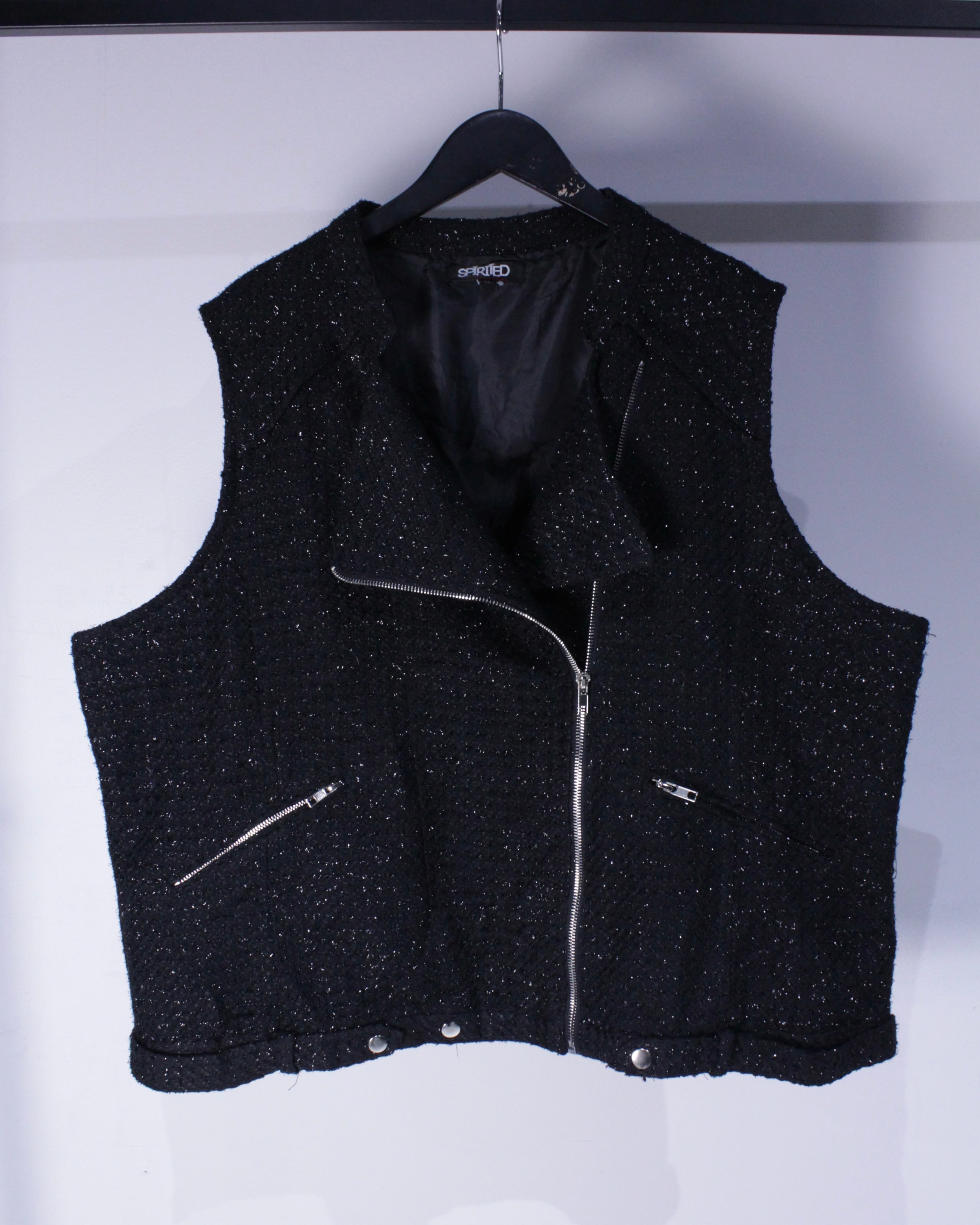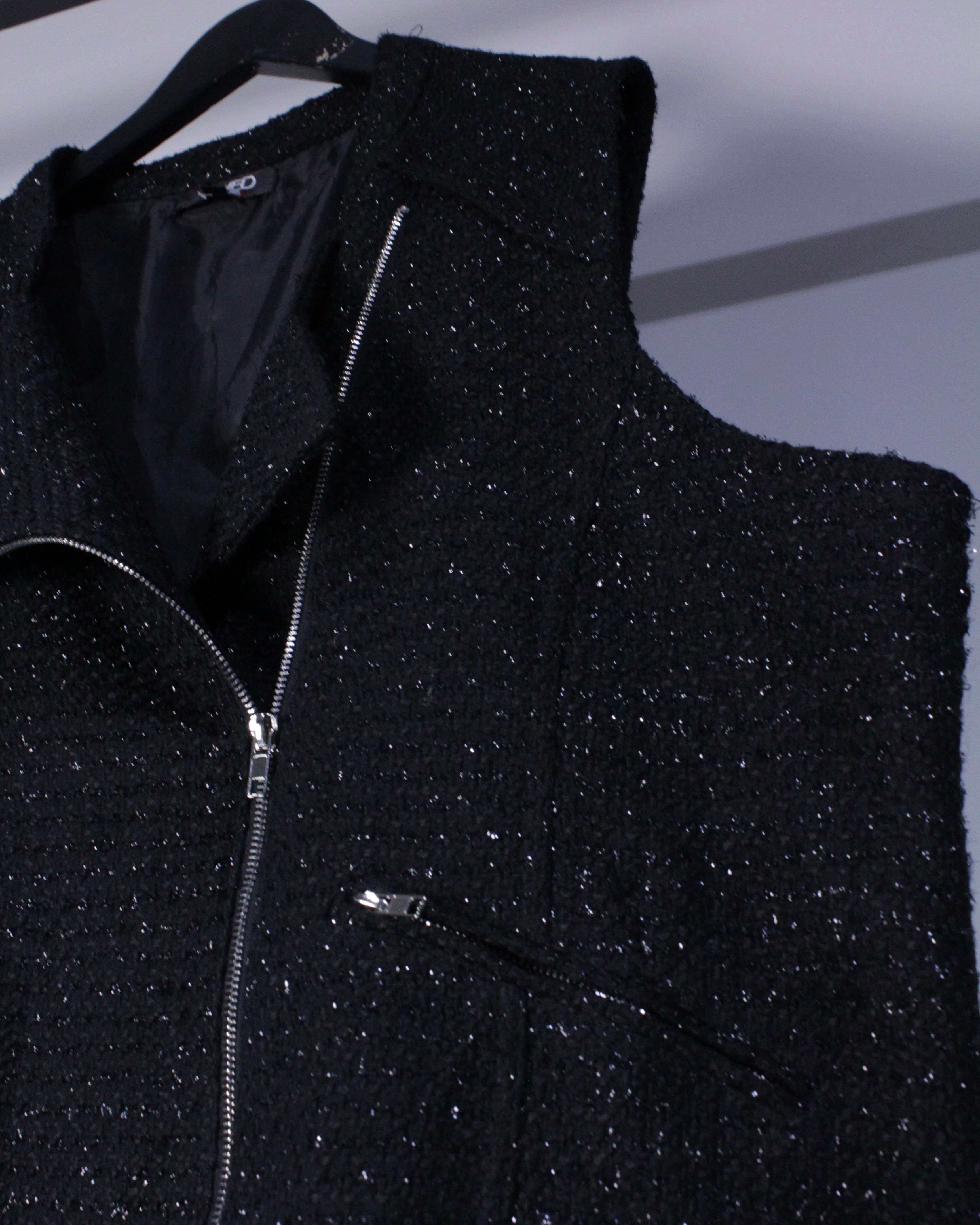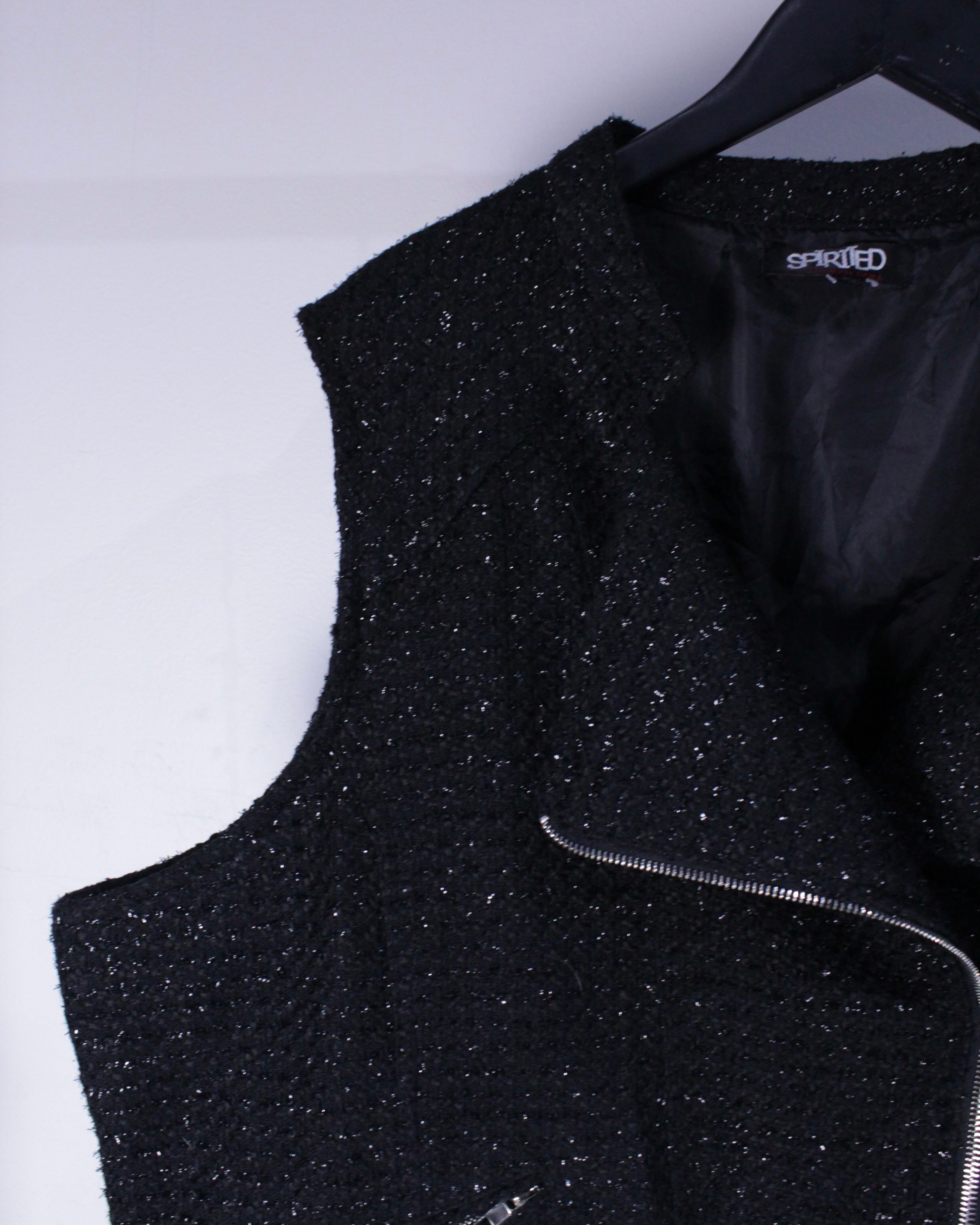 繊細に輝く銀糸を織り込んだ、上質なツイードを用いたベスト。