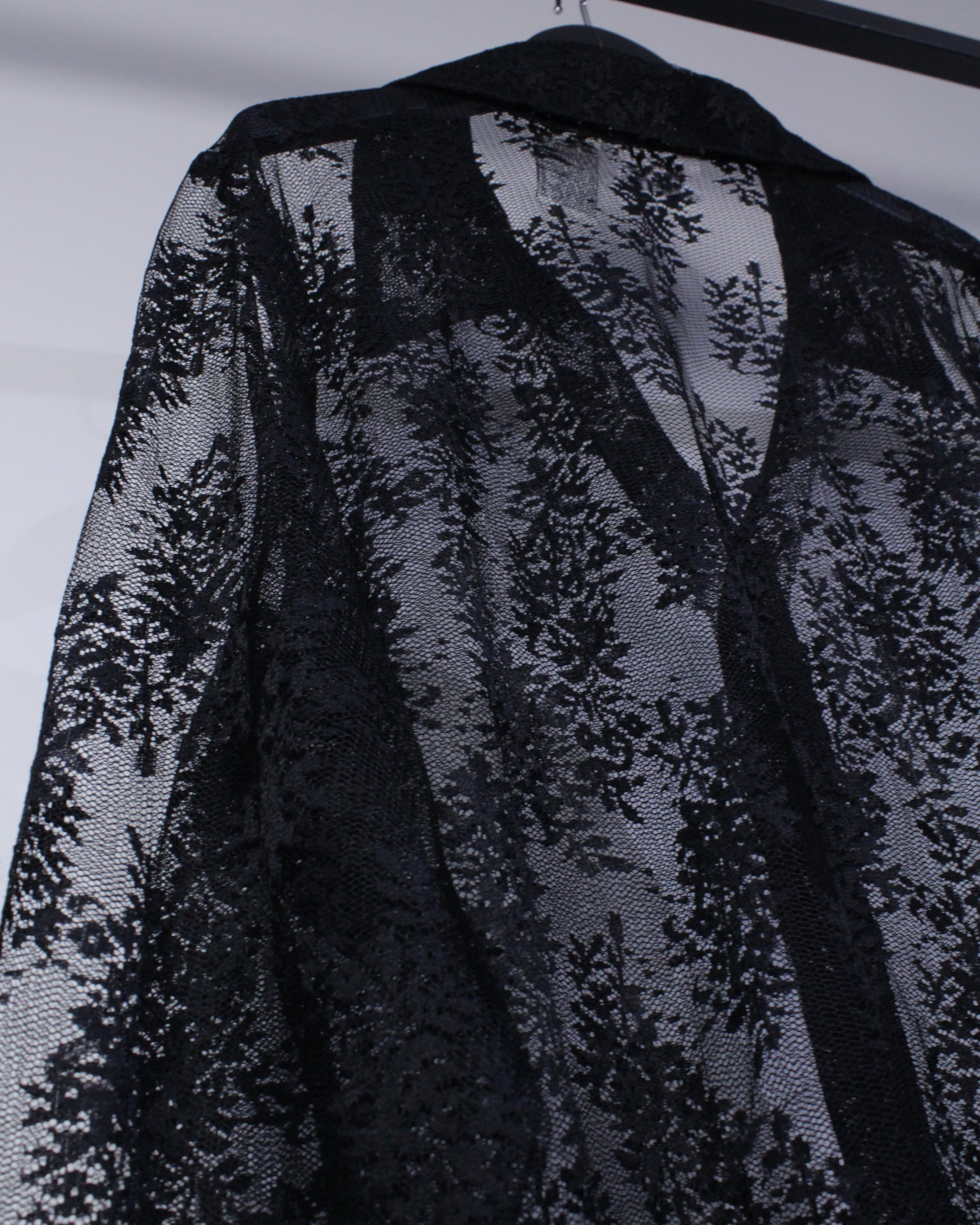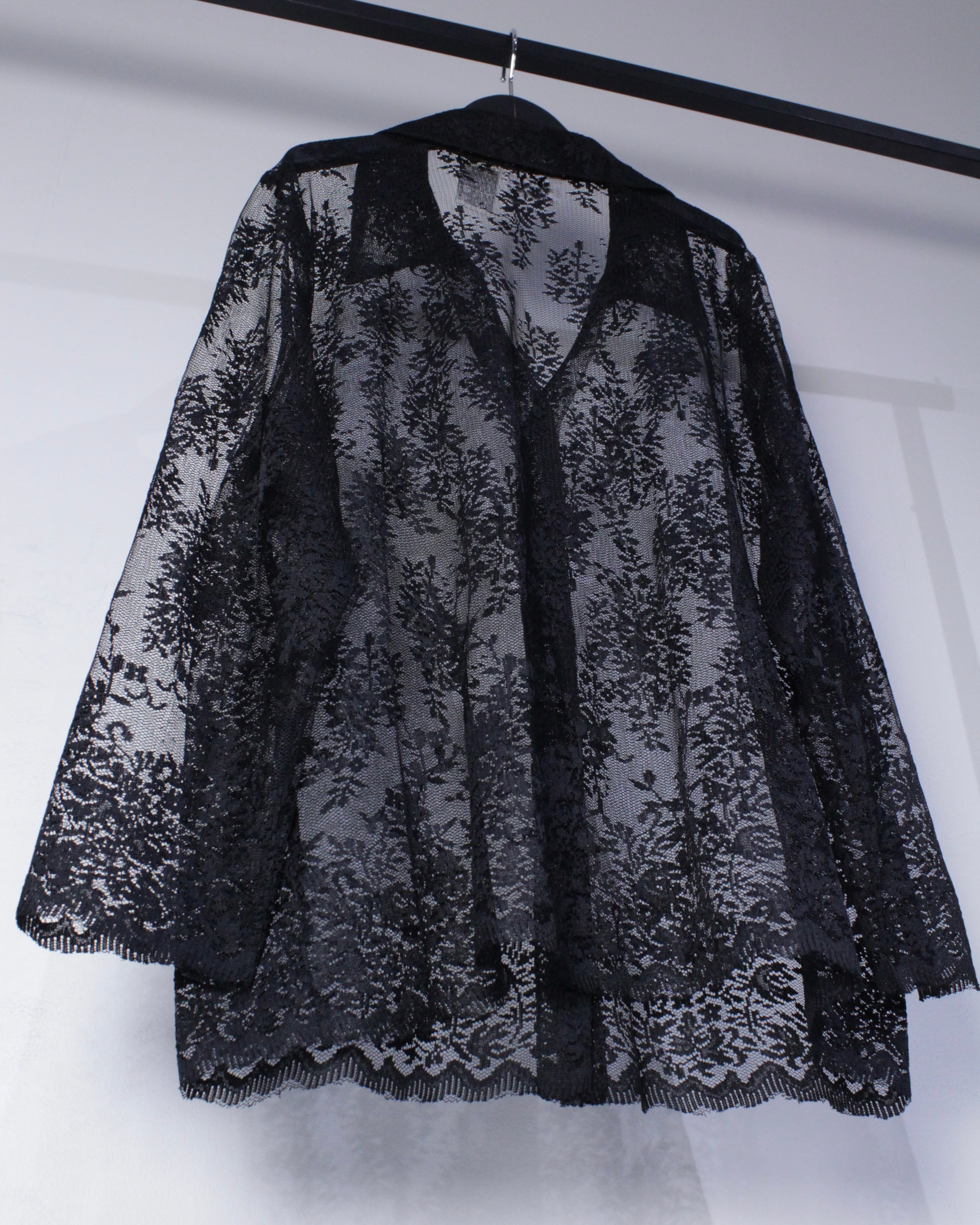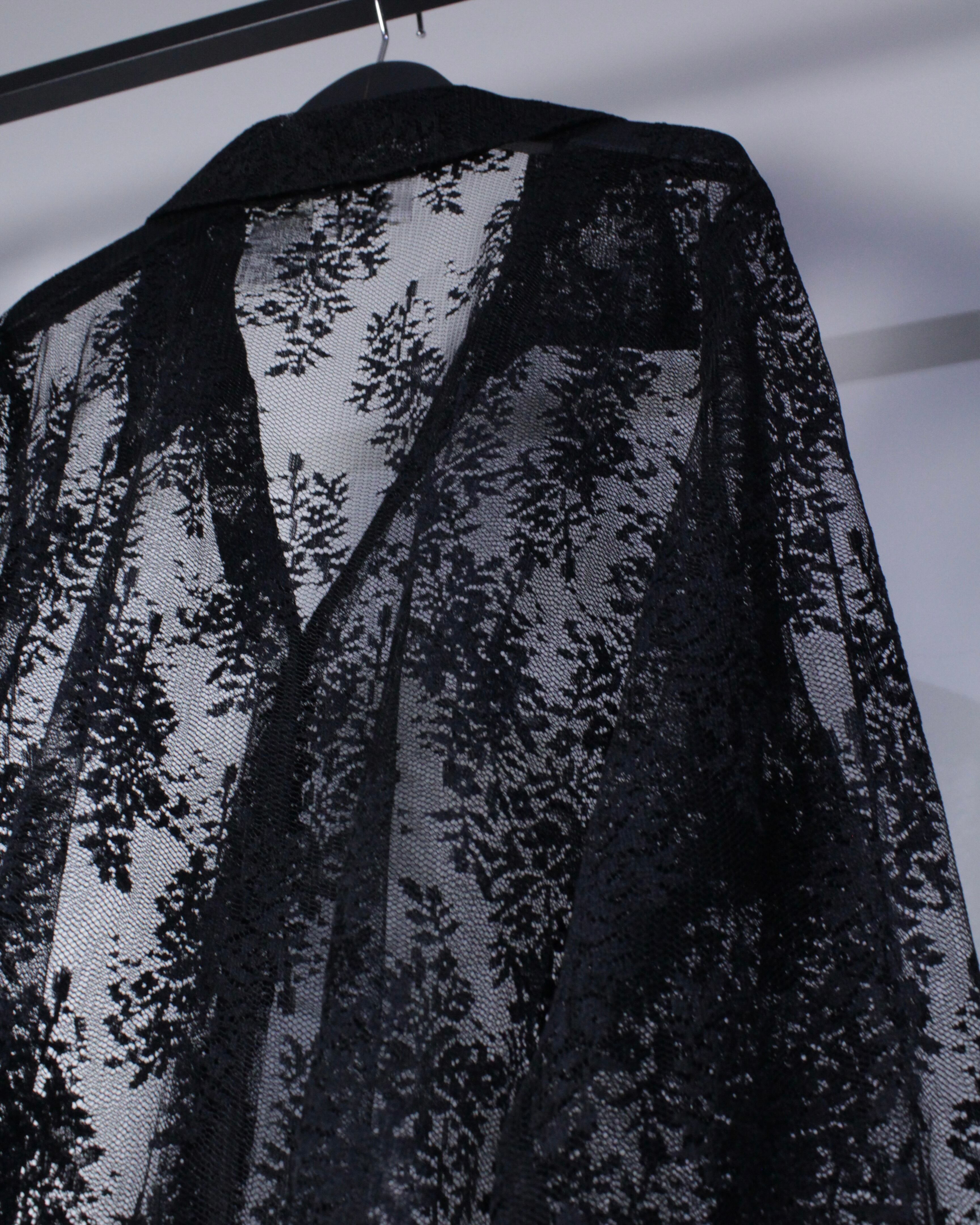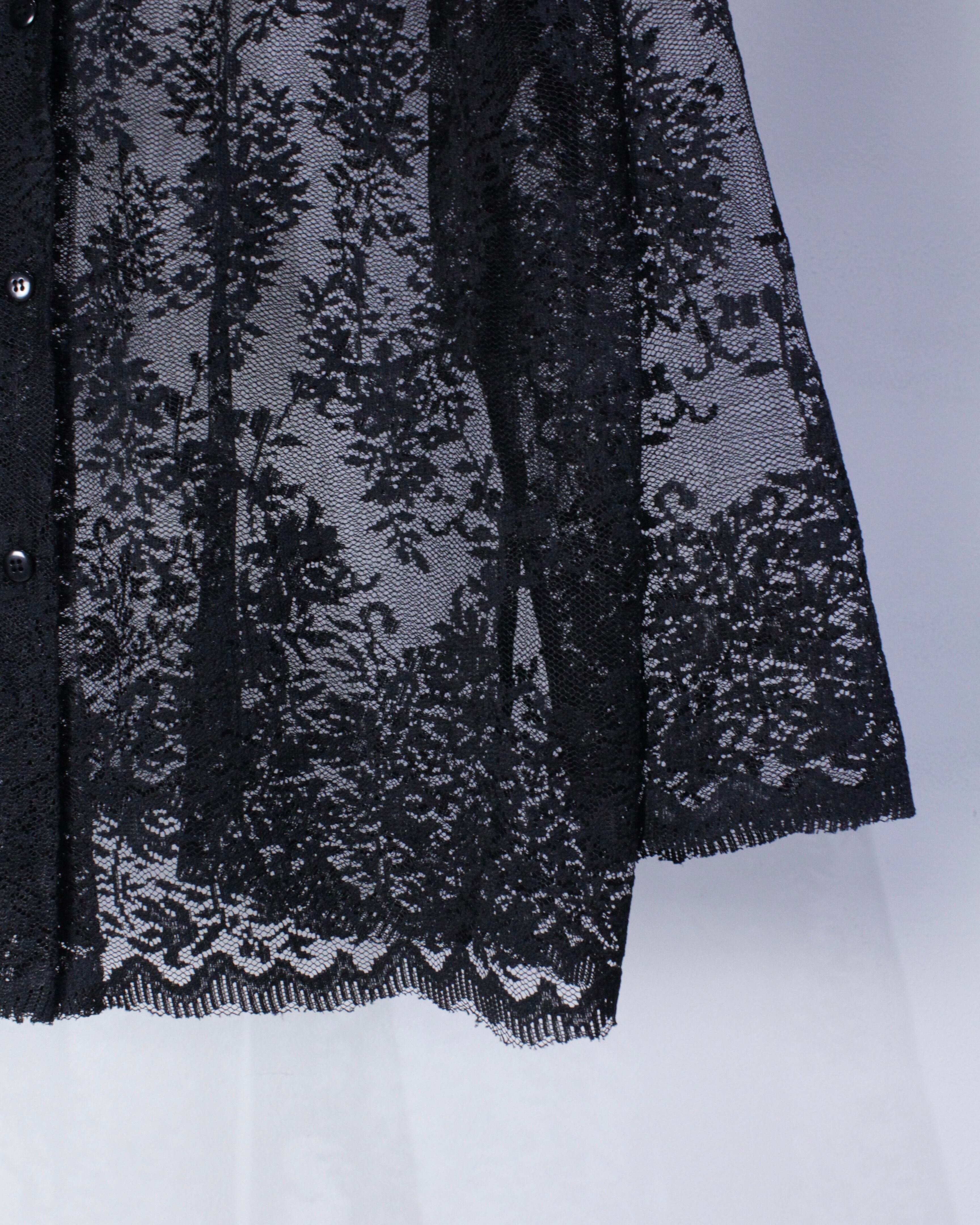 繊細なボタニカル柄が表現された、美しいブラックレースを使用したシャツジャケット。