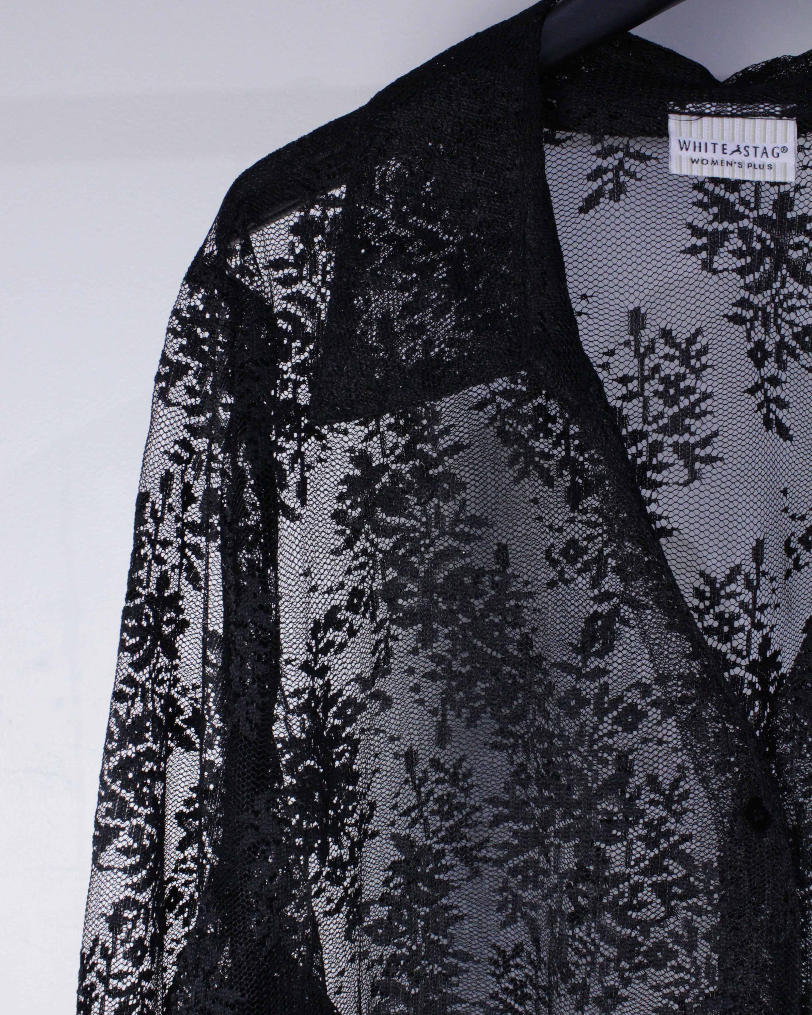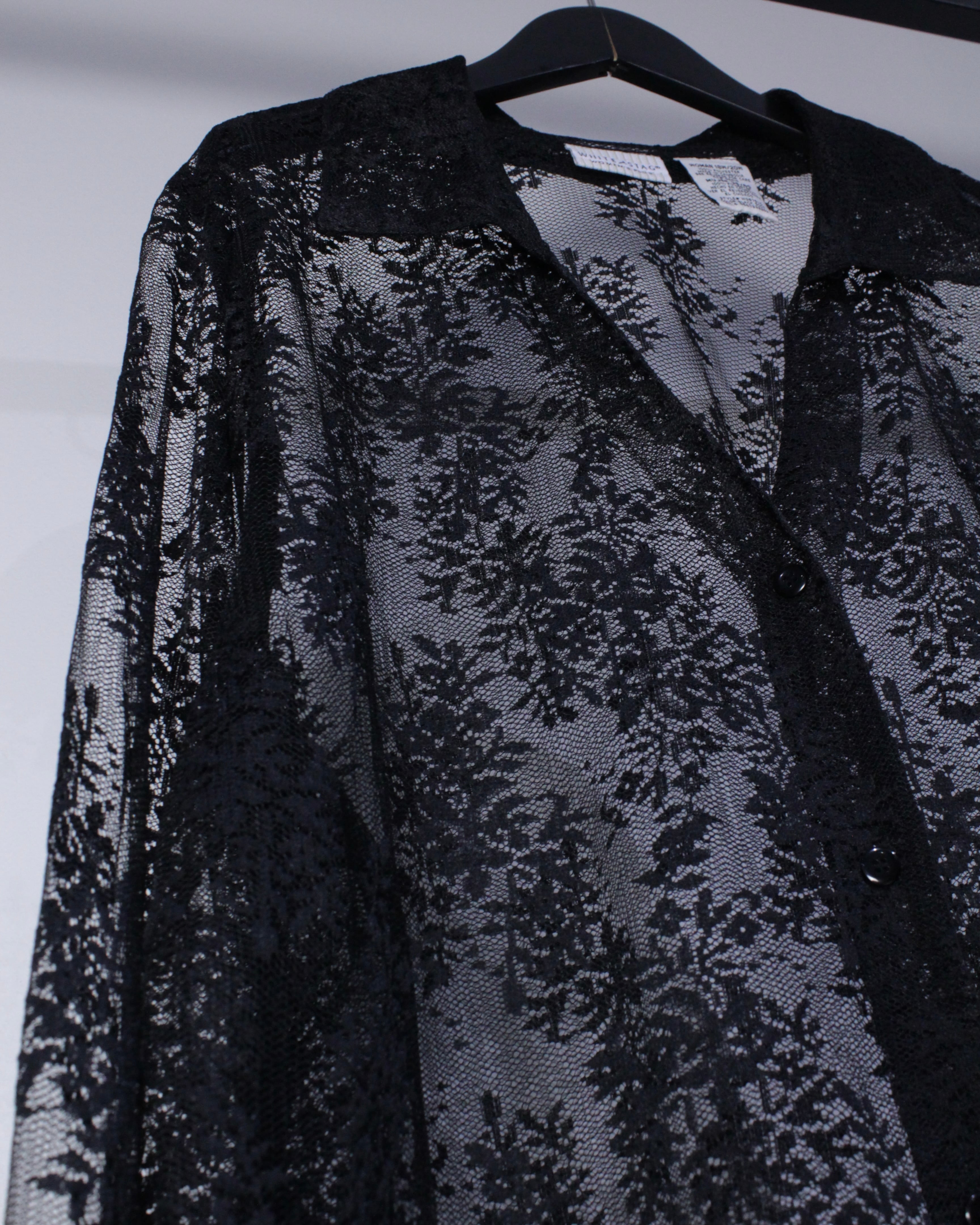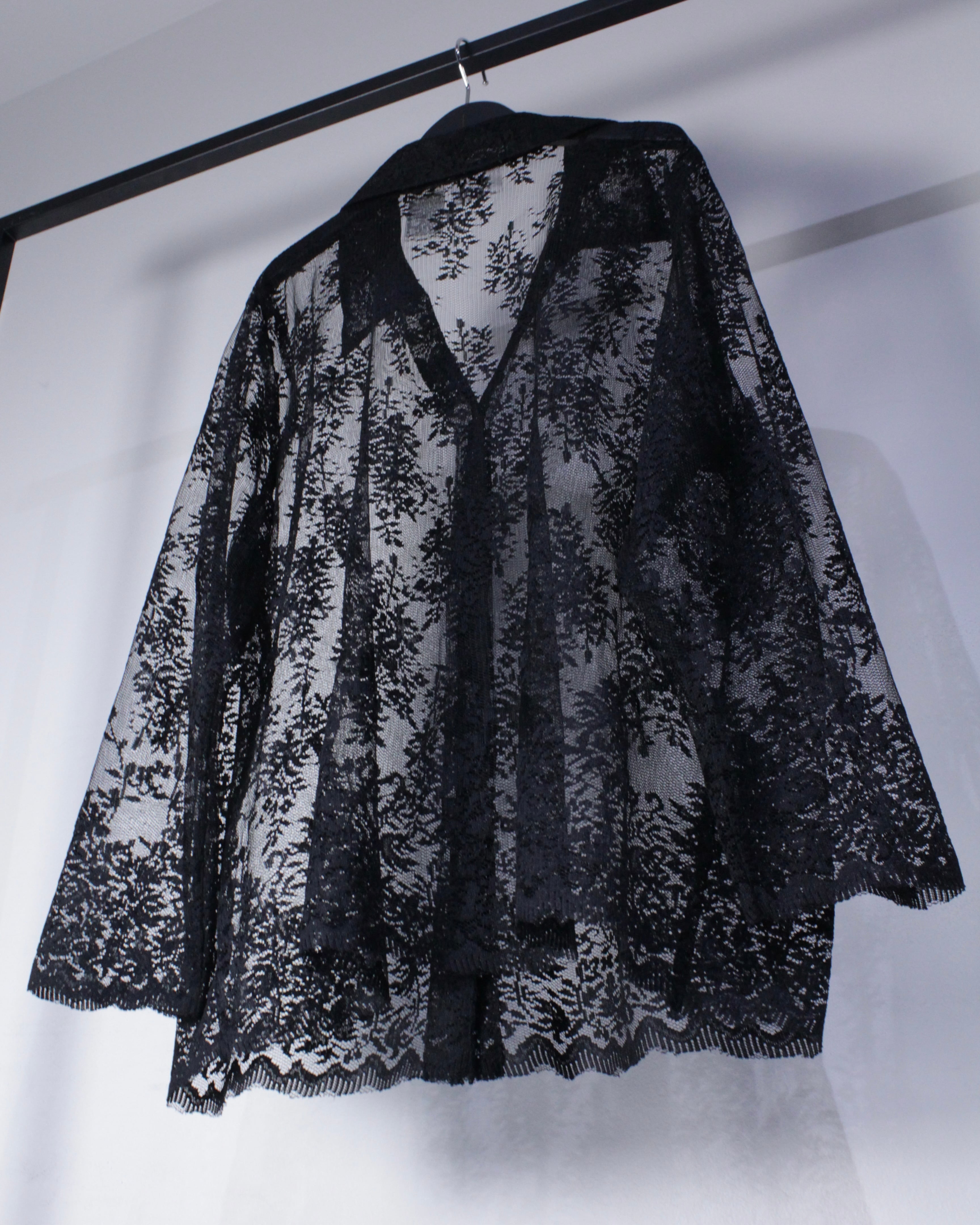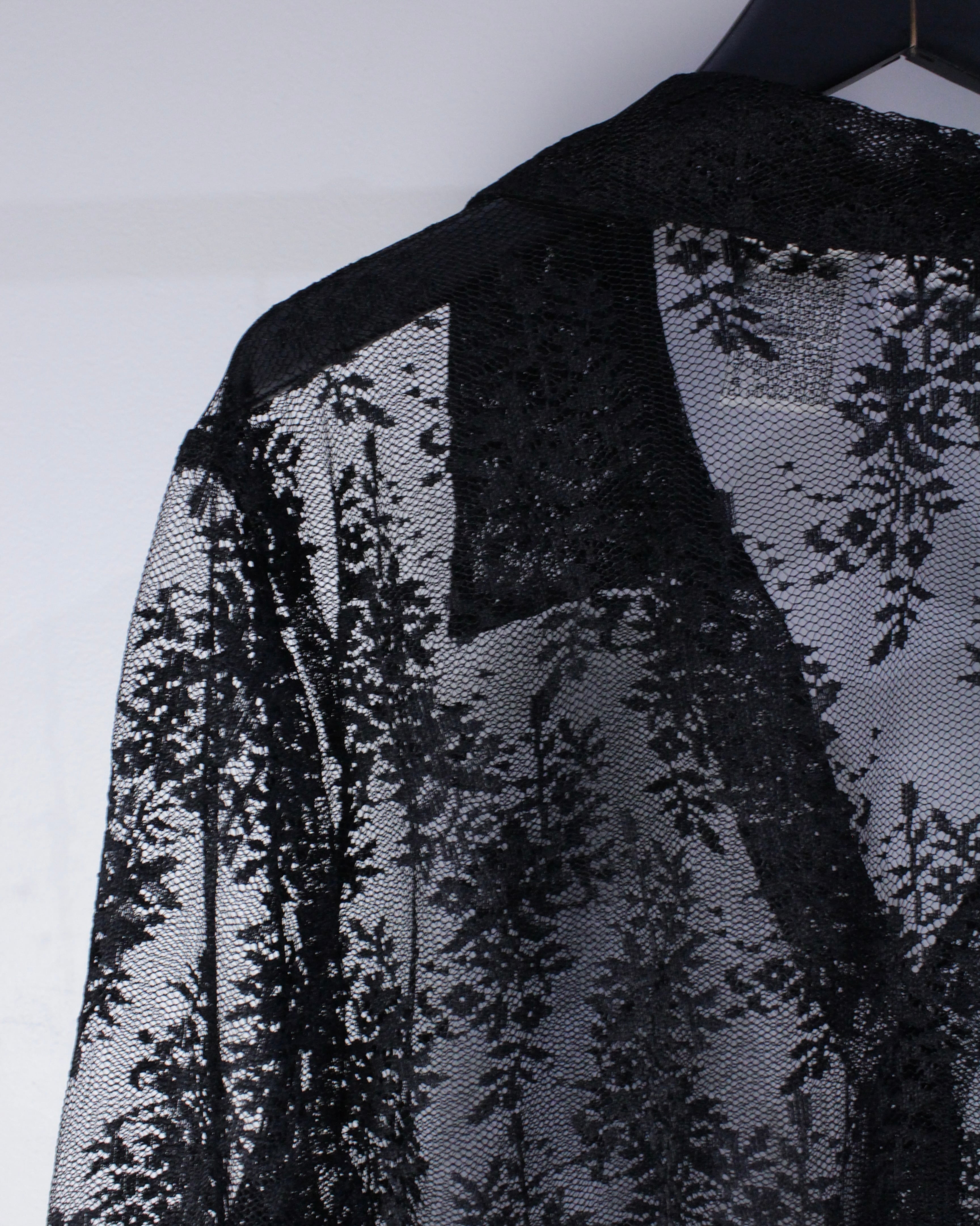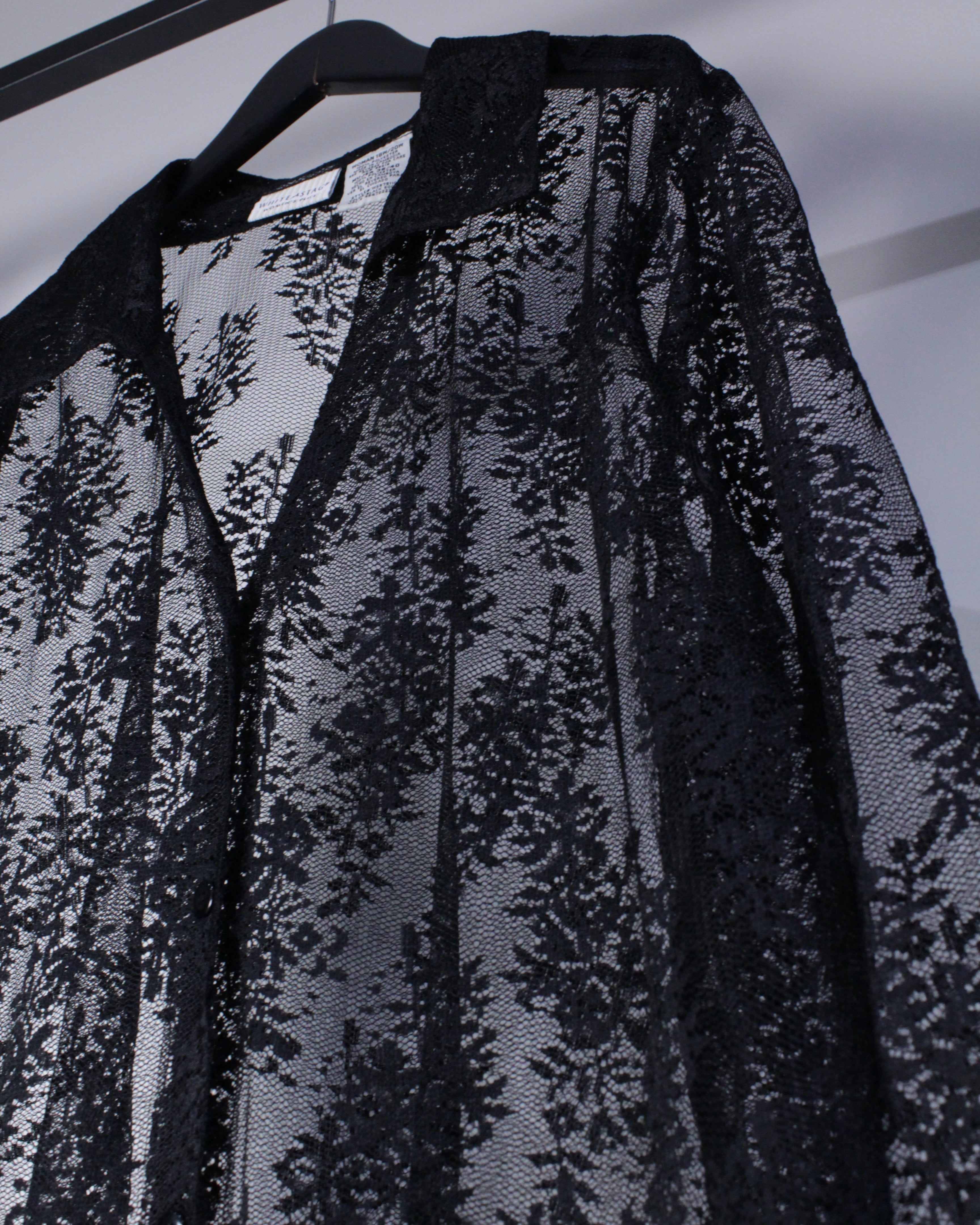 繊細なボタニカル柄が表現された、美しいブラックレースを使用したシャツジャケット。