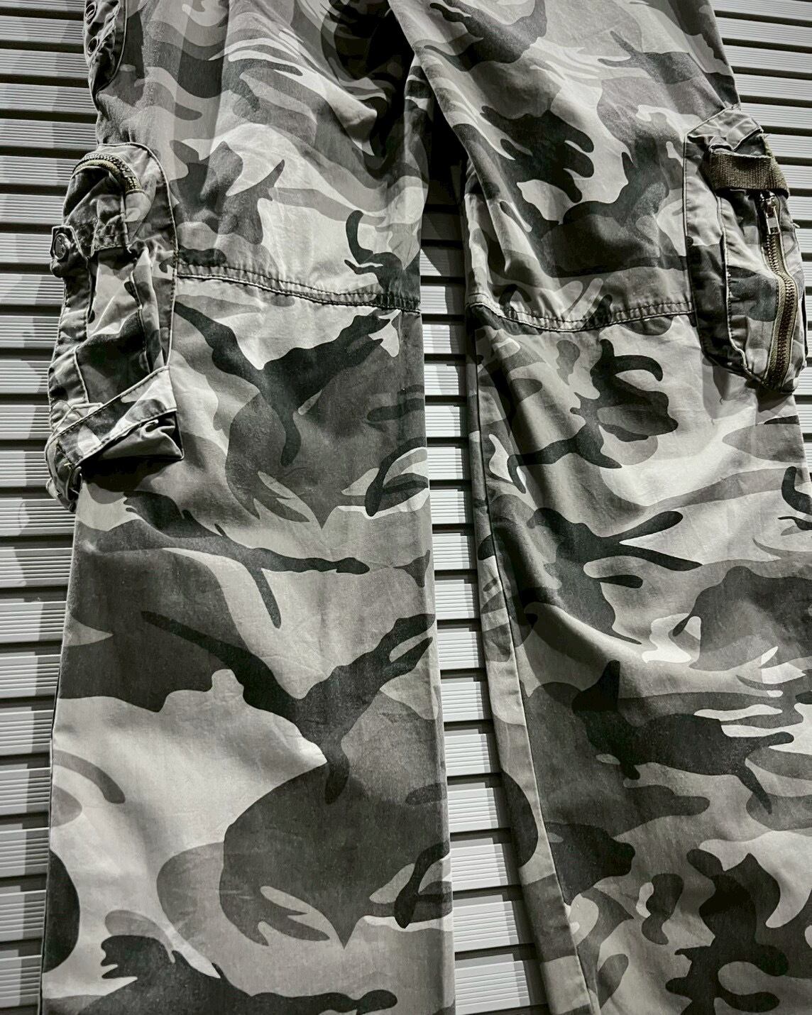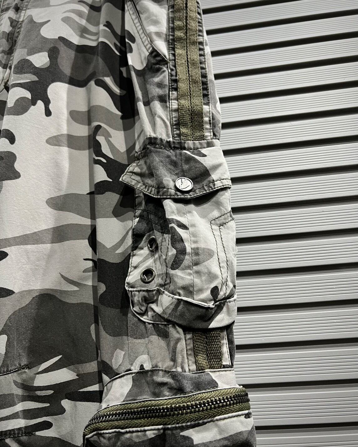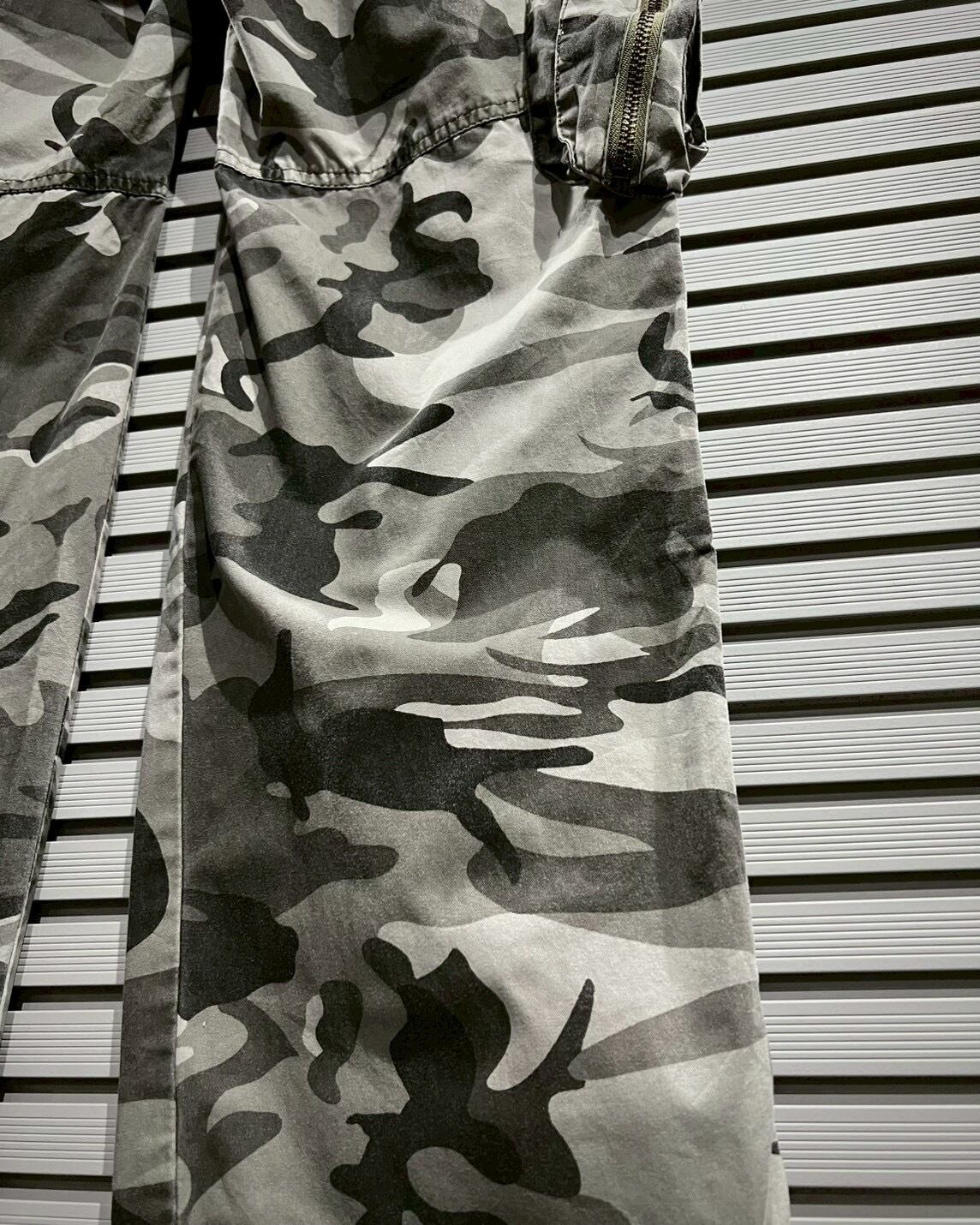ハリのあるコットンを用いたボディに、シティカモを載せたカーゴパンツ。