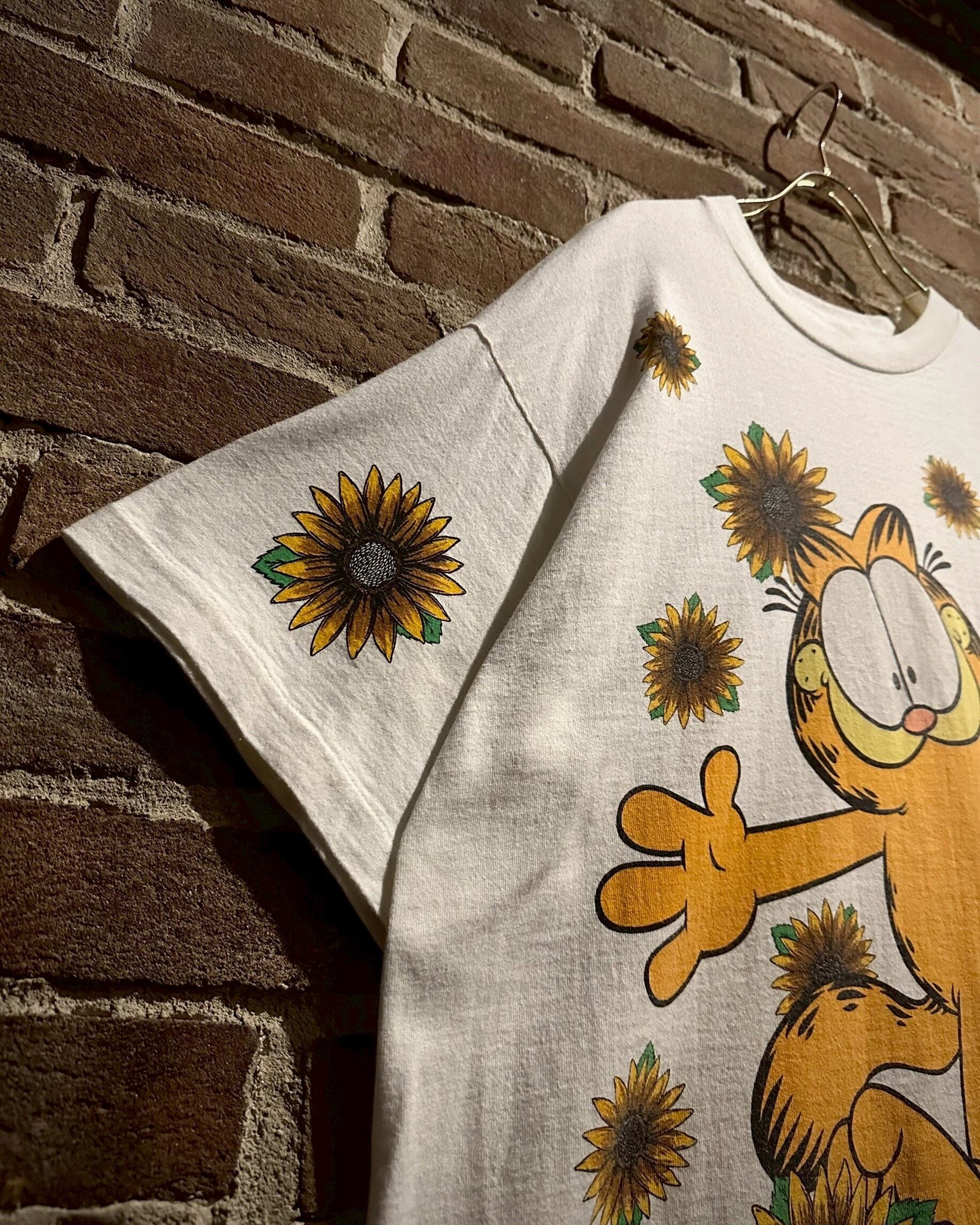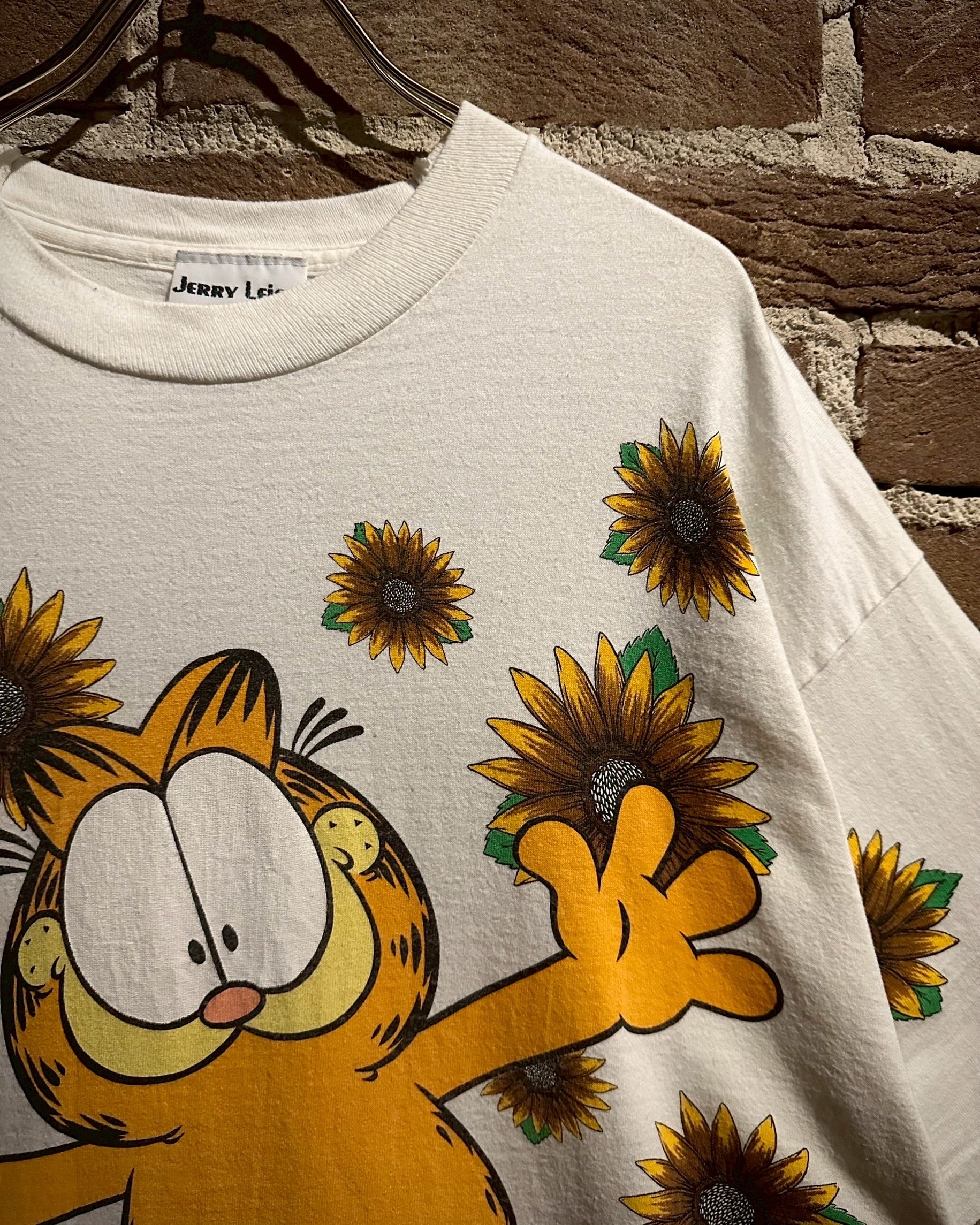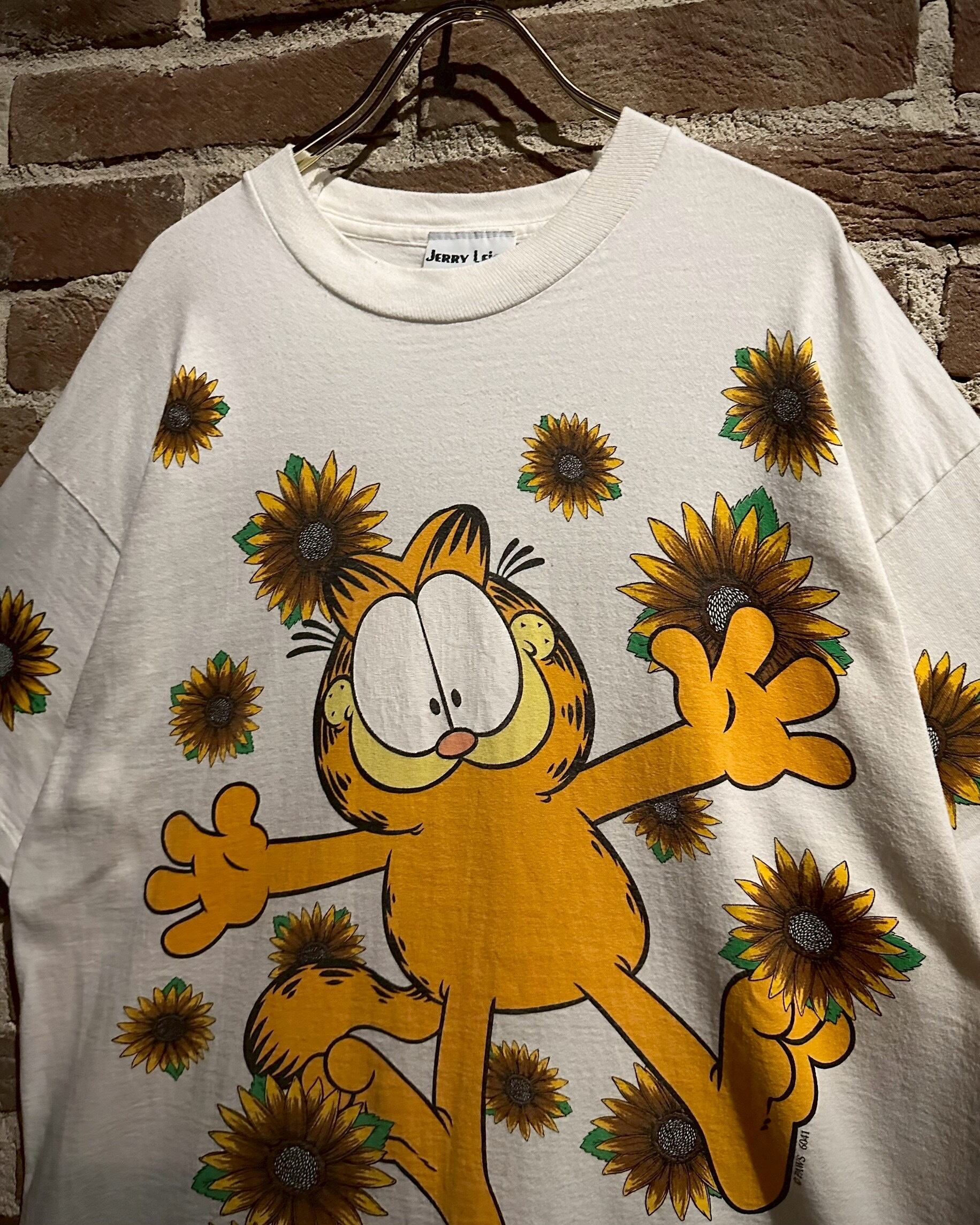 アメリカで1978年より連載されている新聞漫画に登場するキャラクター"ガーフィールド"をフロントに載せたTシャツ。