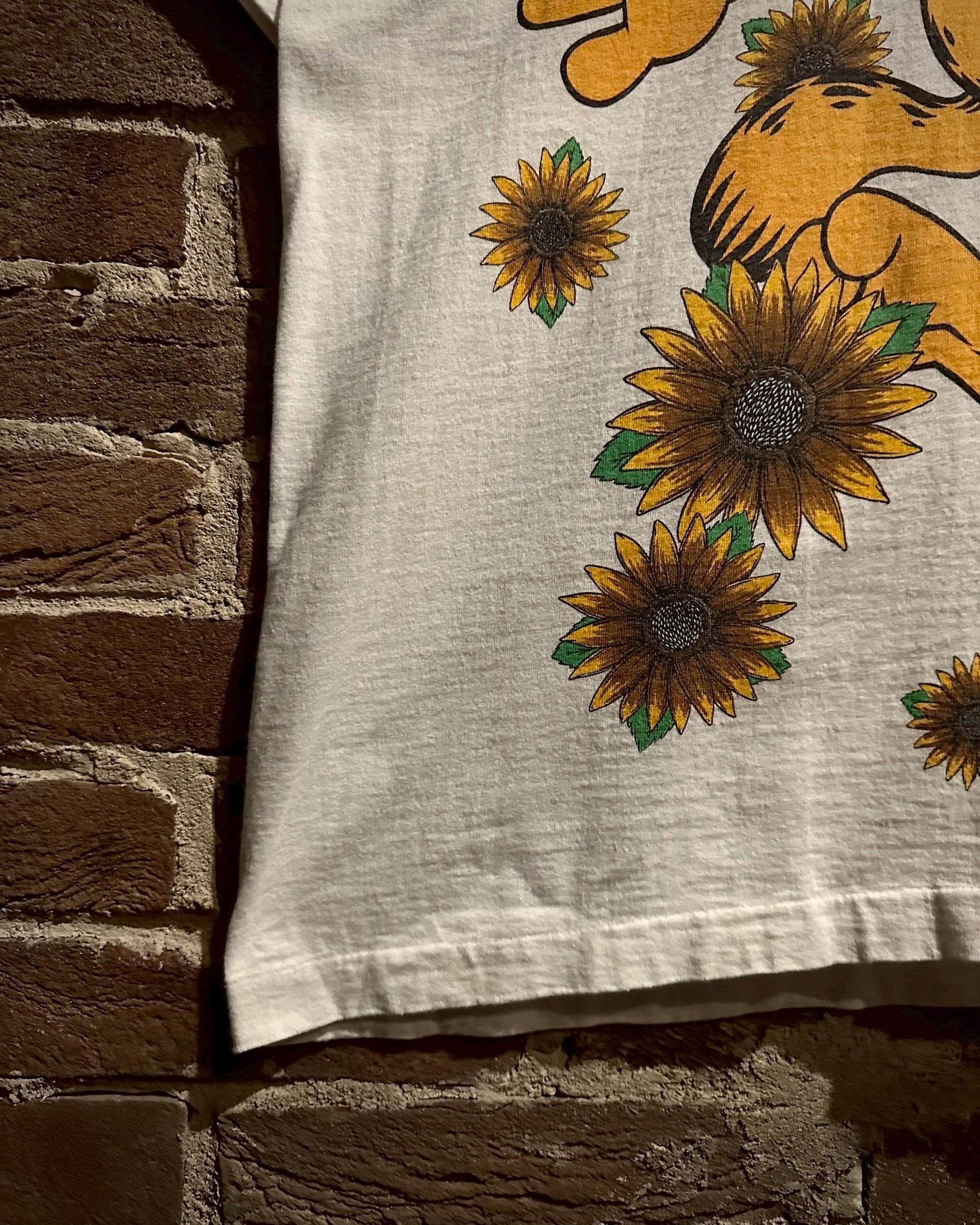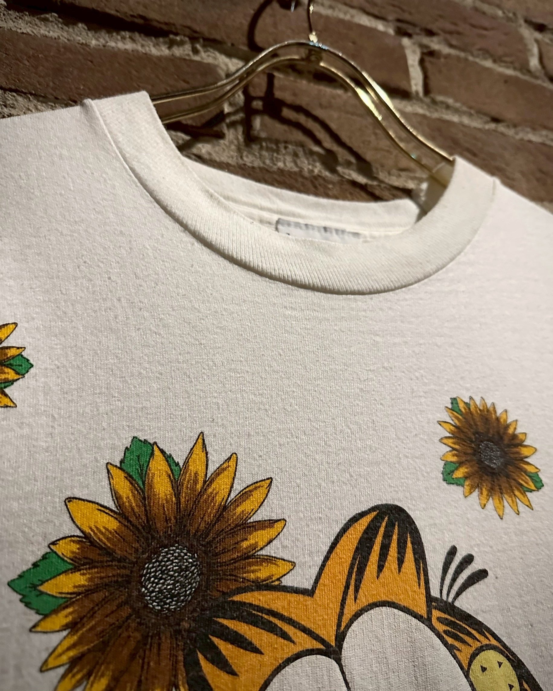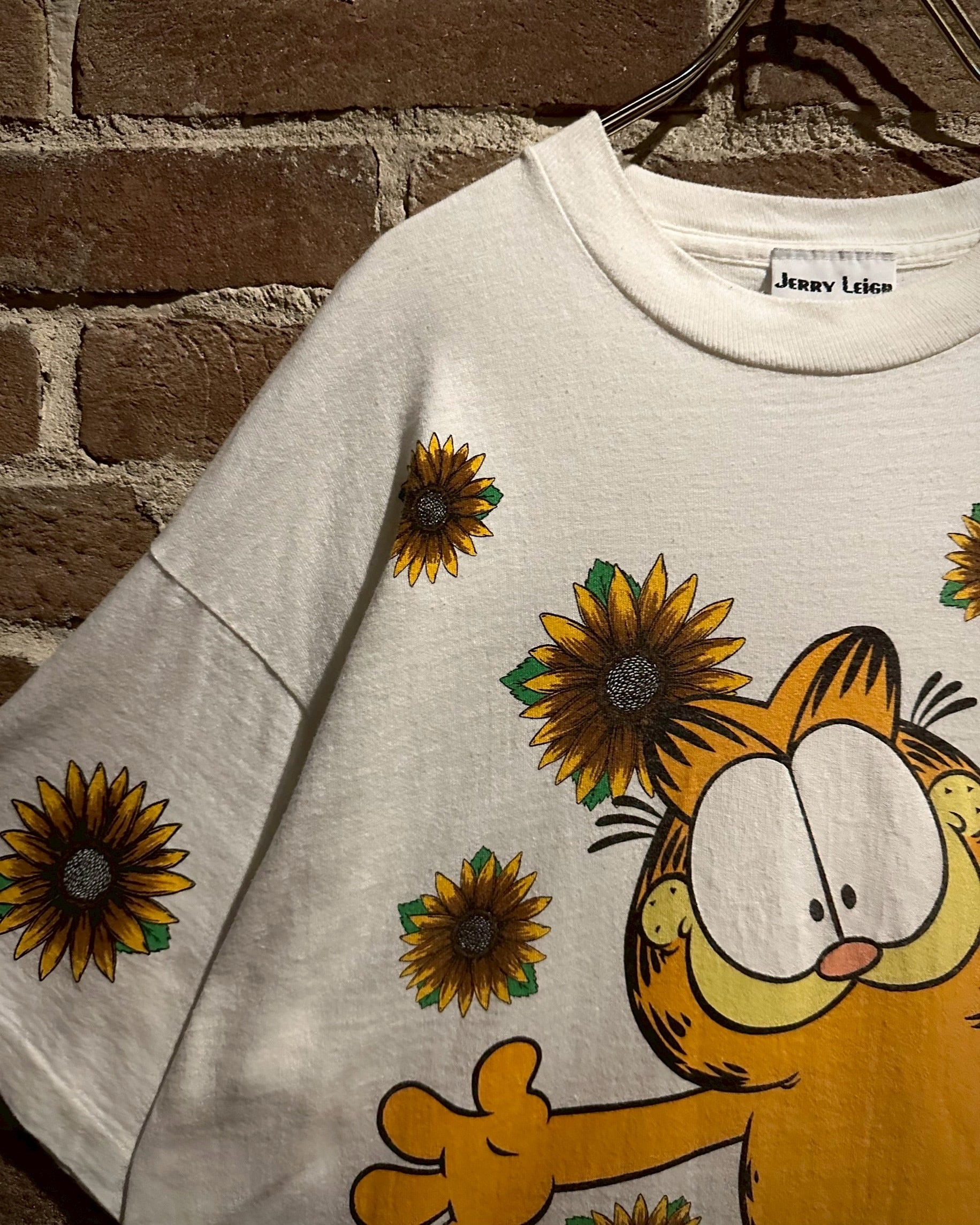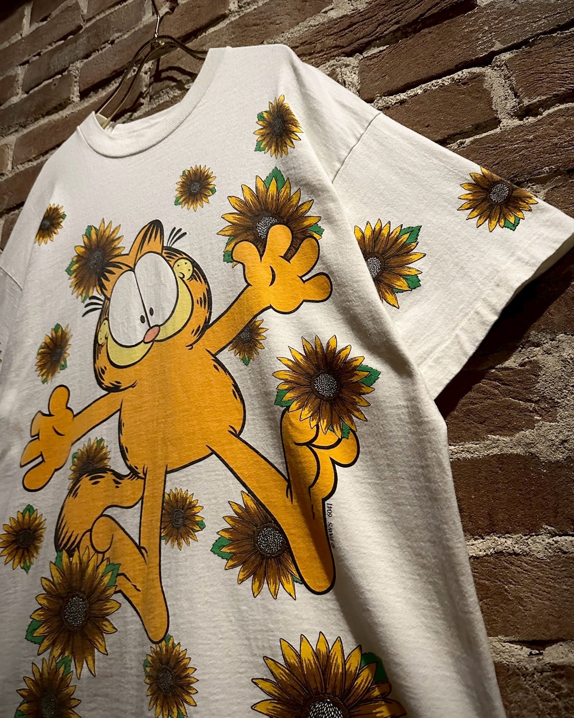 アメリカで1978年より連載されている新聞漫画に登場するキャラクター"ガーフィールド"をフロントに載せたTシャツ。