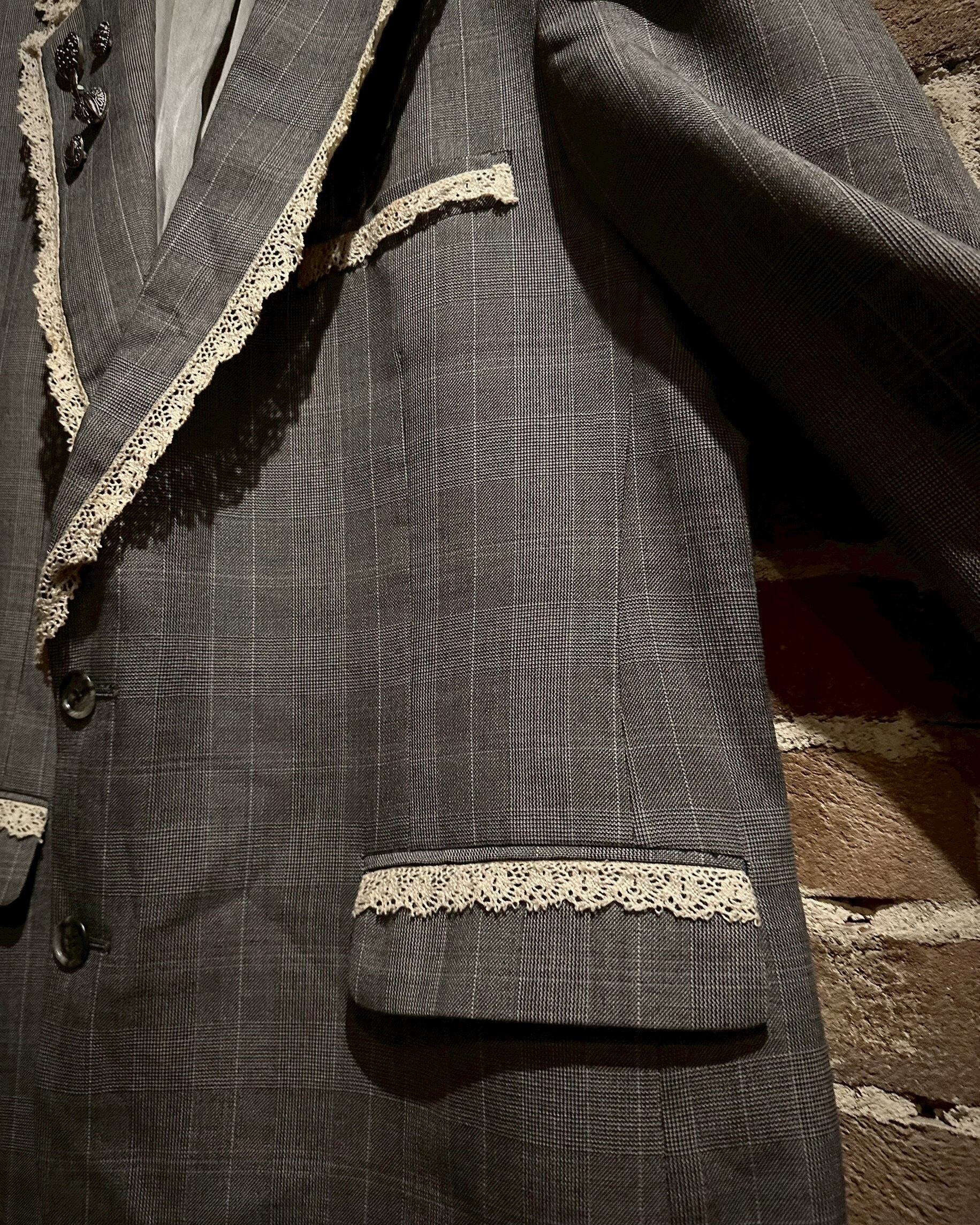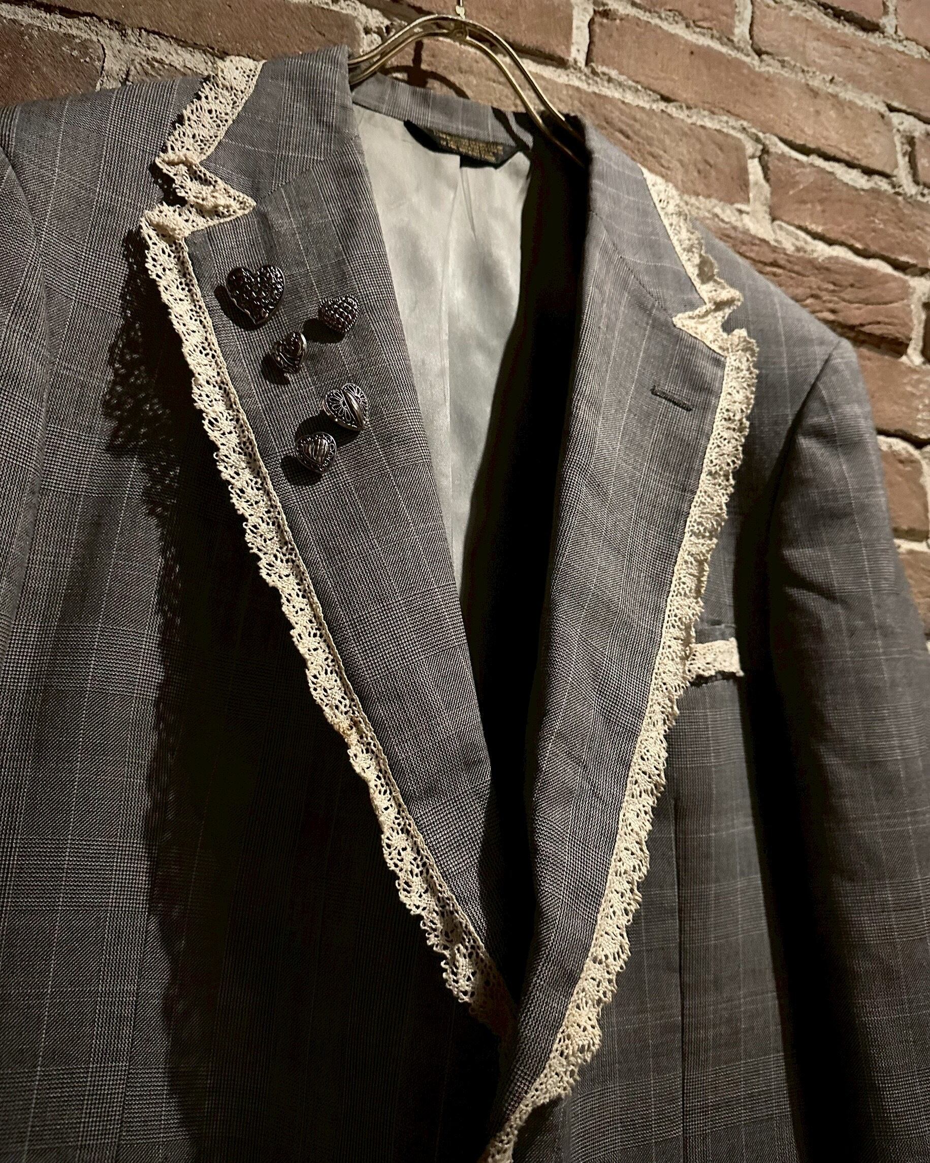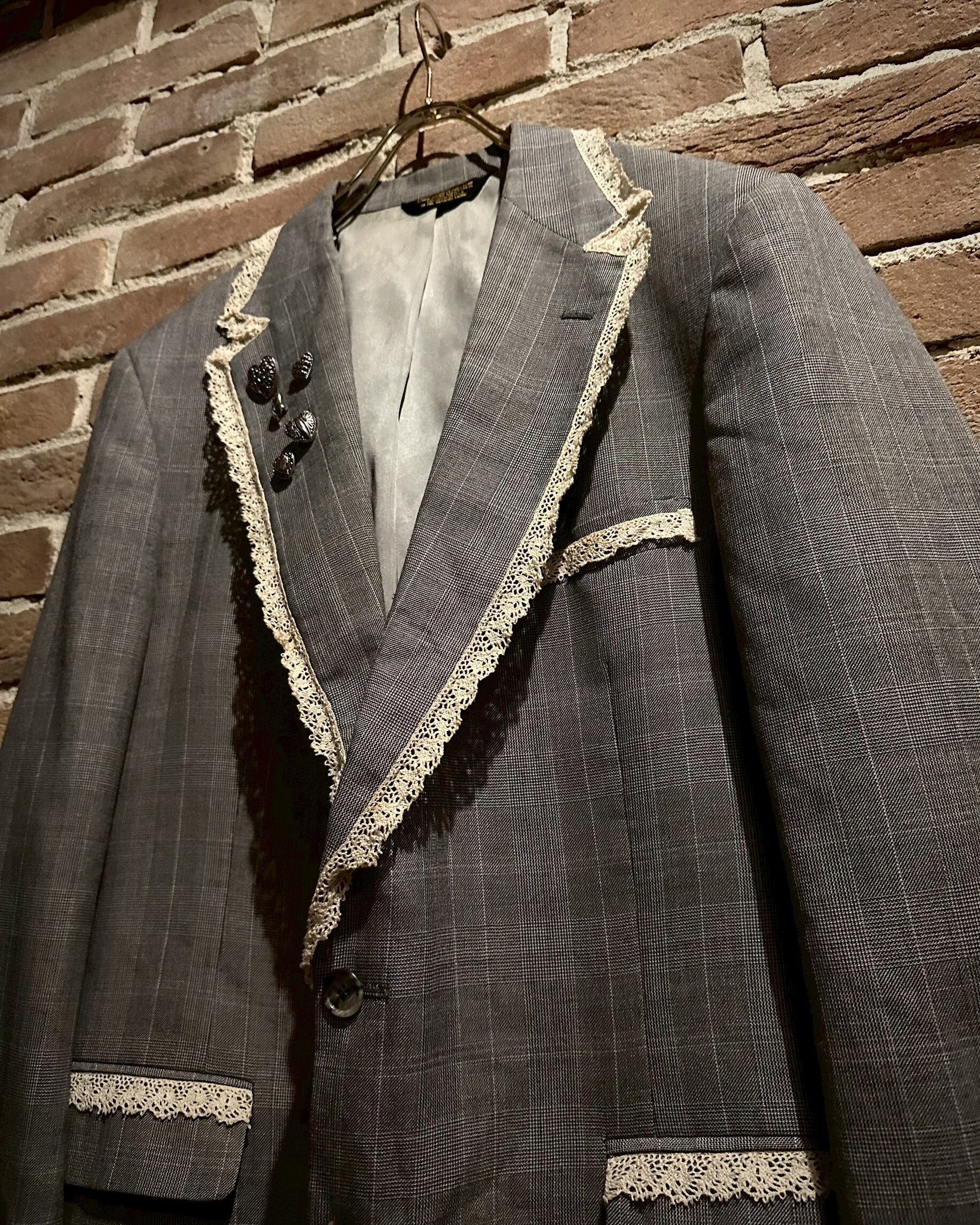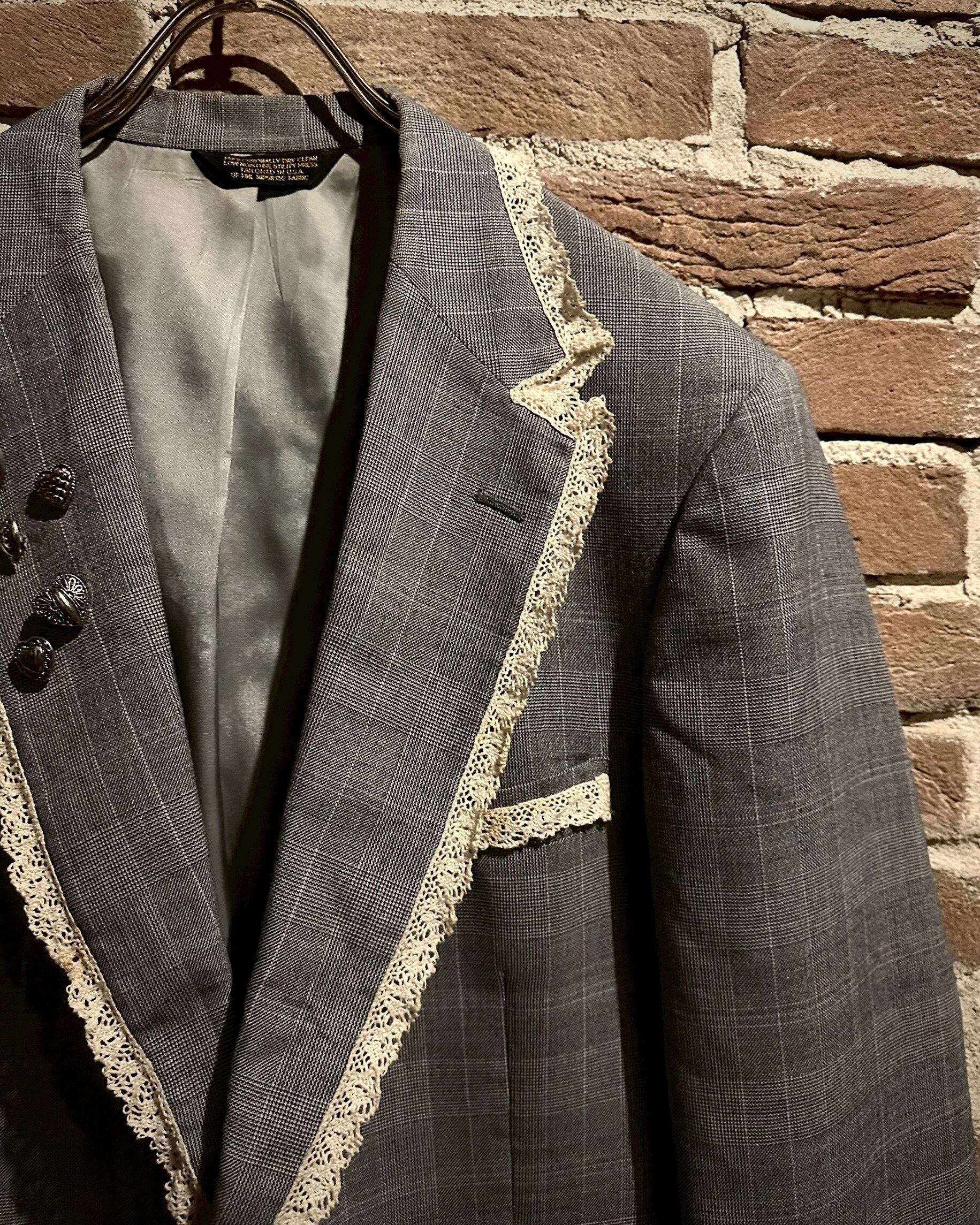 レース地を取り付け、ラペルにはハートのシルバーボタンの装飾でデザインを施し、唯一無二なアイテムへと昇華されています。