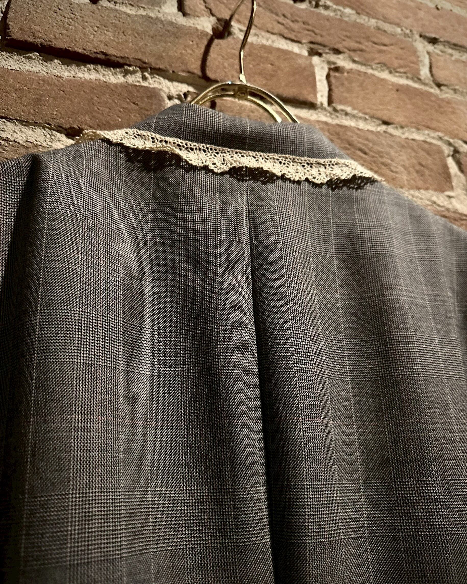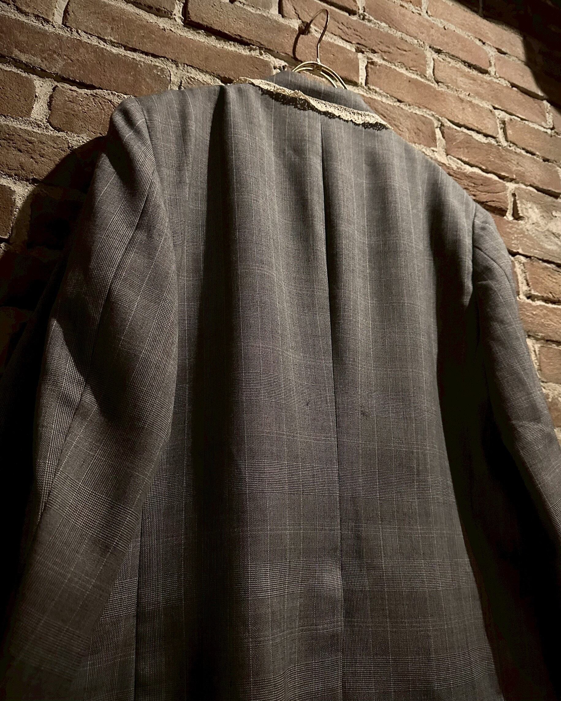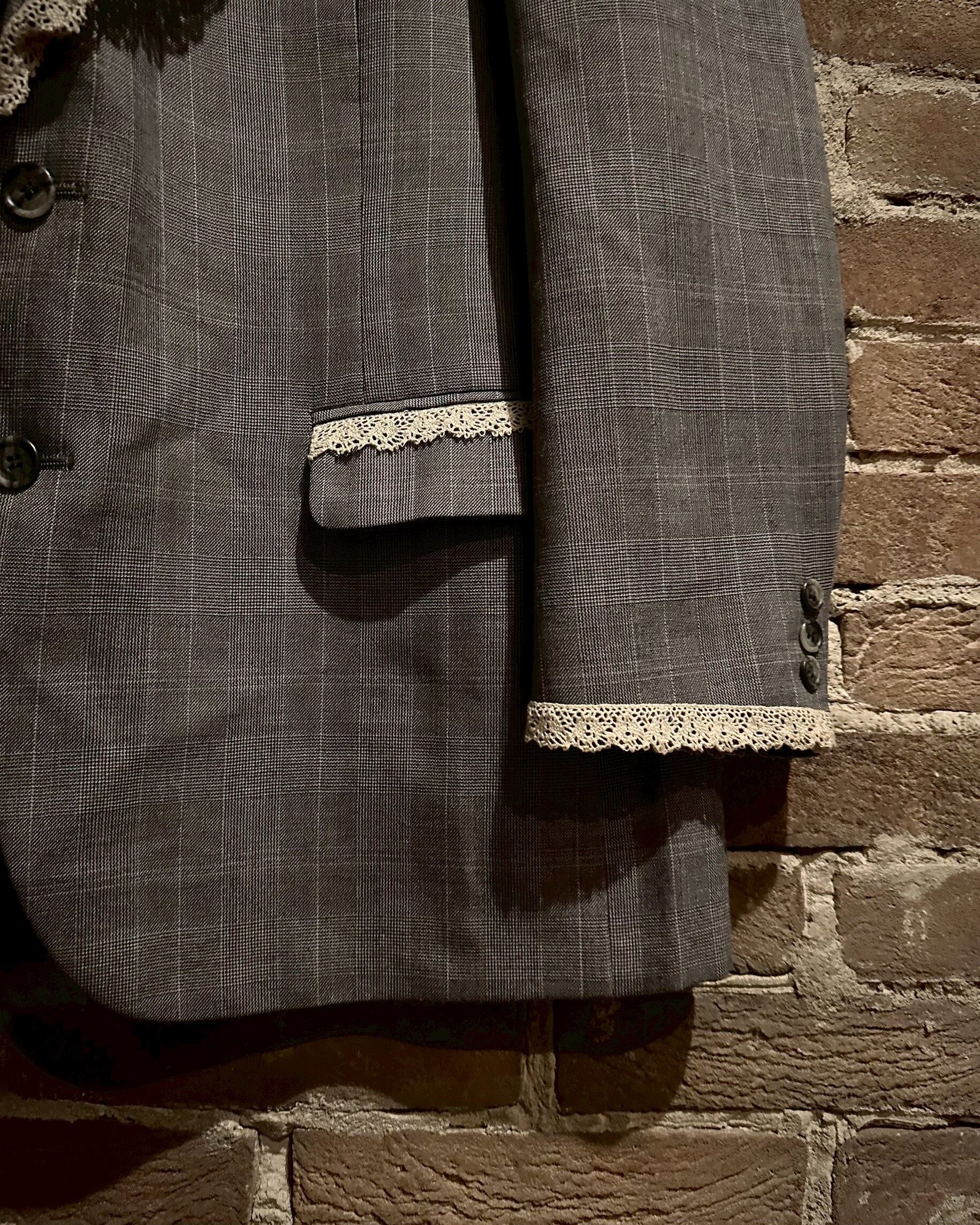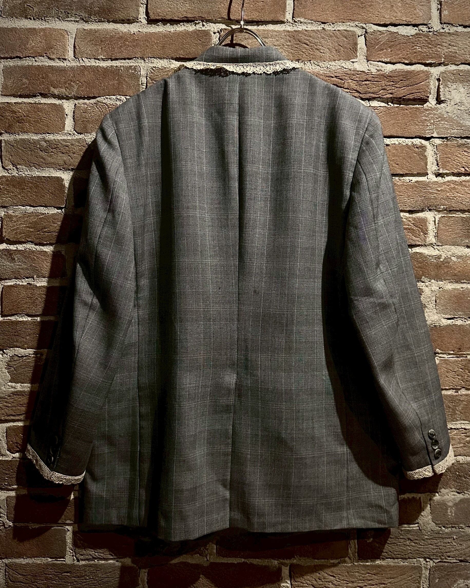 レース地を取り付け、ラペルにはハートのシルバーボタンの装飾でデザインを施し、唯一無二なアイテムへと昇華されています。