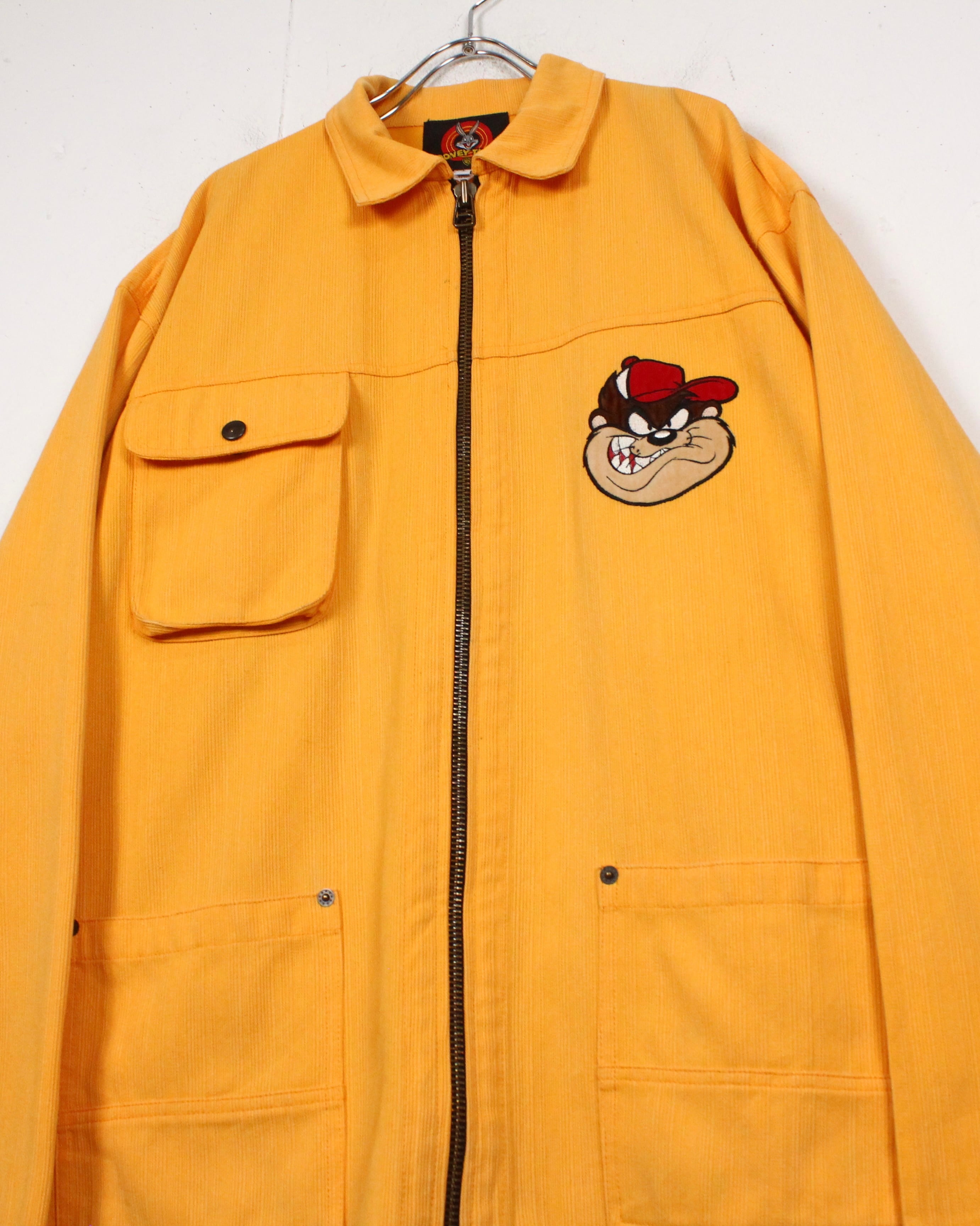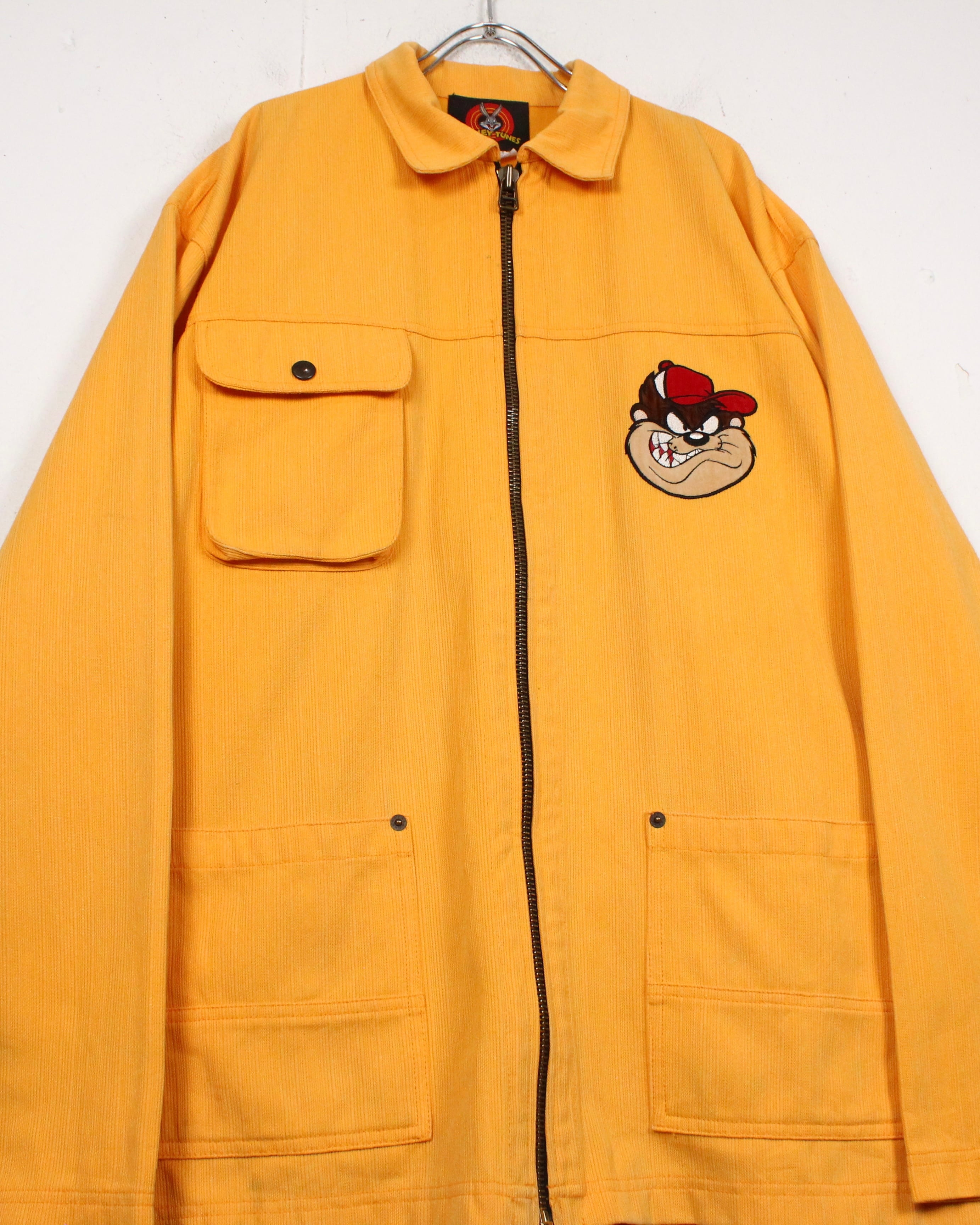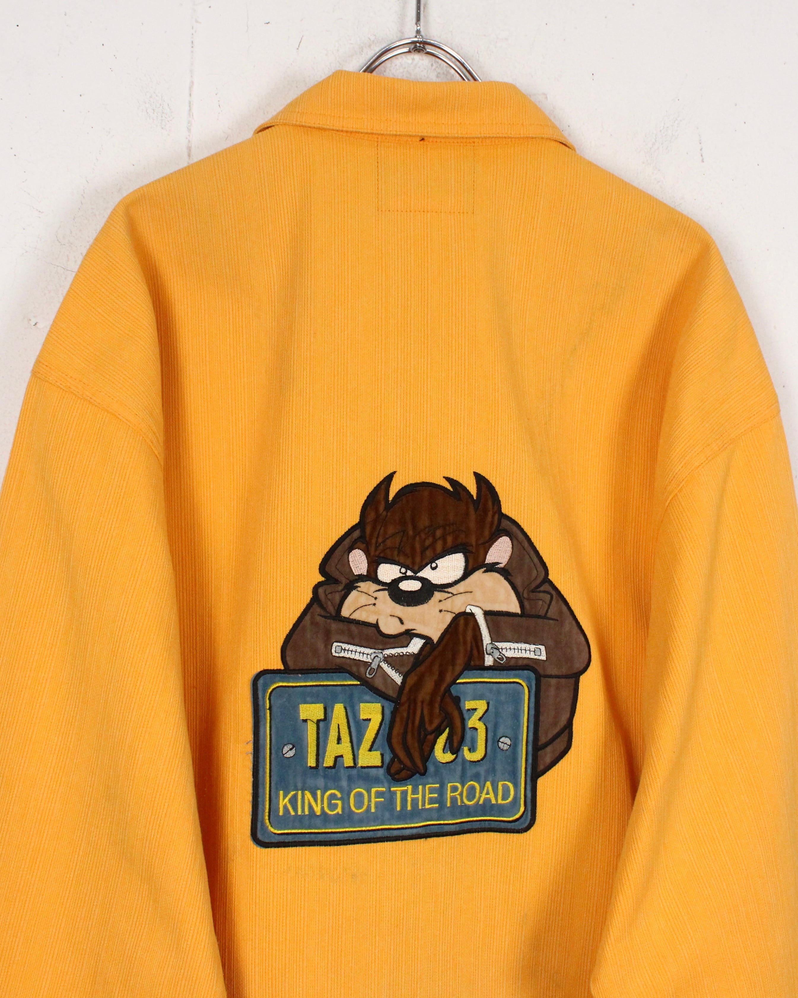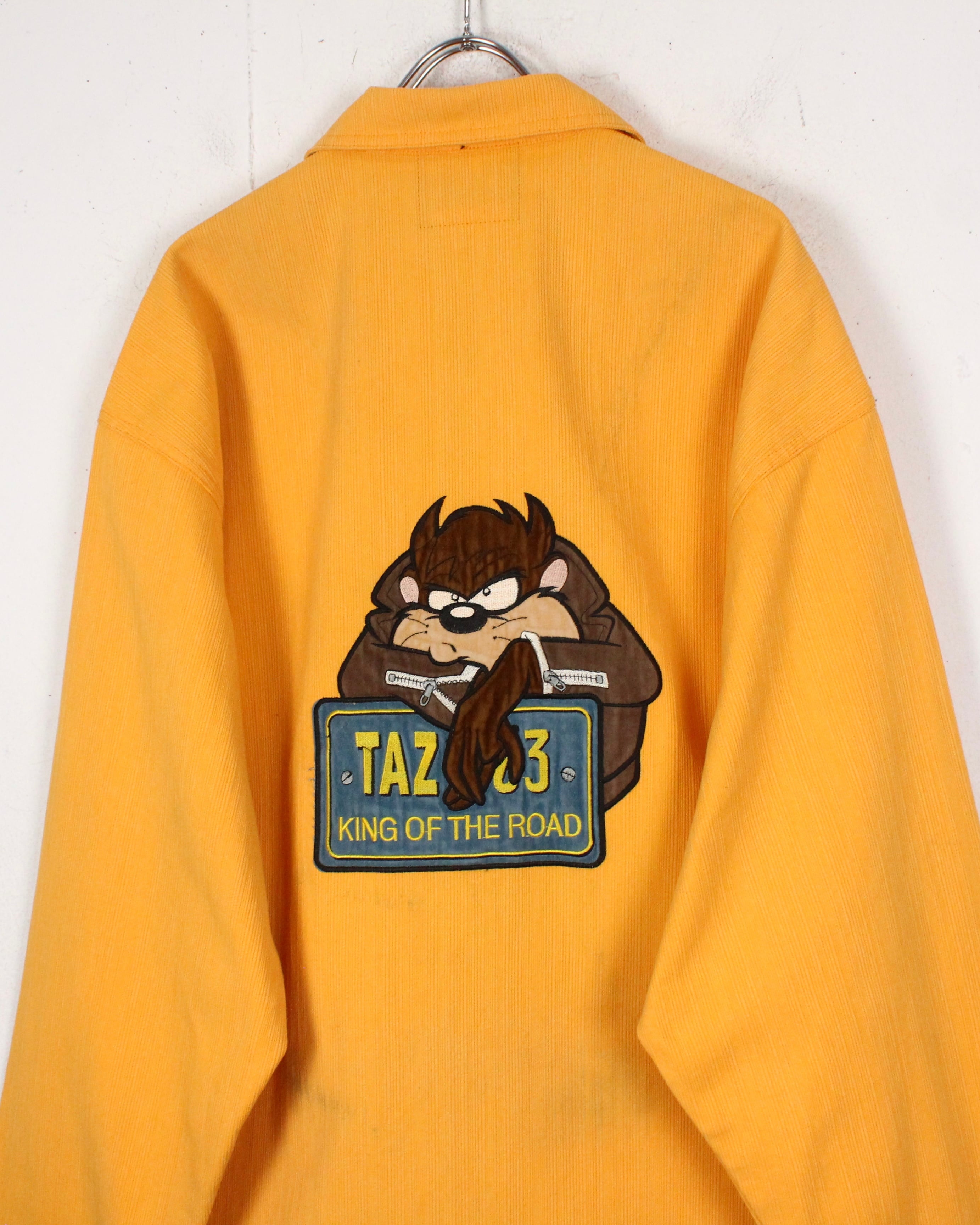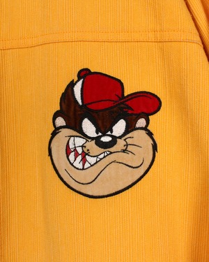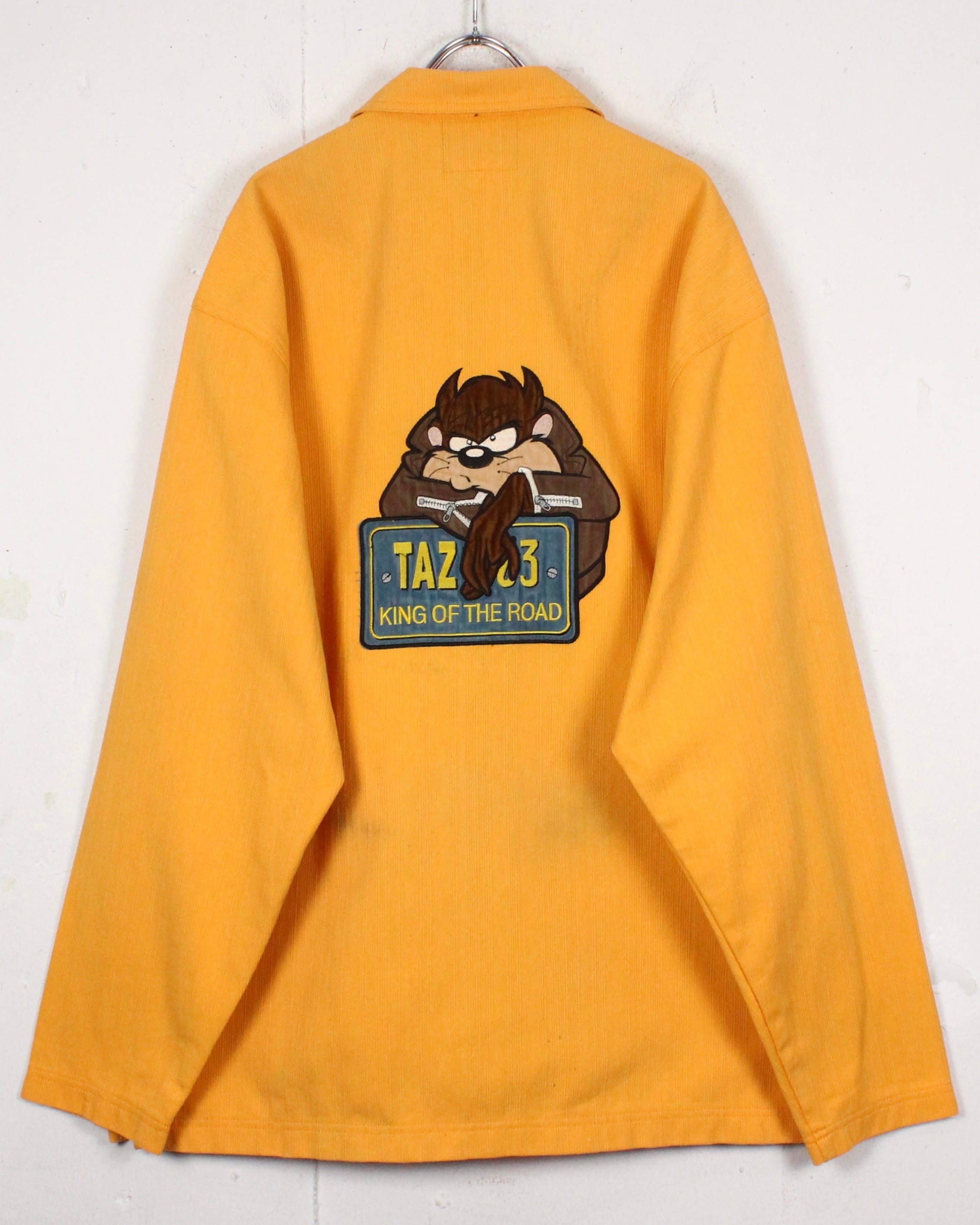 鮮やかな黄色のボディをベースに、アニメに登場するキャラクター"タズマニアンデビル"をワッペンで載せたジャケット。