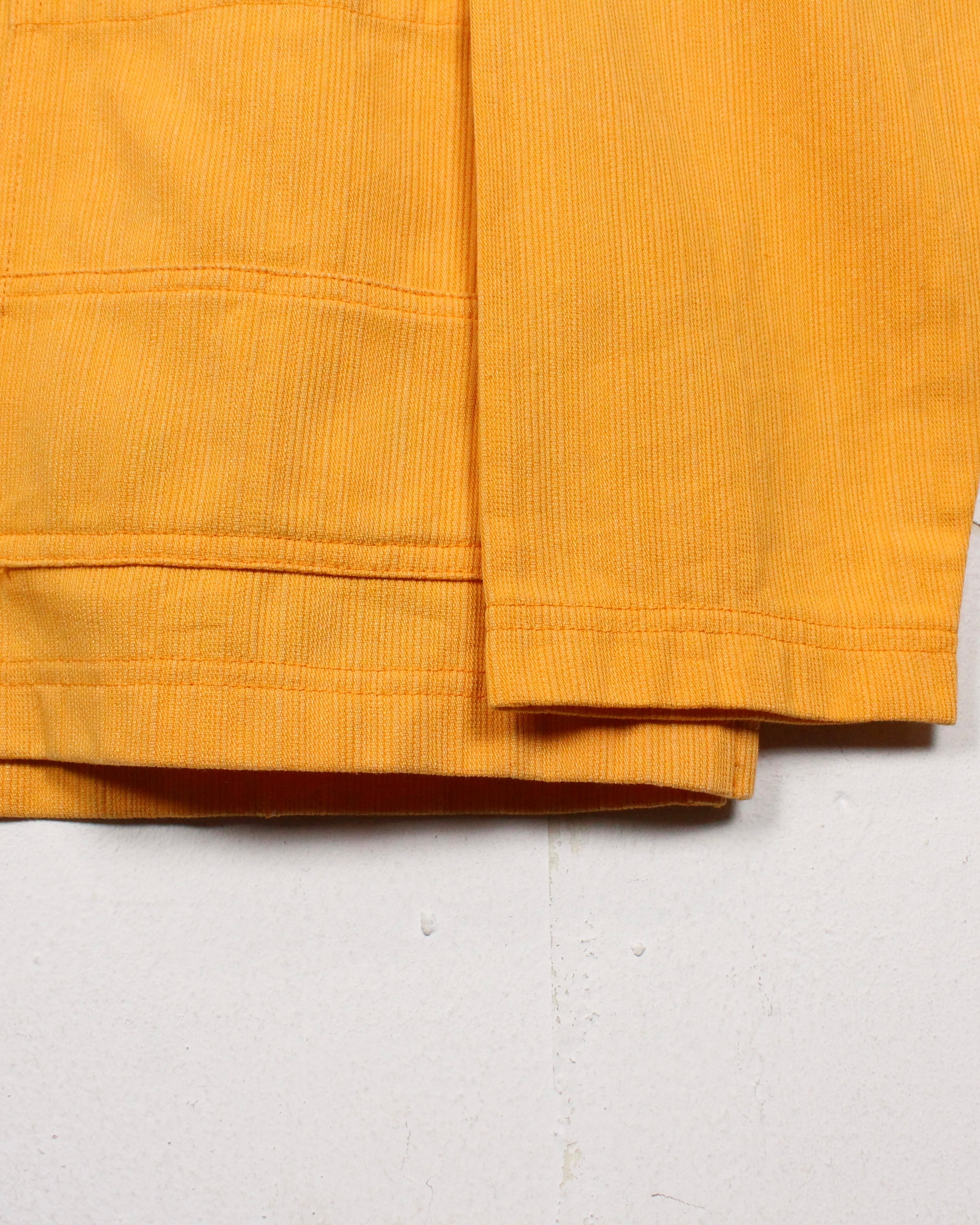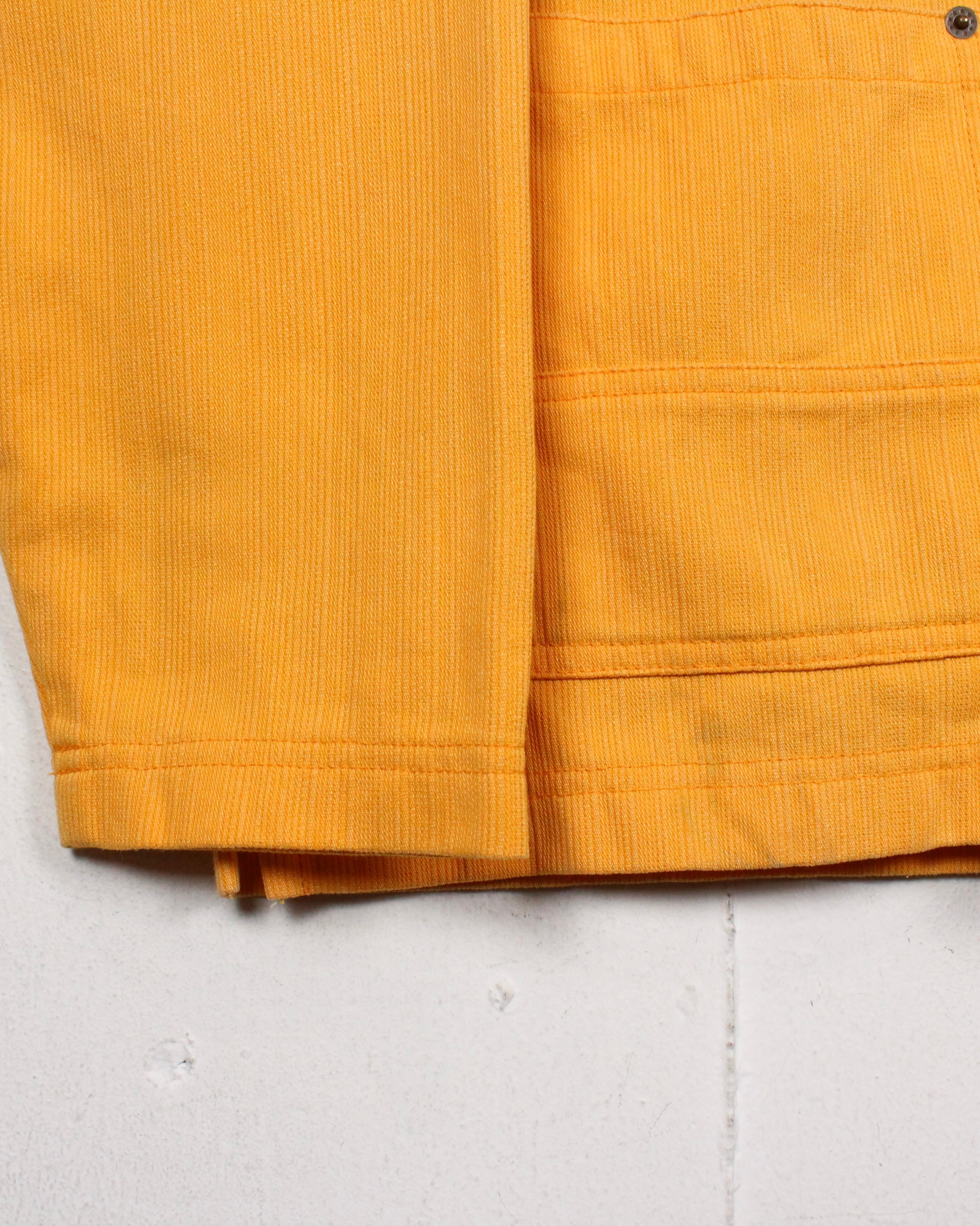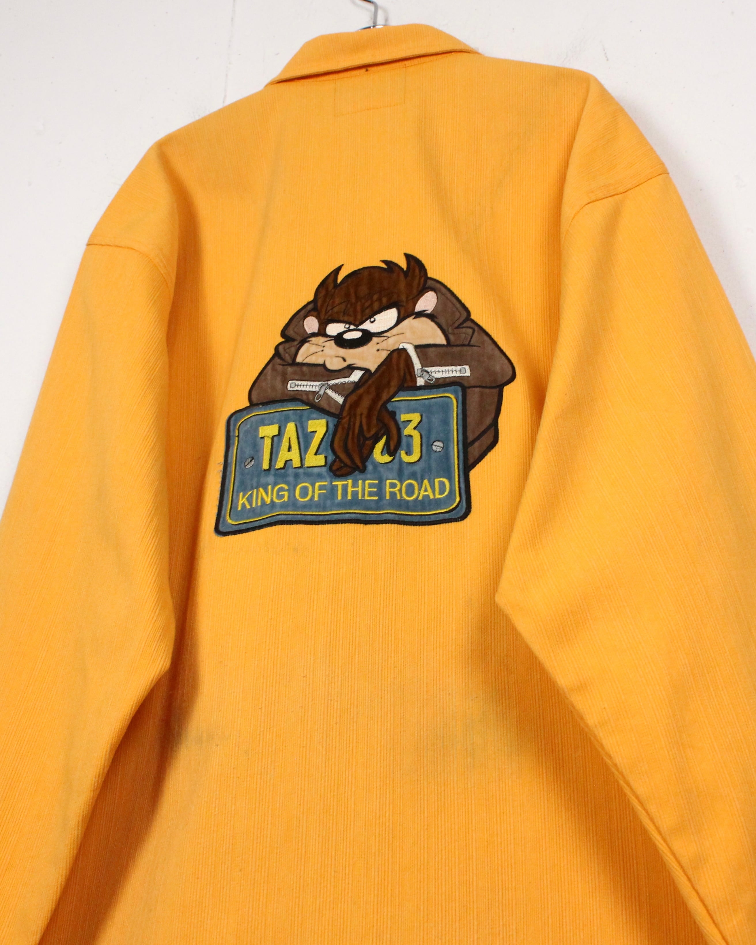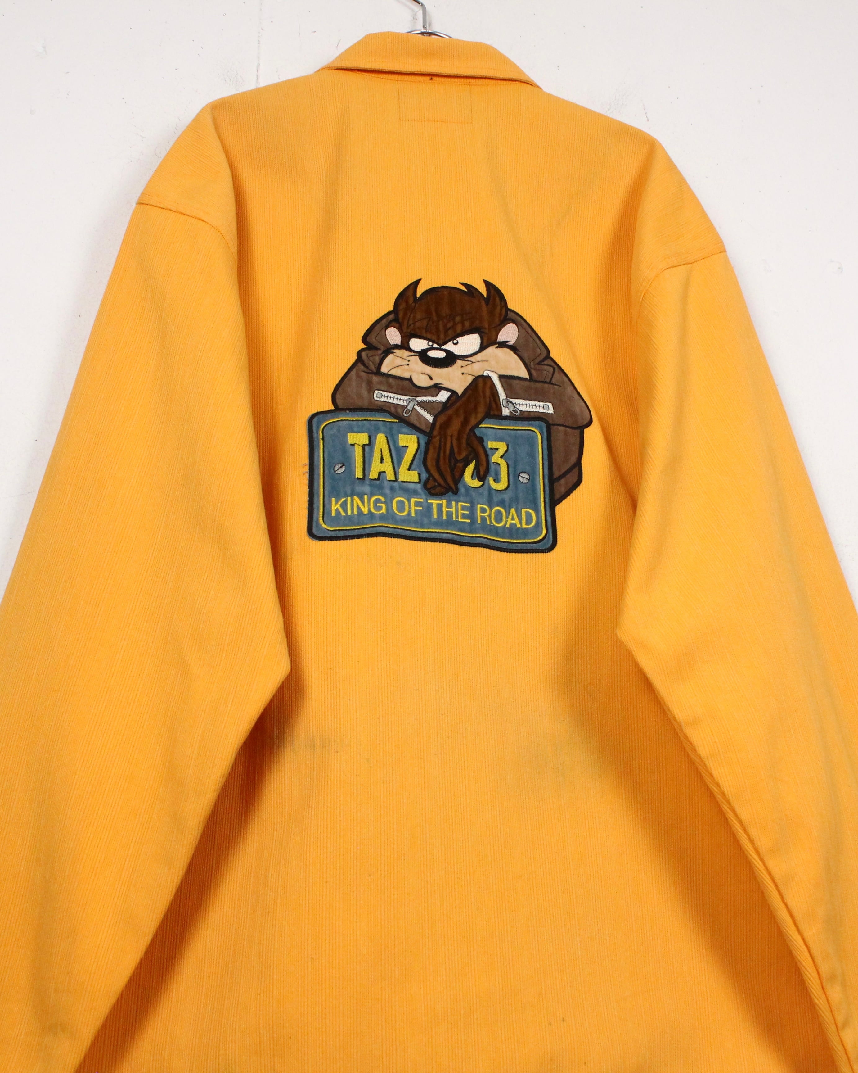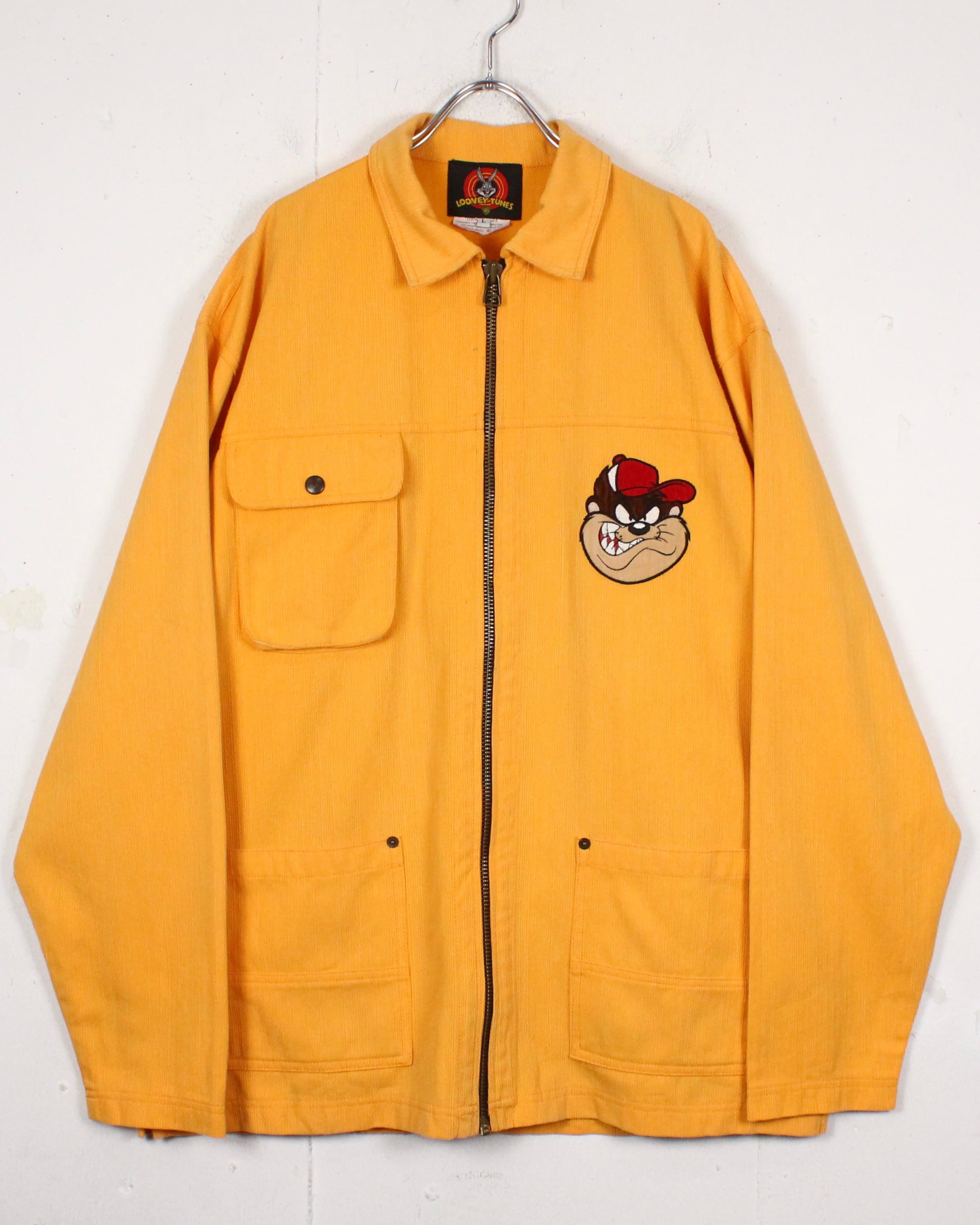 鮮やかな黄色のボディをベースに、アニメに登場するキャラクター"タズマニアンデビル"をワッペンで載せたジャケット。