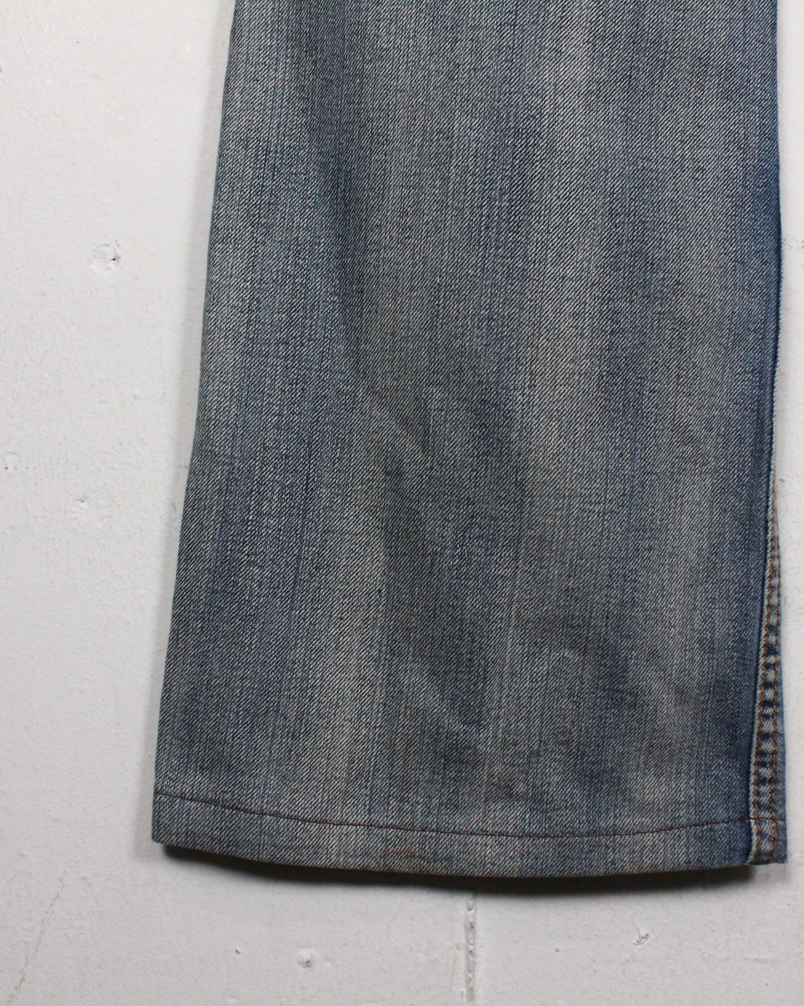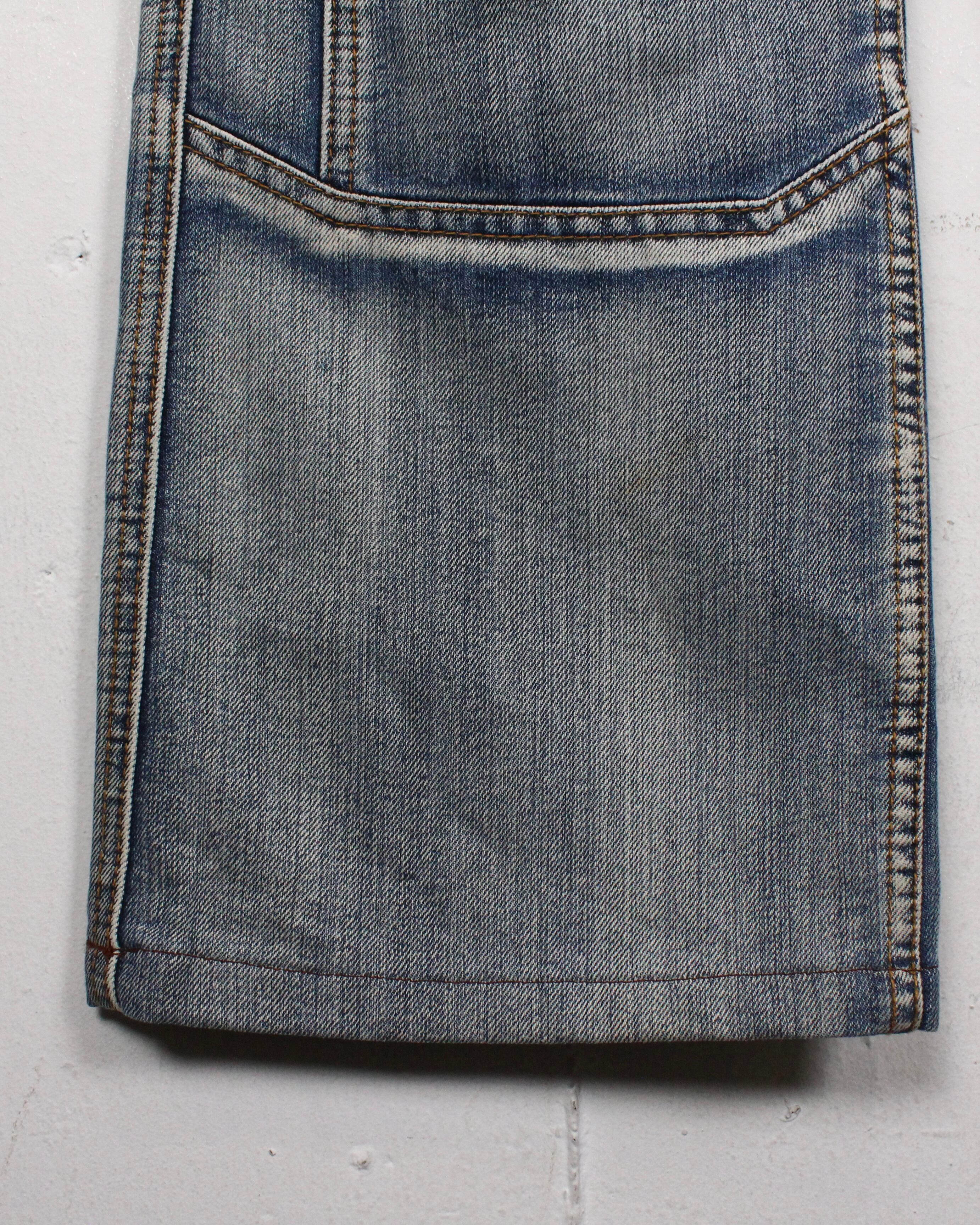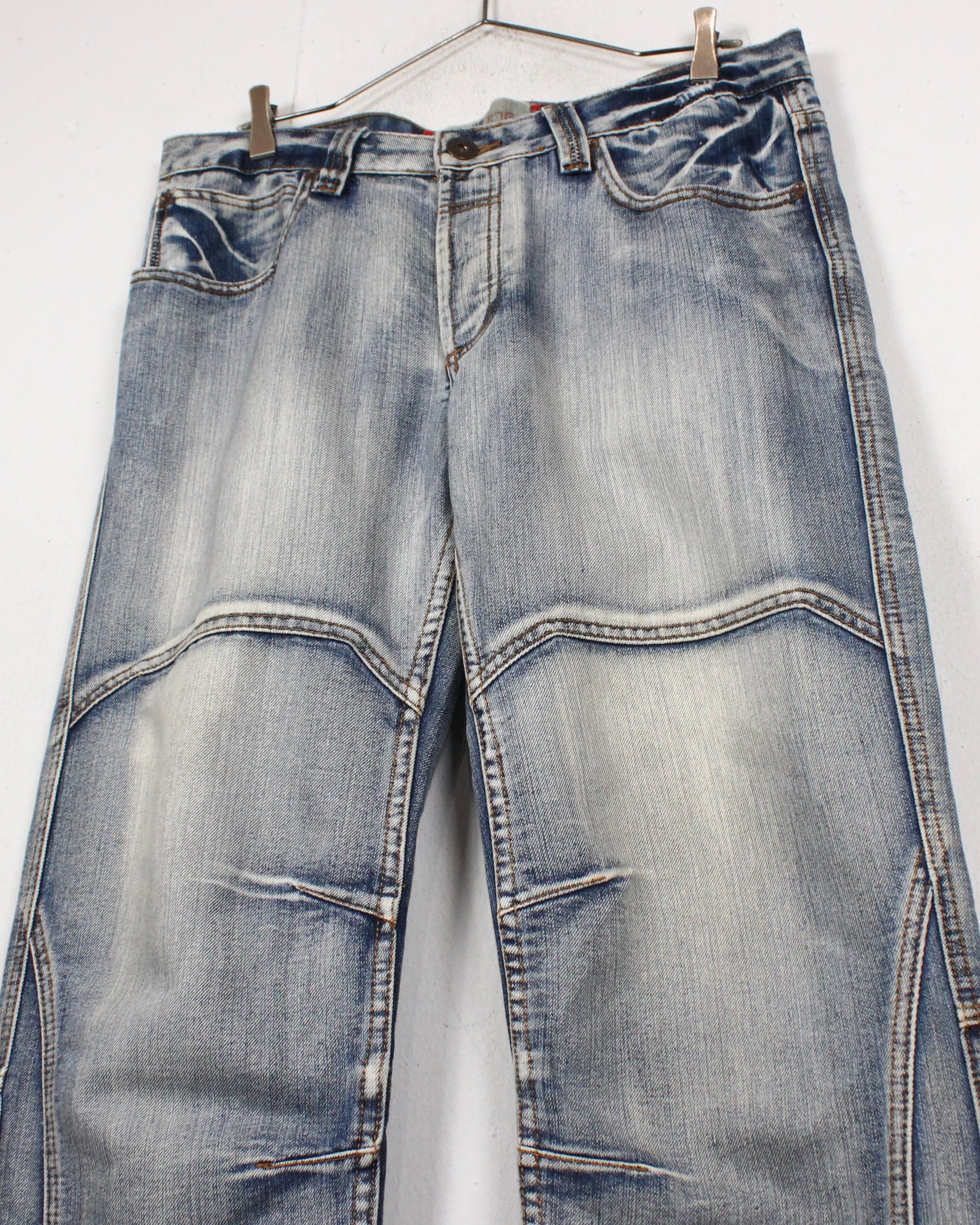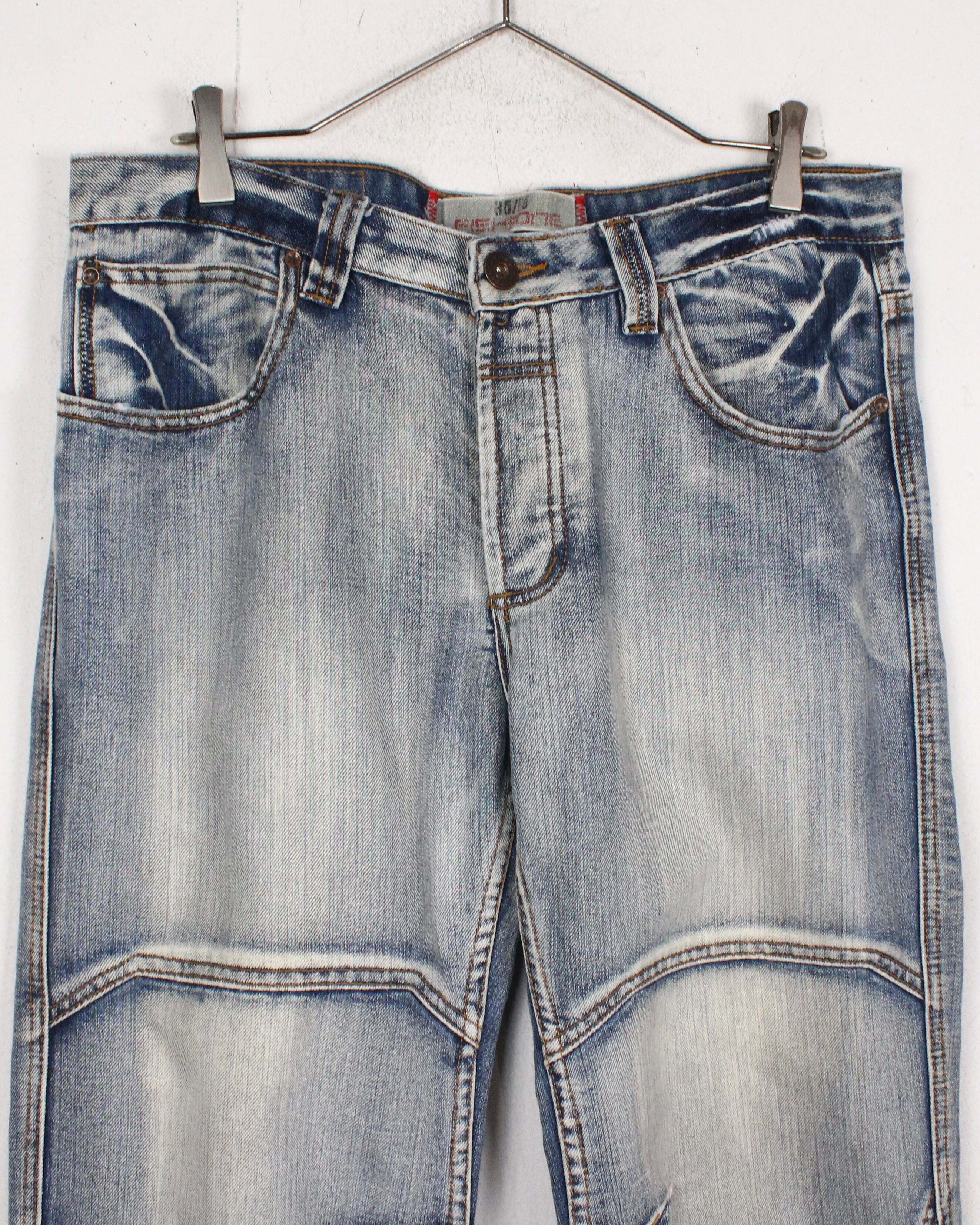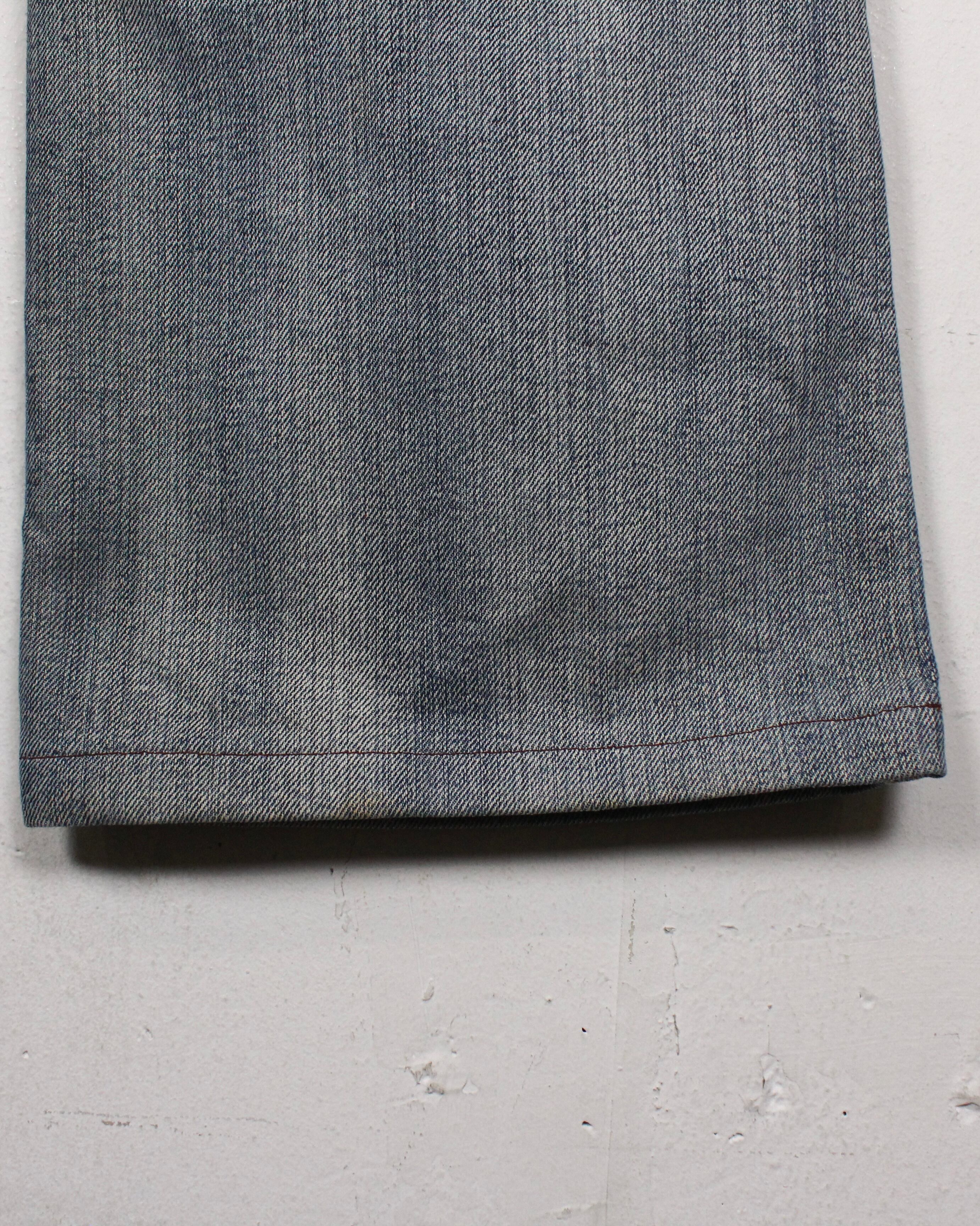自然に色落ちしたような、フェード加工を施したダブルニー仕様のデニムパンツ。