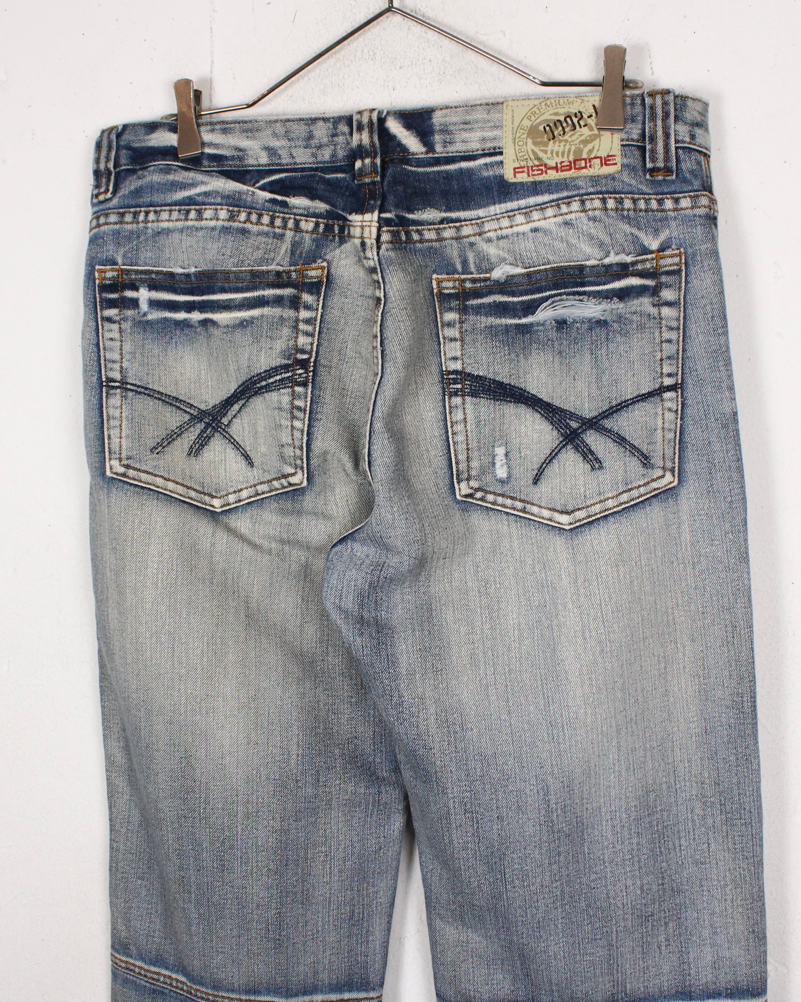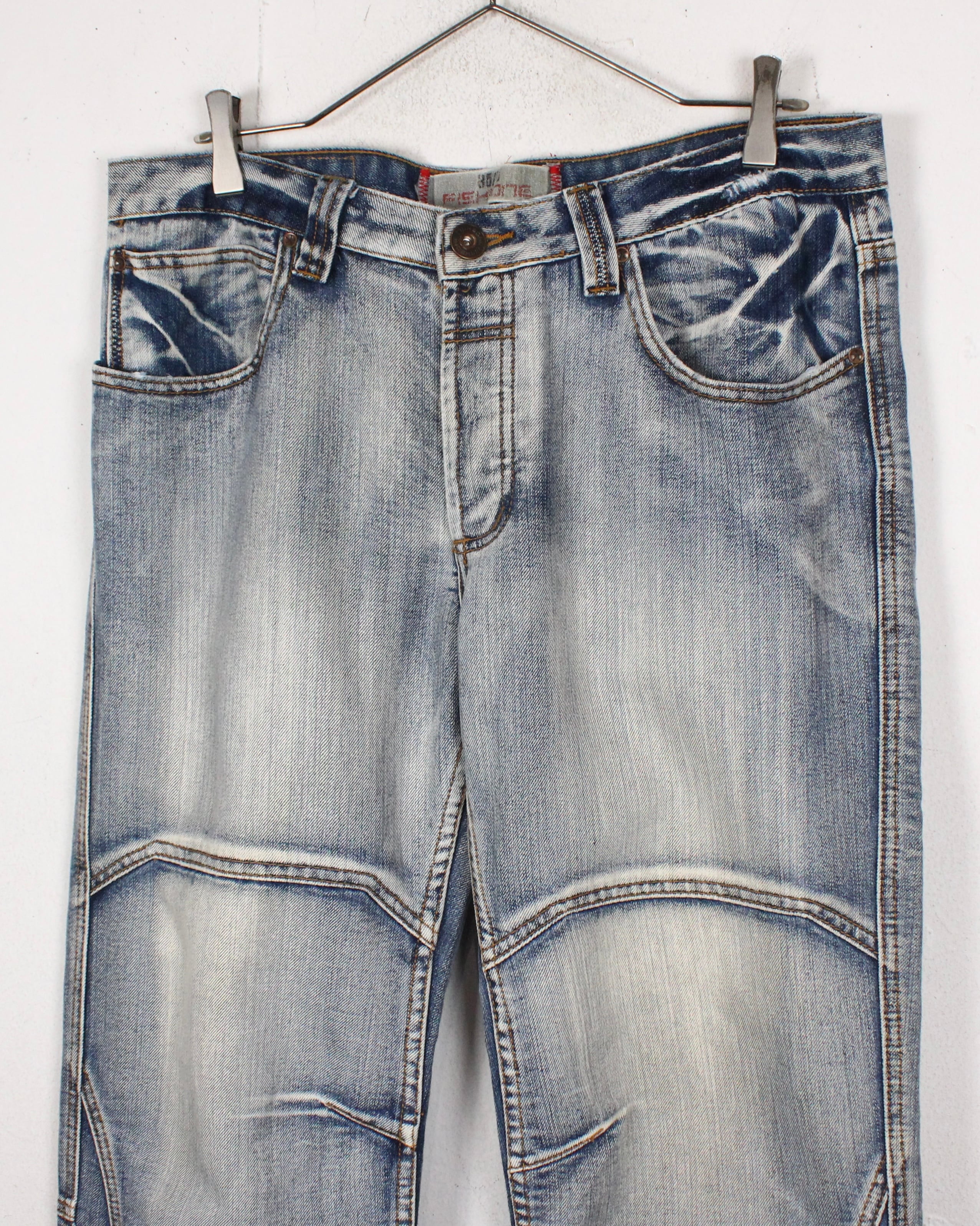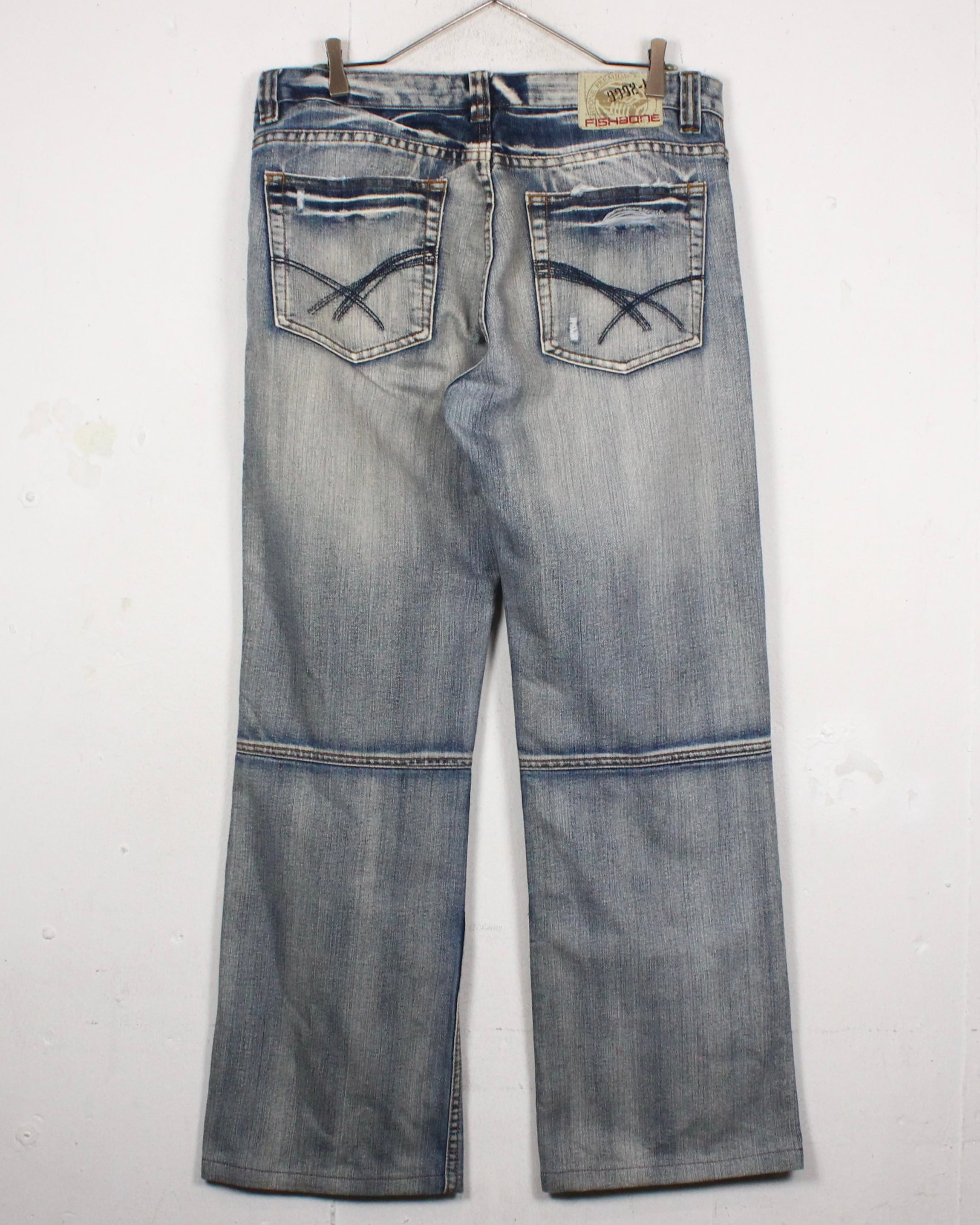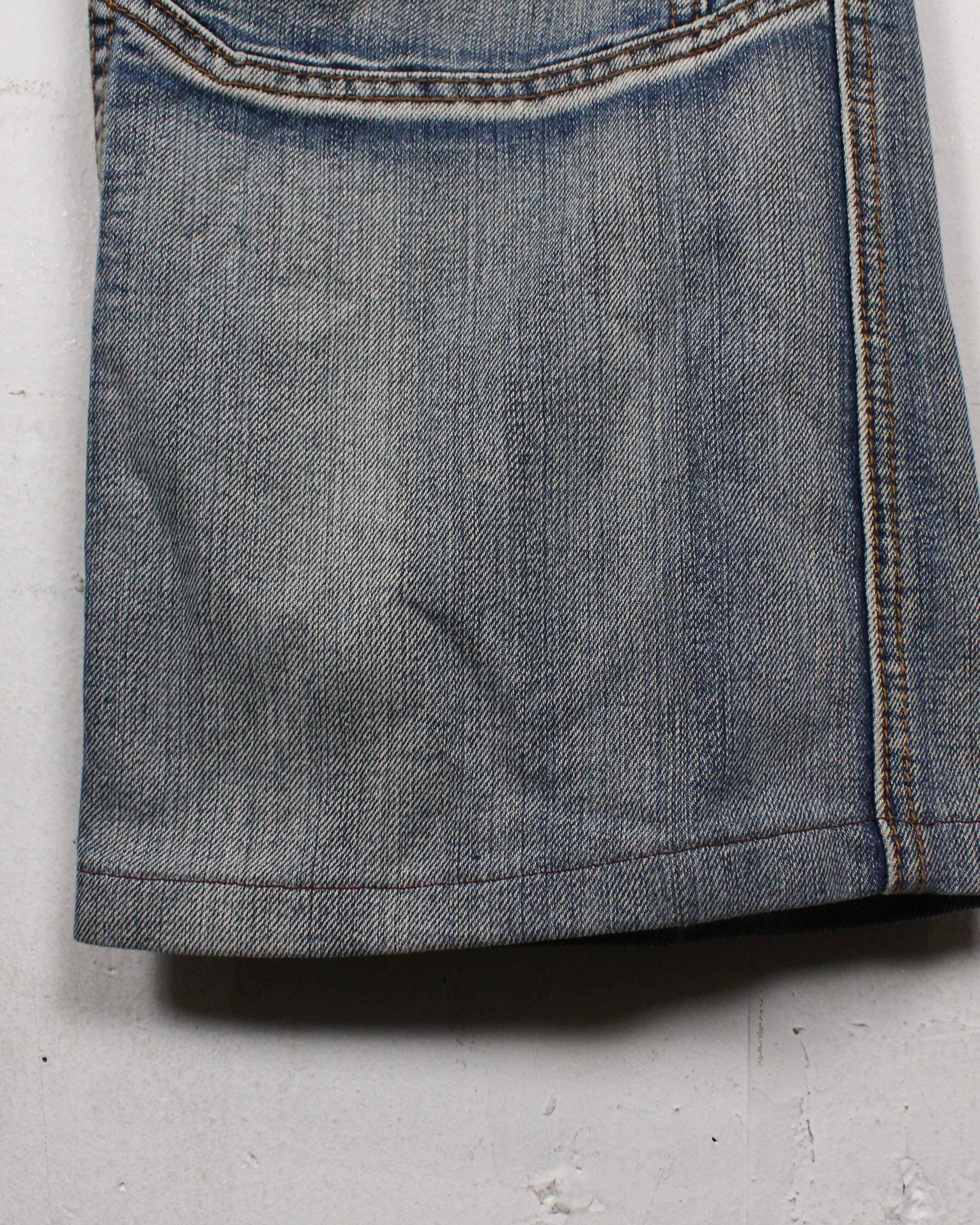 自然に色落ちしたような、フェード加工を施したダブルニー仕様のデニムパンツ。