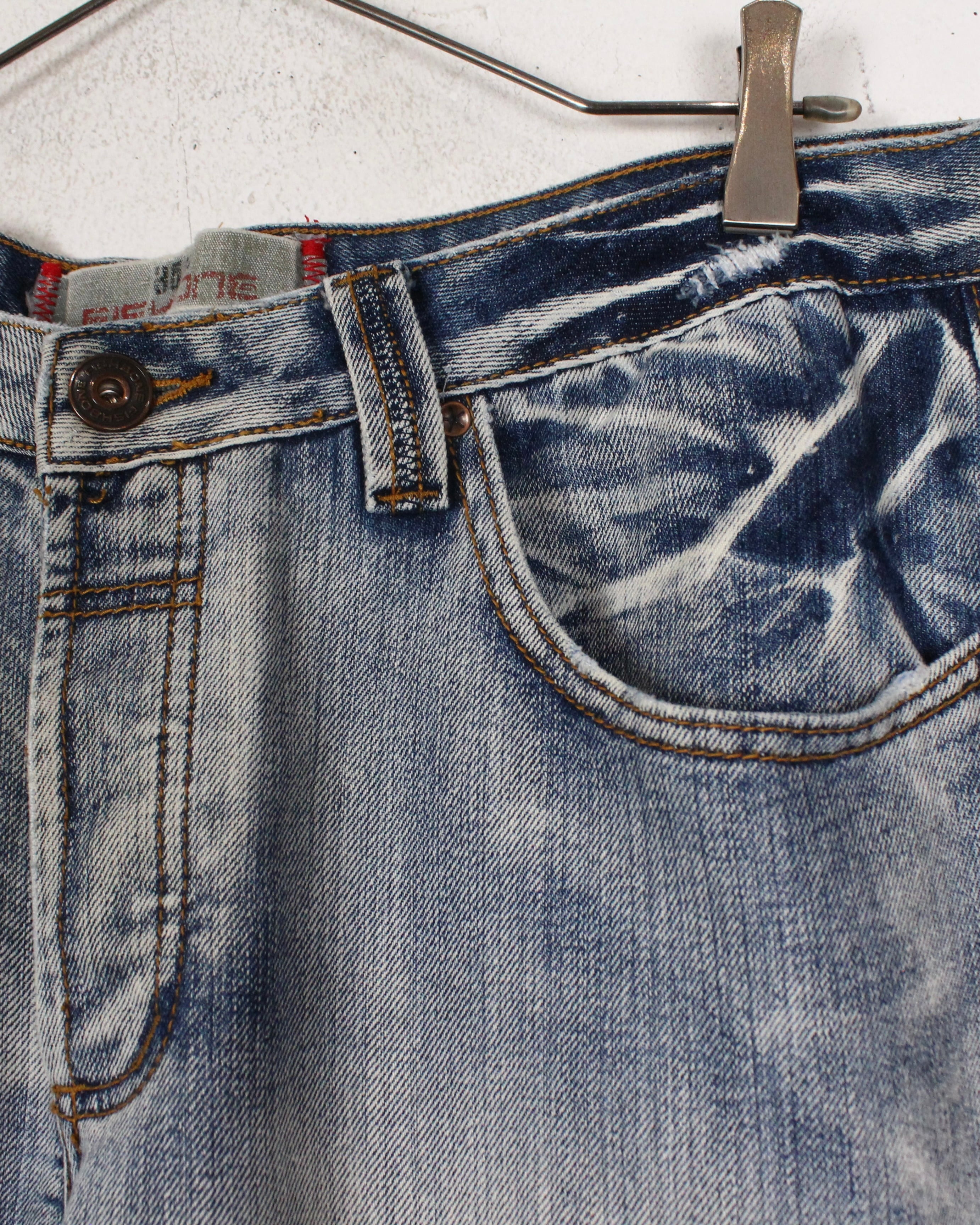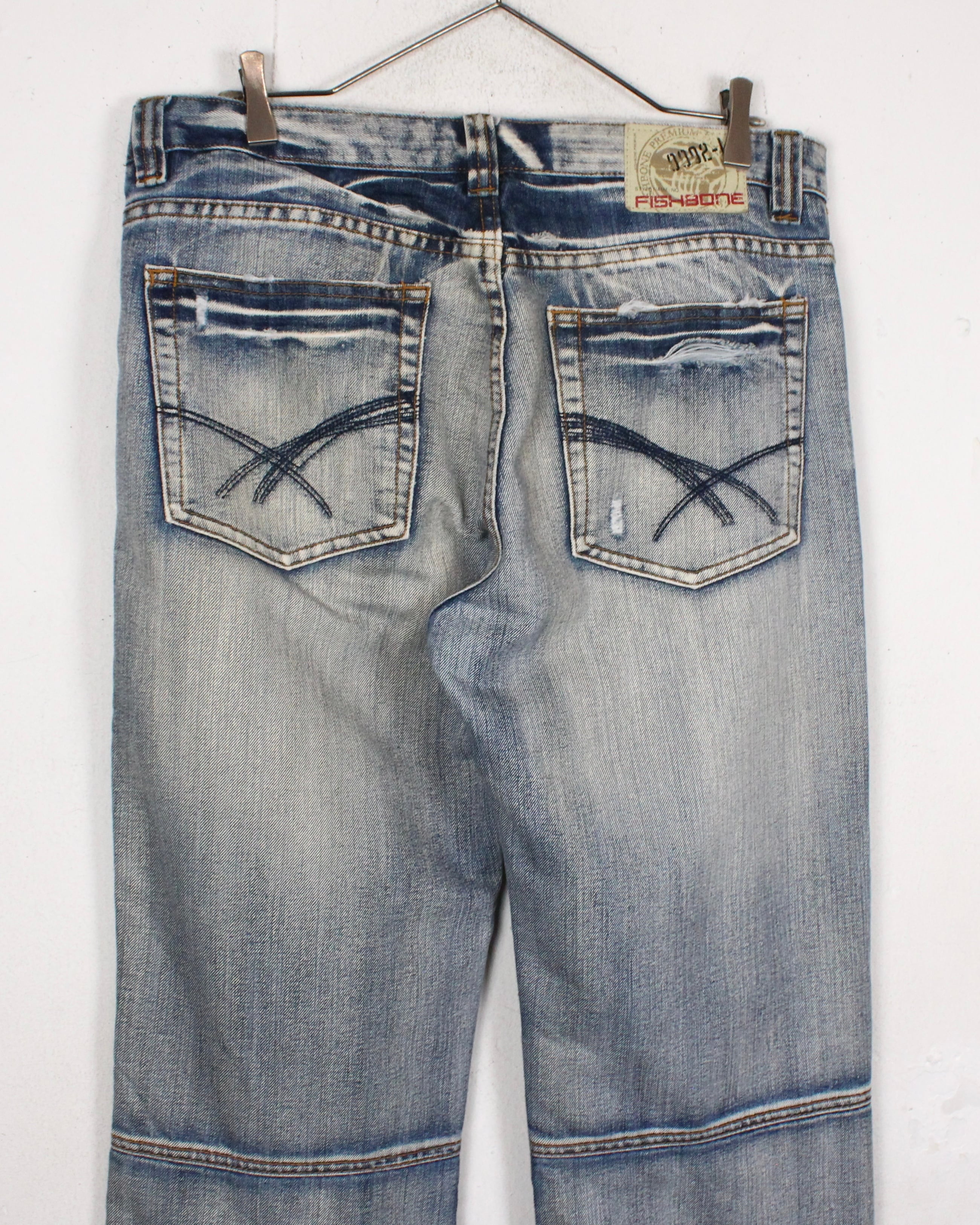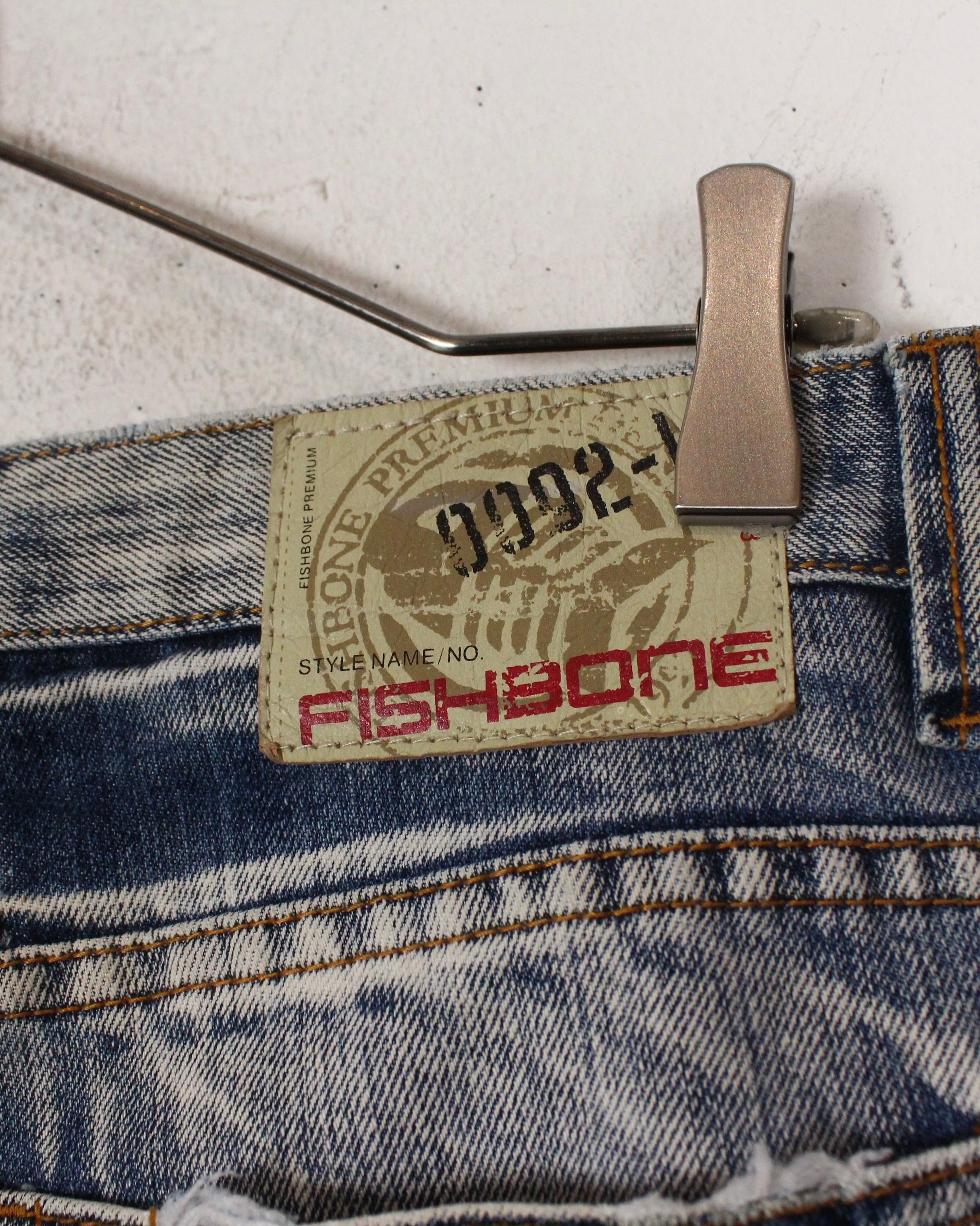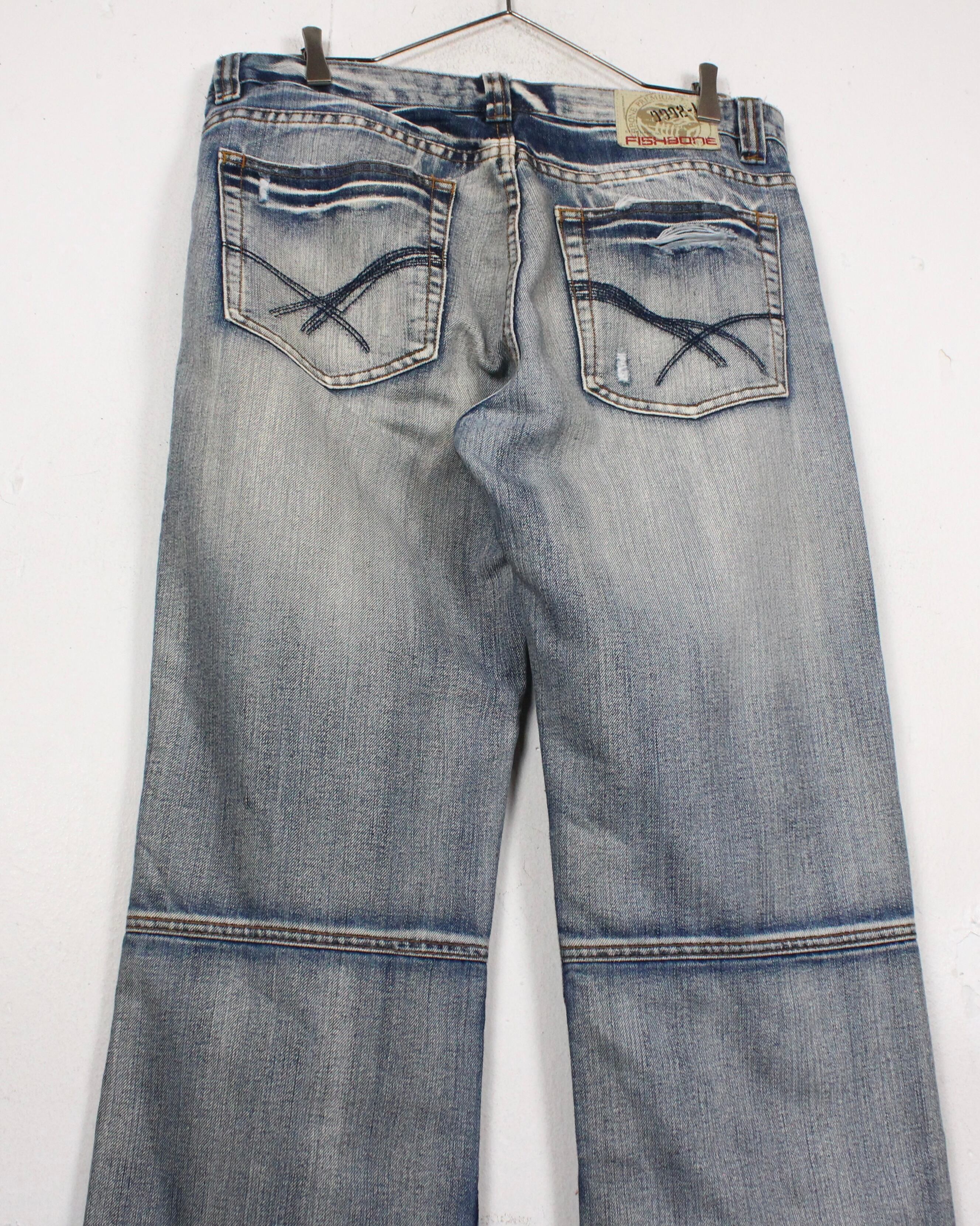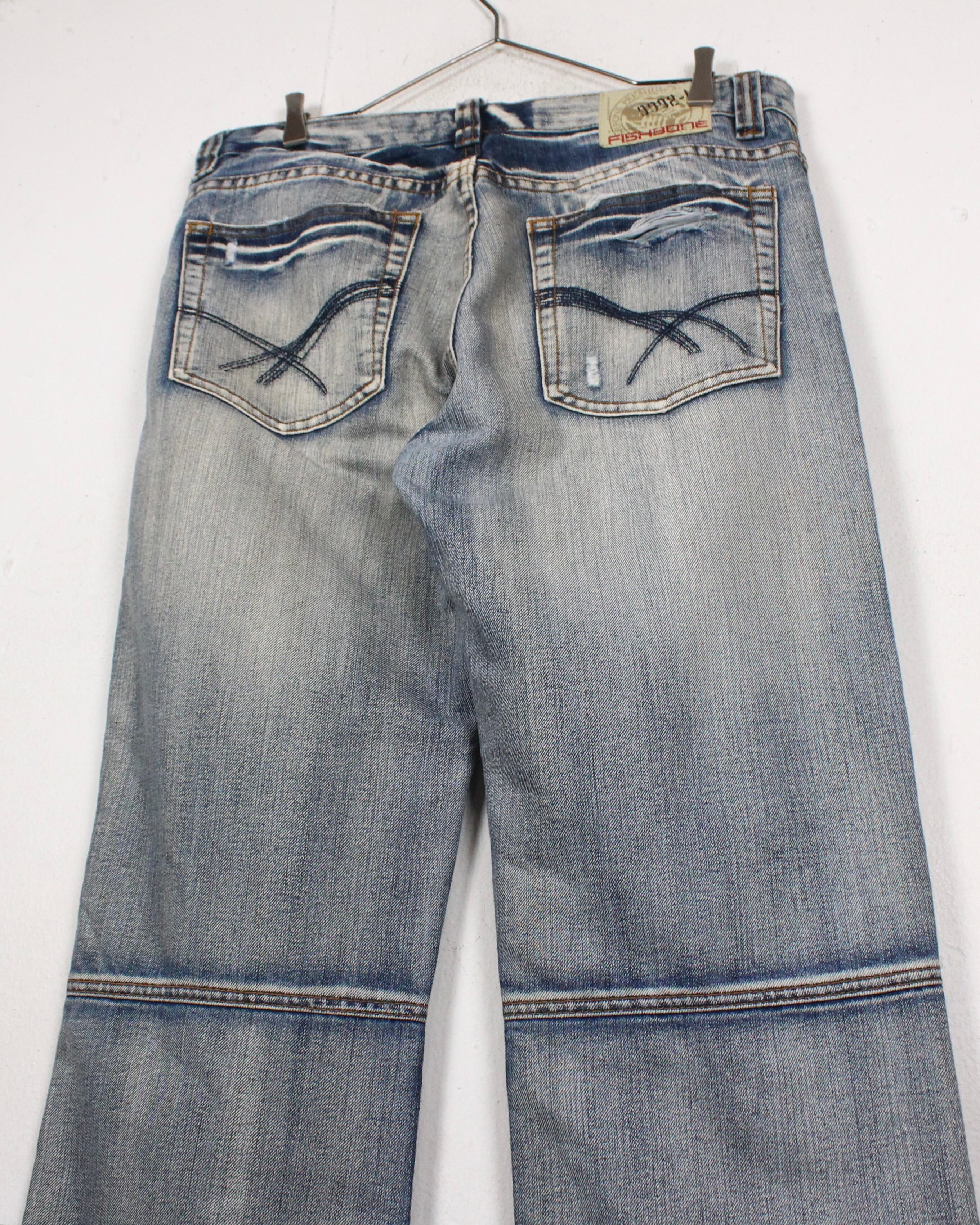 自然に色落ちしたような、フェード加工を施したダブルニー仕様のデニムパンツ。