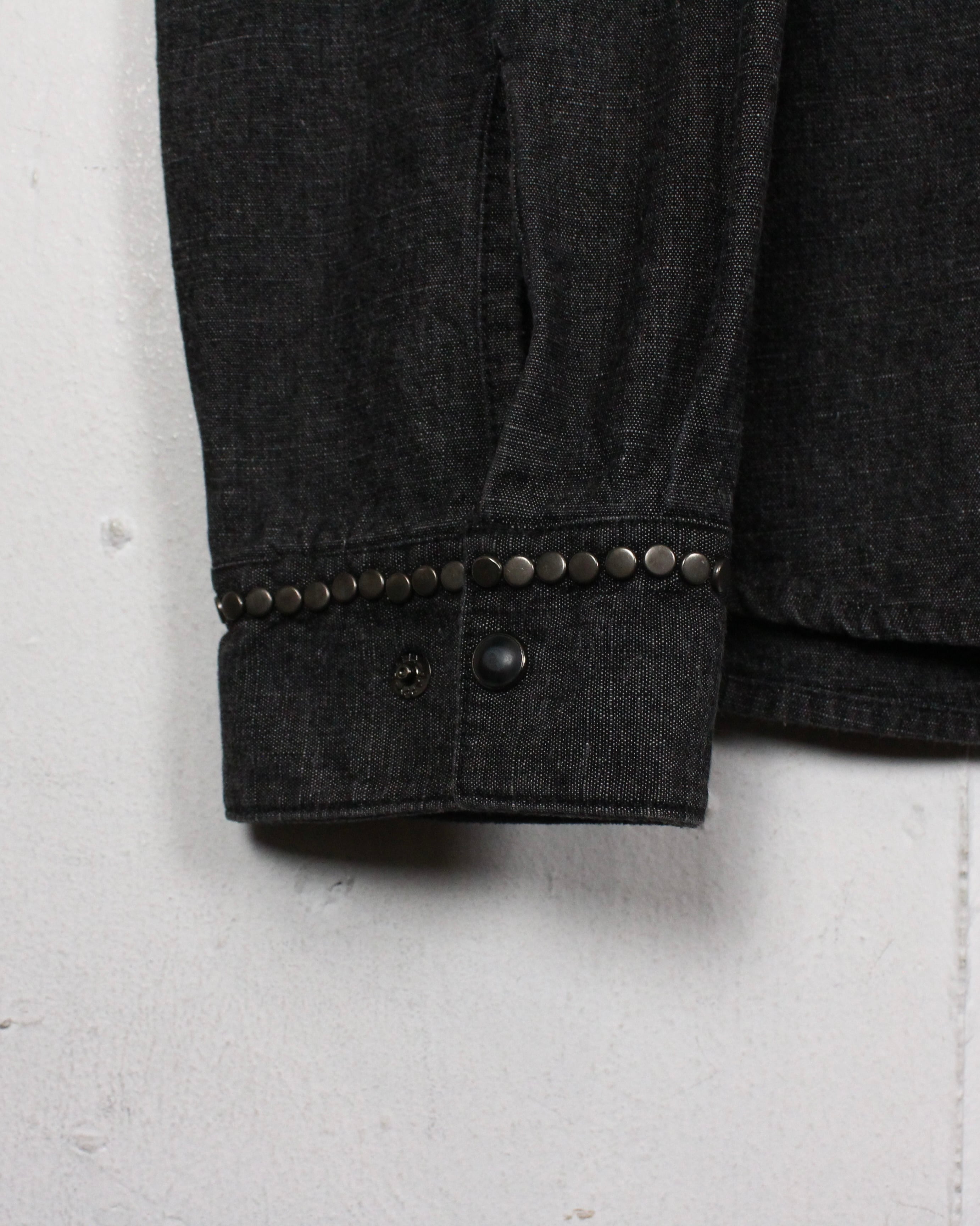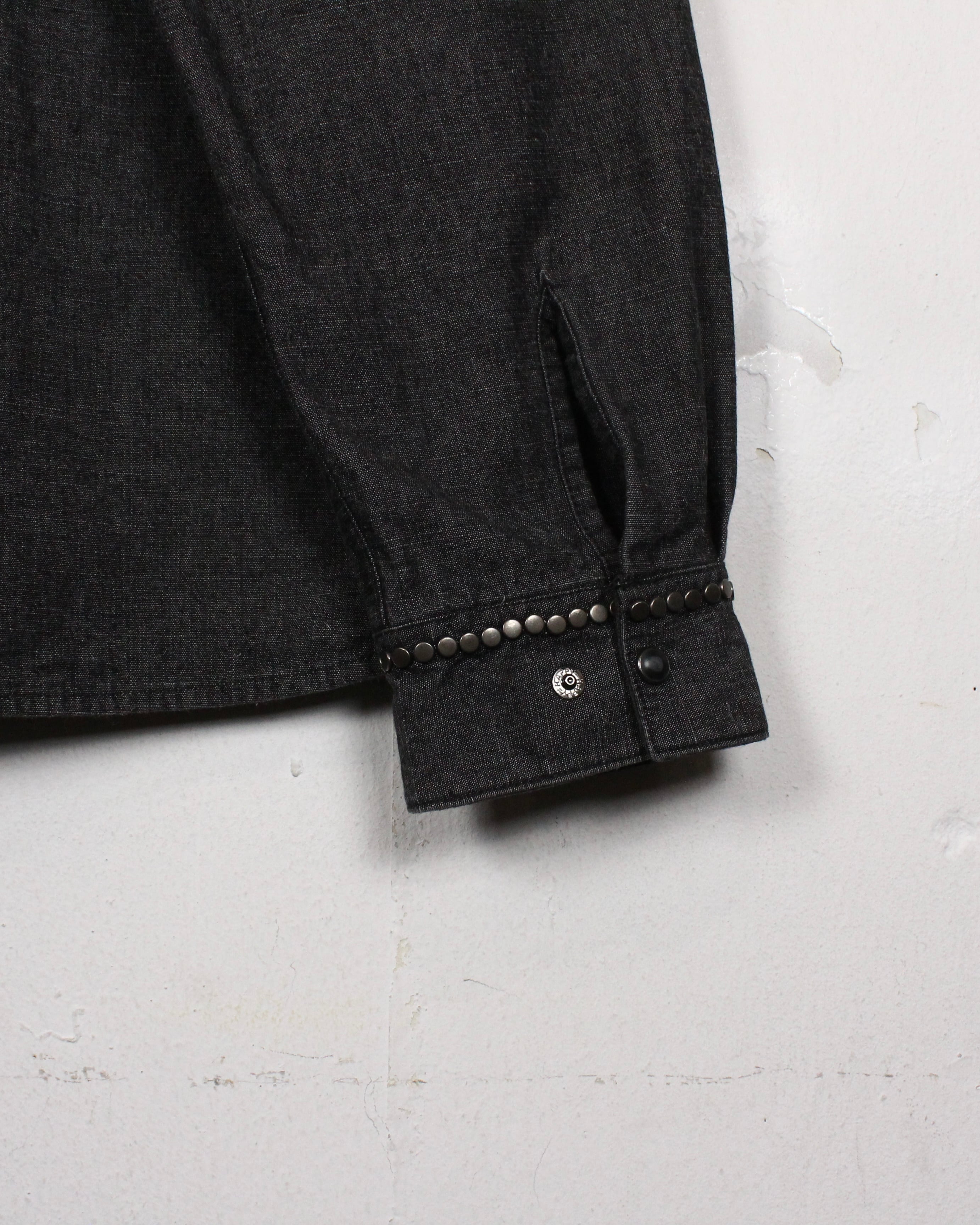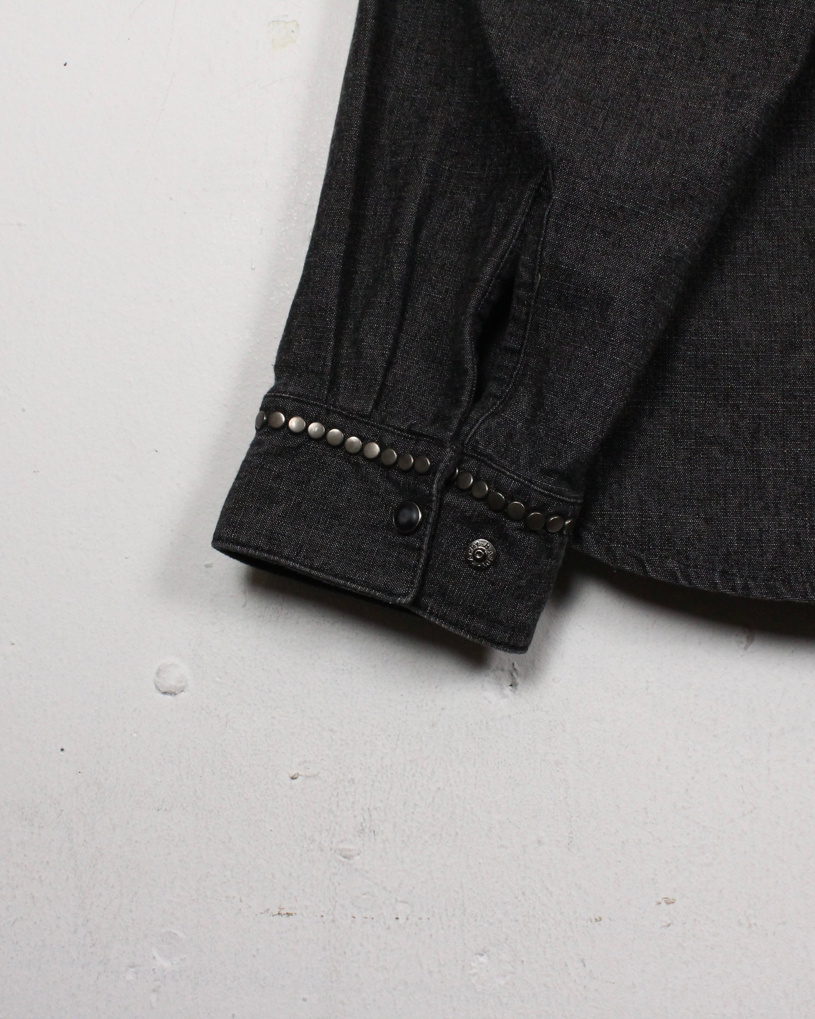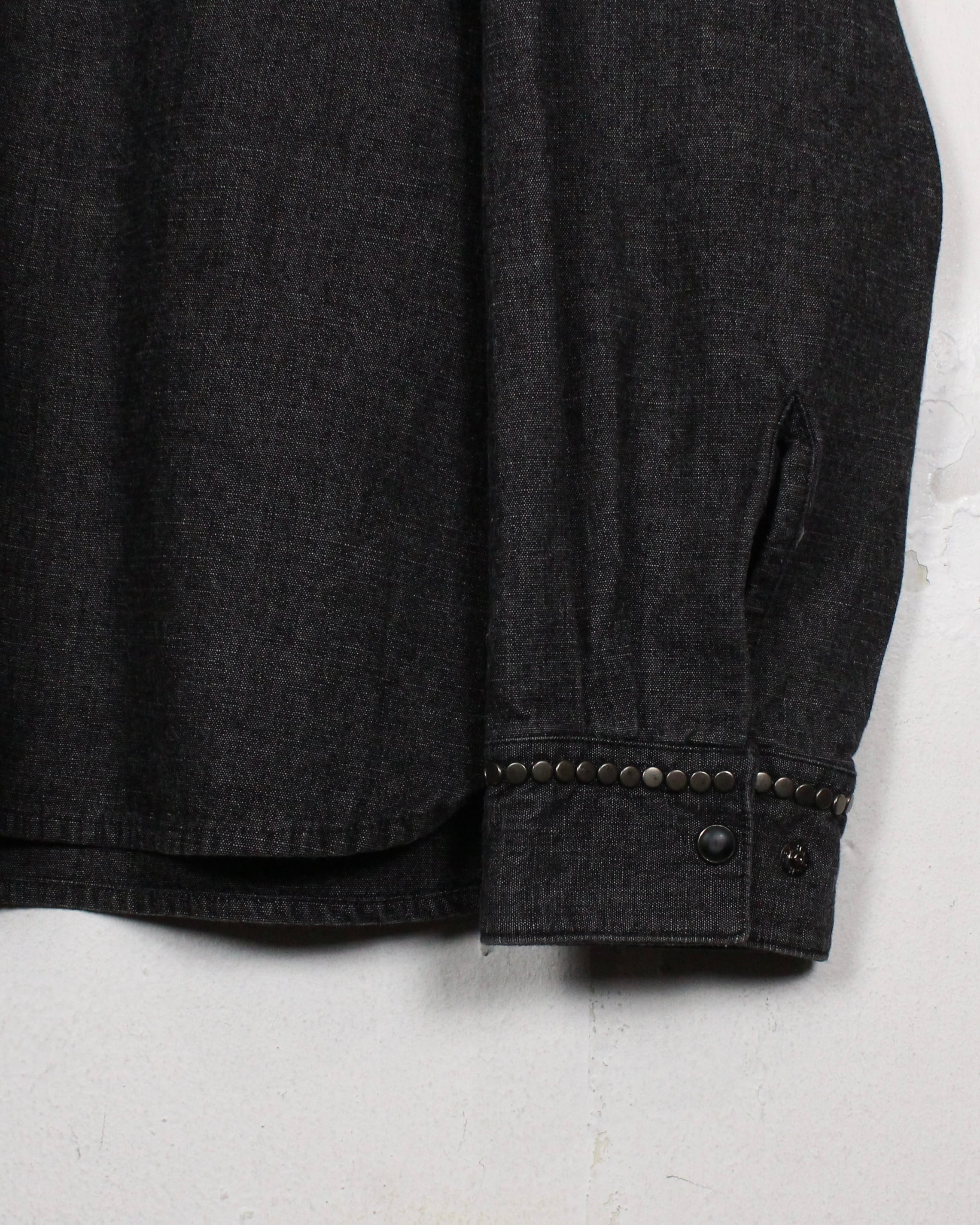 深い風合いを漂わせるコットンシャンブレー生地を使用したボディに、スタッズで装飾を載せた長袖シャツ。