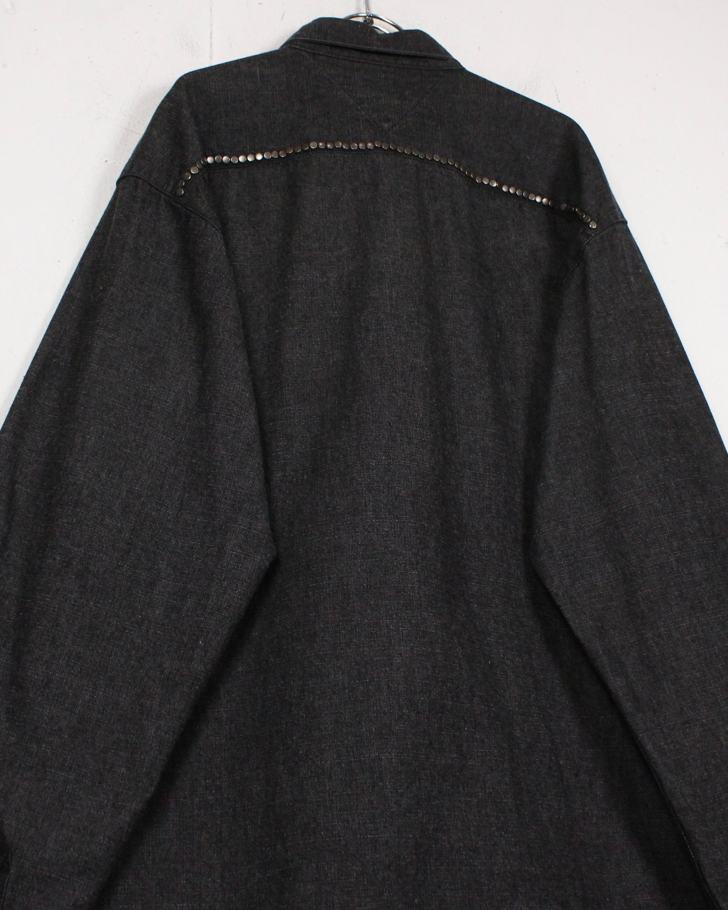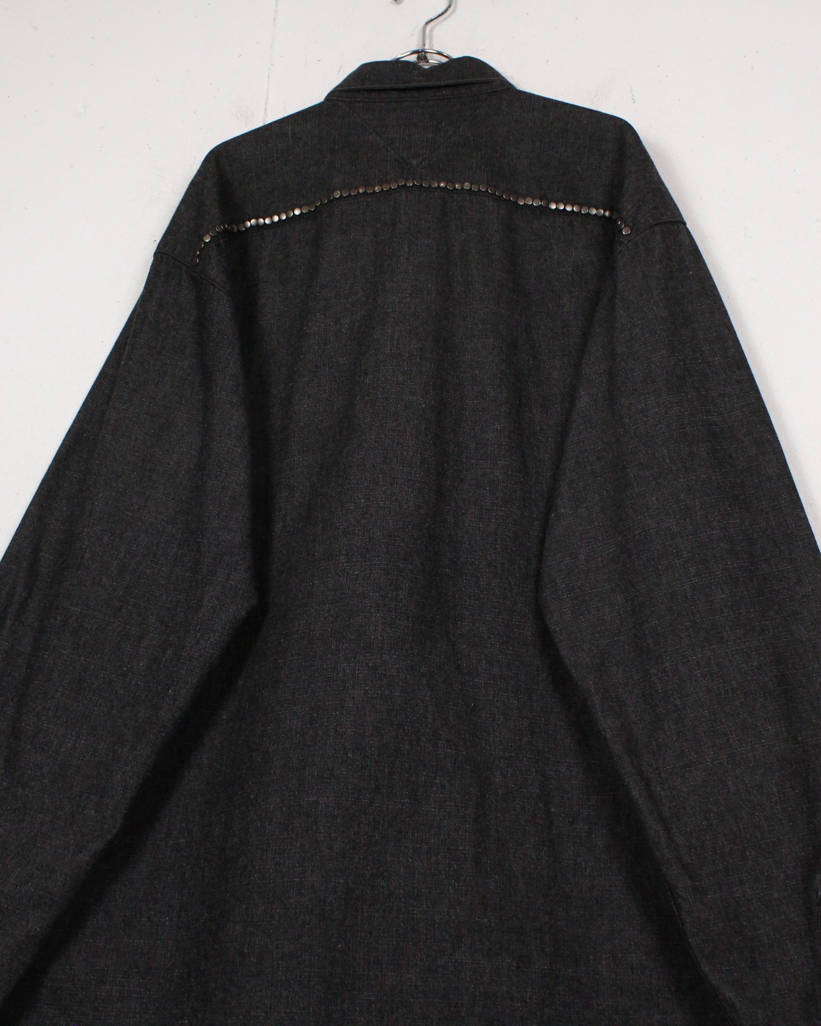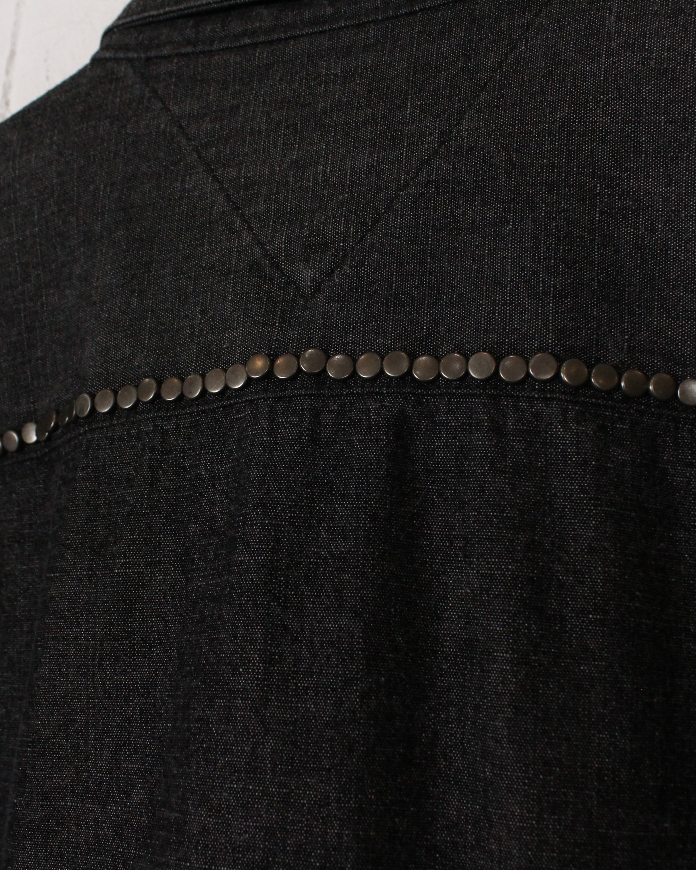 深い風合いを漂わせるコットンシャンブレー生地を使用したボディに、スタッズで装飾を載せた長袖シャツ。