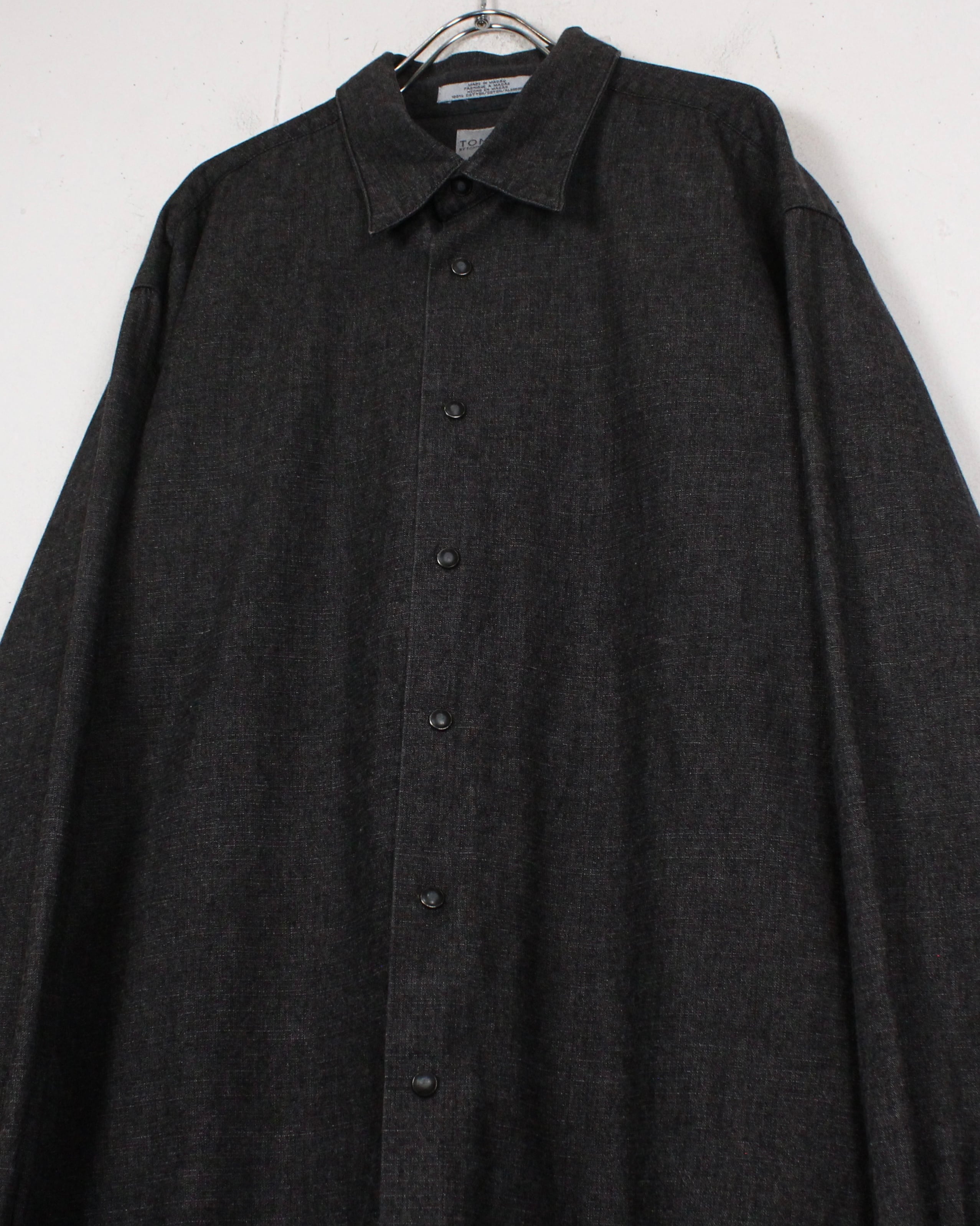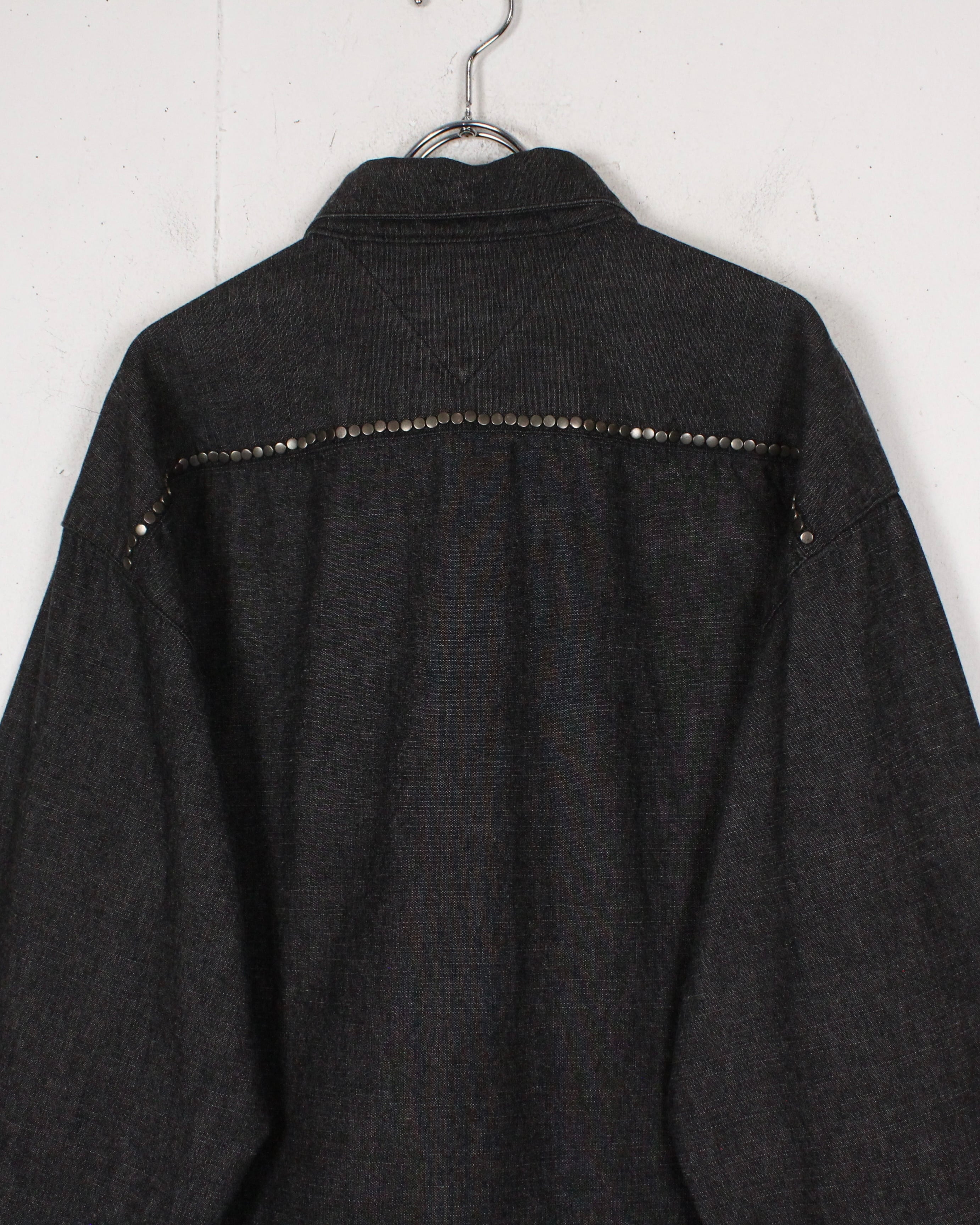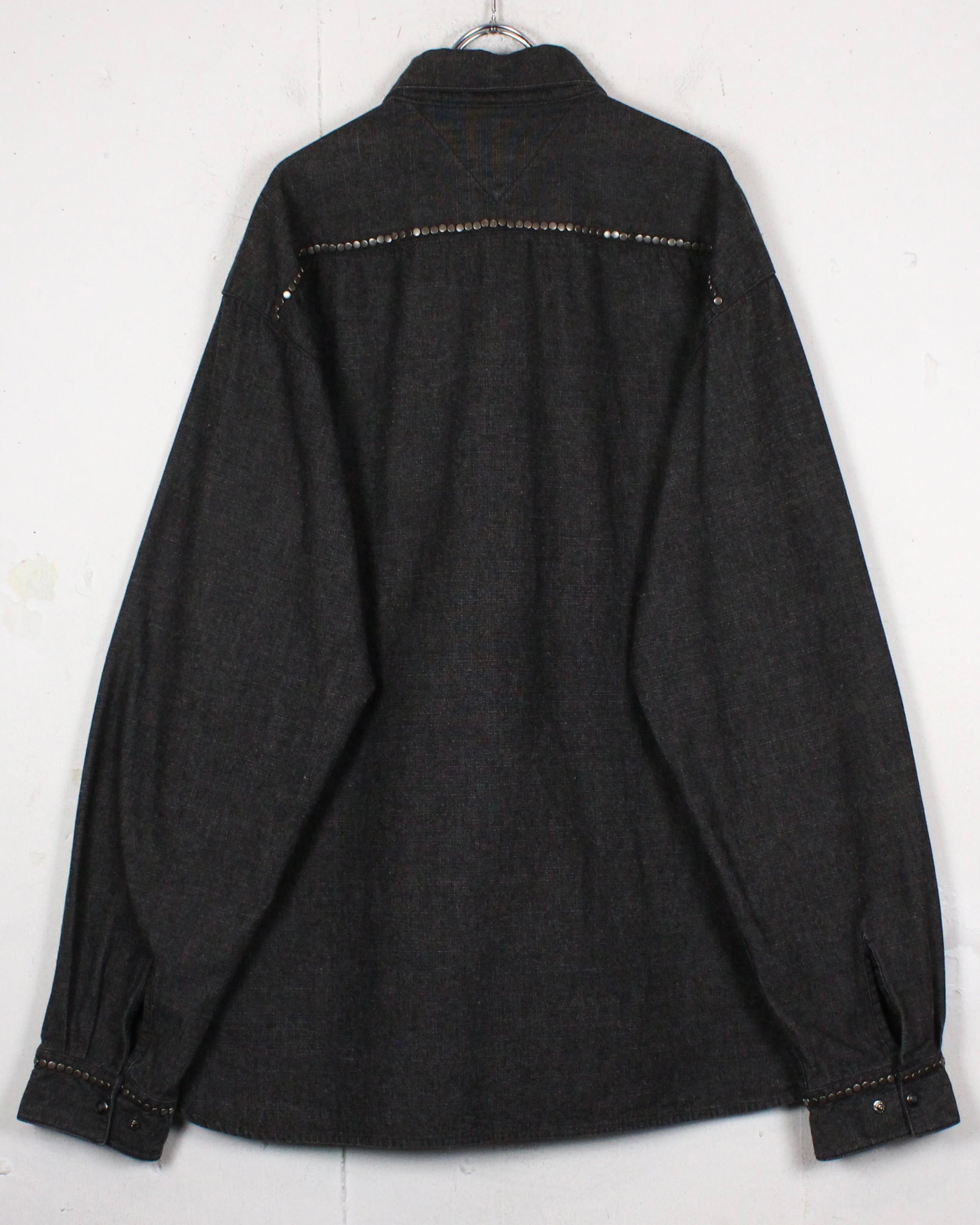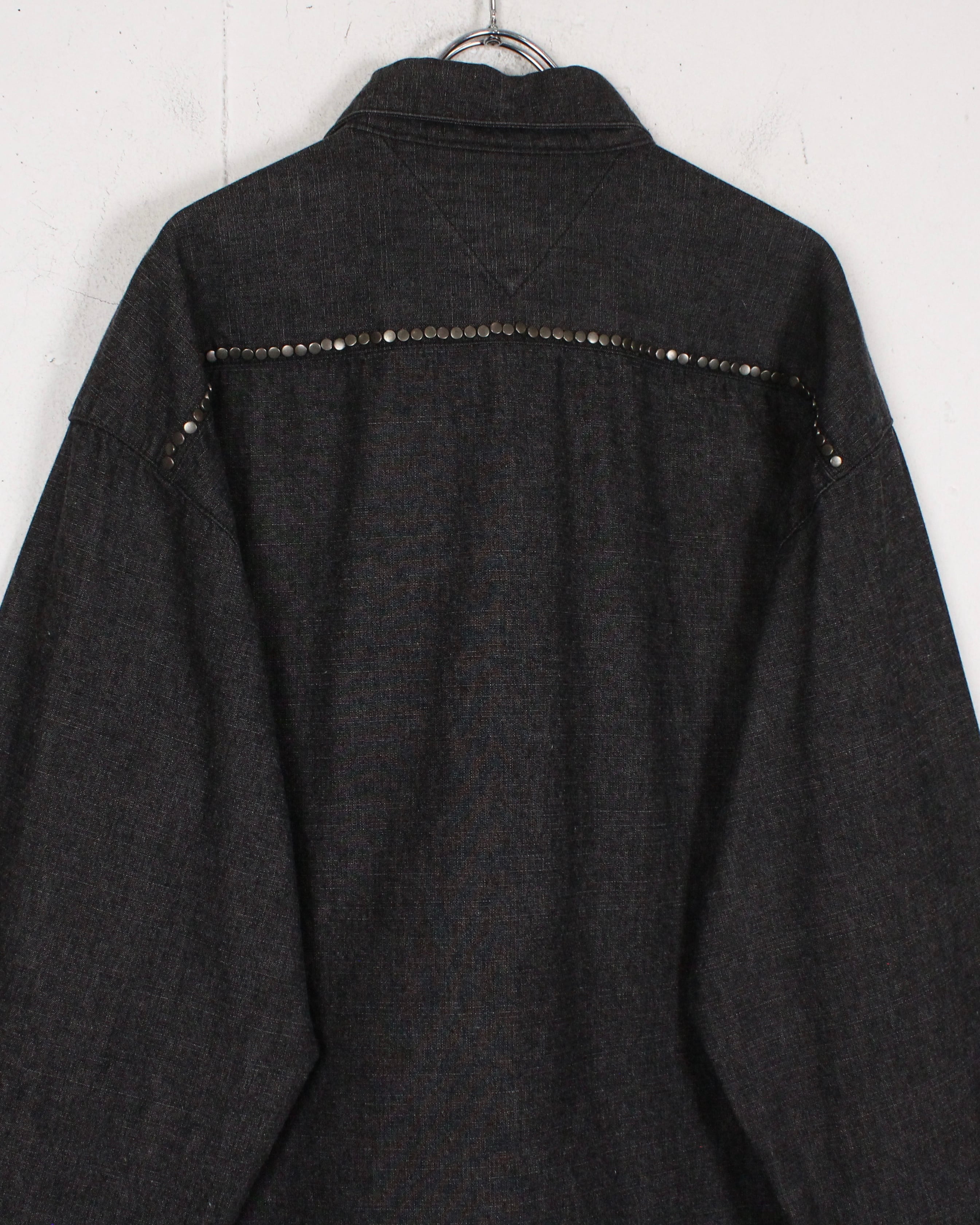 深い風合いを漂わせるコットンシャンブレー生地を使用したボディに、スタッズで装飾を載せた長袖シャツ。