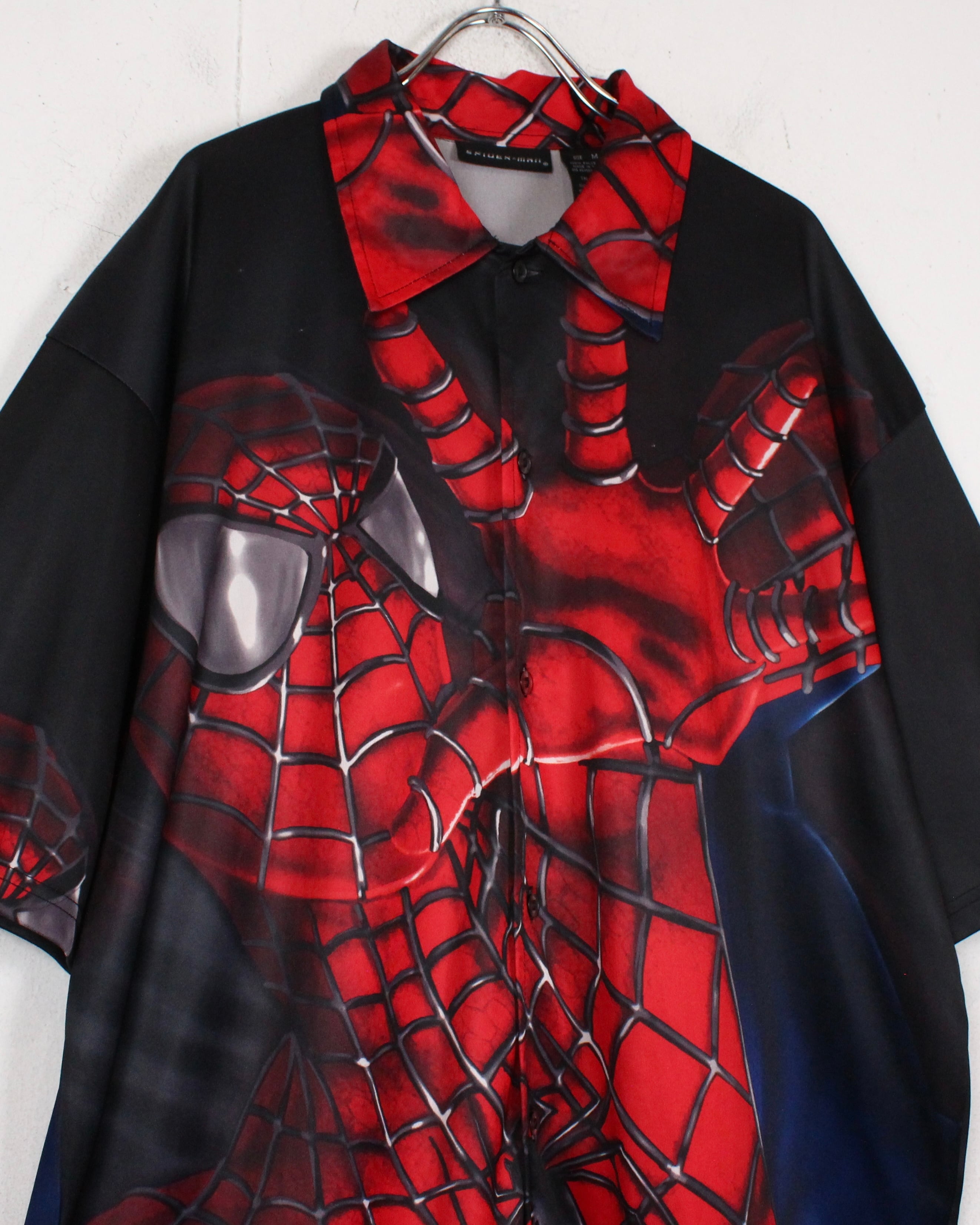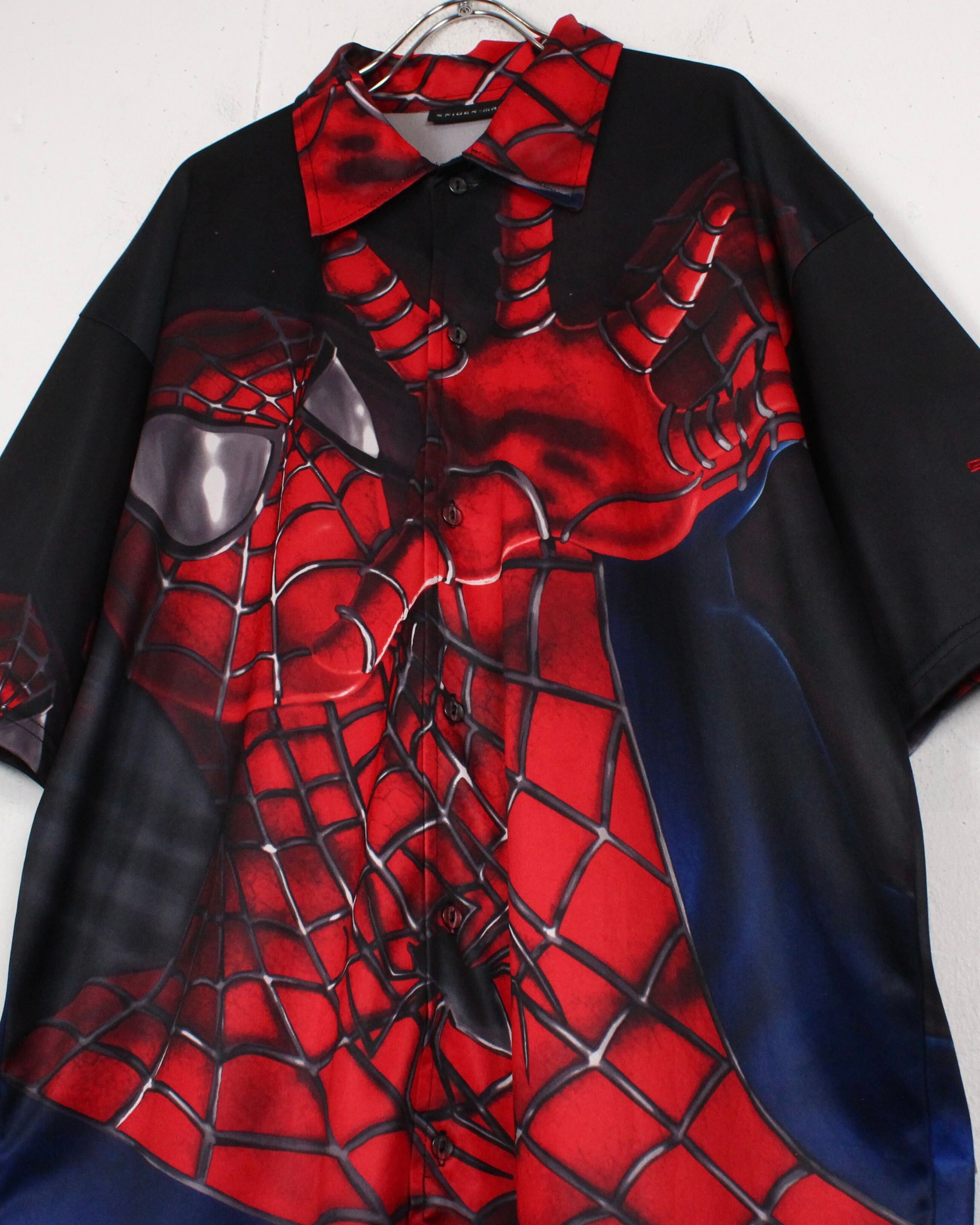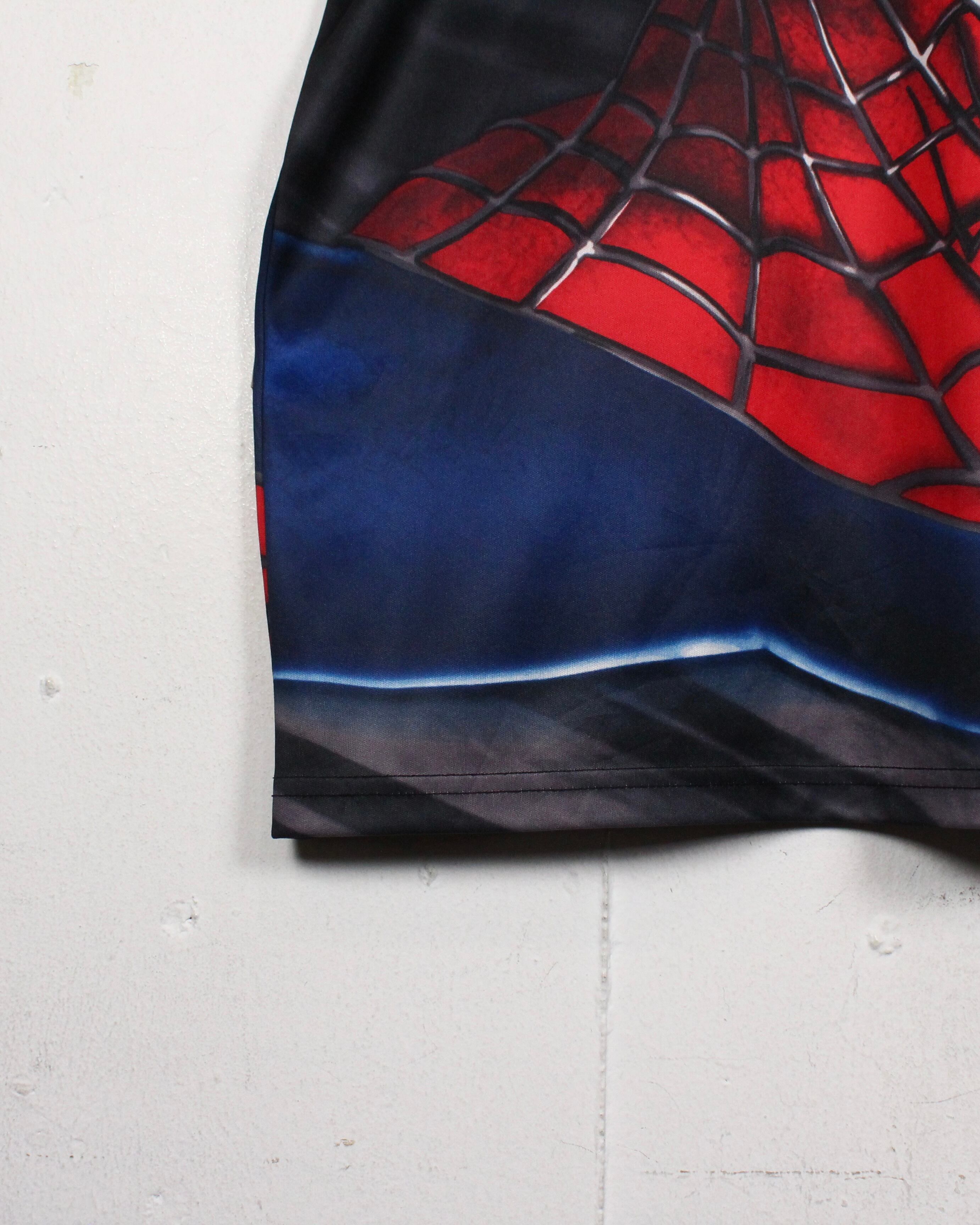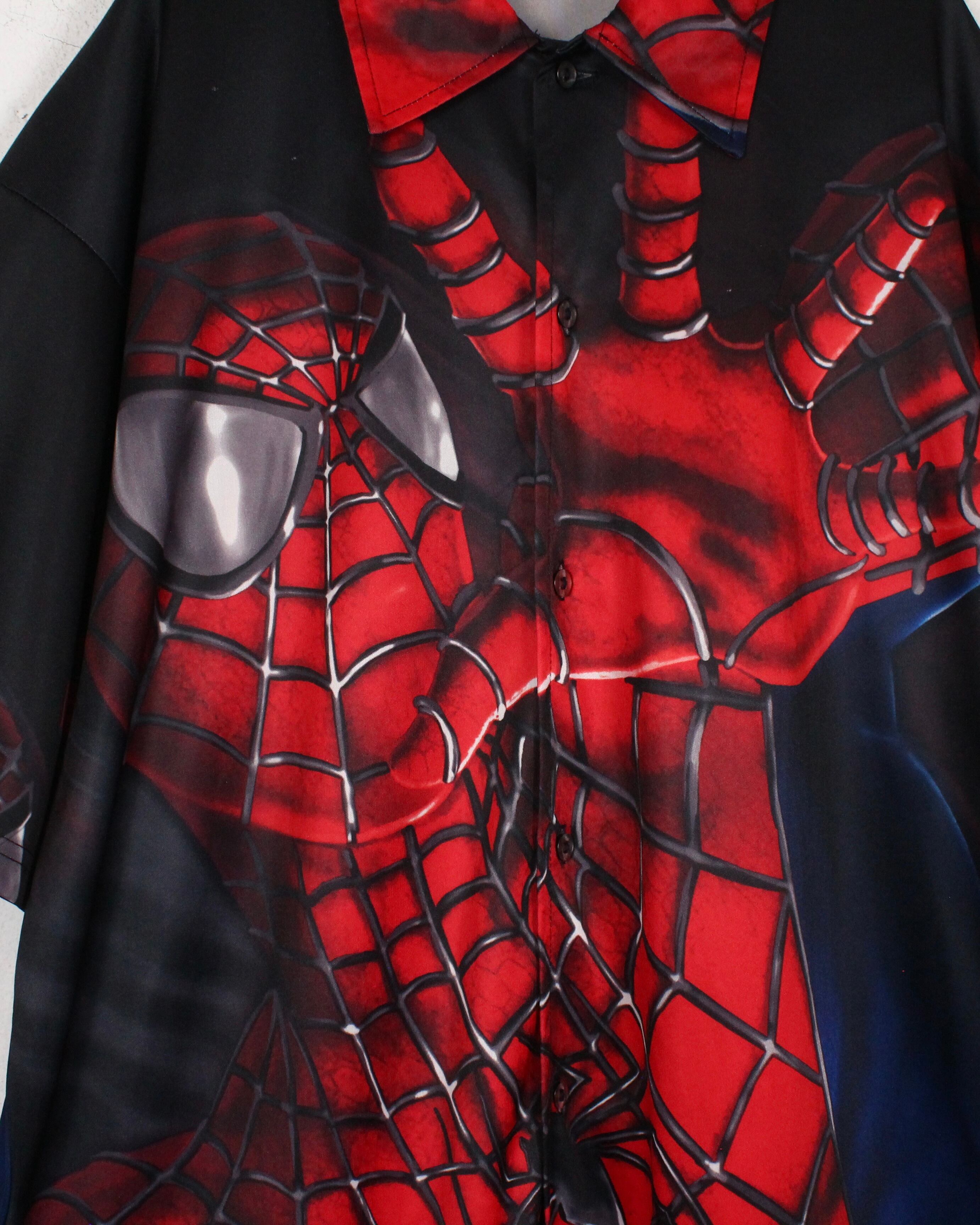 ツルッと滑らかなボディに、こちらに向かって飛び出して来そうなほど臨場感のあるスパイダーマンを載せた半袖シャツ。奥行きのあるデザインにオーバーなプリントが相まって、立体感のある仕上がりに。
