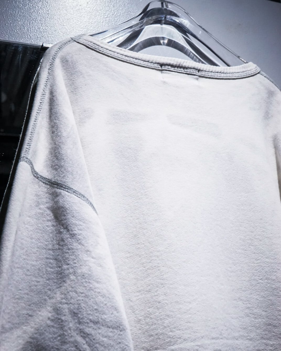 肩幅、身幅、アームにはゆとりを持たせた、落ち感良いグッドシルエット。一枚での着用はもちろん、コートやレザーなどのインナー使いにもオススメ。