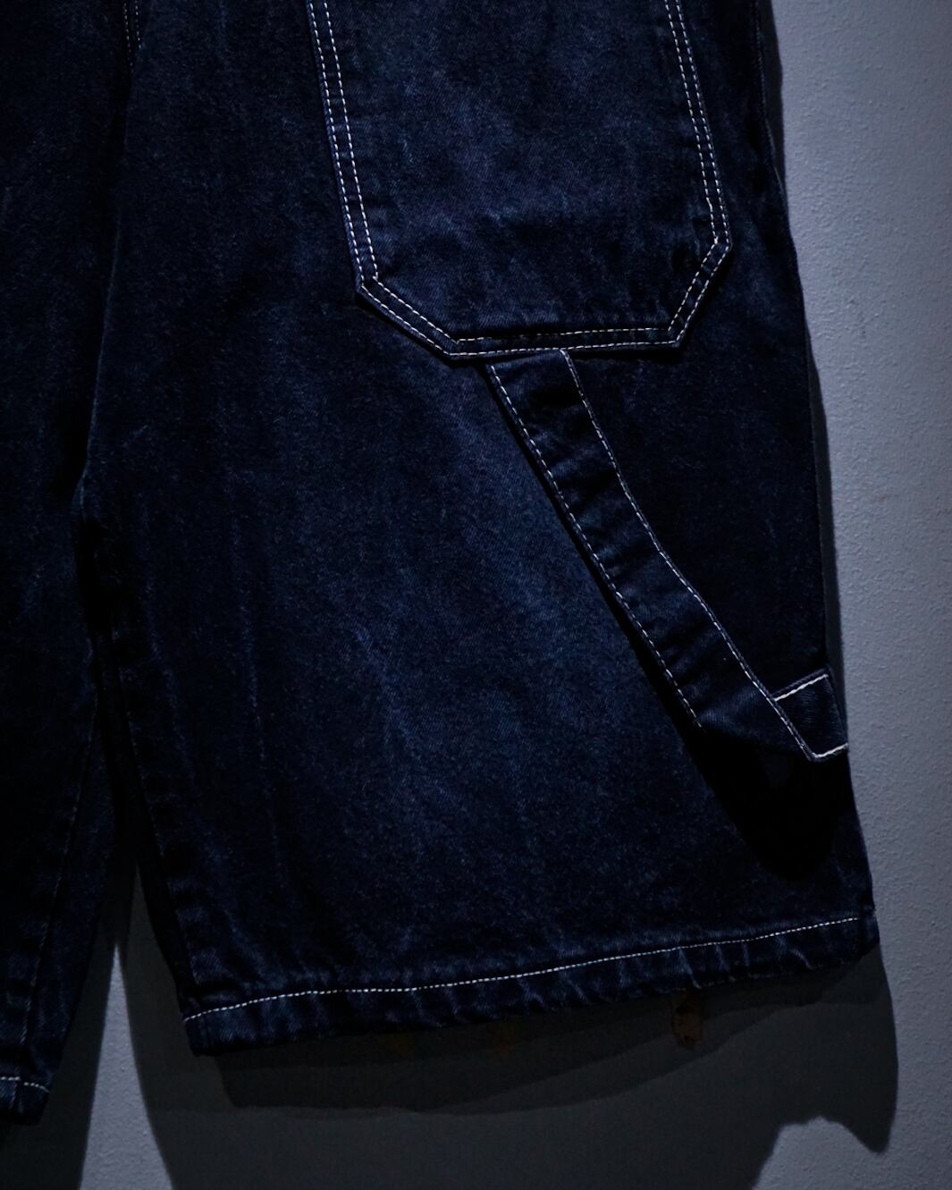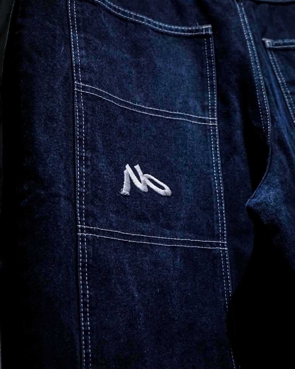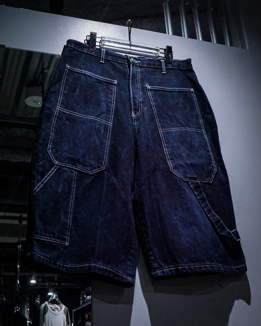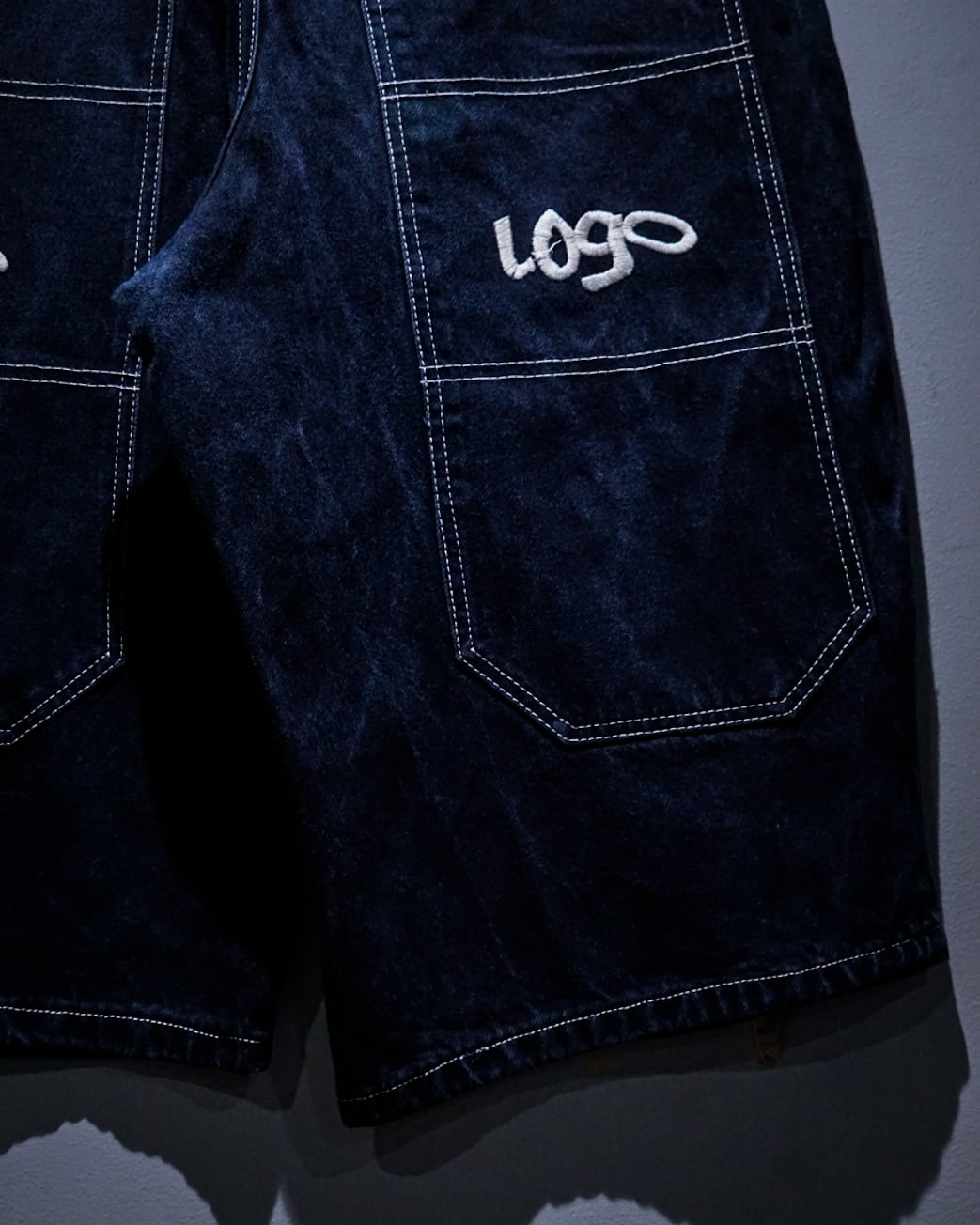 インディゴのボディに、フロント、背面にカルチャーを感じられる深めのポケット、そしてブランドネームを刺繍で刻んだレイヴデニムショーツ。
