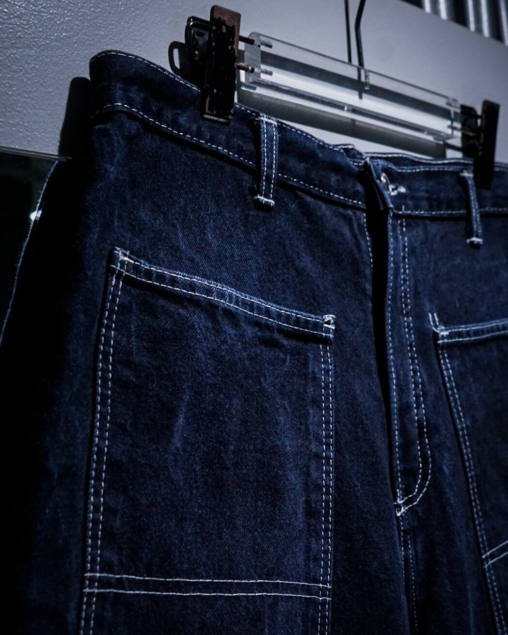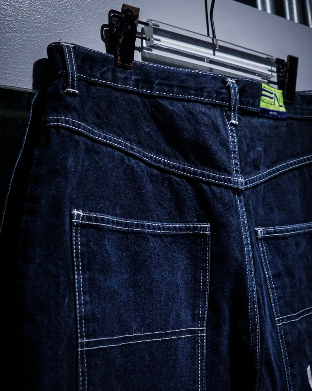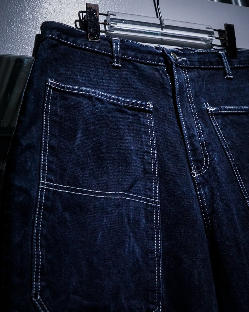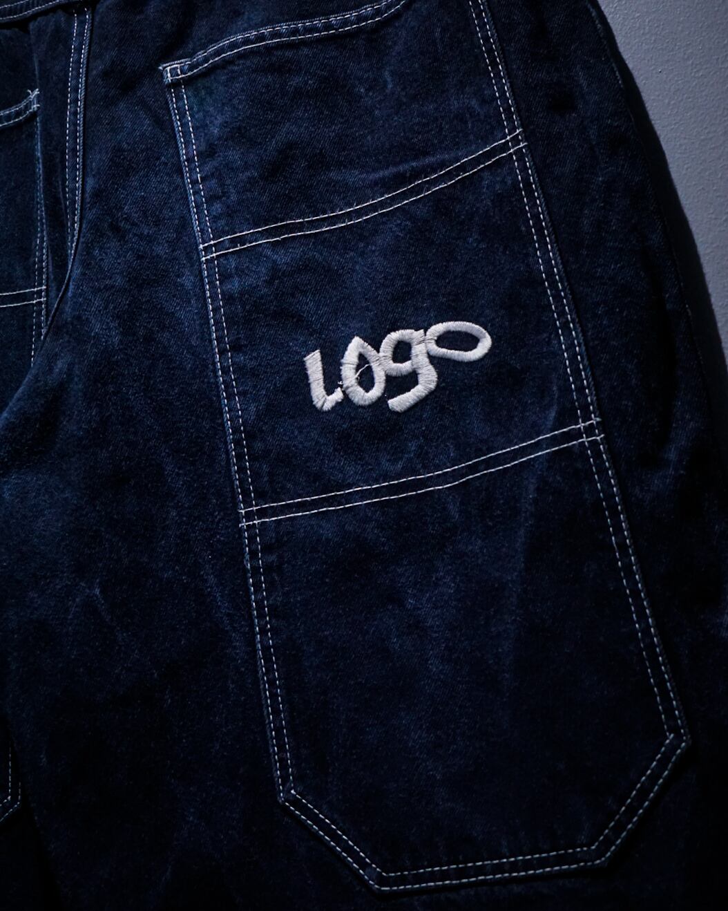 インディゴのボディに、フロント、背面にカルチャーを感じられる深めのポケット、そしてブランドネームを刺繍で刻んだレイヴデニムショーツ。