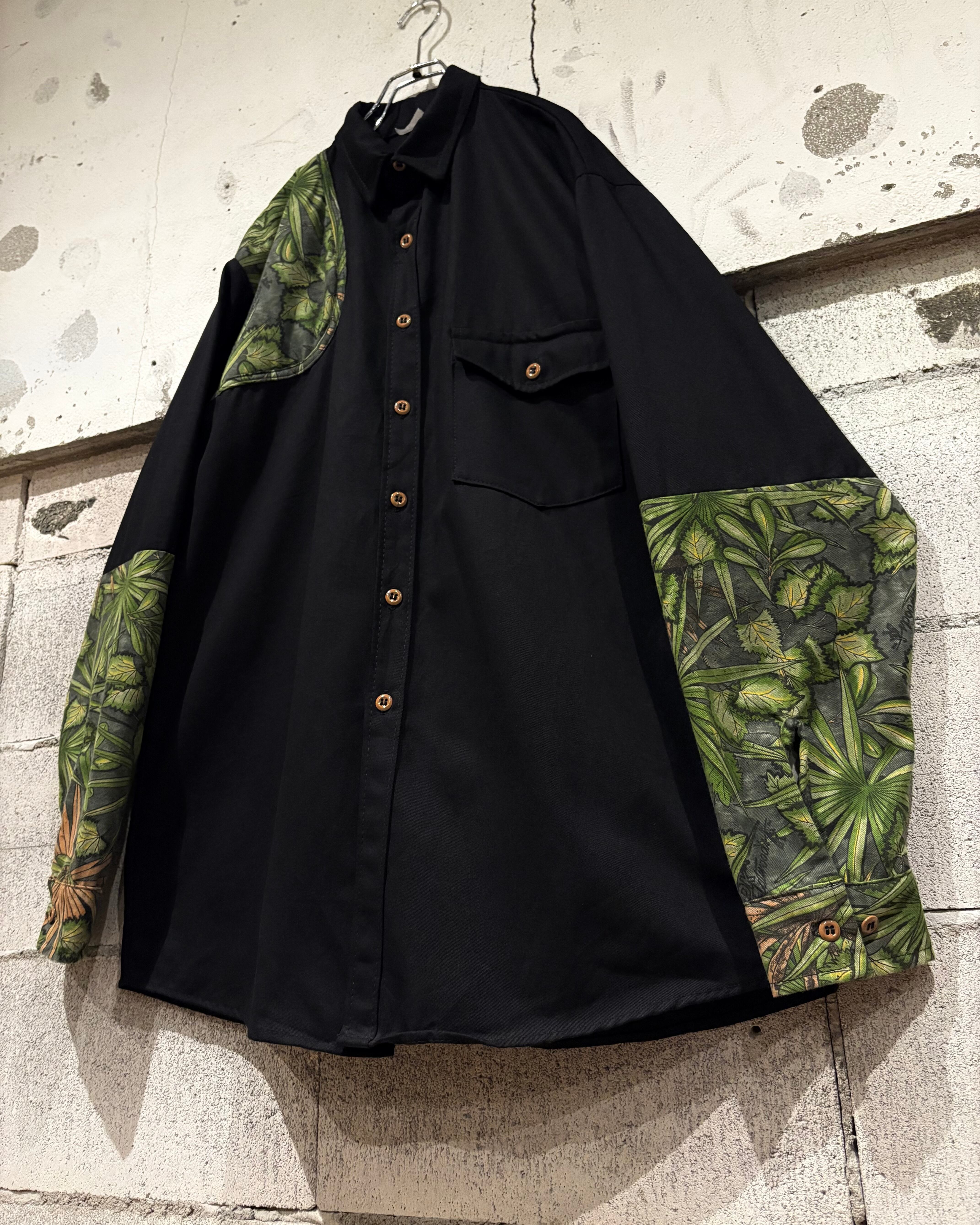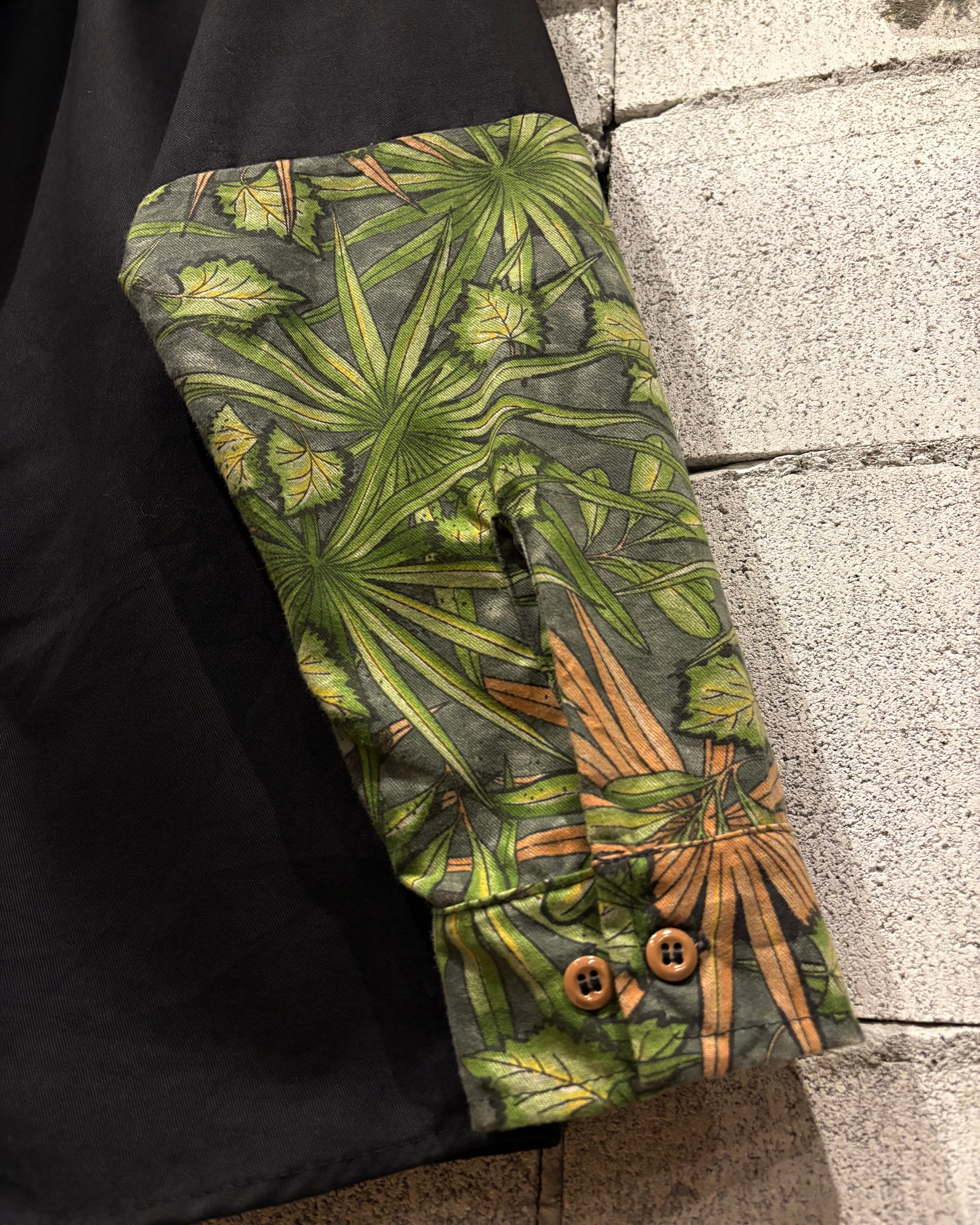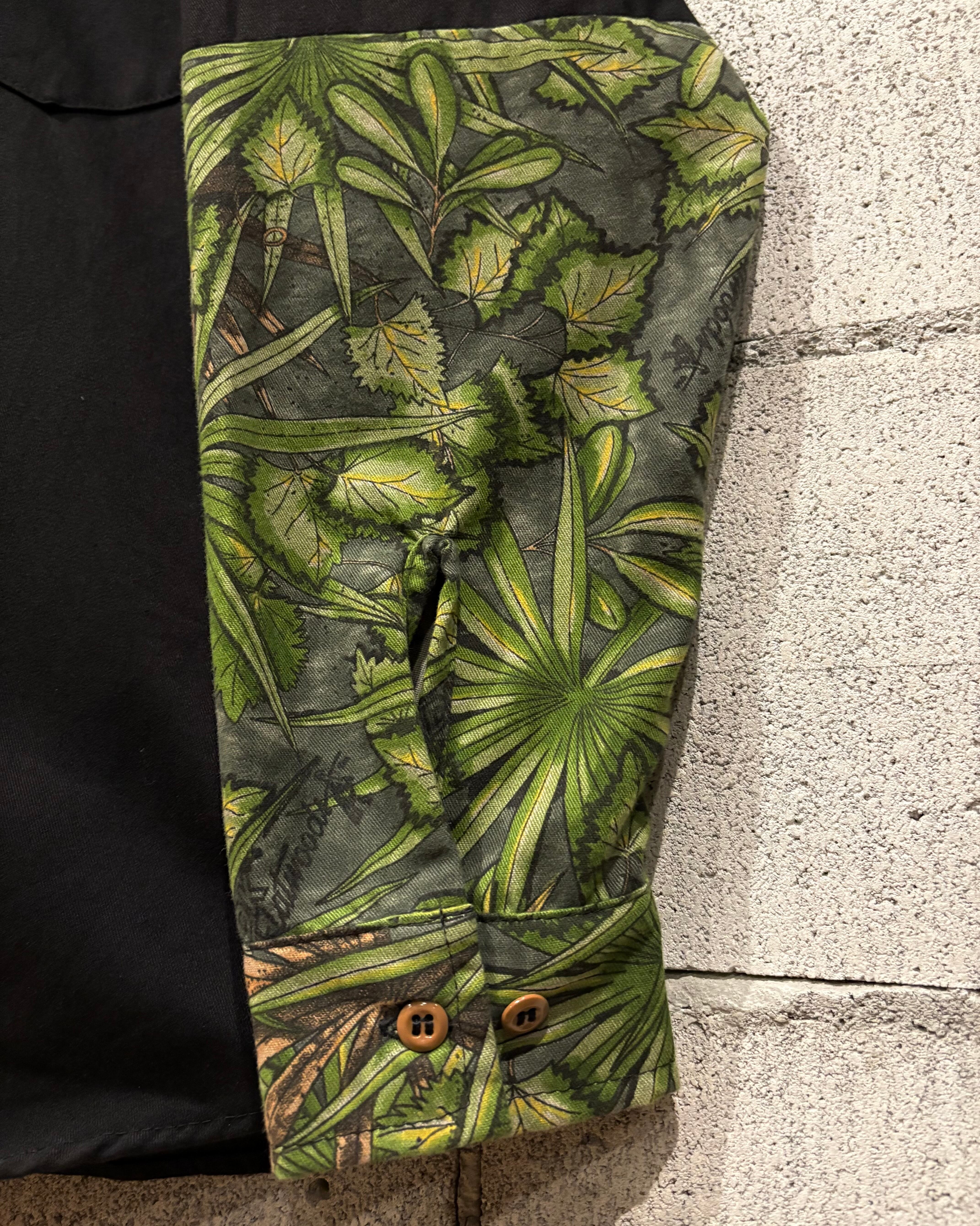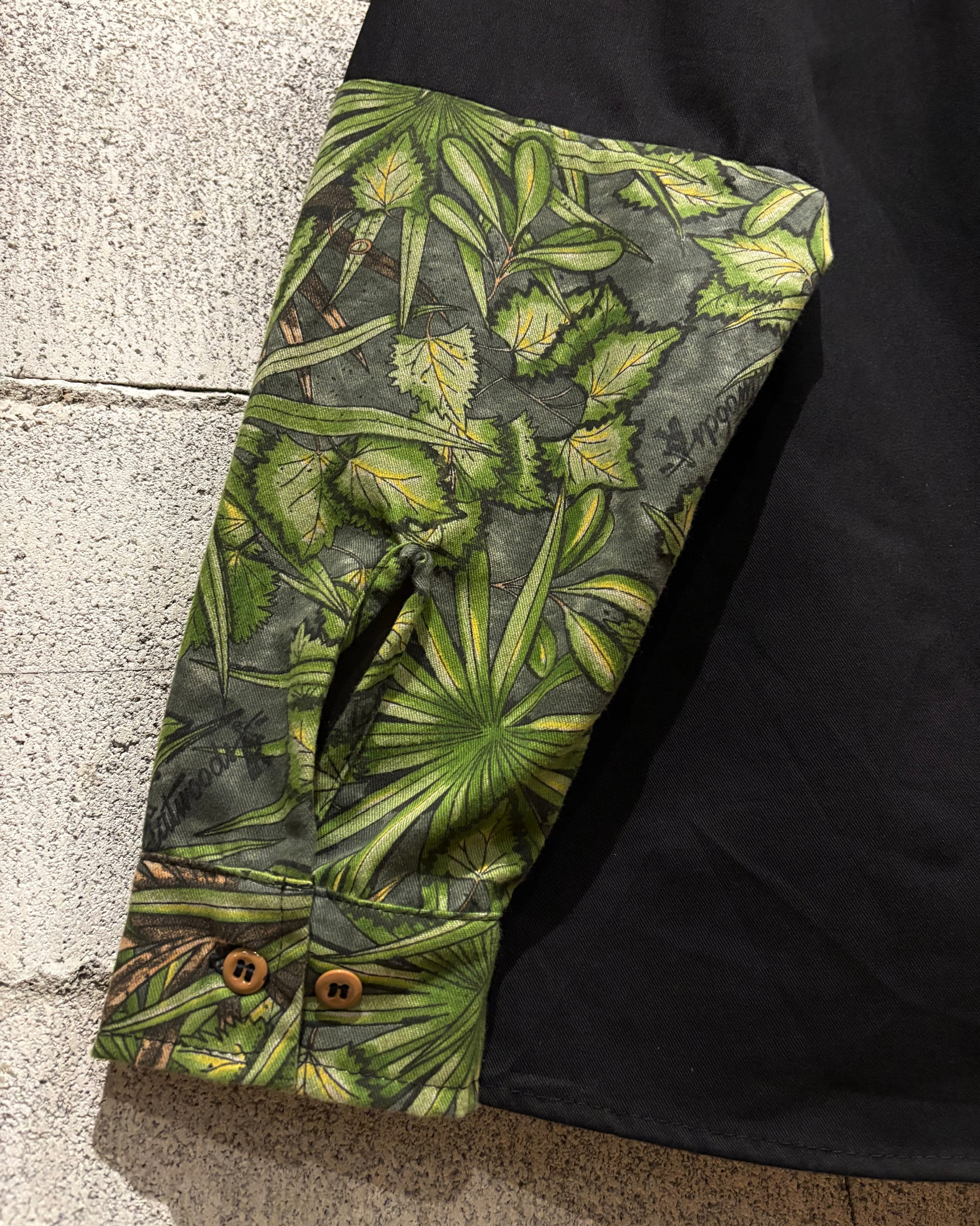 右肩ヨークには補強の為のパッチに、肘下からも切り替え。奥行きのあるリアルな葉のデザインがボディにコントラストを演出しています。