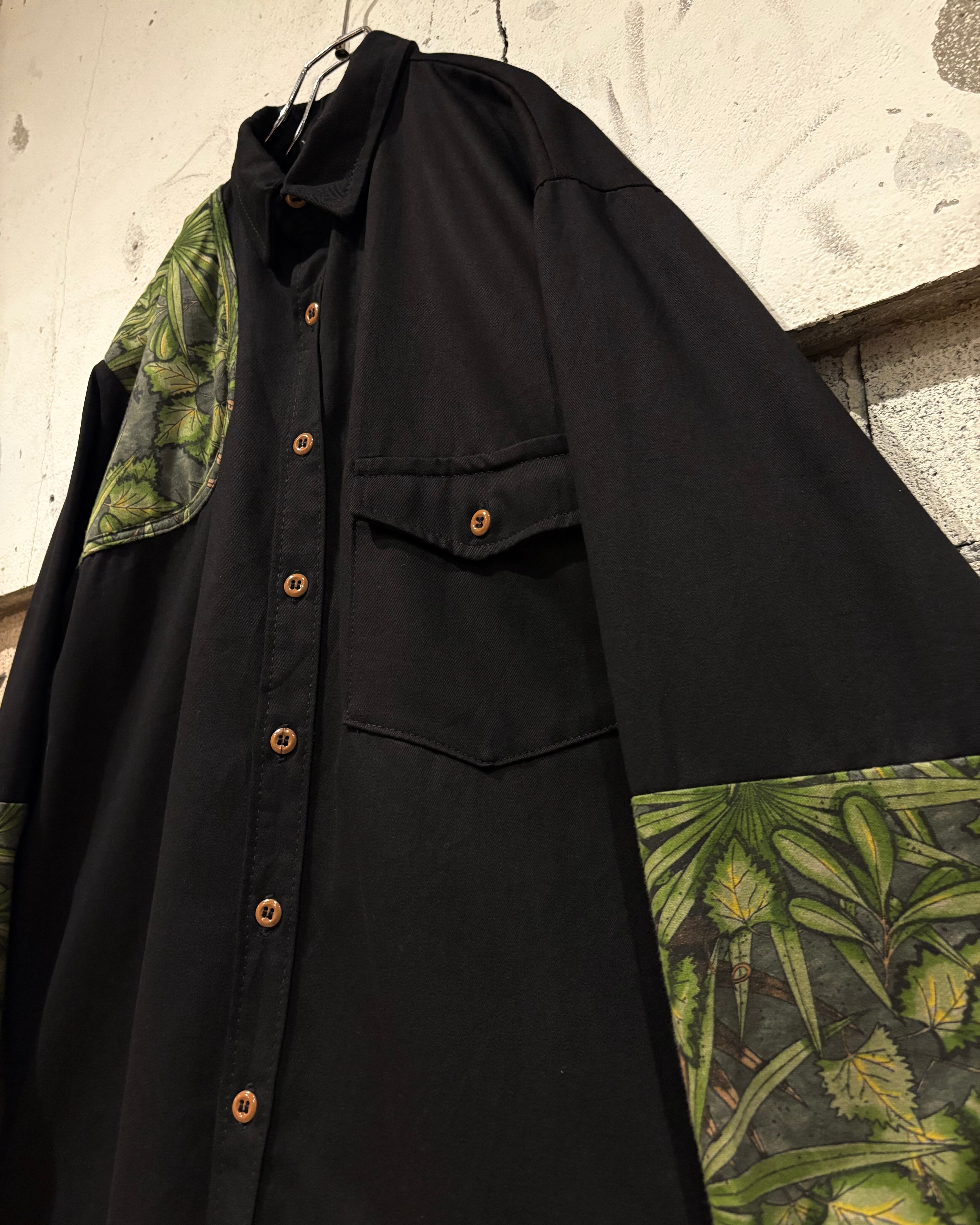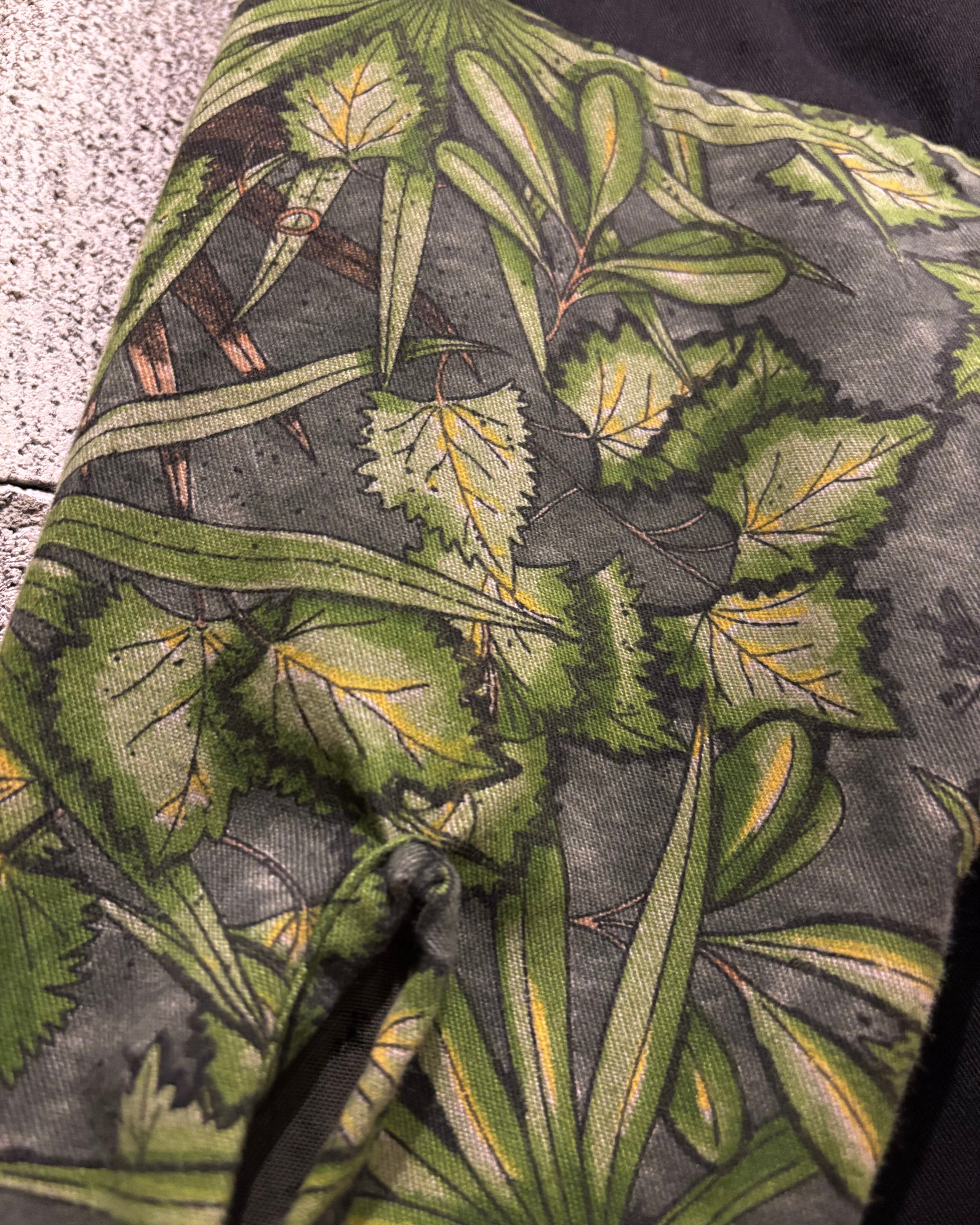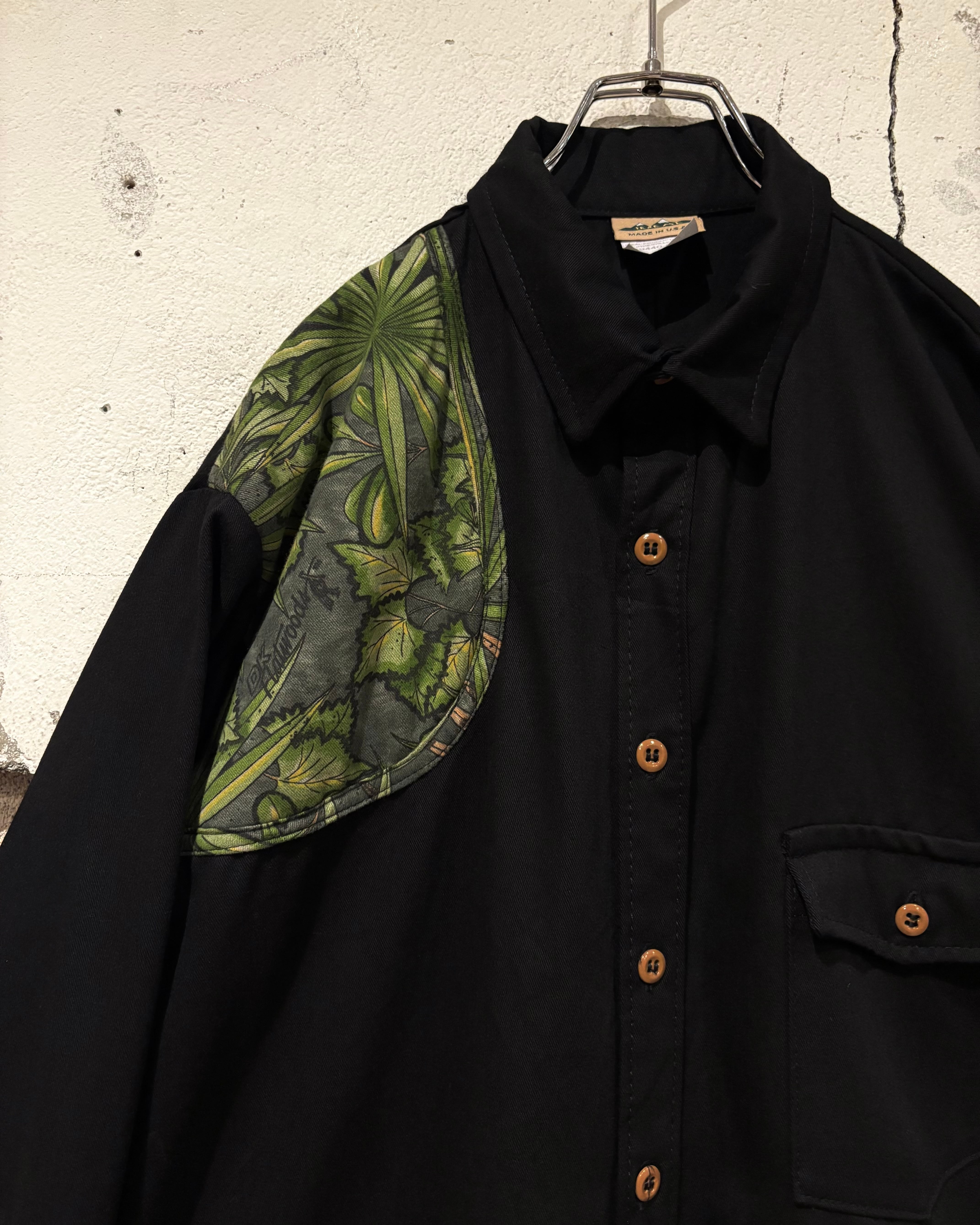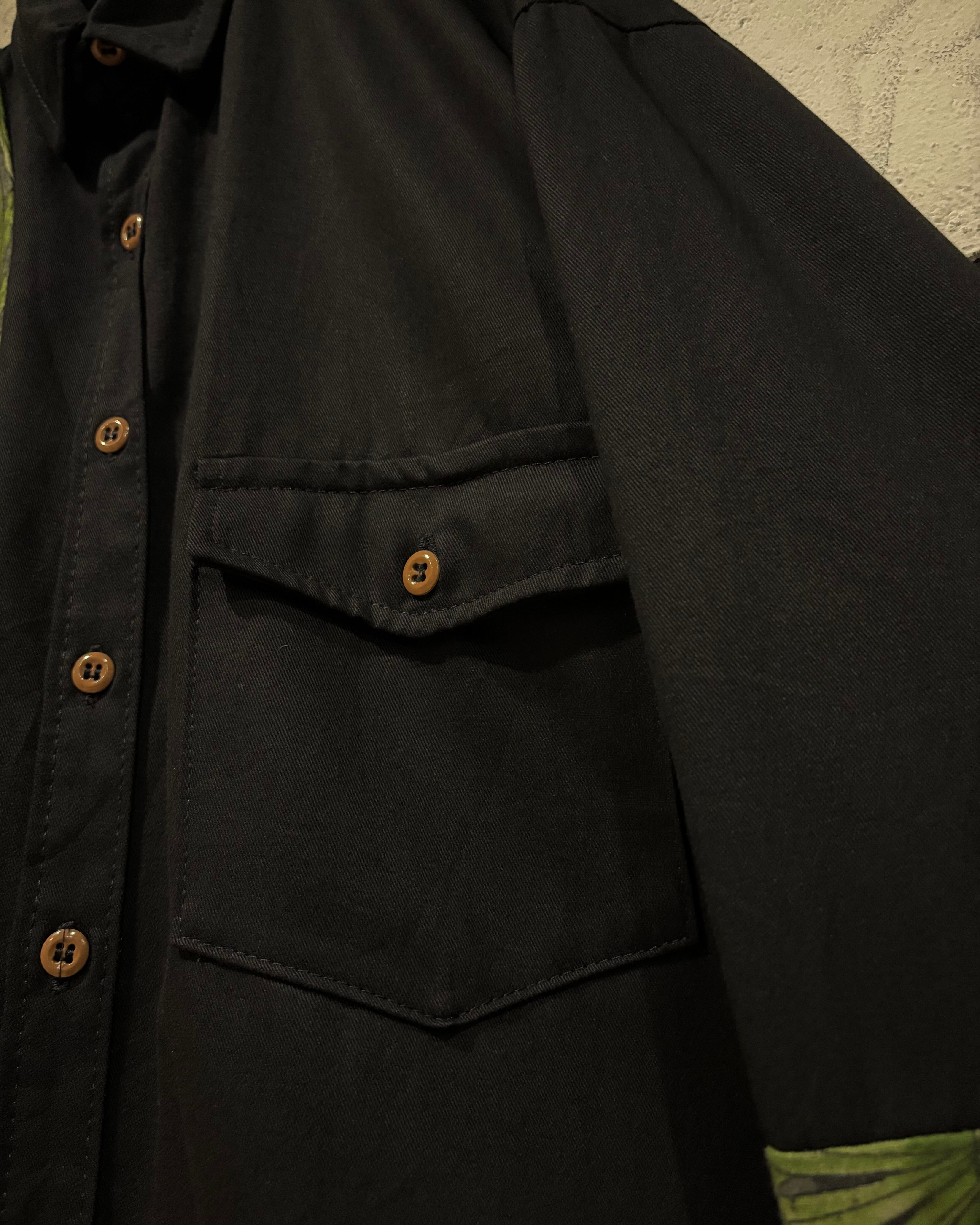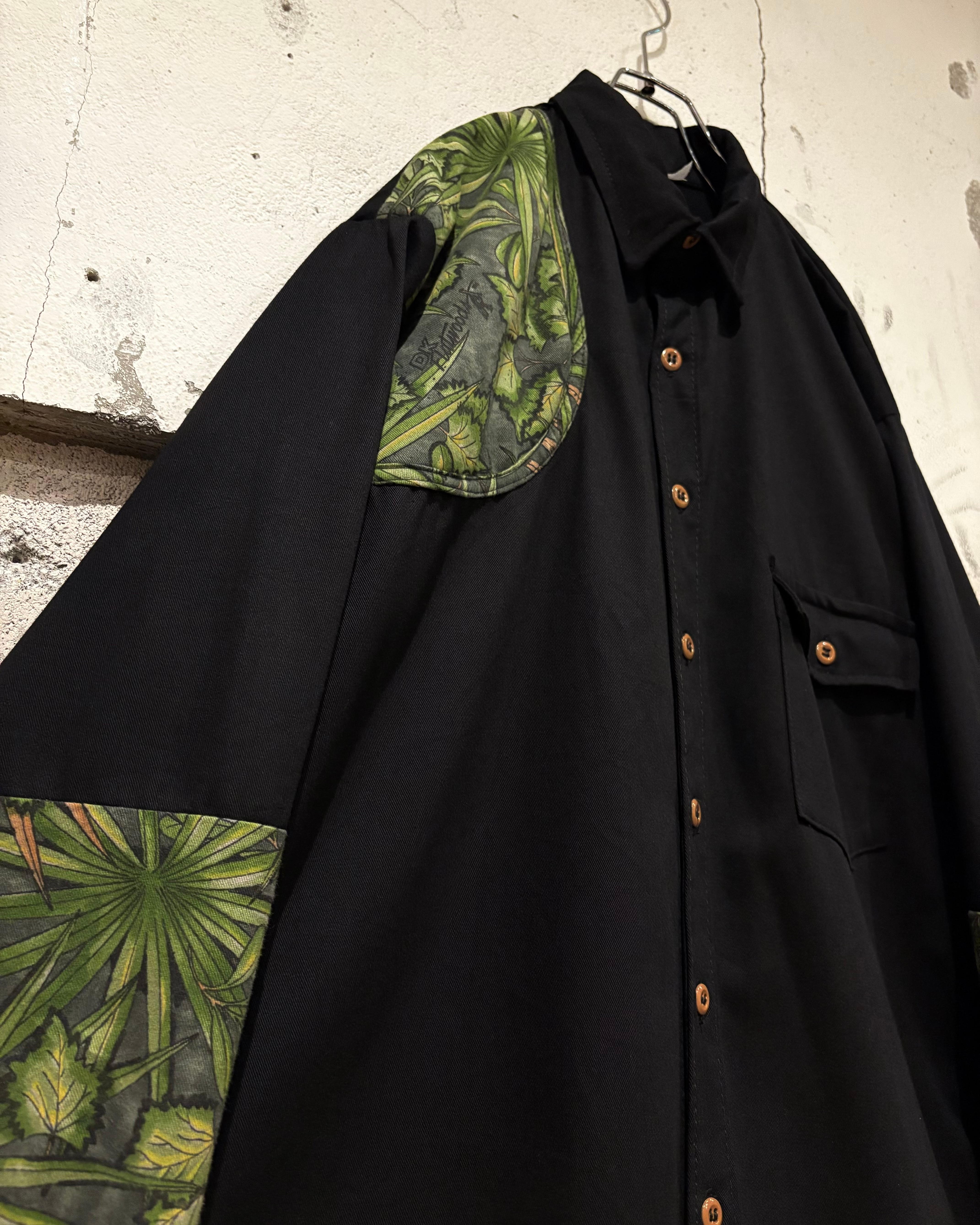 右肩ヨークには補強の為のパッチに、肘下からも切り替え。奥行きのあるリアルな葉のデザインがボディにコントラストを演出しています。