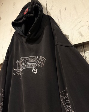 ボディフロントにアイアンクロスロゴとブランドネーム、背面にも同様のデザインにチョッパーズバイクのデザインを載せたプルオーバーフーディ。