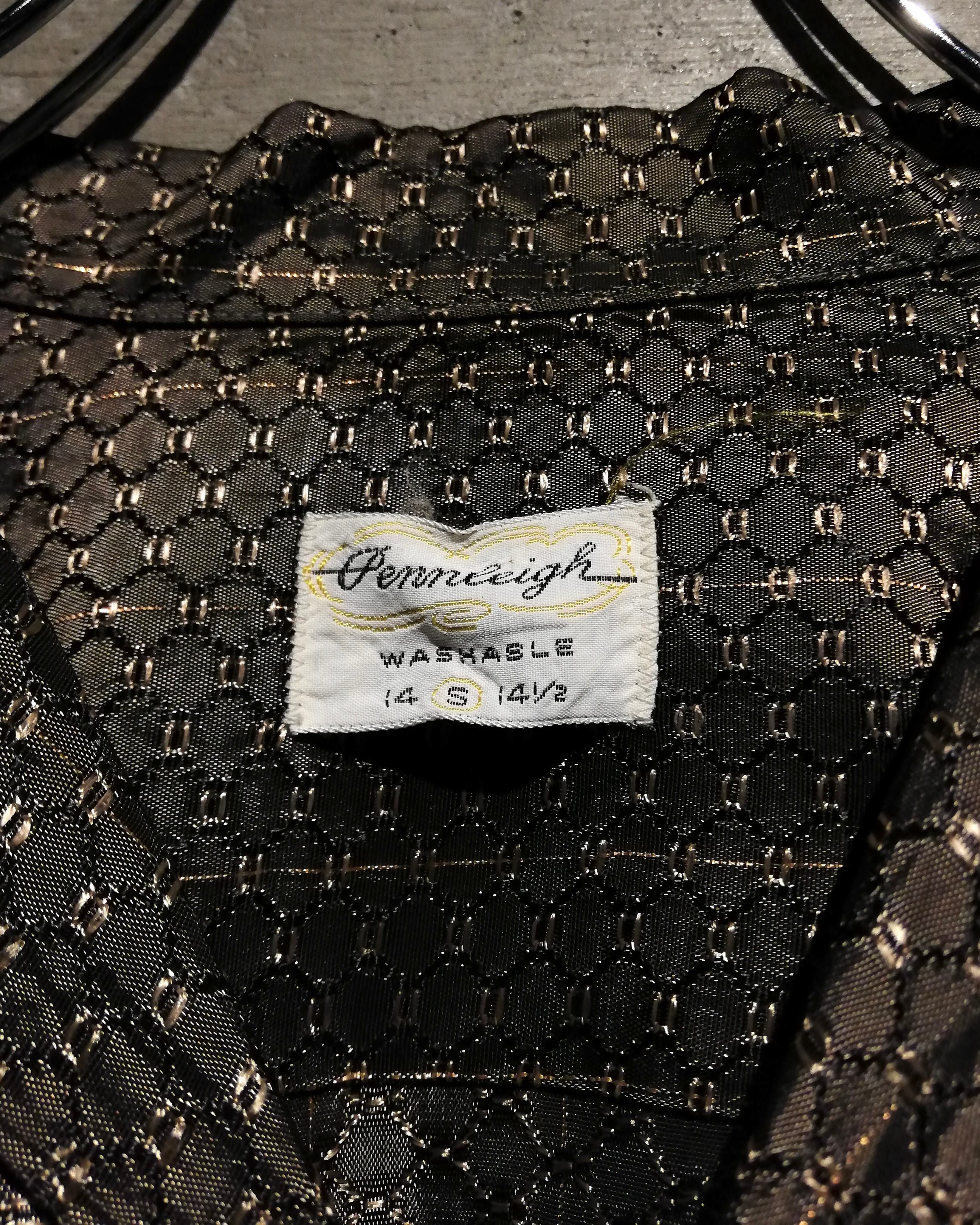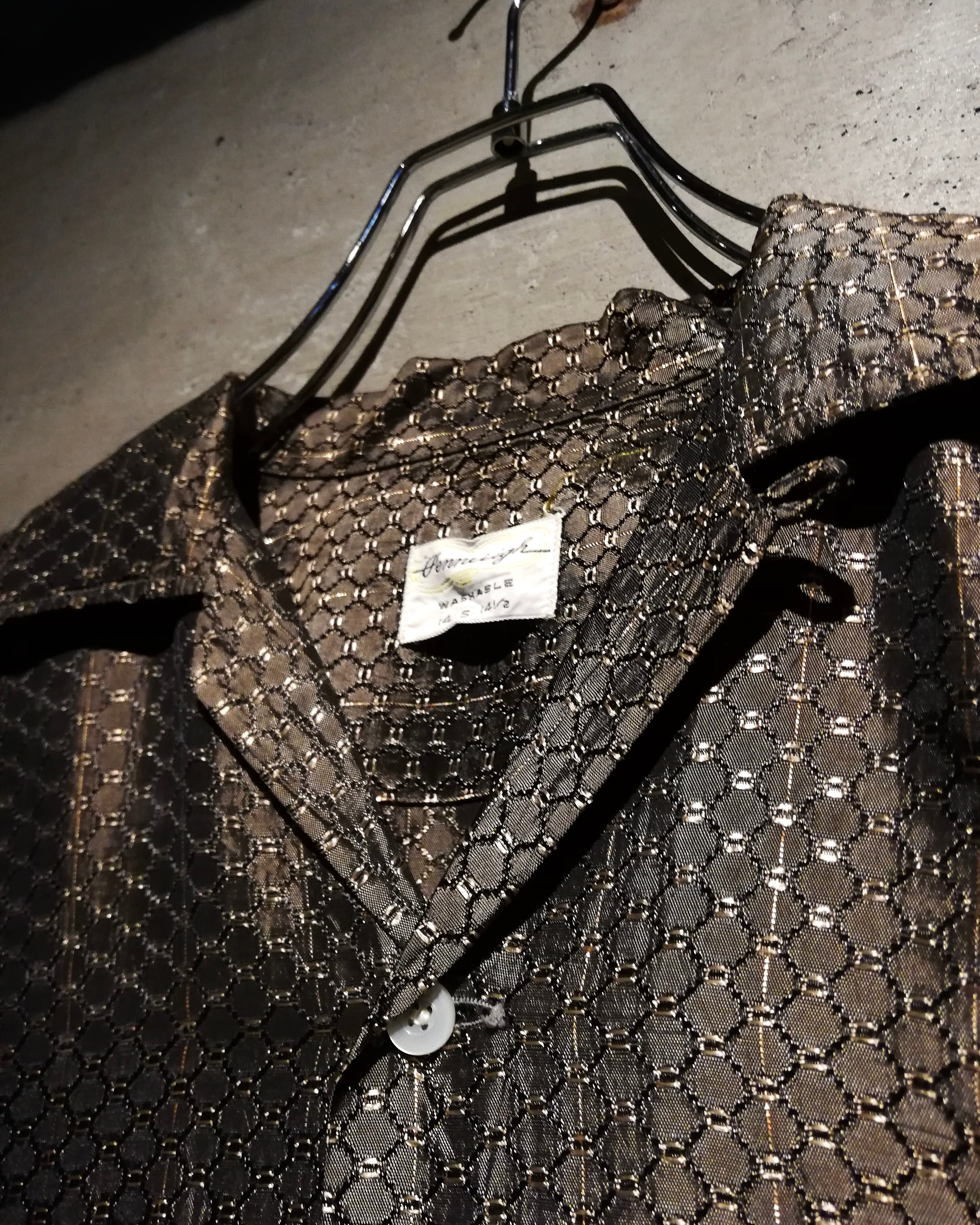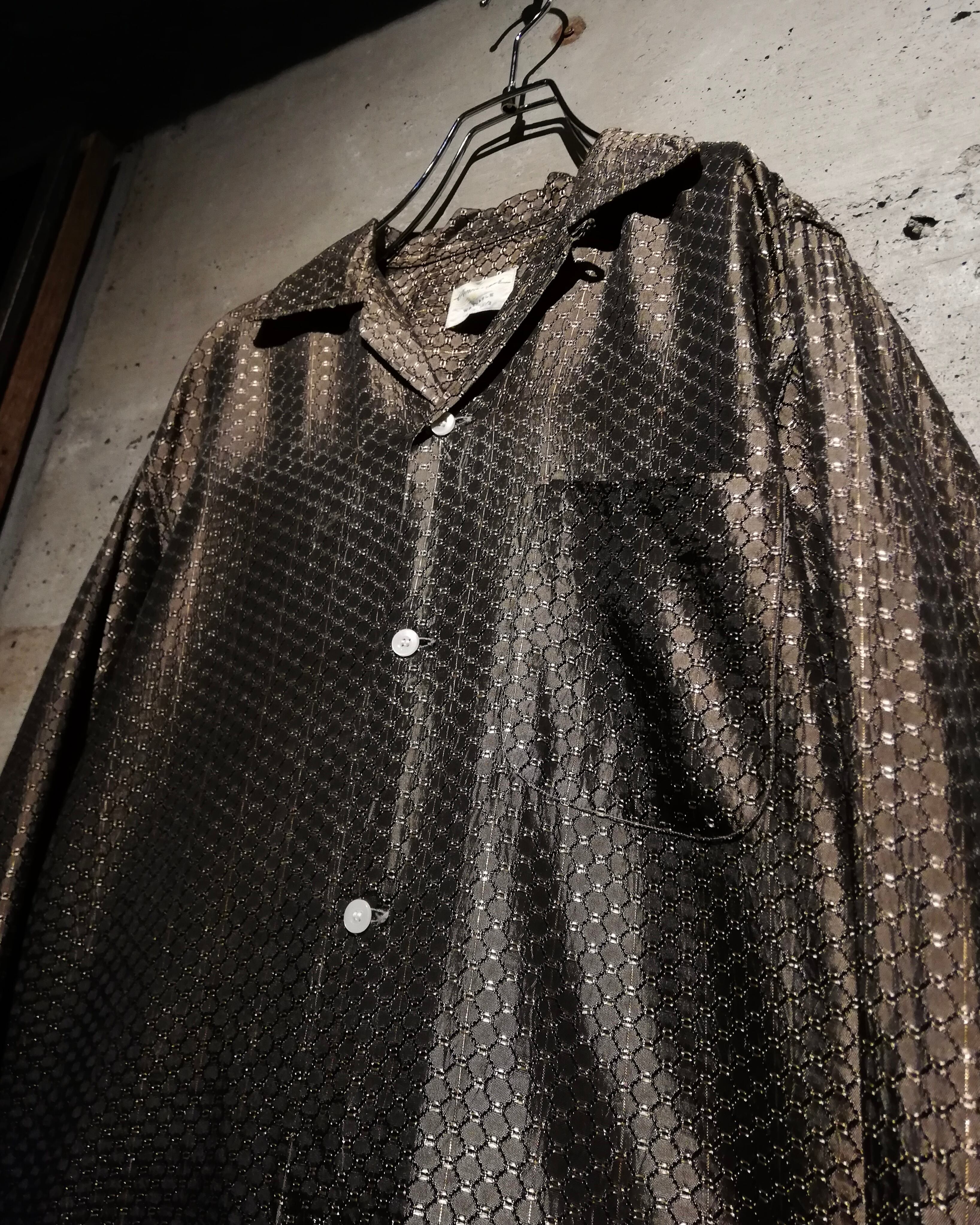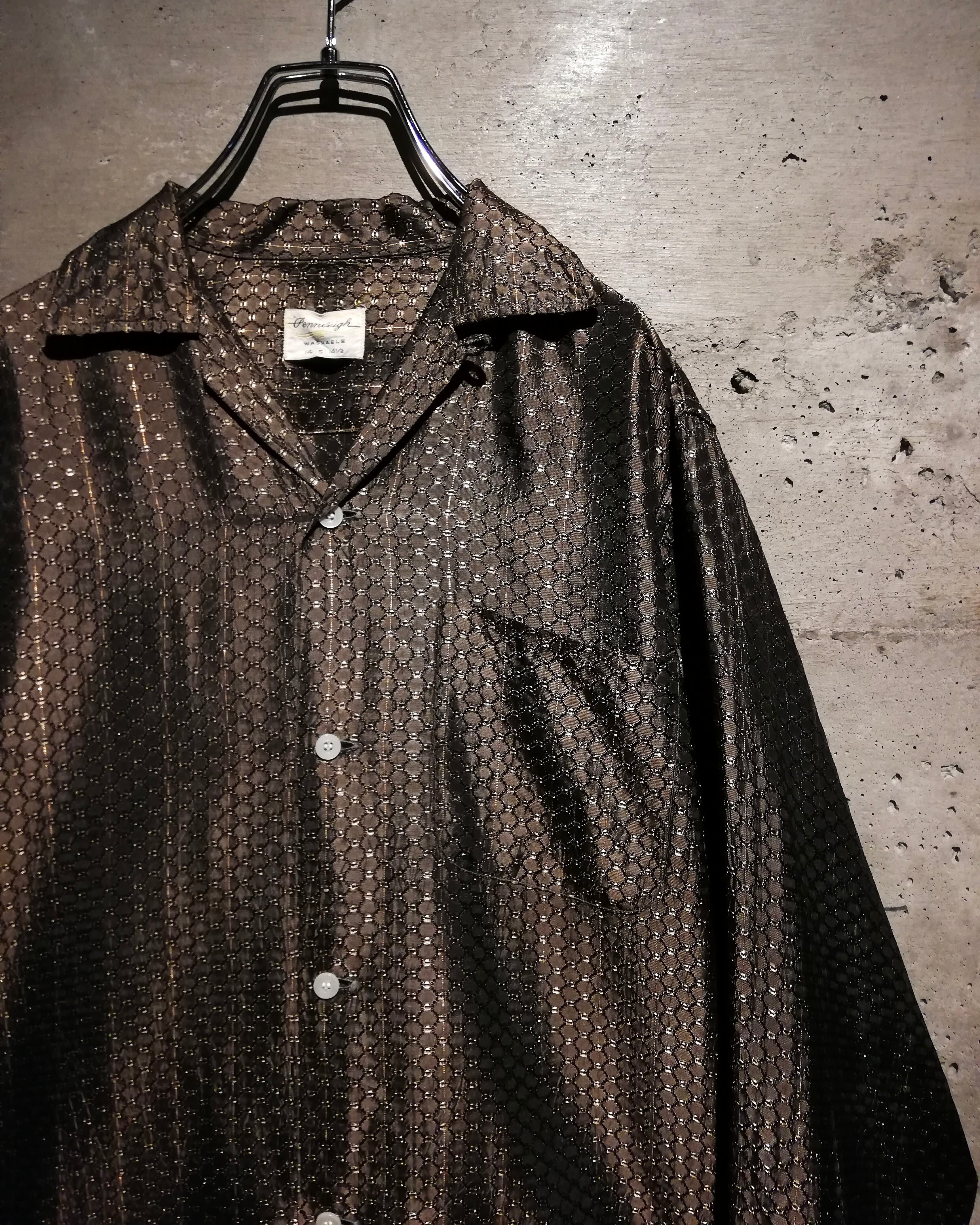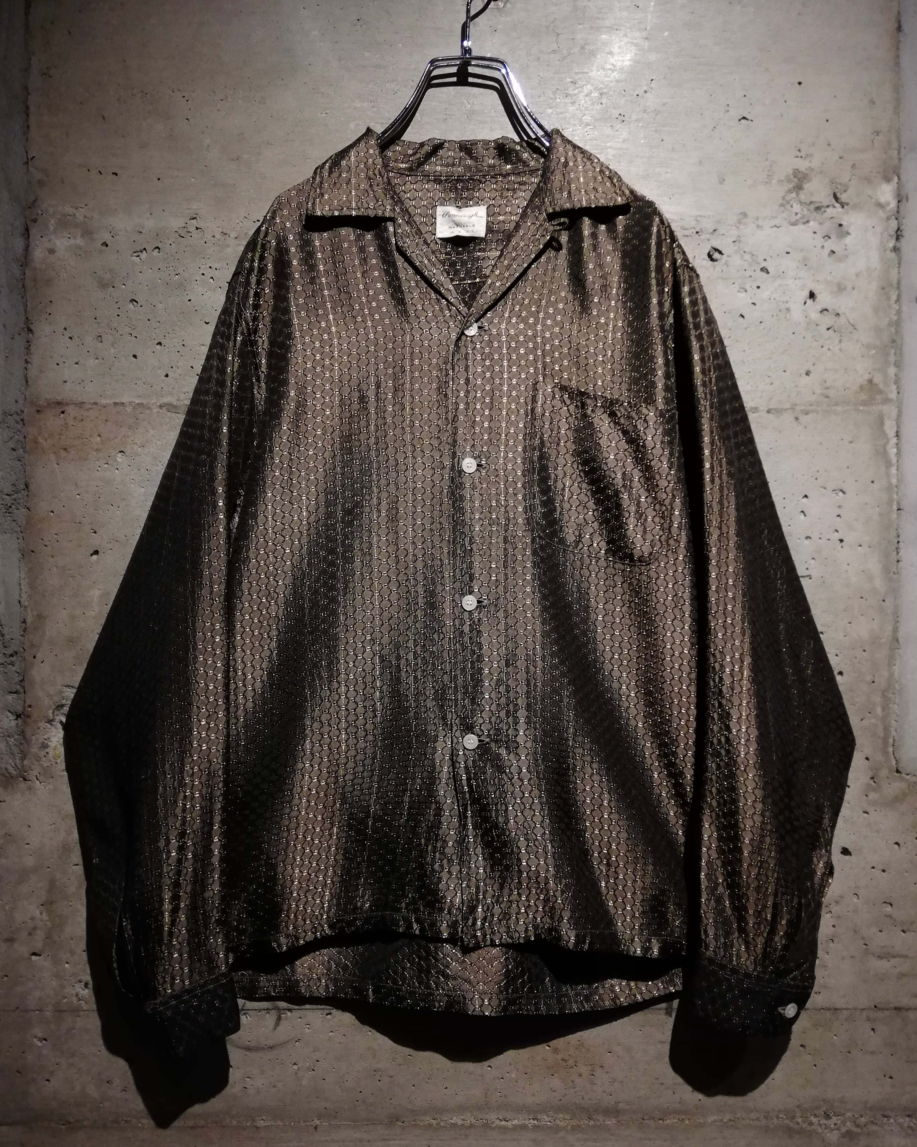 艶やかな光沢のブラウンボディに、糸の織りによって網目状の柄を表現した"Pennleigh"の50'sヴィンテージオープンカラーシャツ。