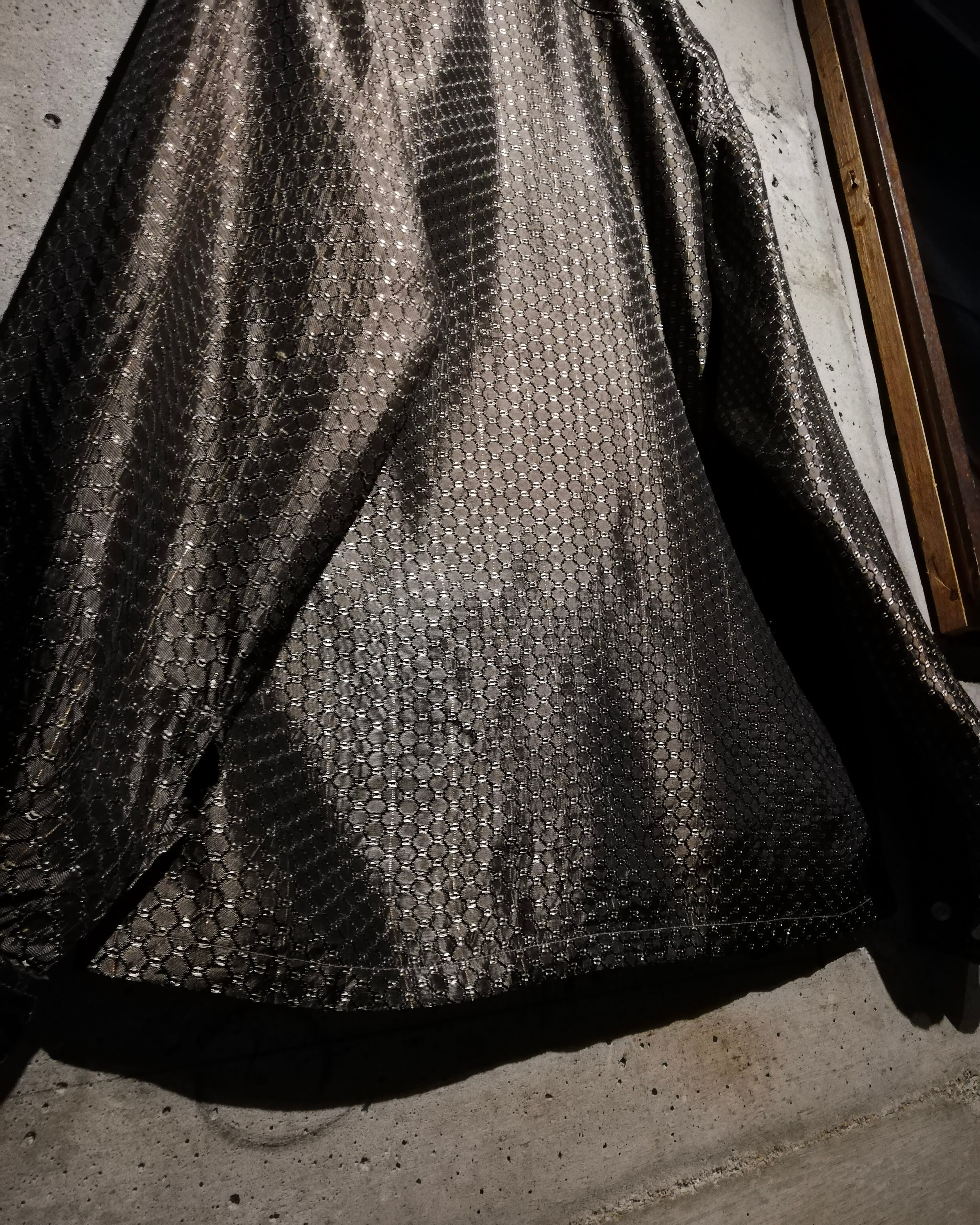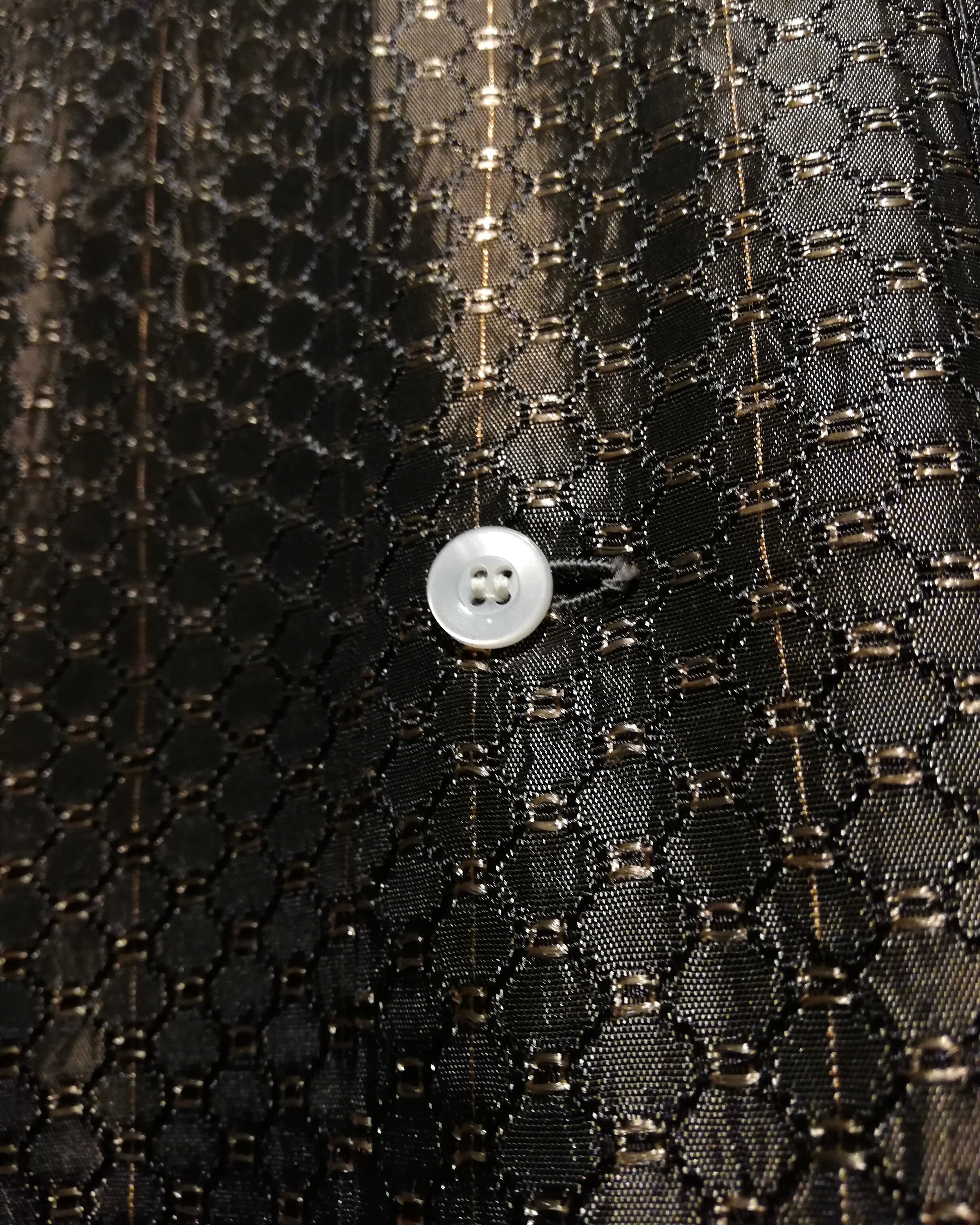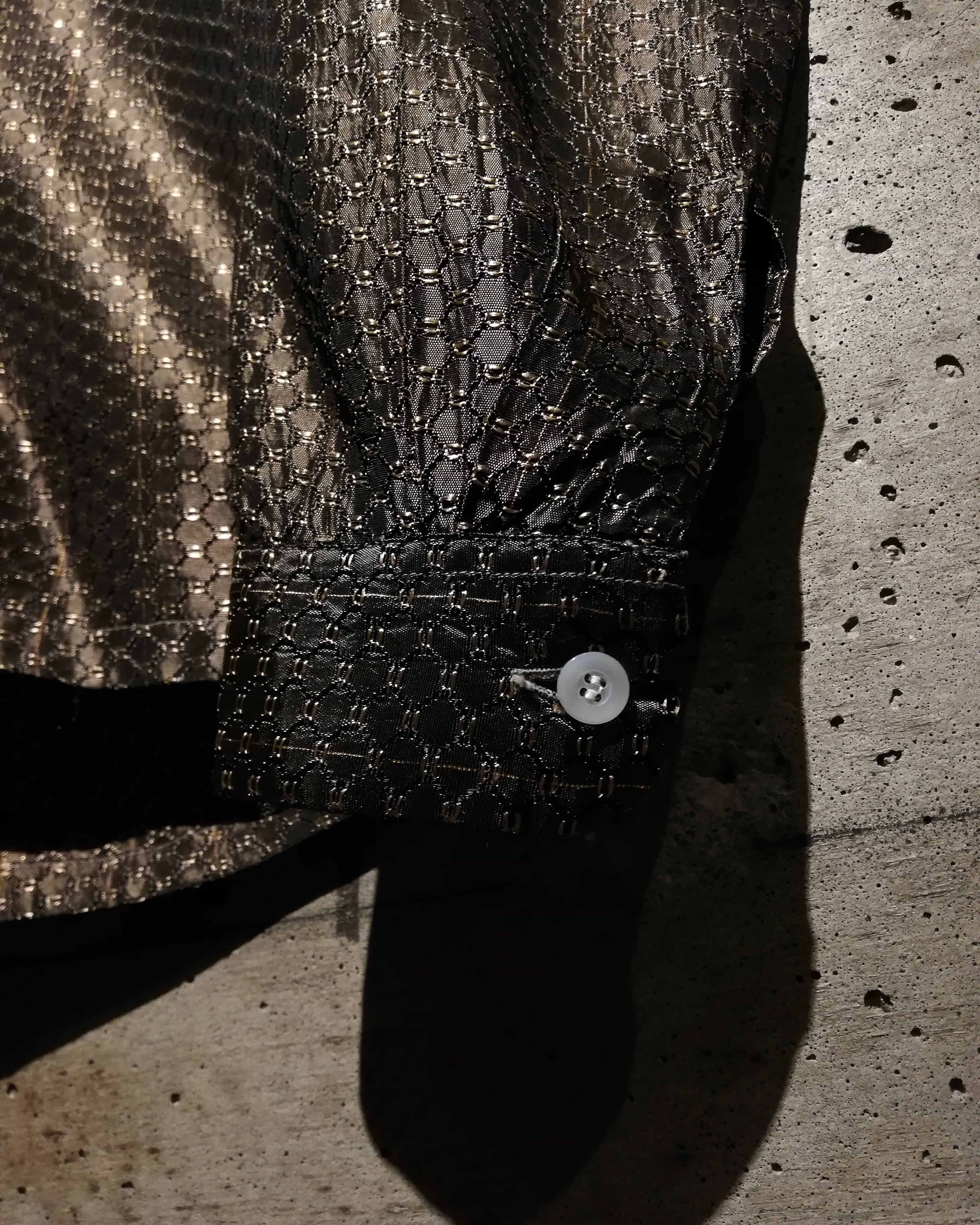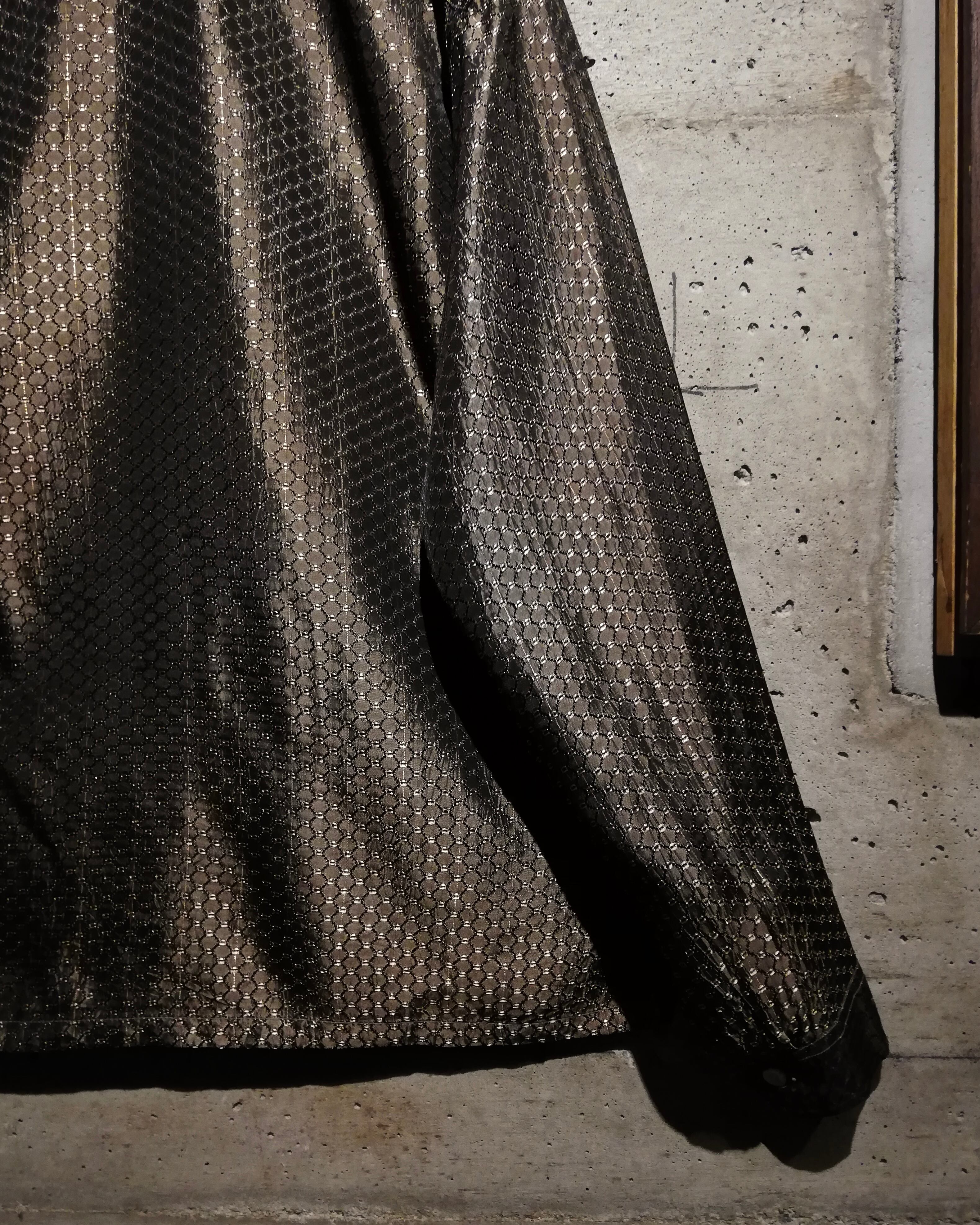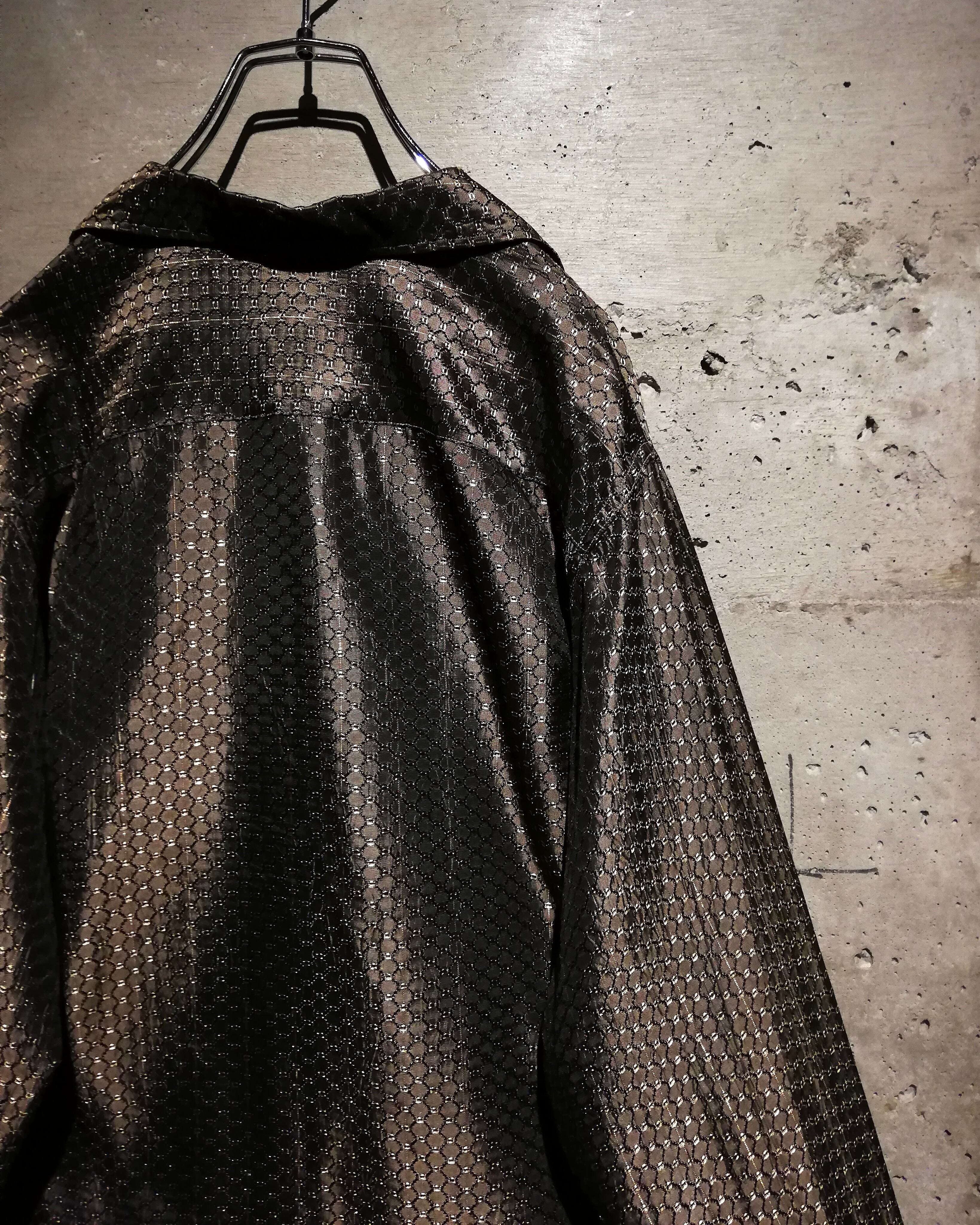 艶やかな光沢のブラウンボディに、糸の織りによって網目状の柄を表現した"Pennleigh"の50'sヴィンテージオープンカラーシャツ。
