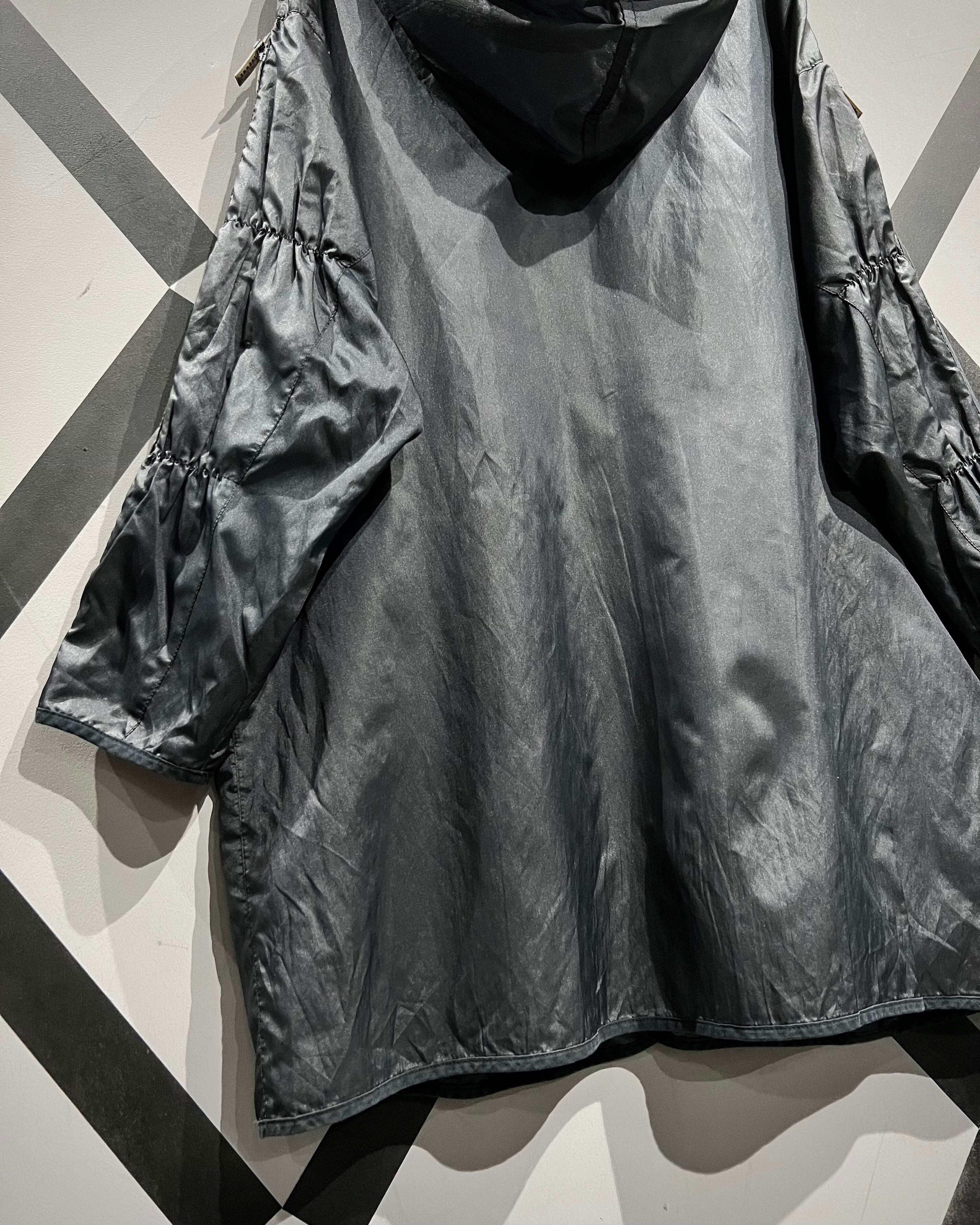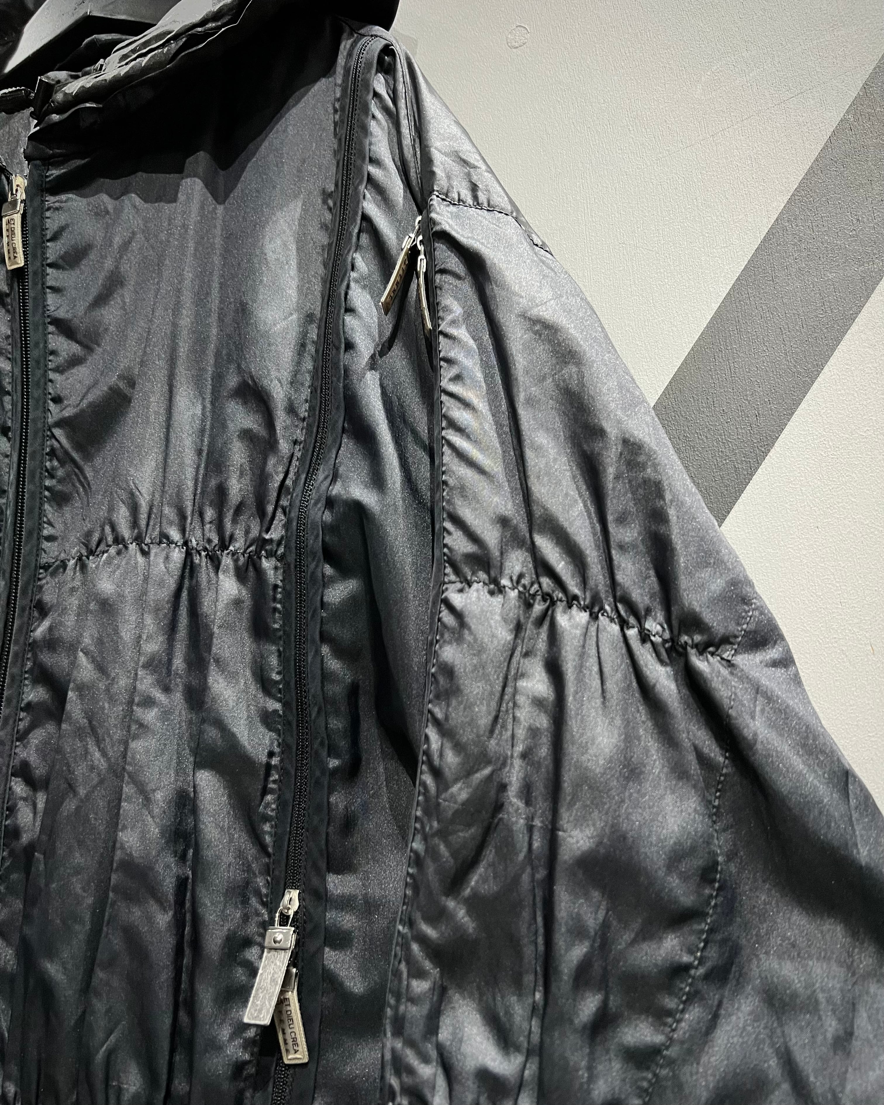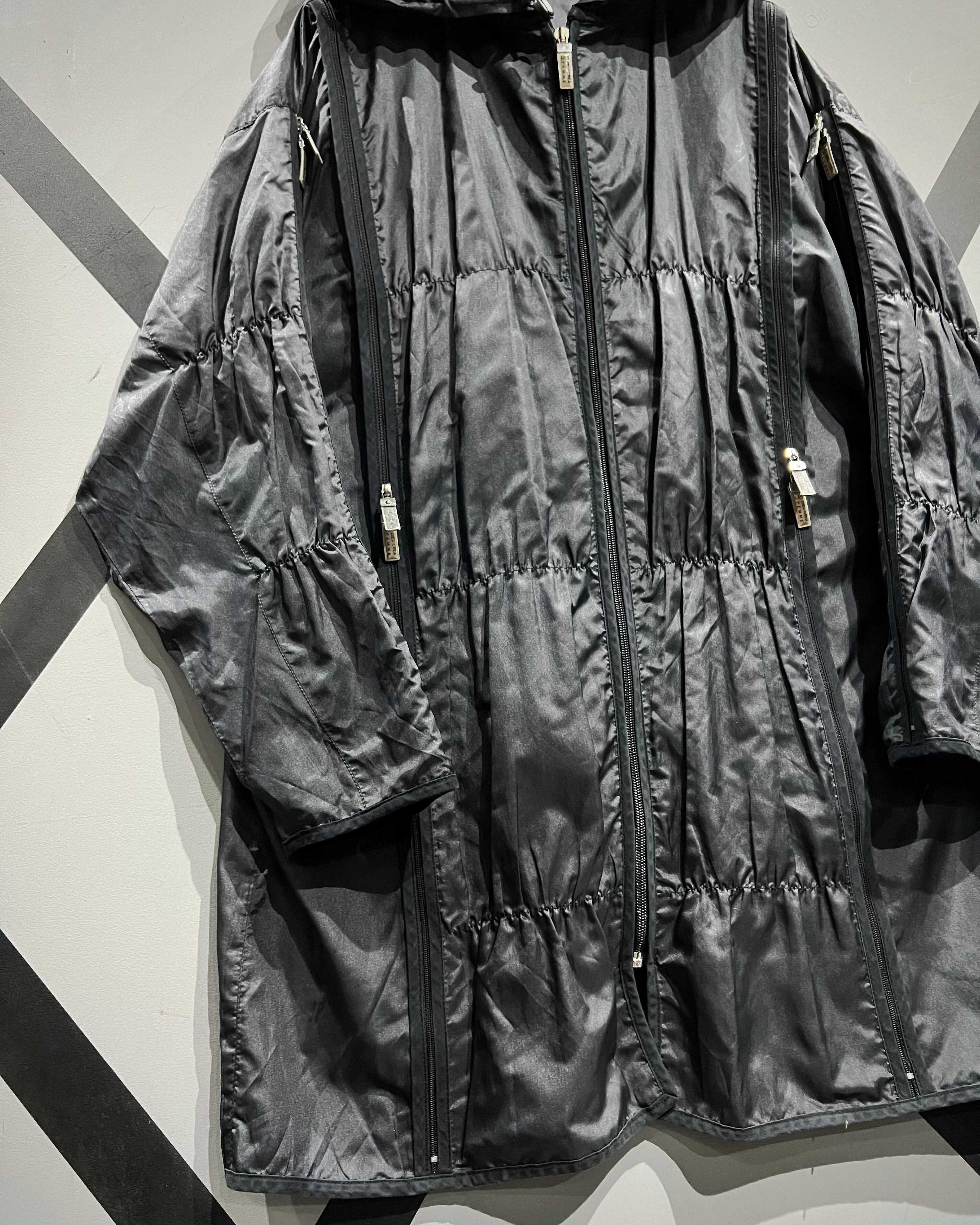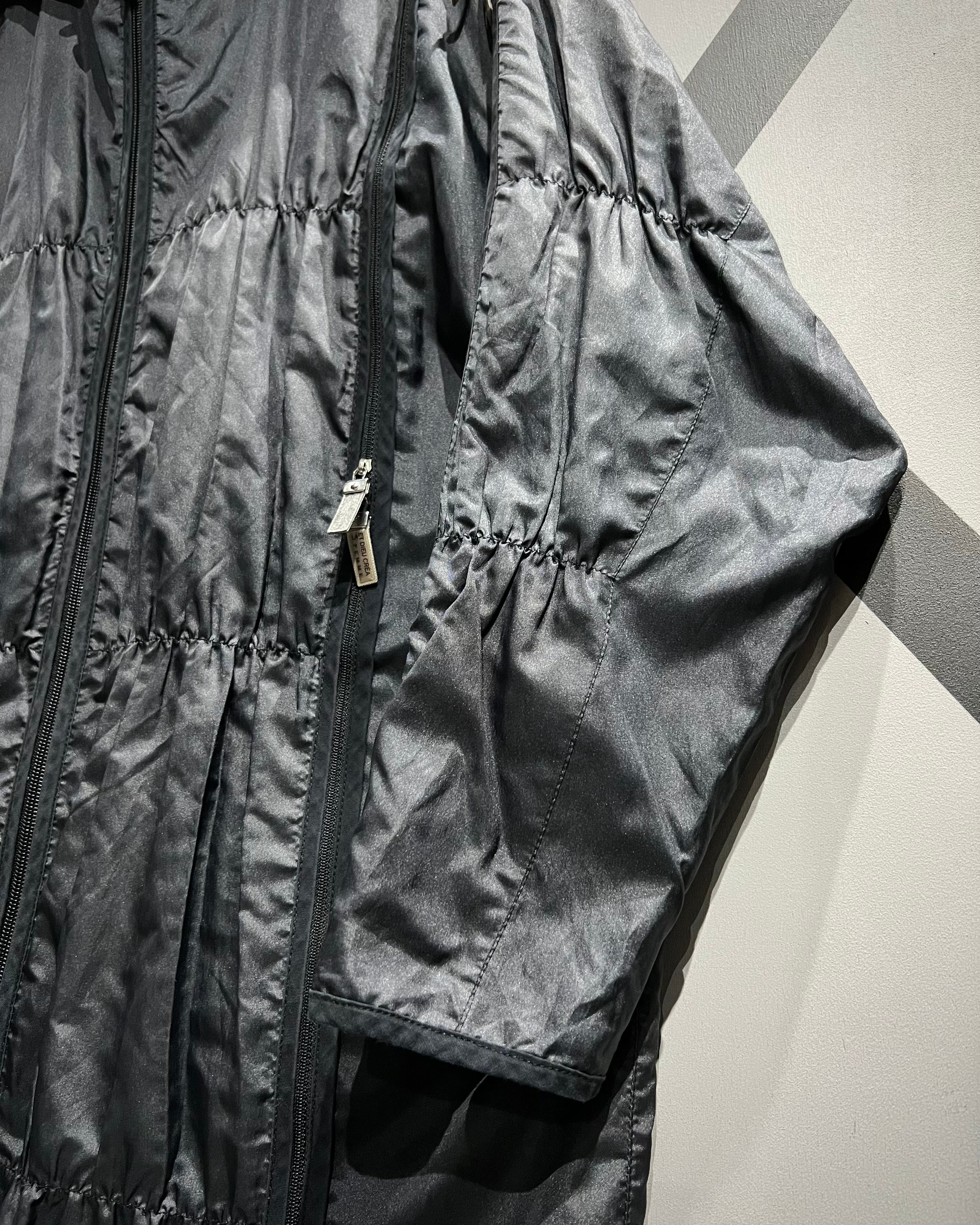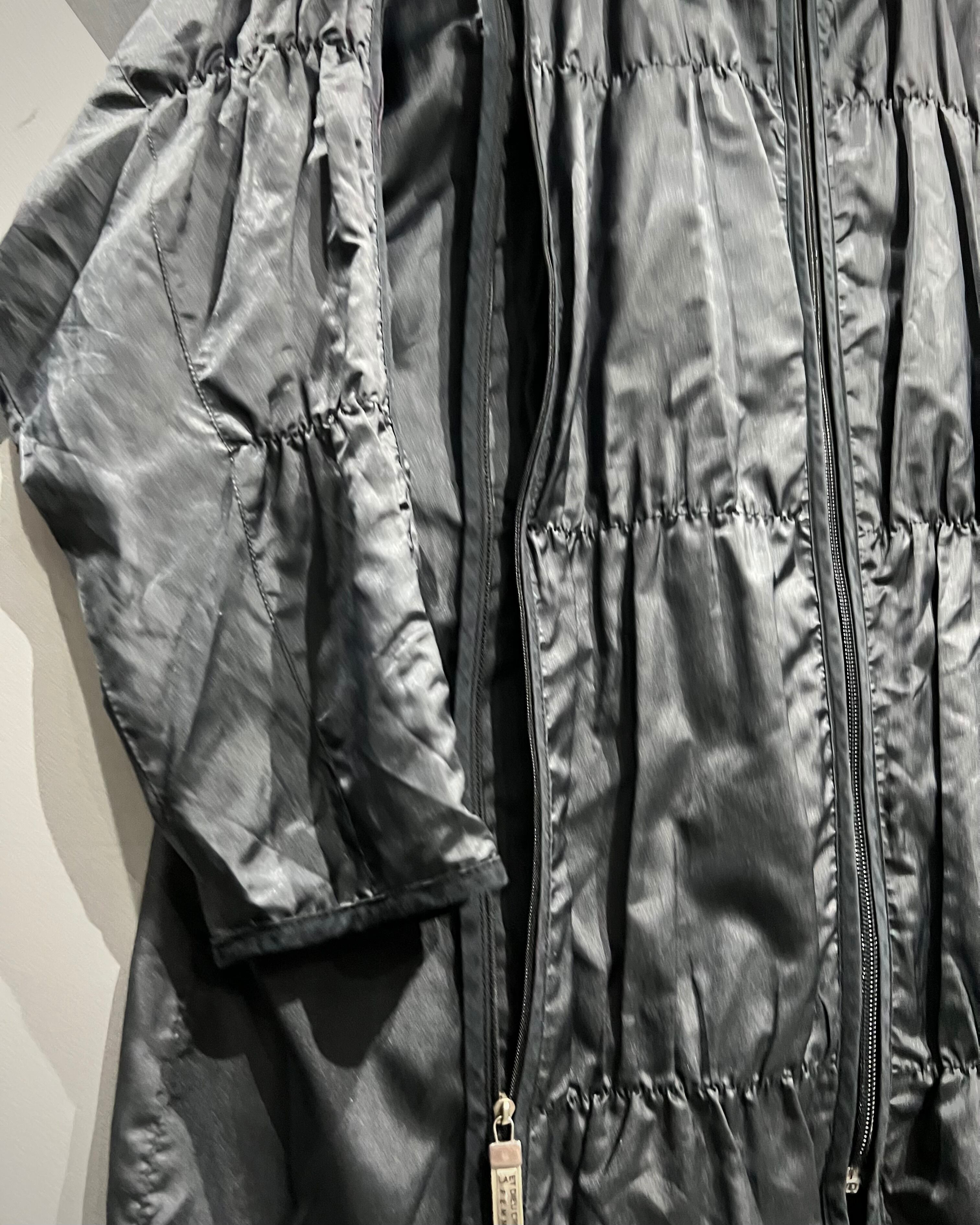ギャザーを施したことでオールブラックのボディに立体感が生まれ、ジップポケットのディテールとマッチしてテクニカルかつモードな雰囲気を放つ1着に。